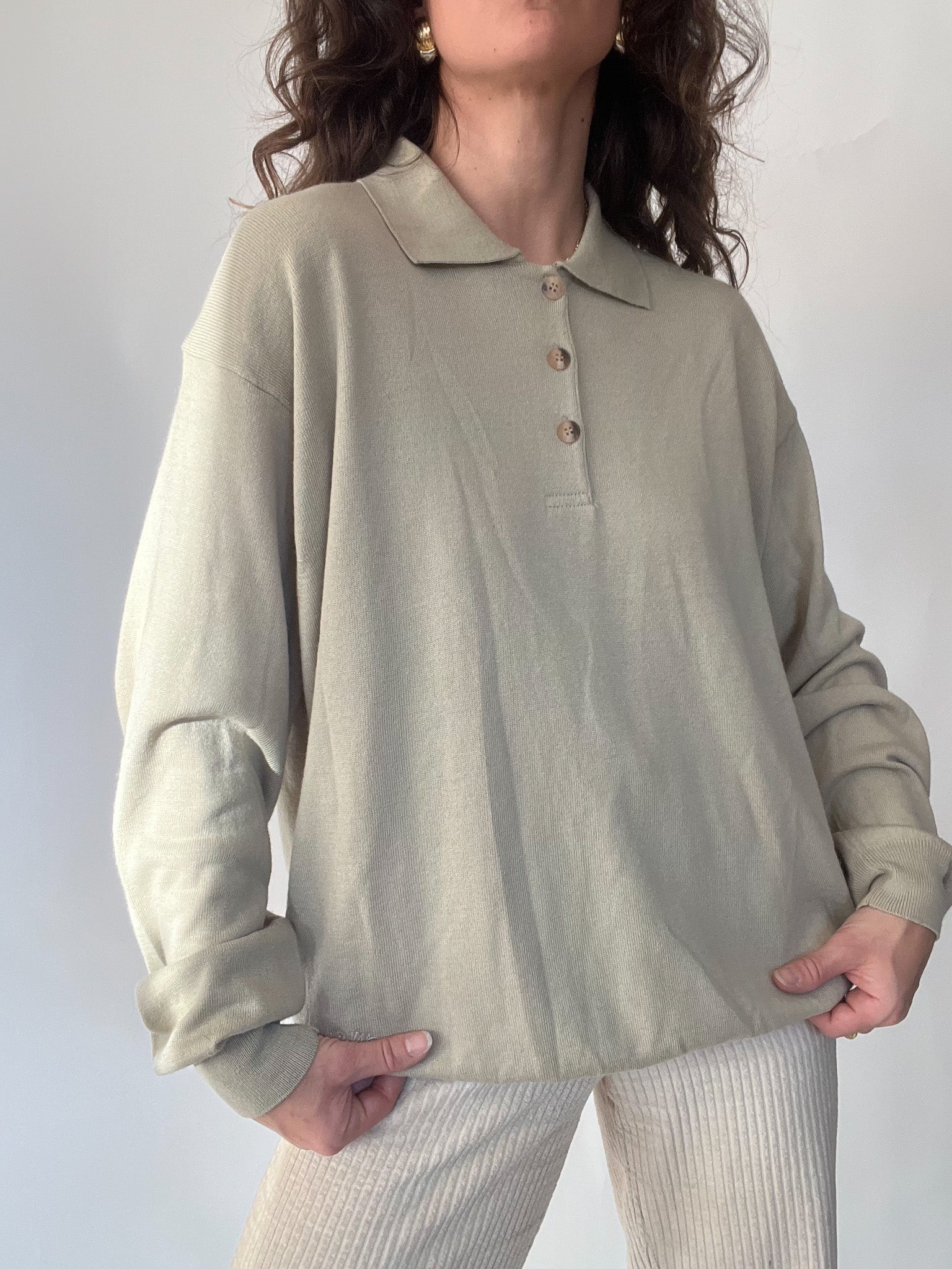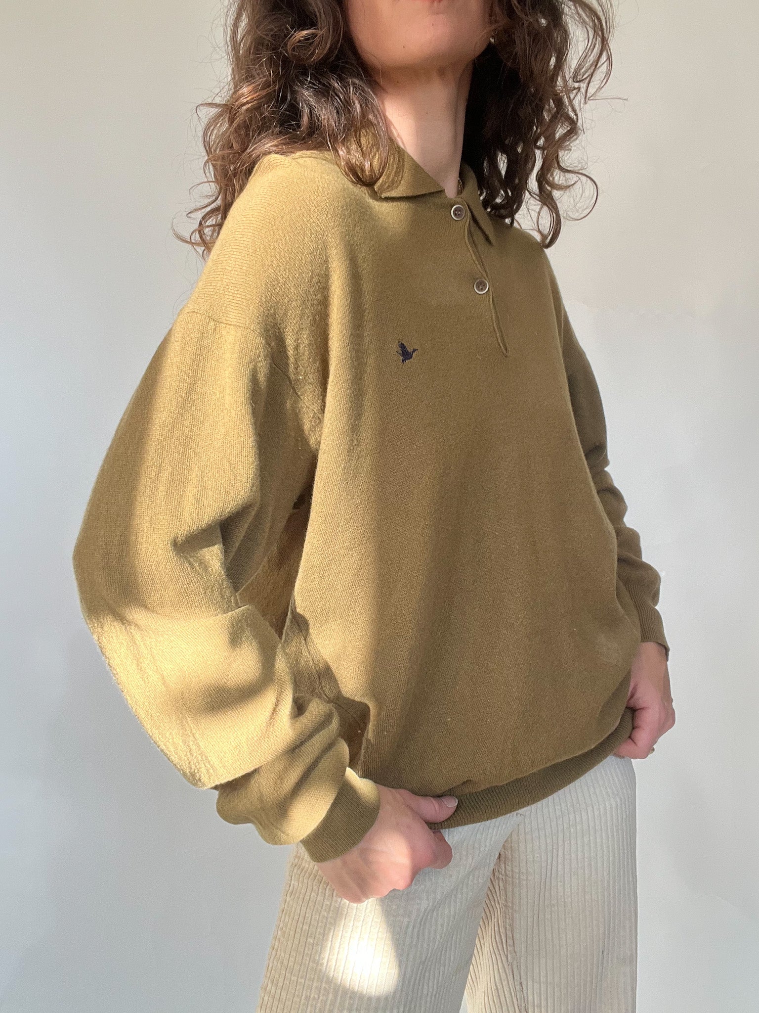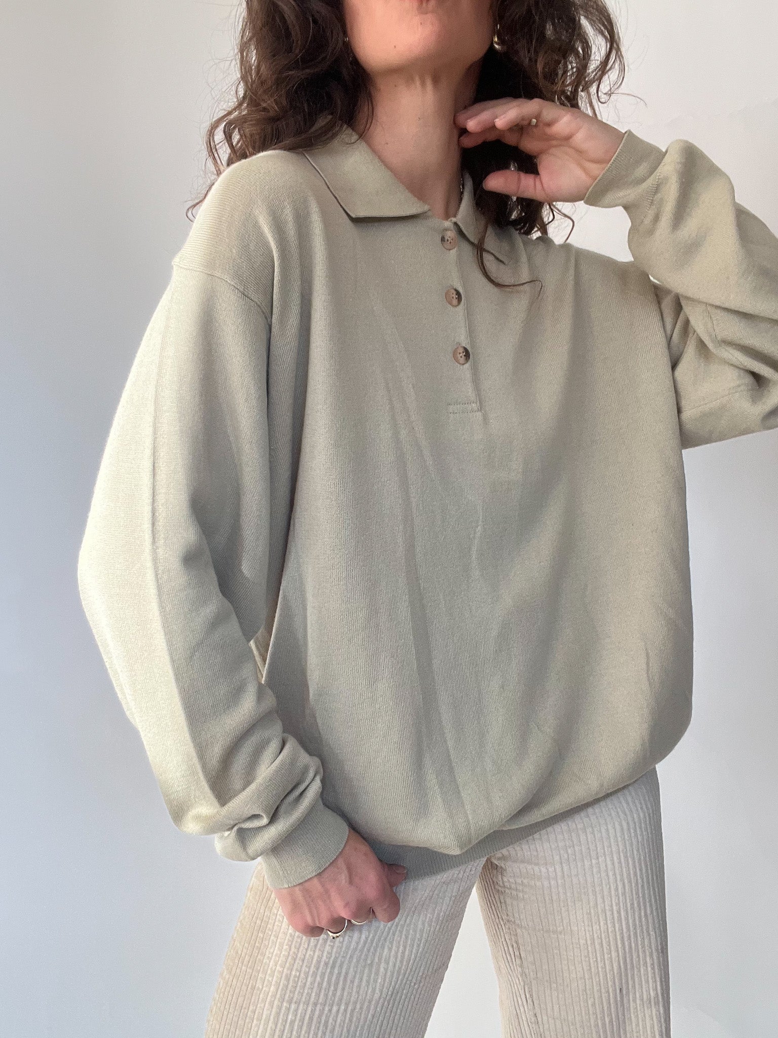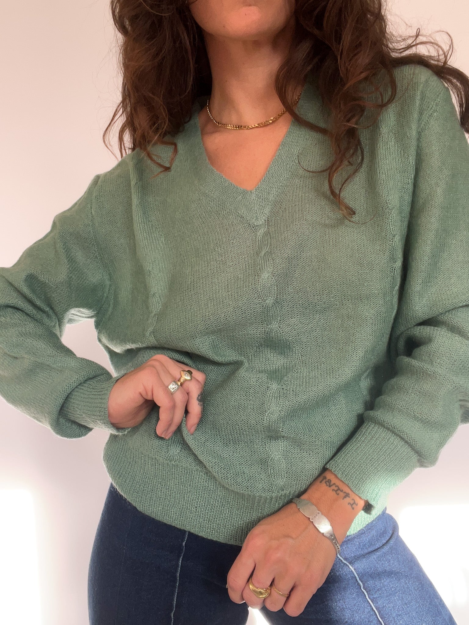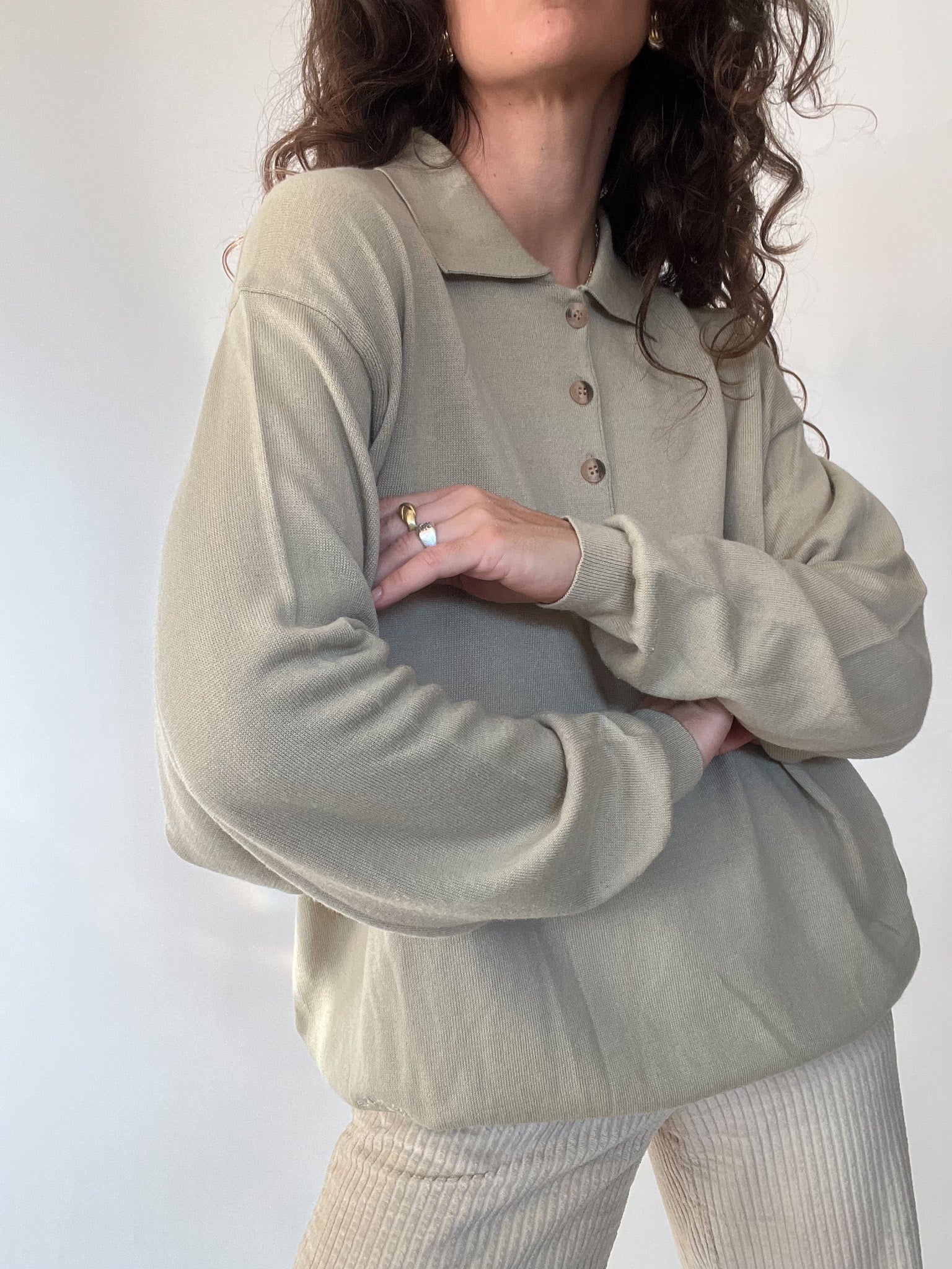 Vintage 90’s Emerald Cable Knit Polo Sweater