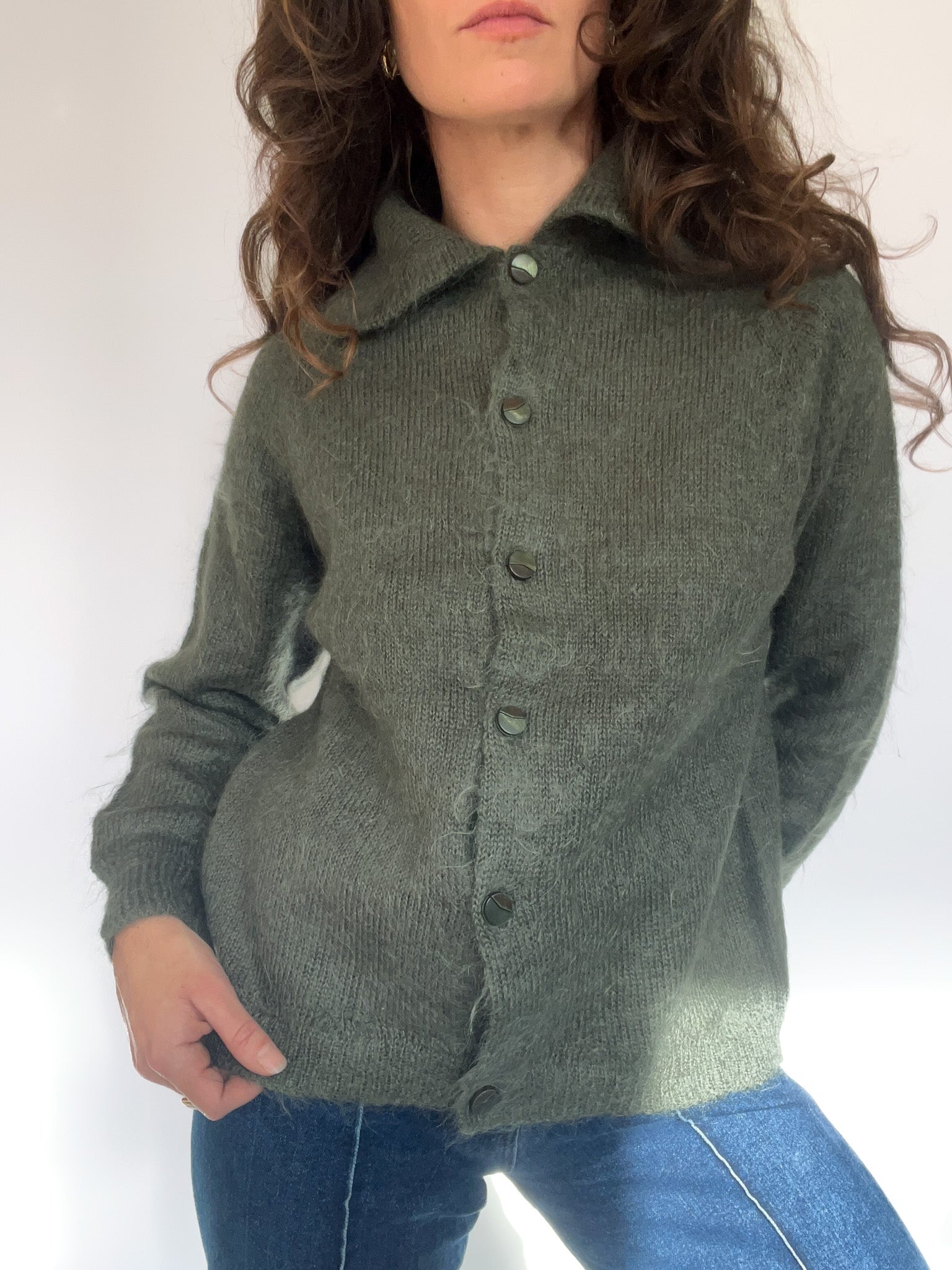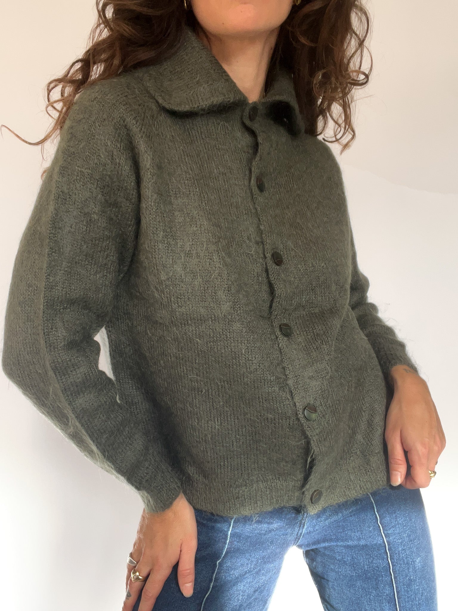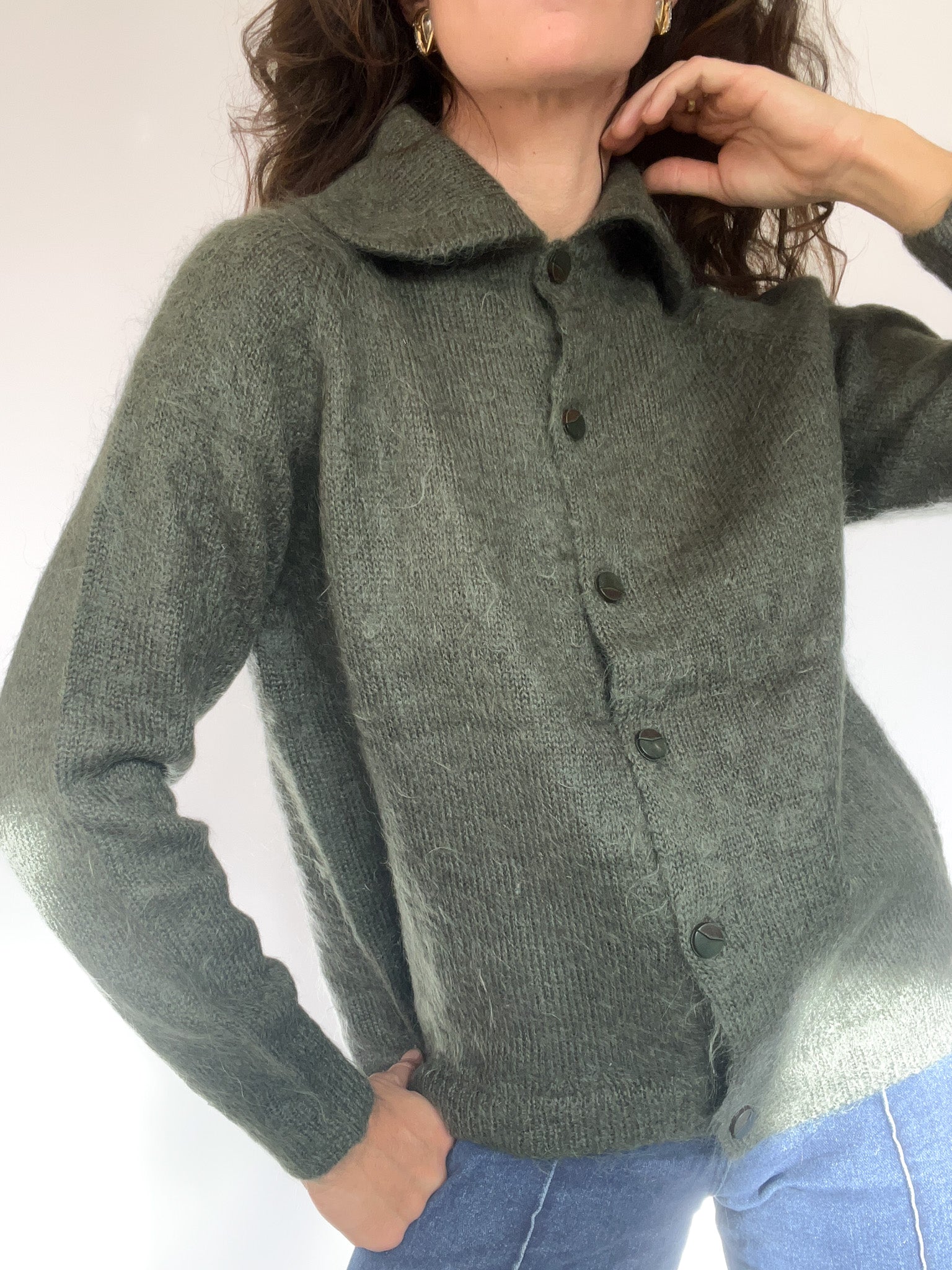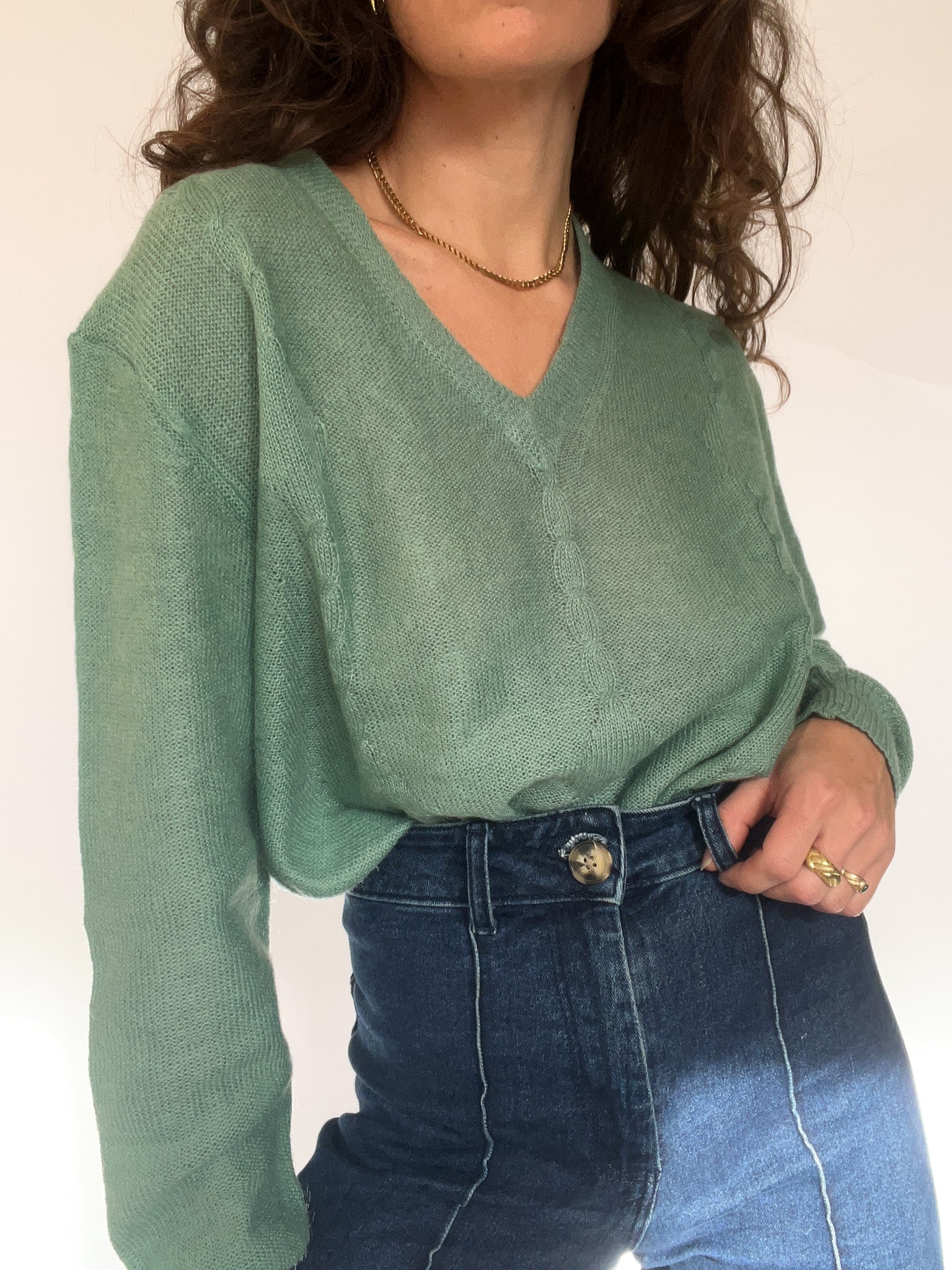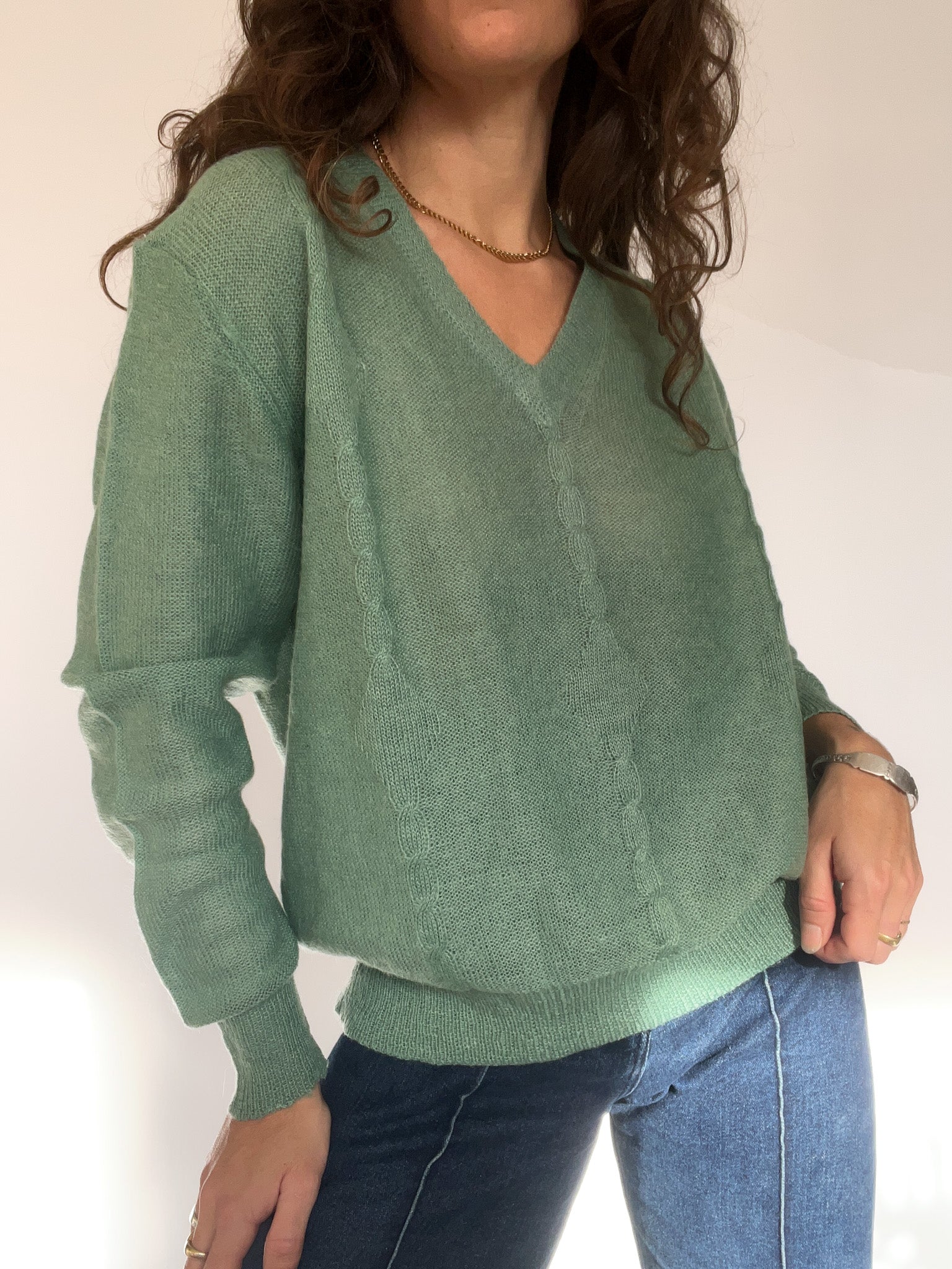 Vintage 90’s Emerald Cable Knit Polo Sweater