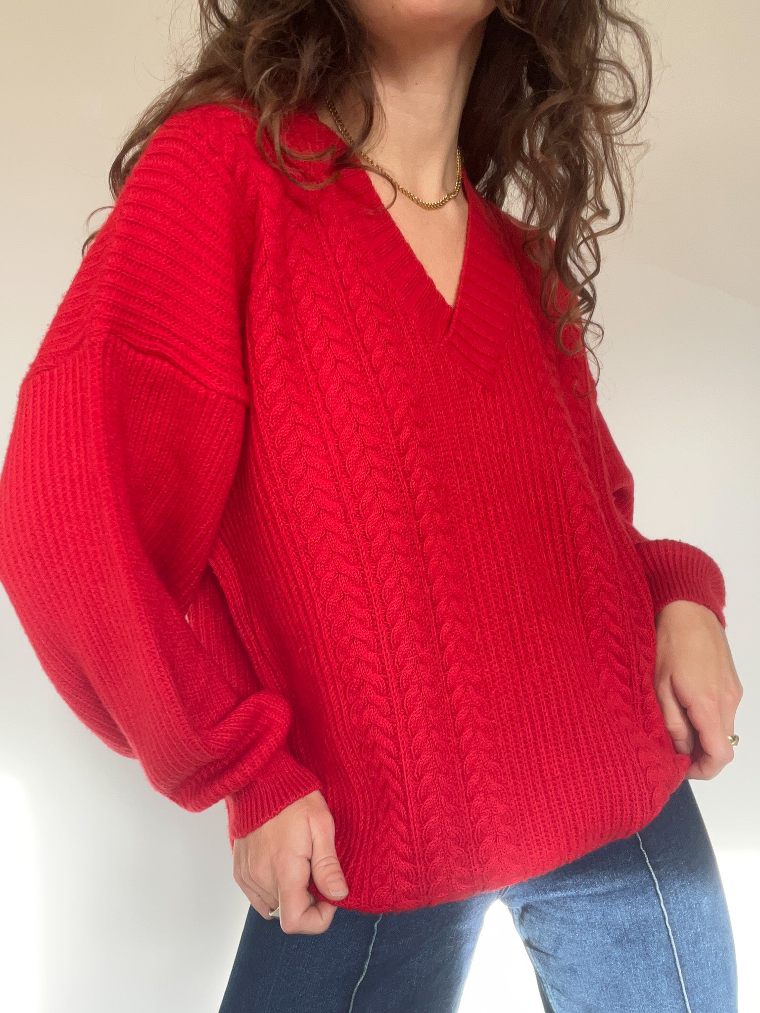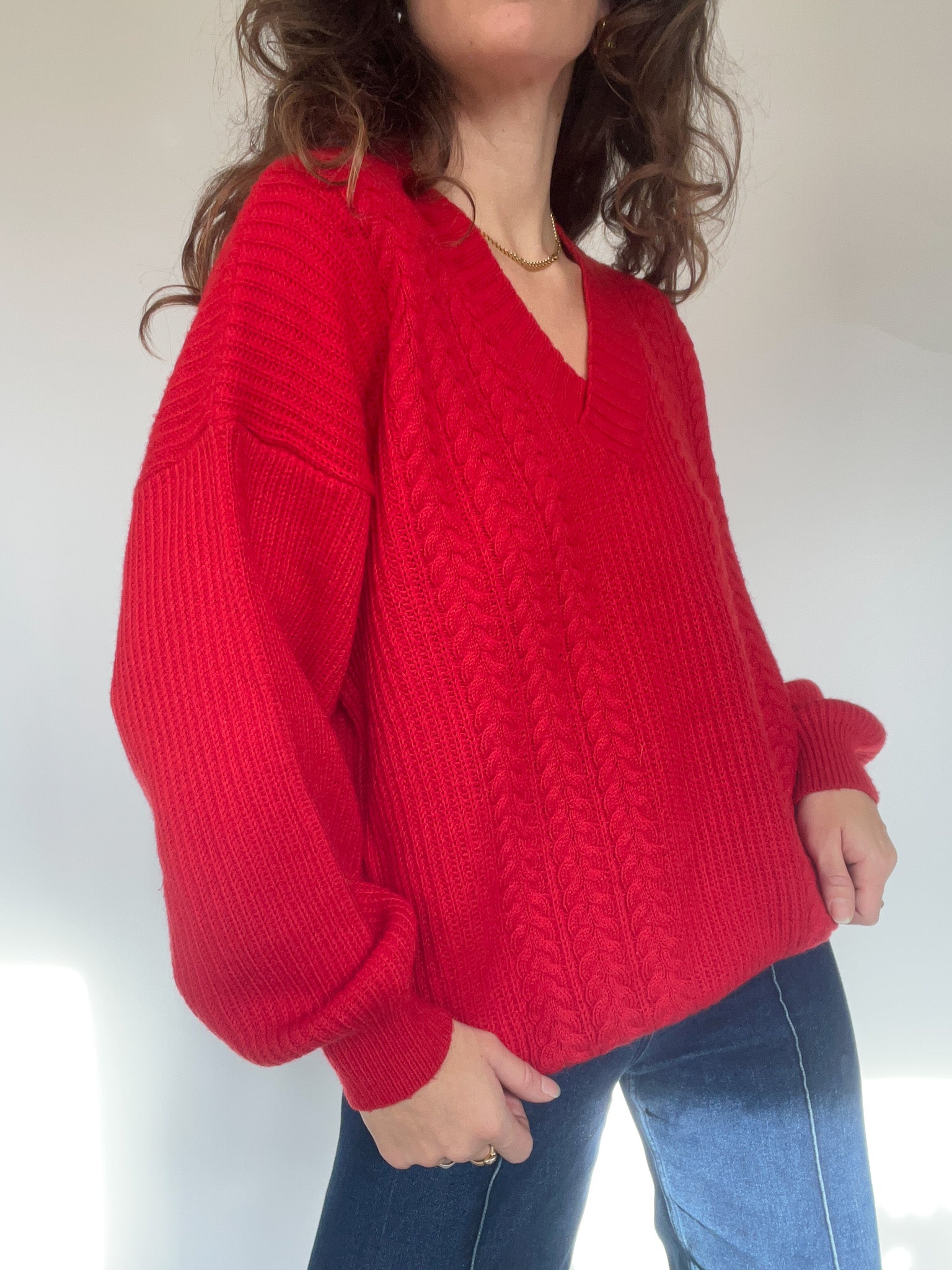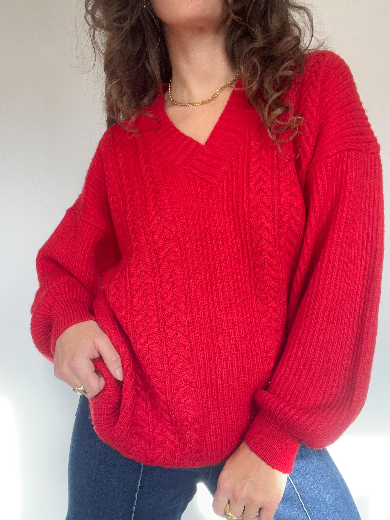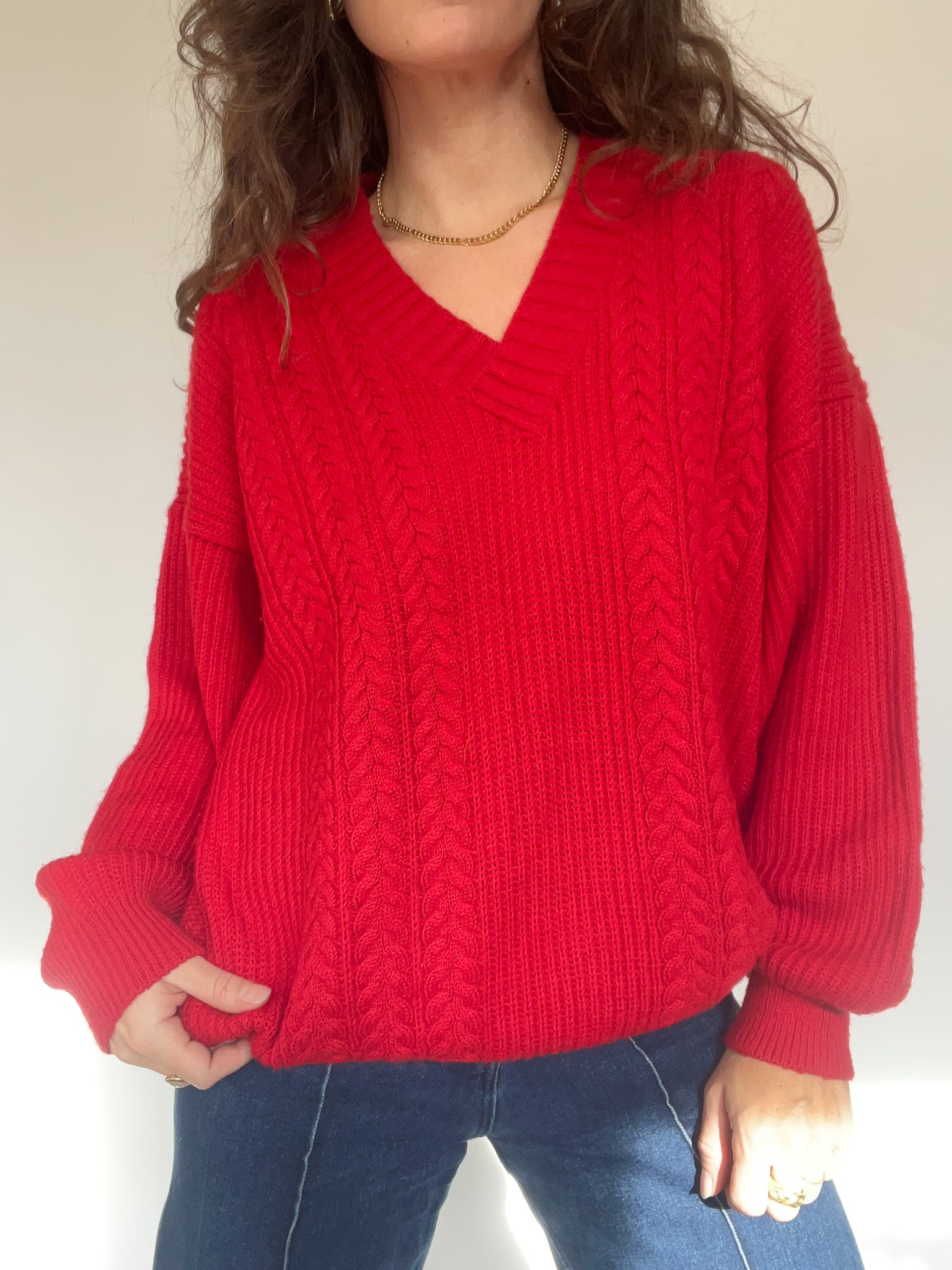 Vintage 80’s Red Cable Knit V-Neck Sweater
