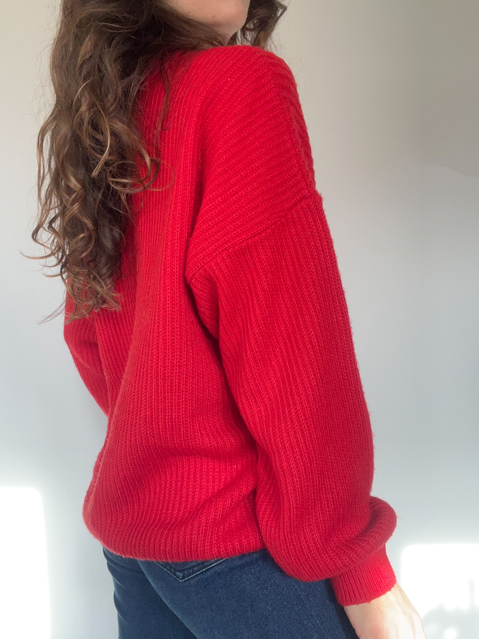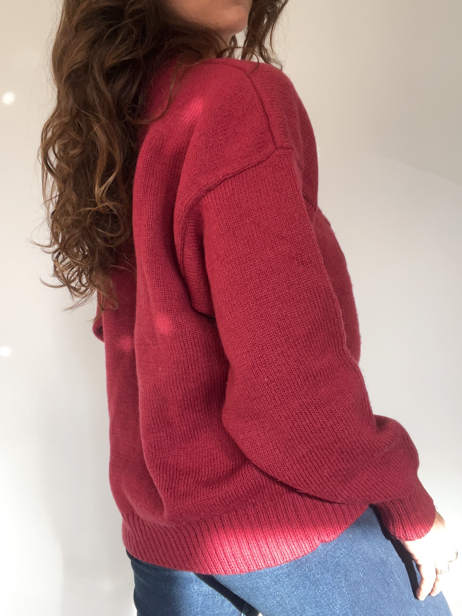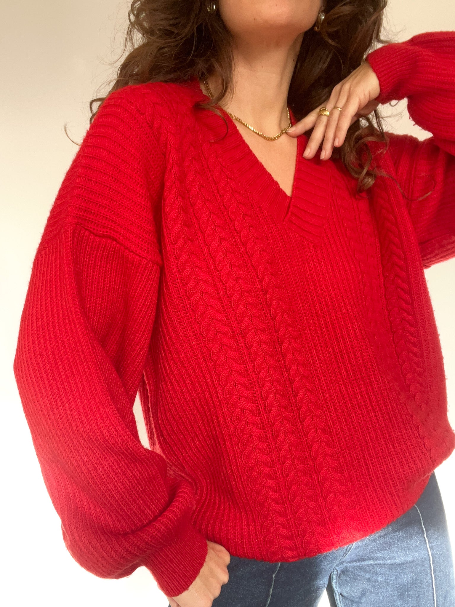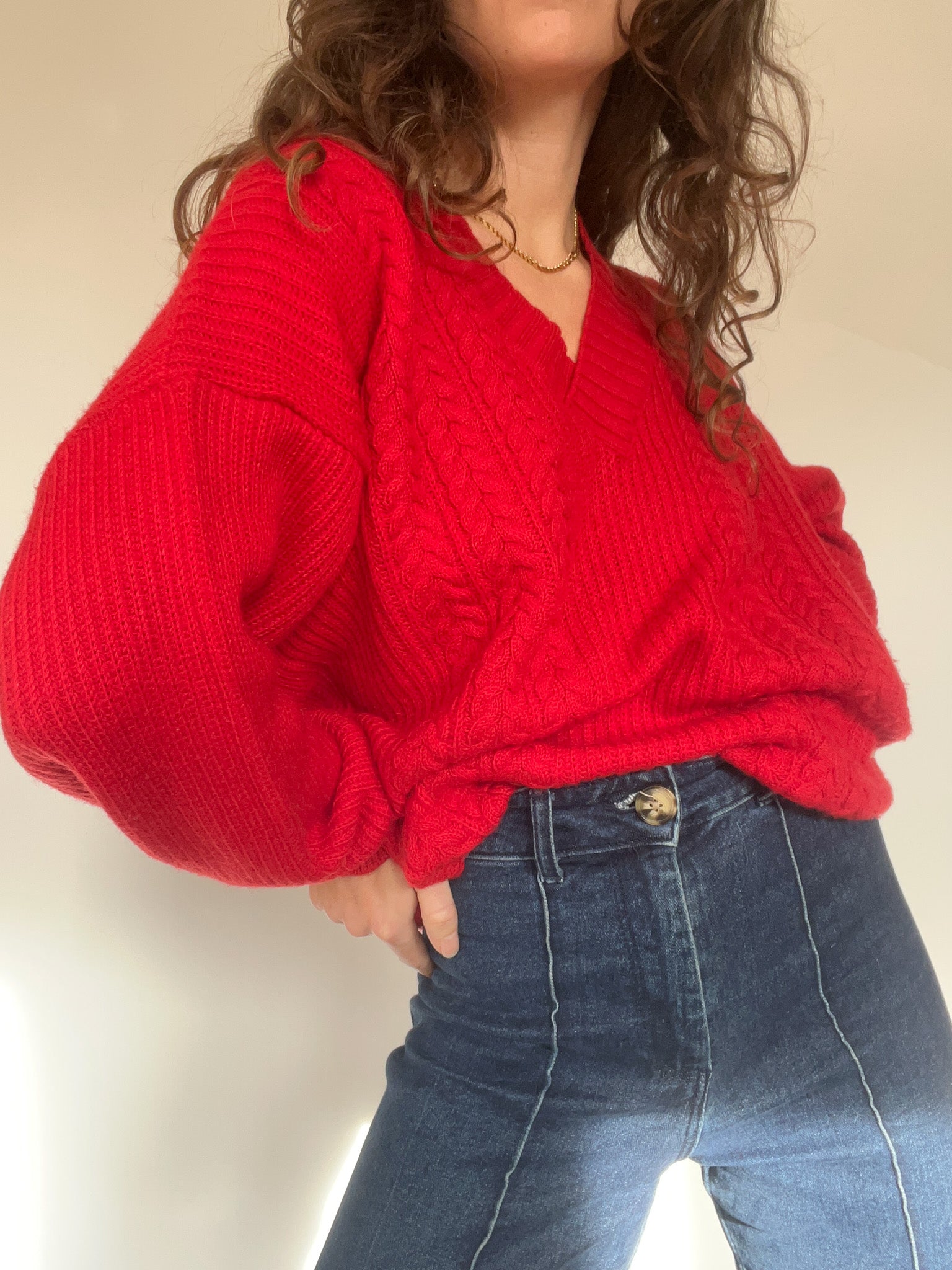 Vintage 80’s Red Cable Knit V-Neck Sweater