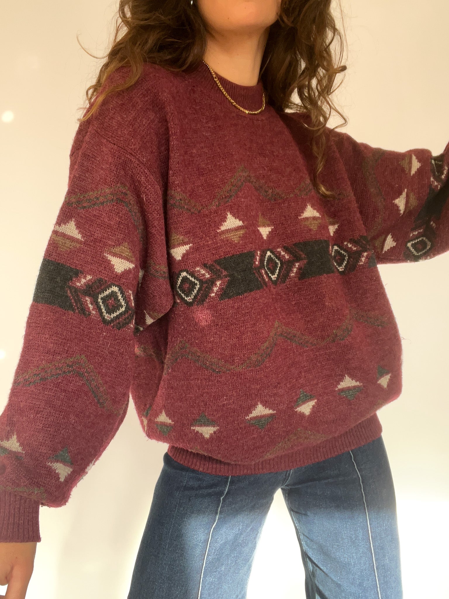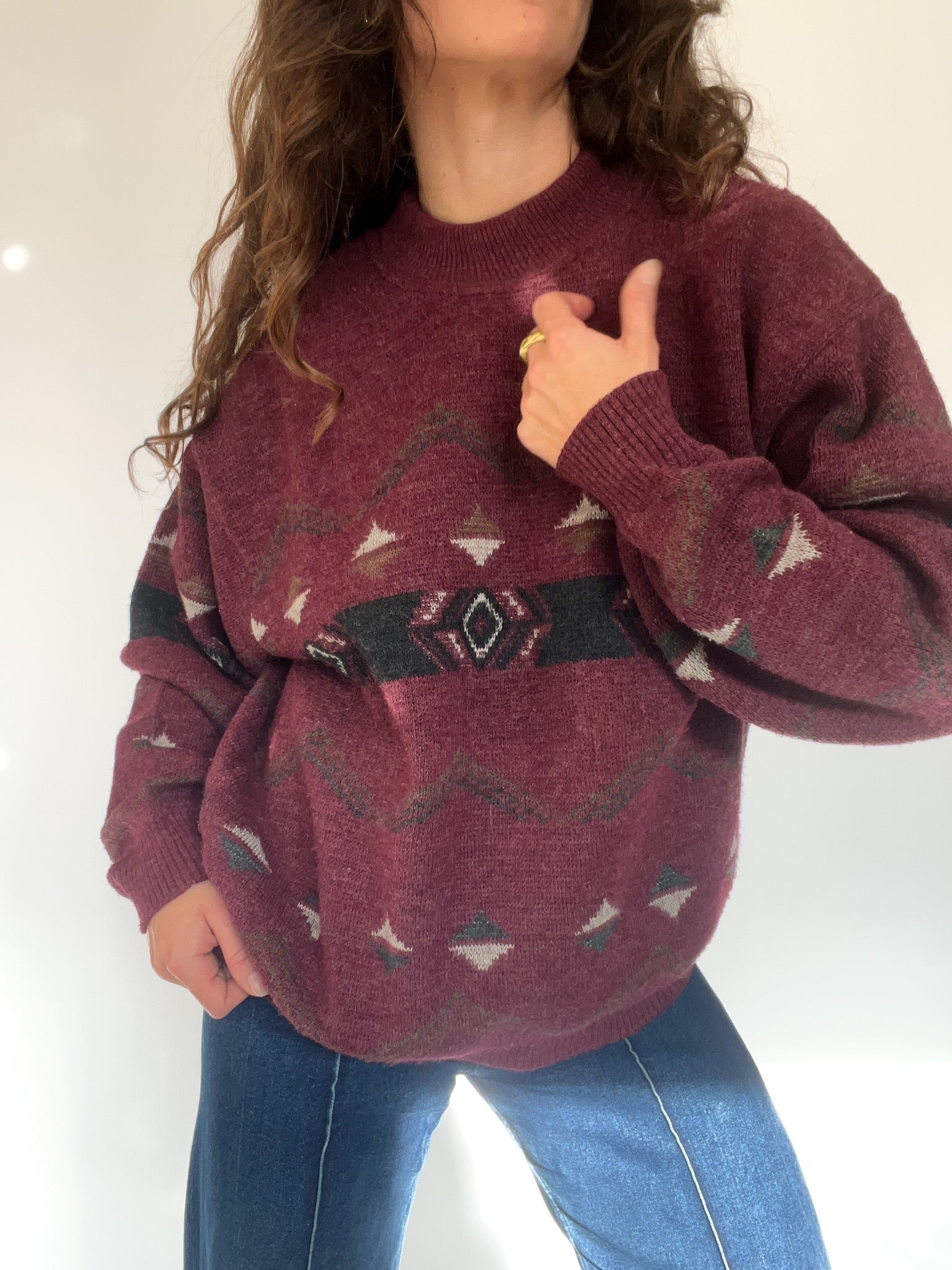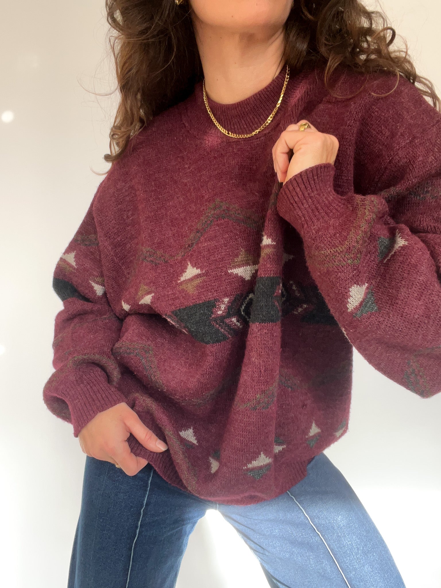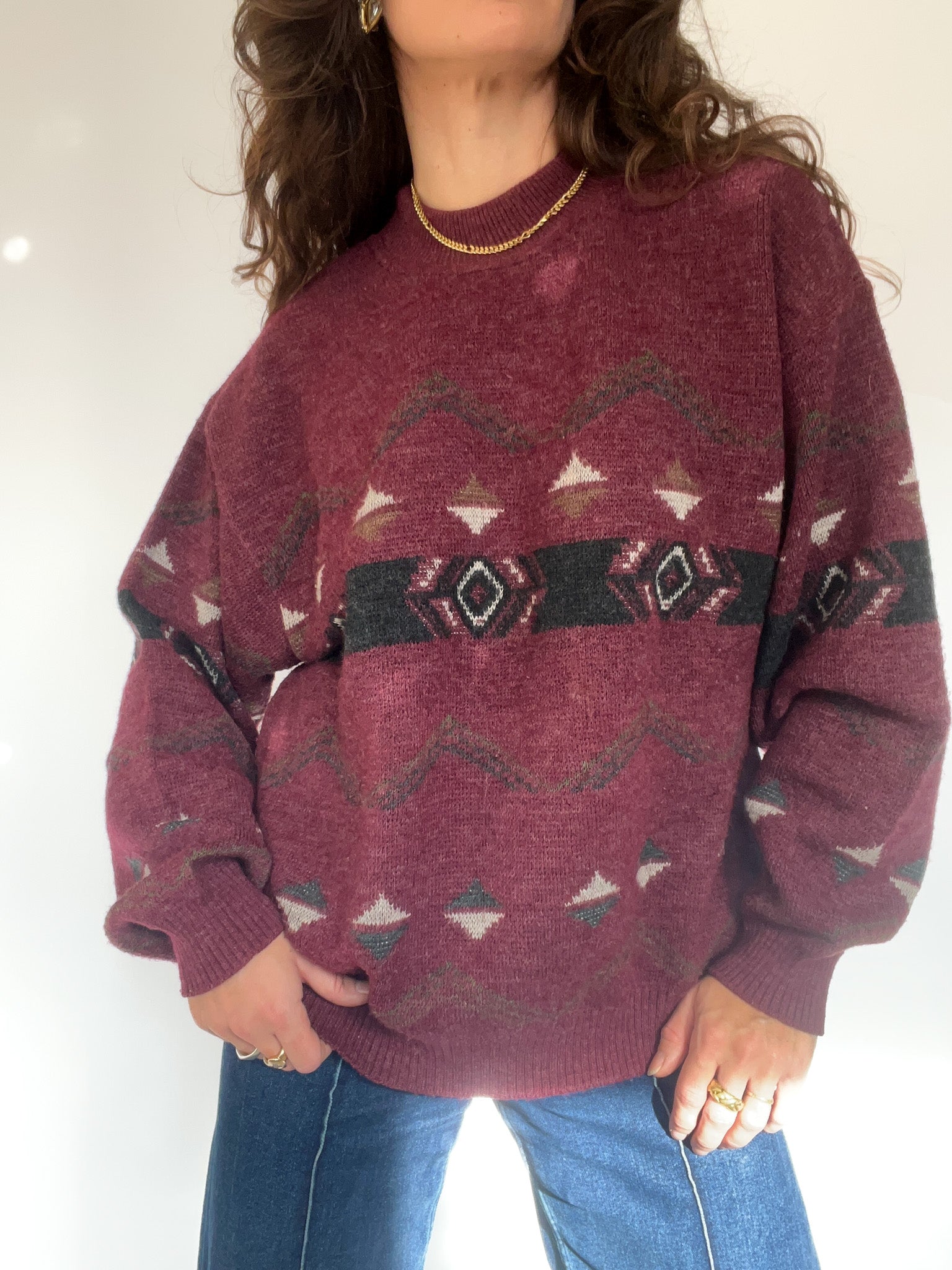 Vintage 80’s Burgundy Geometric Knit Sweater
