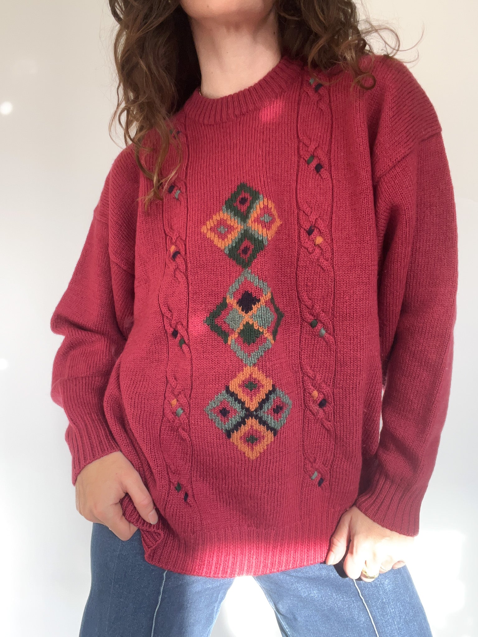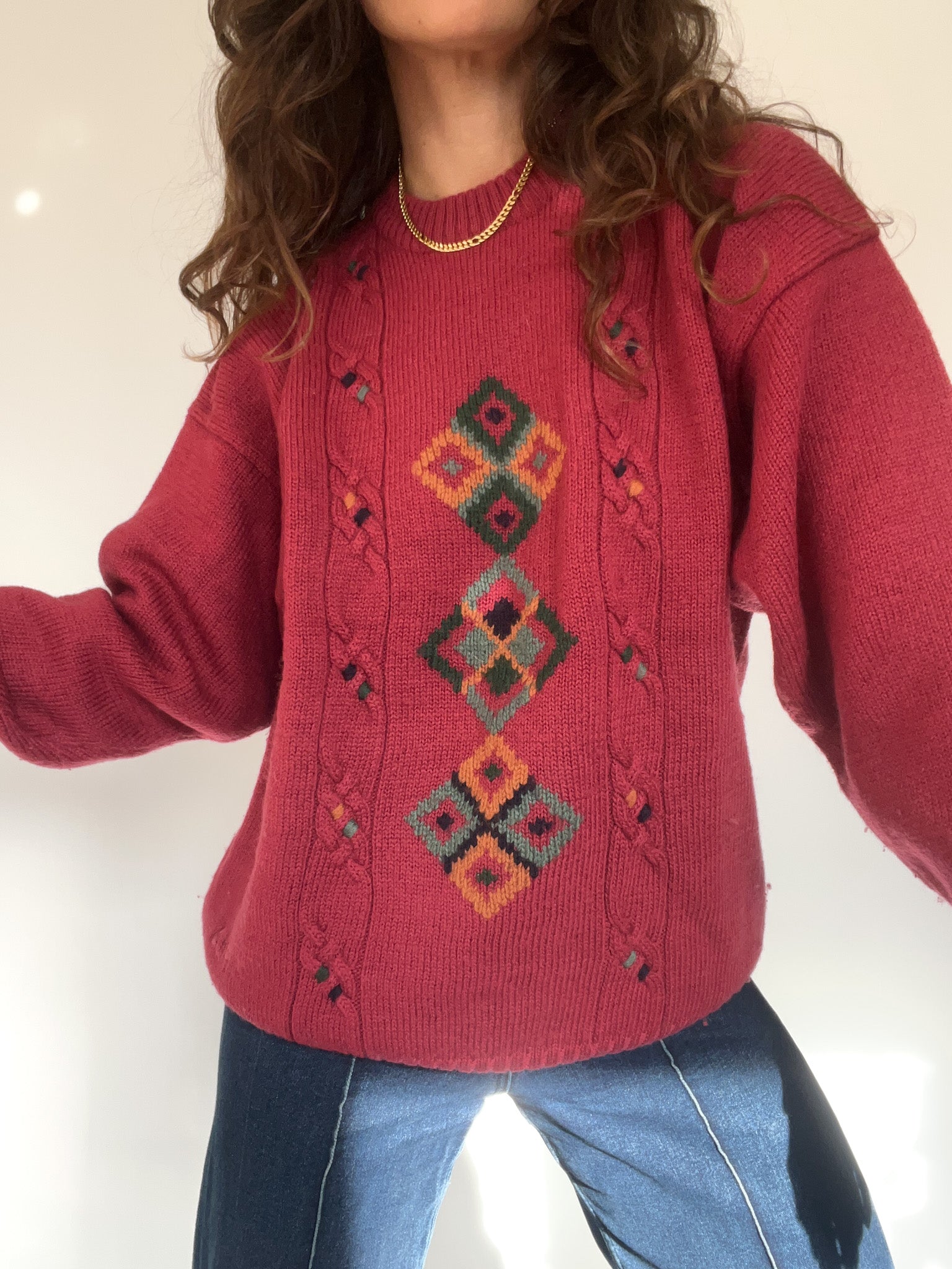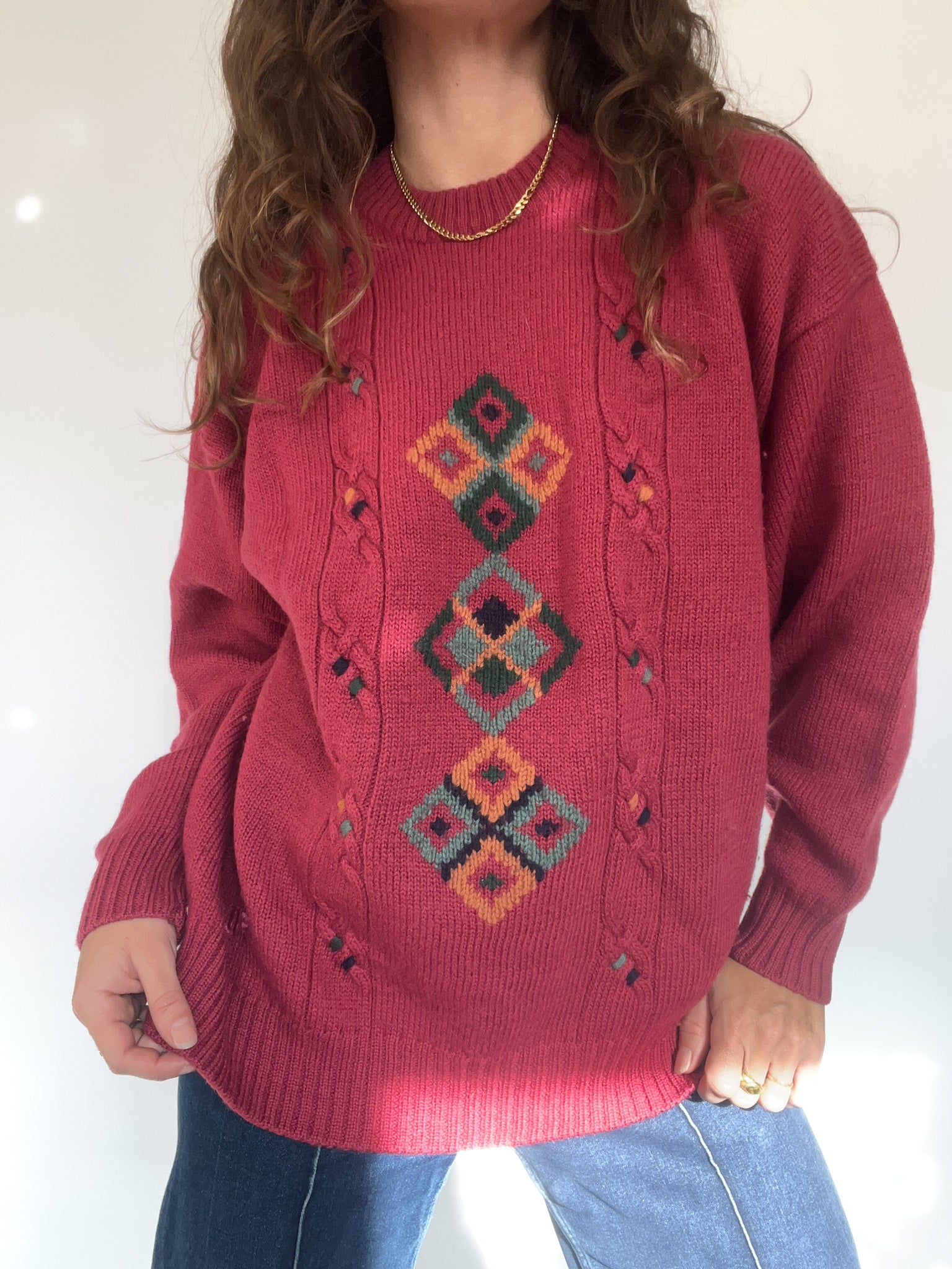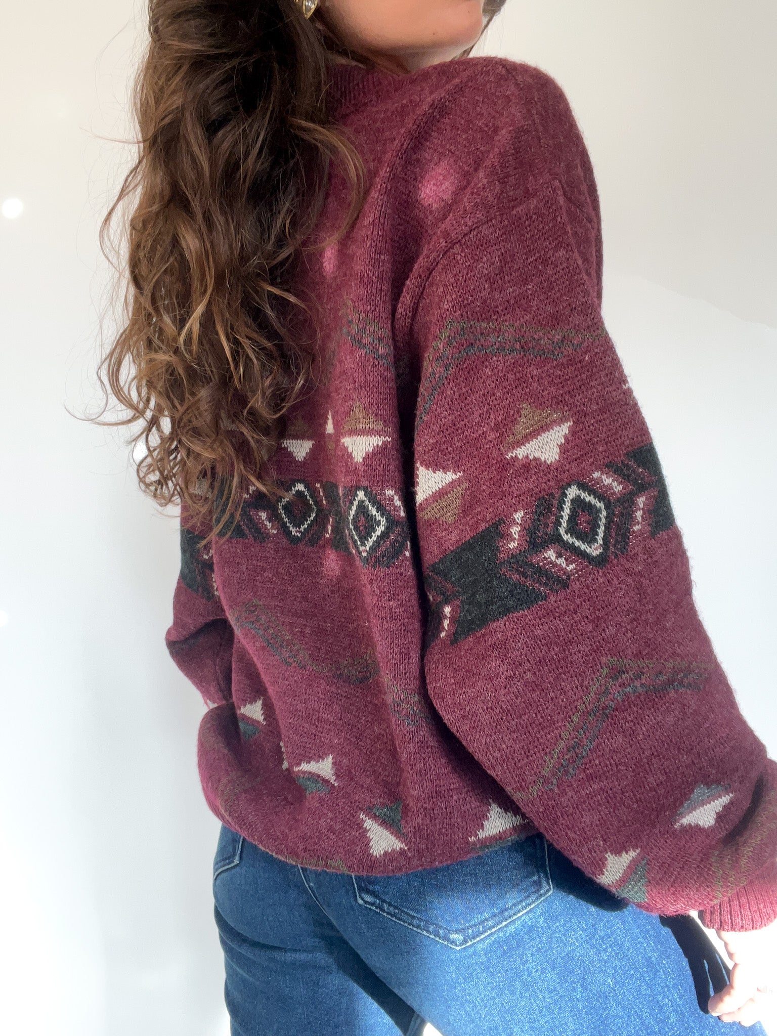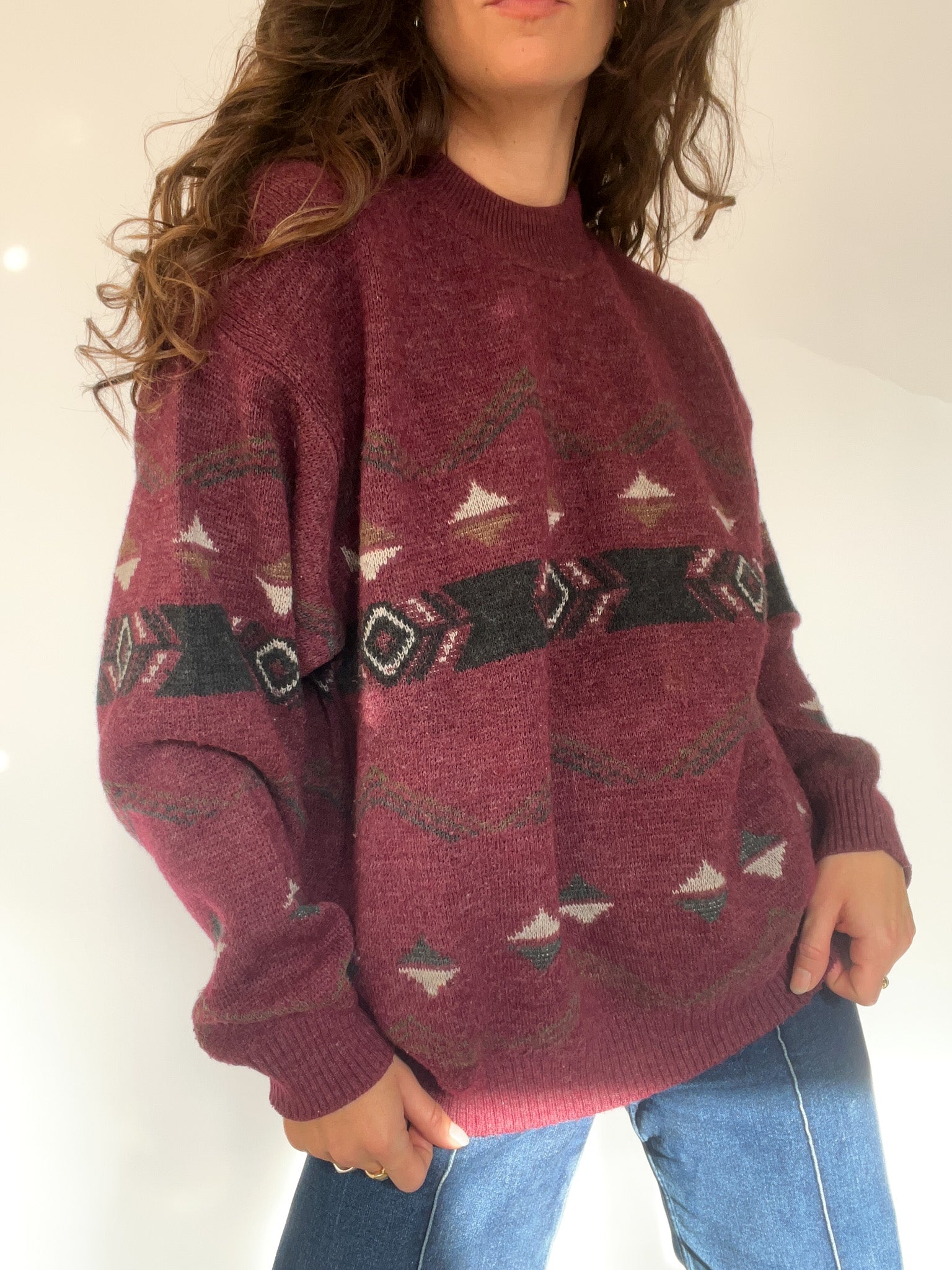 Vintage 80’s Burgundy Geometric Knit Sweater