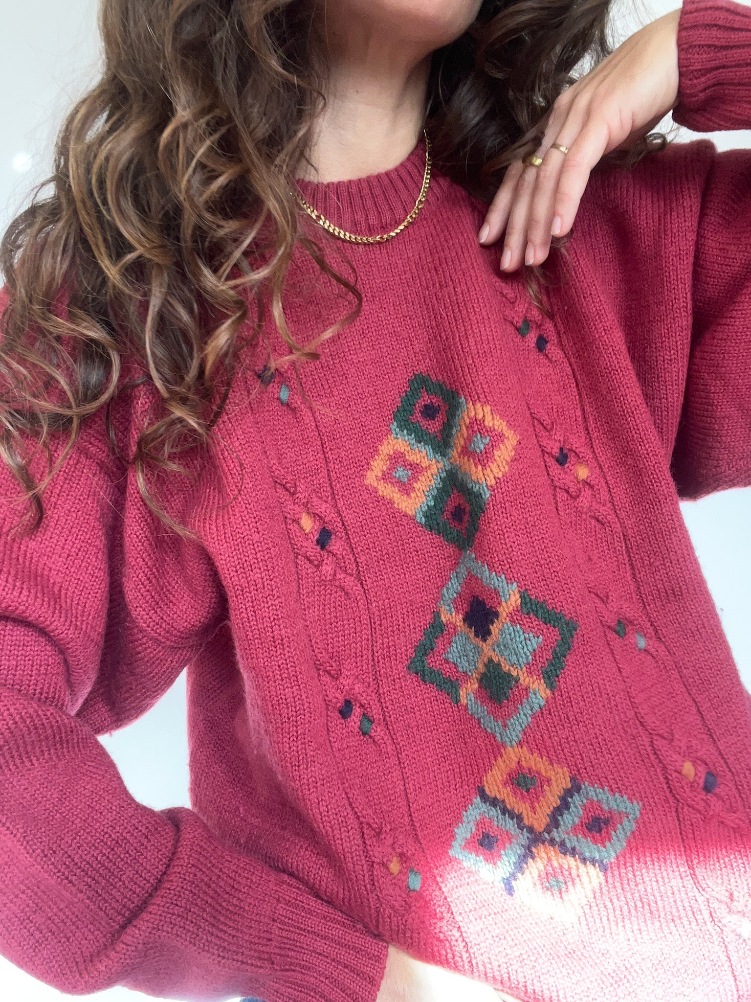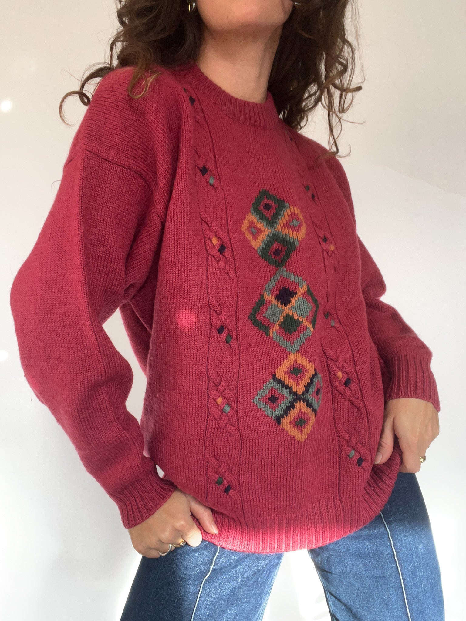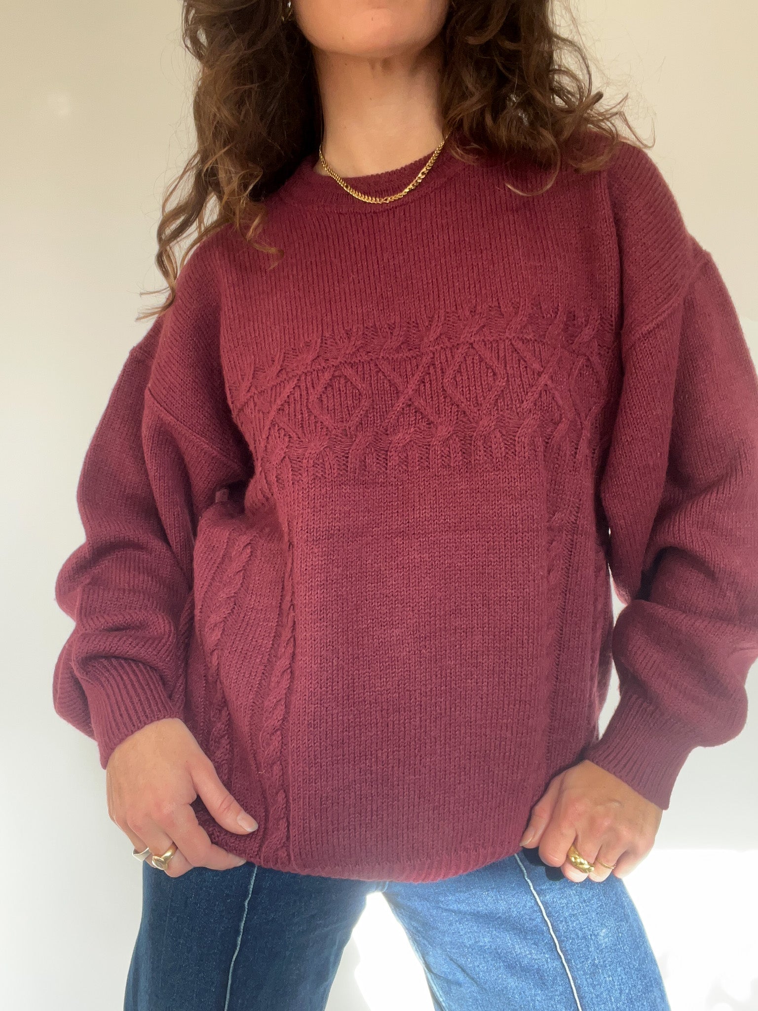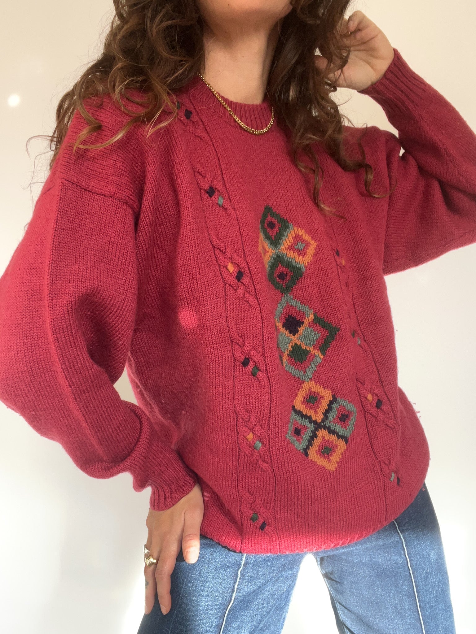 Vintage 80’s Burgundy Geometric Knit Sweater