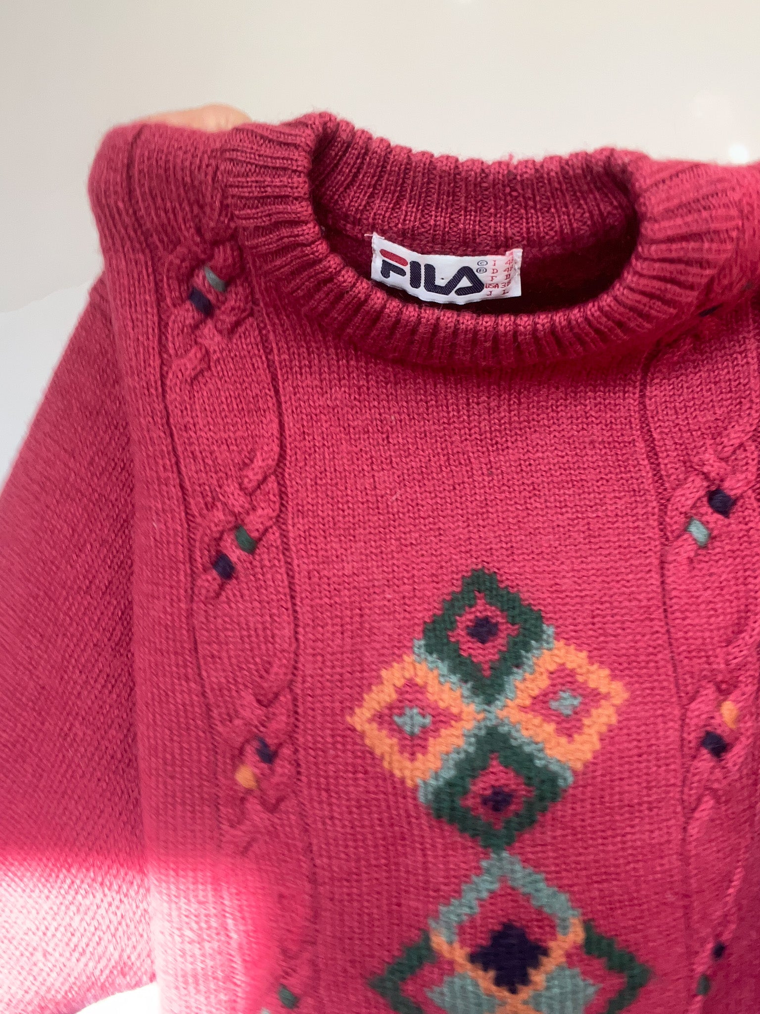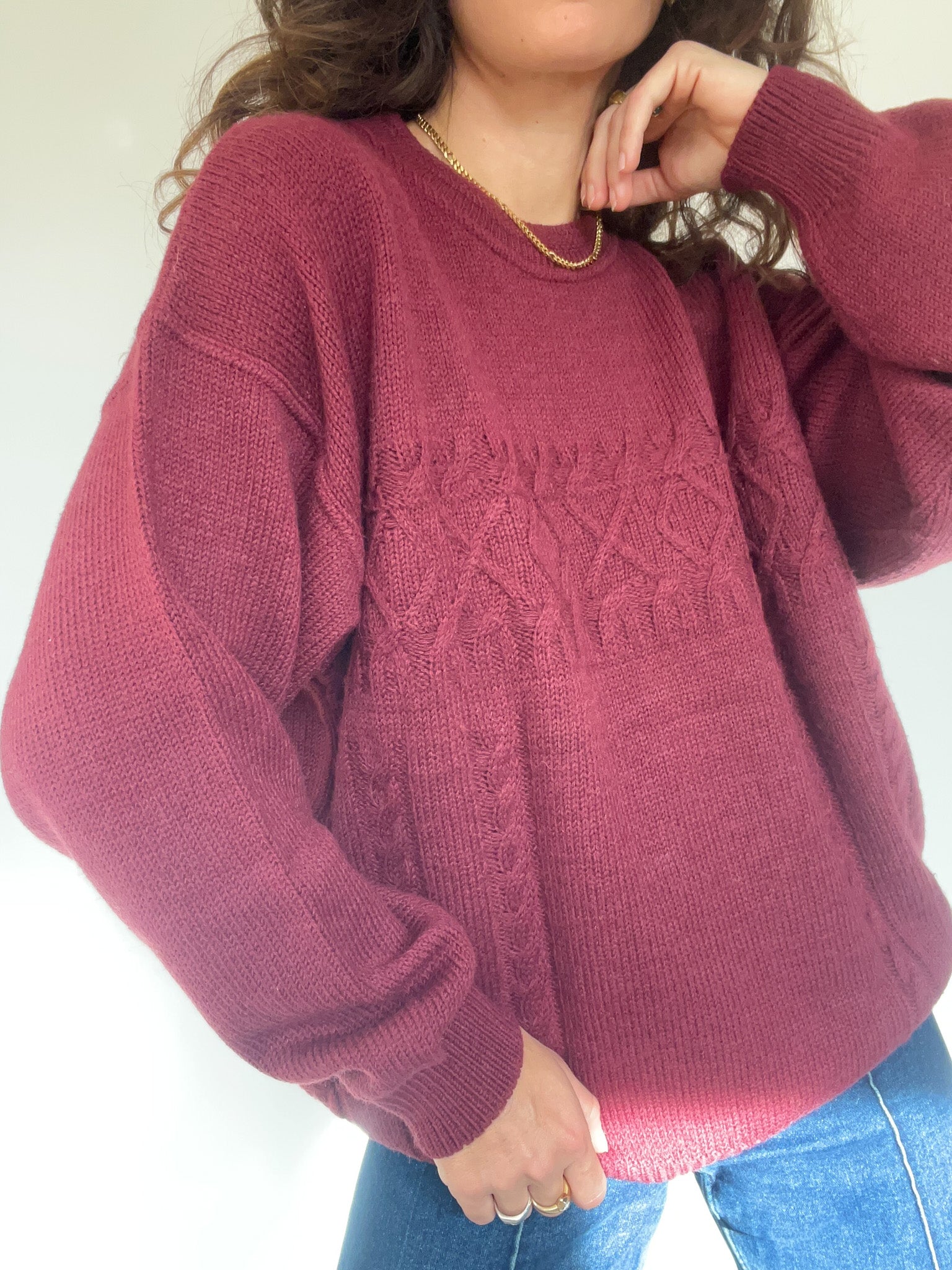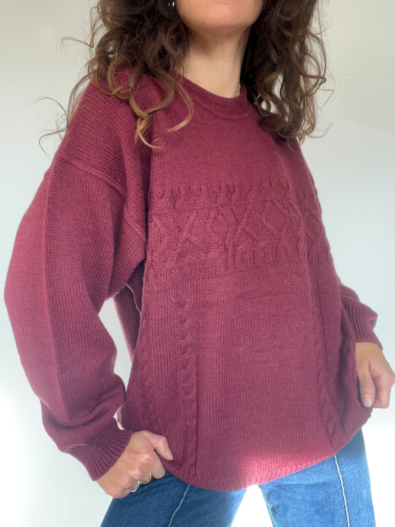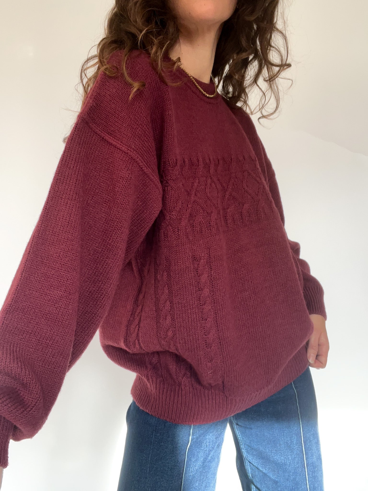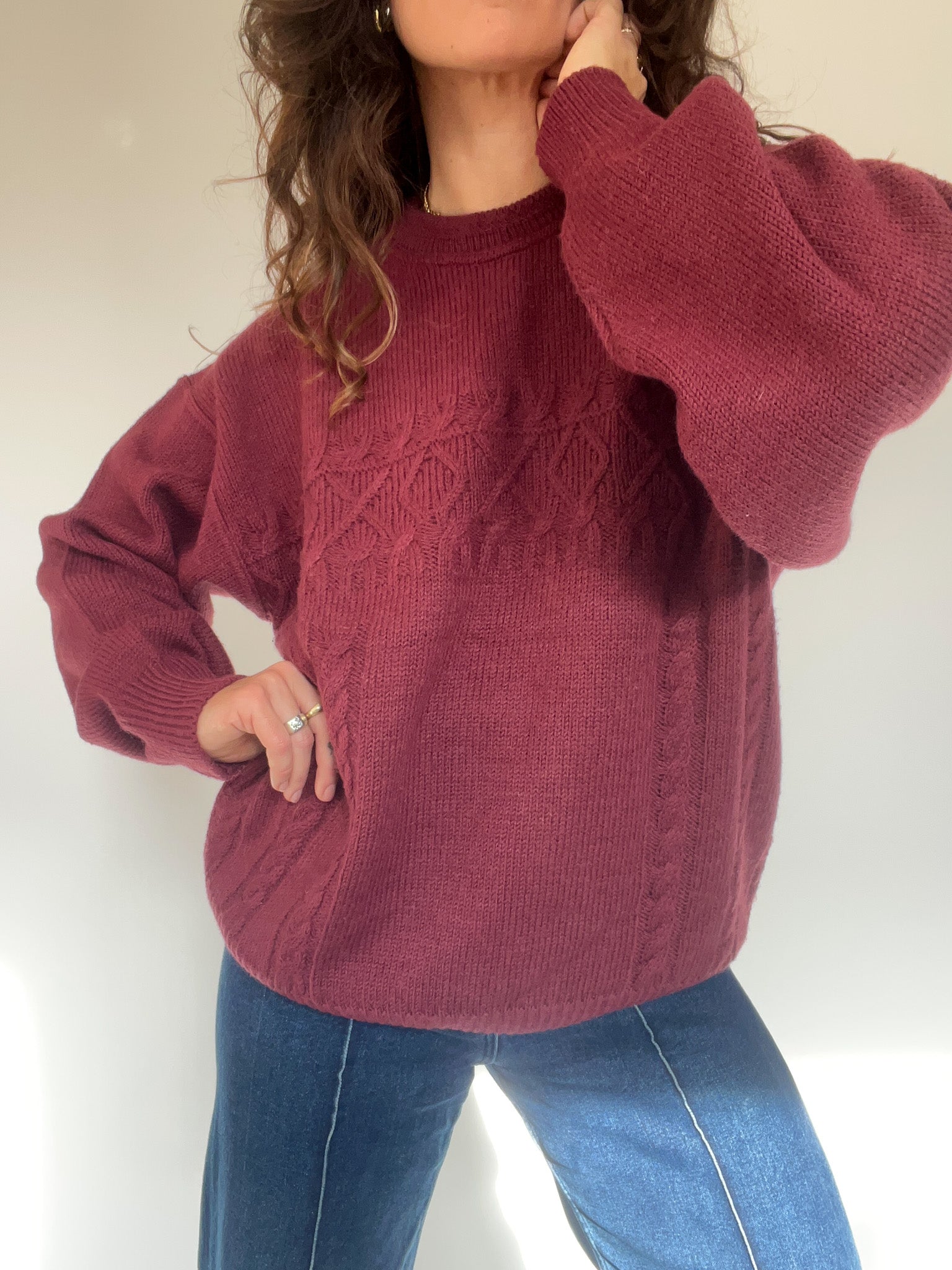 Vintage 80’s Burgundy Geometric Knit Sweater