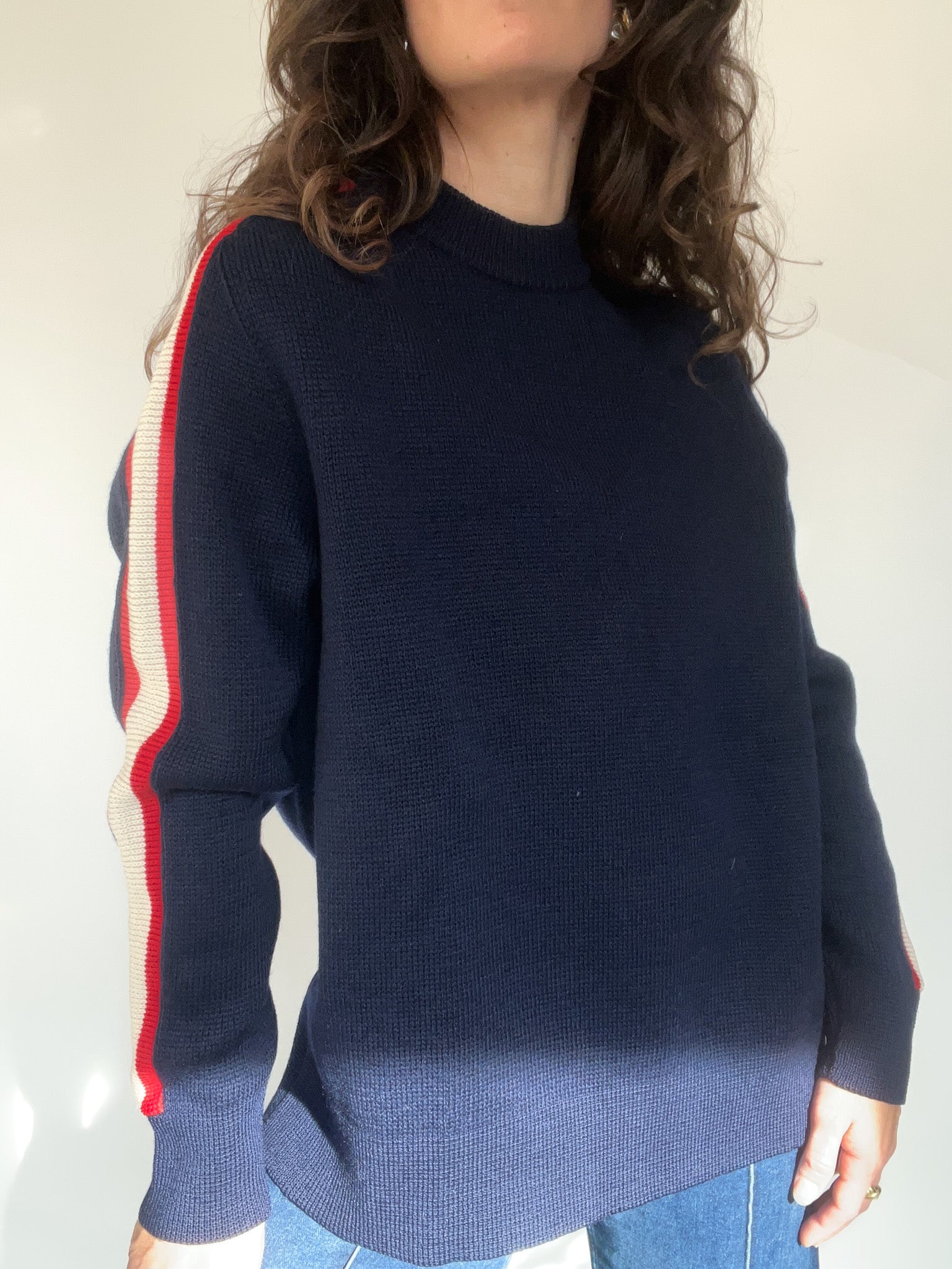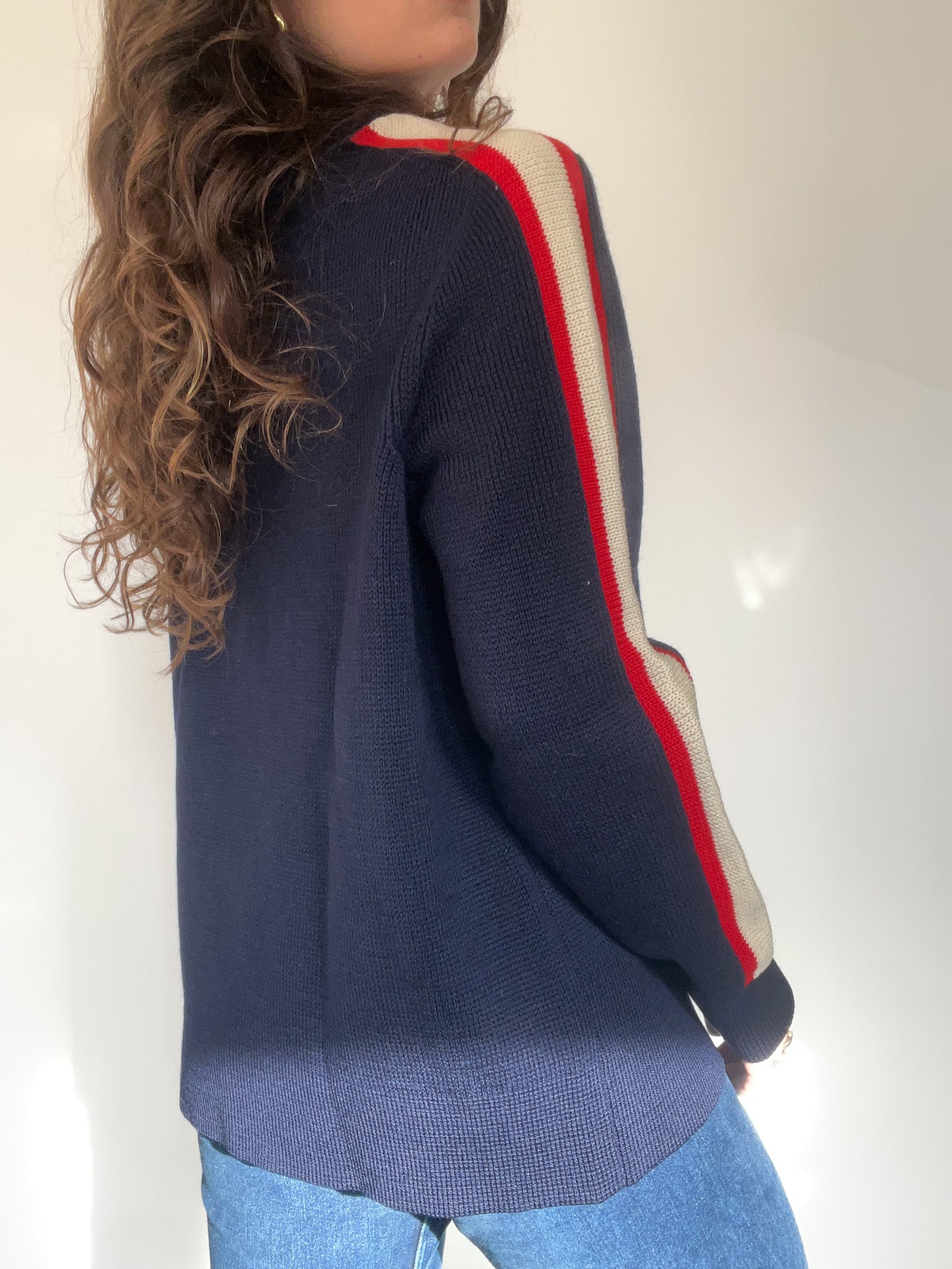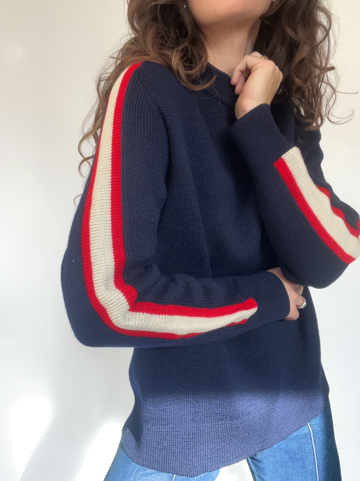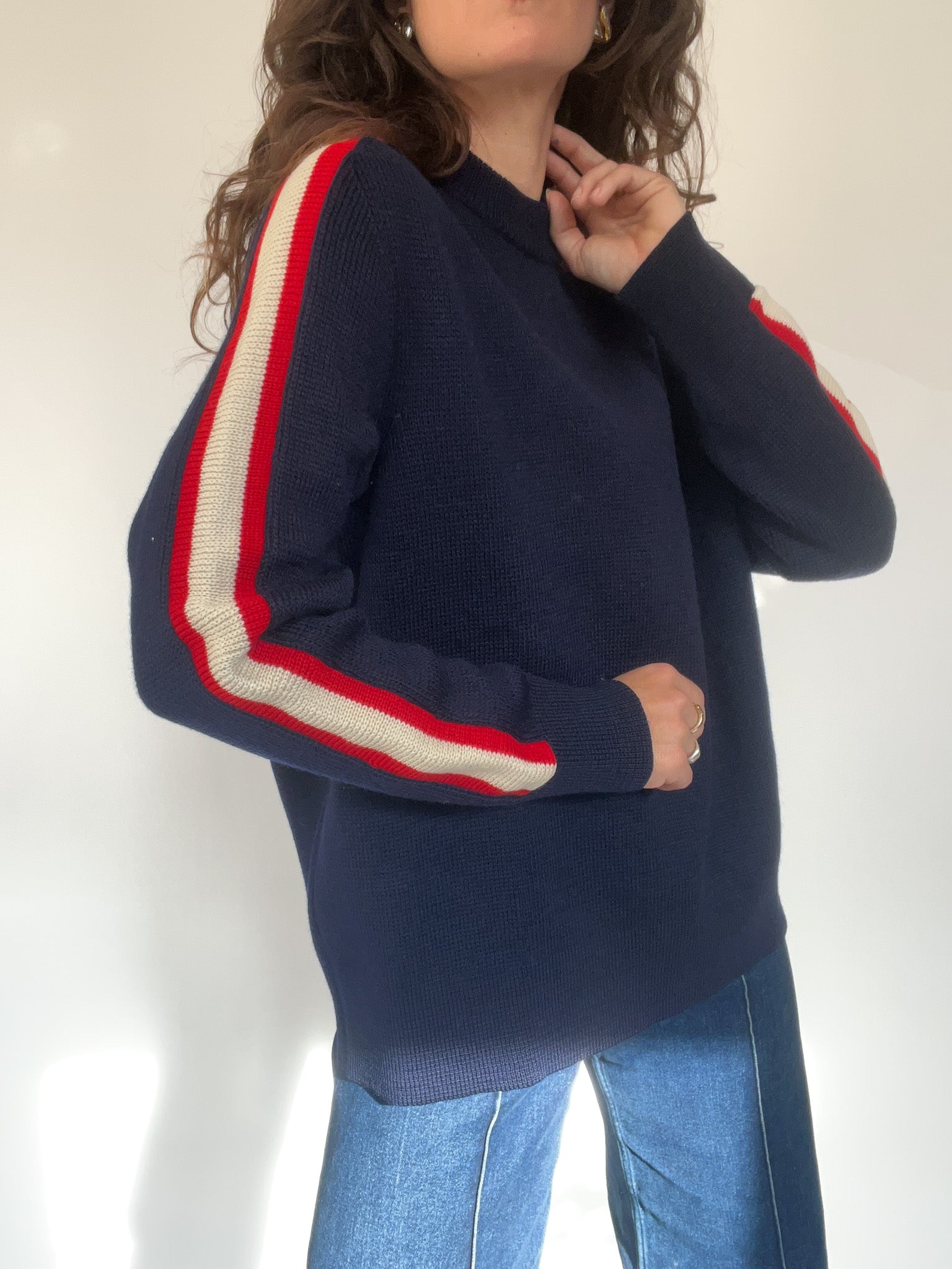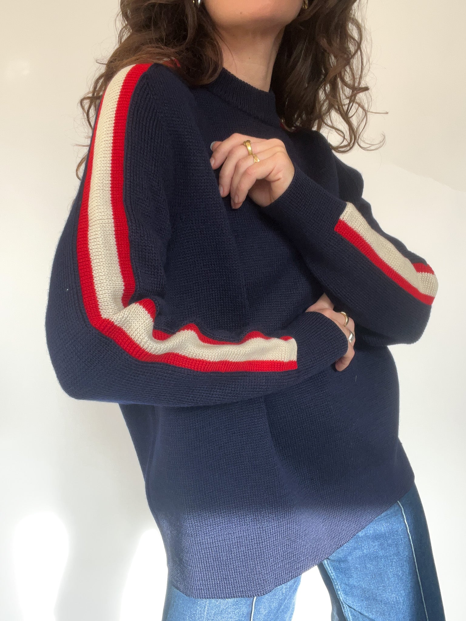 Vintage 80’s Navy Wool Crewneck with Racing Stripes