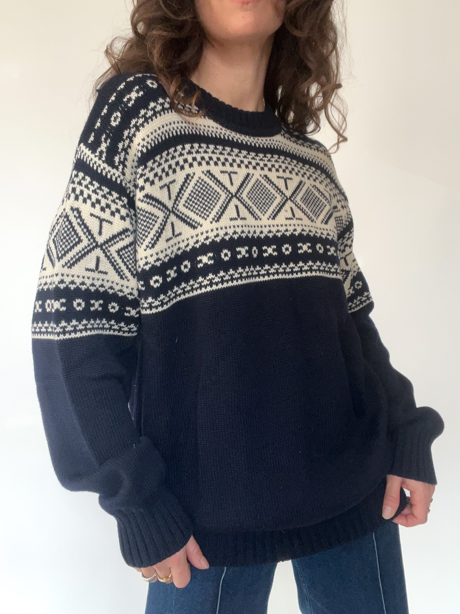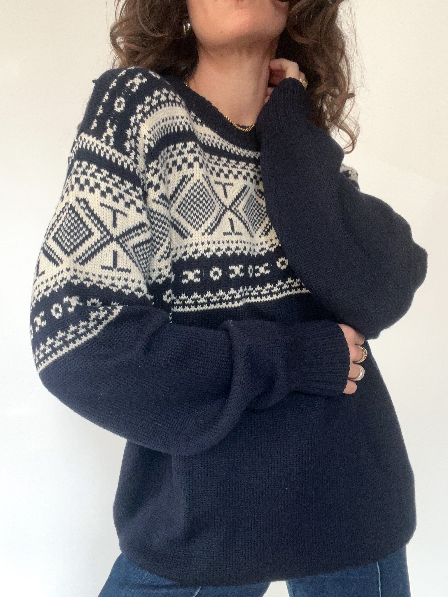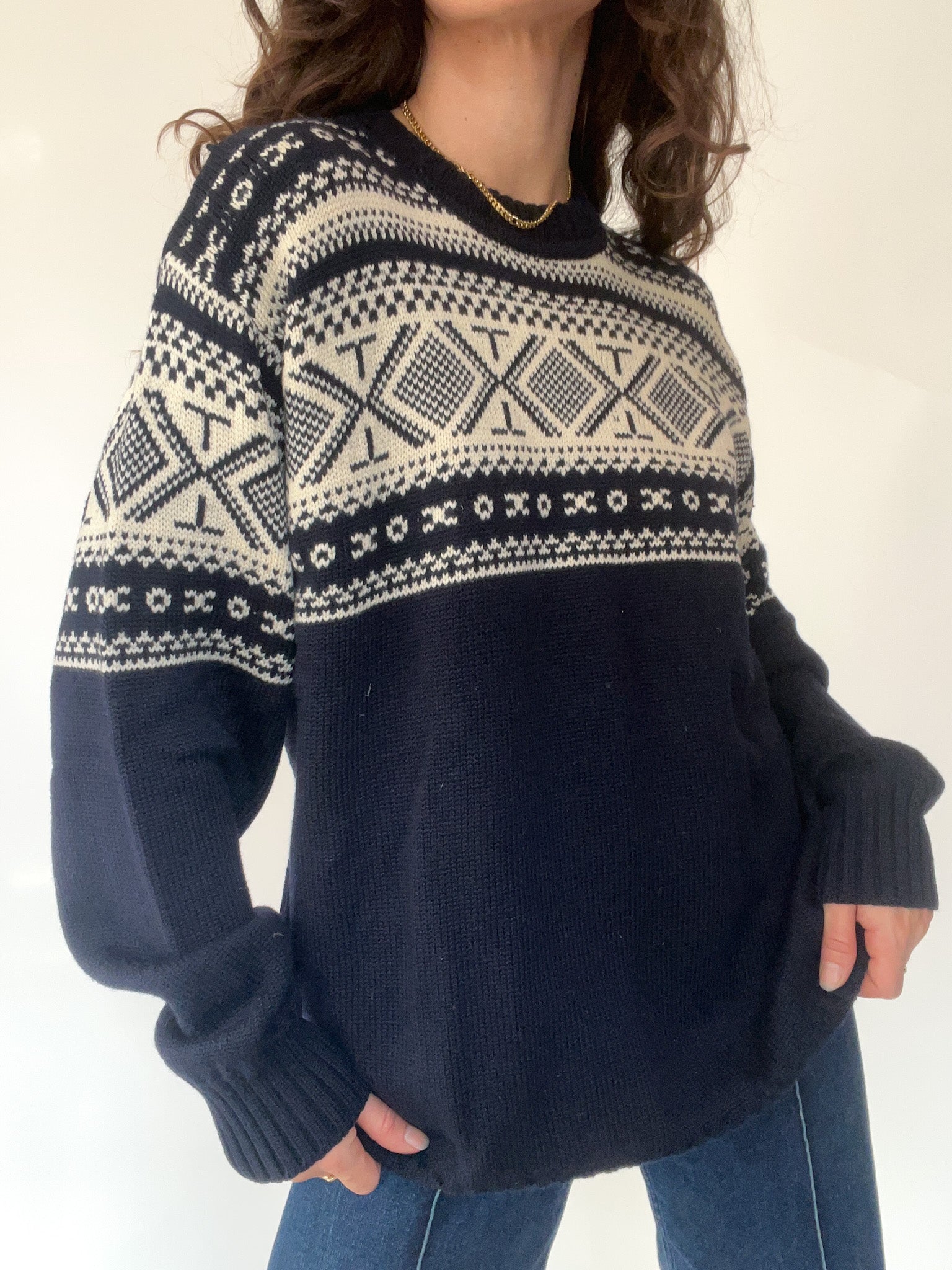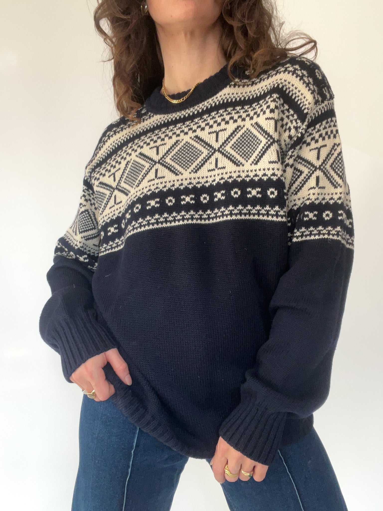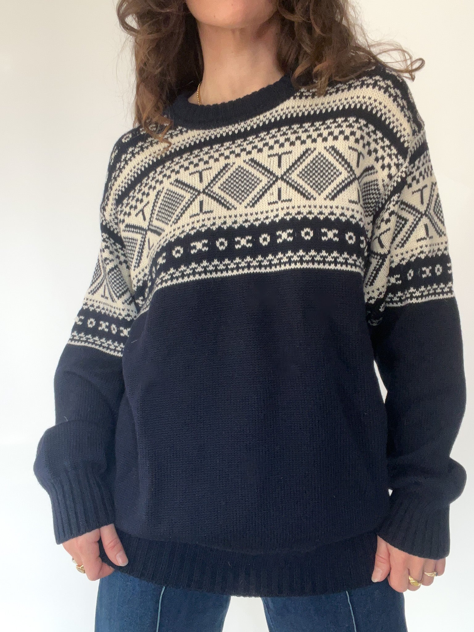 Vintage 80’s Navy Fair Isle Wool Sweater