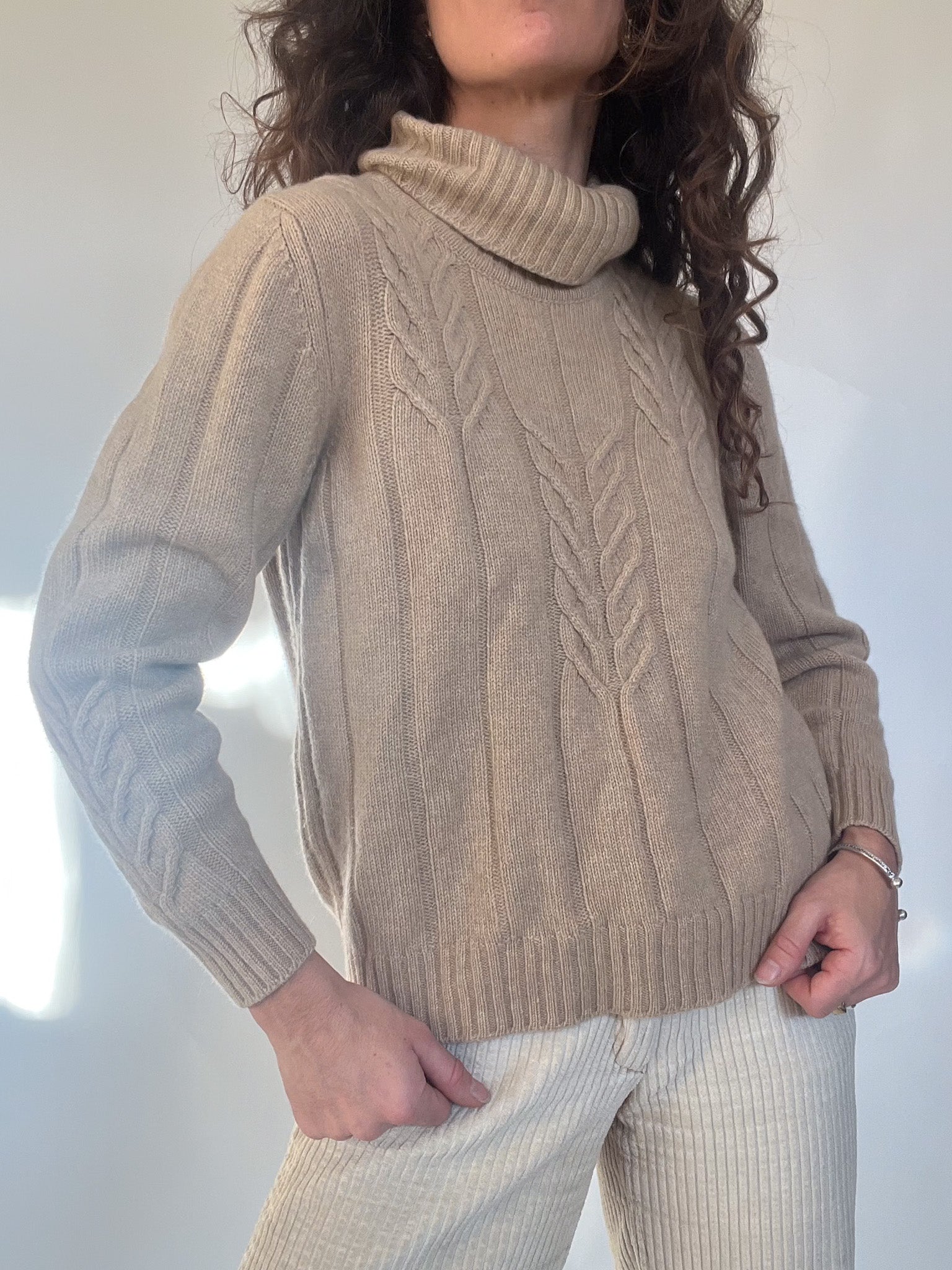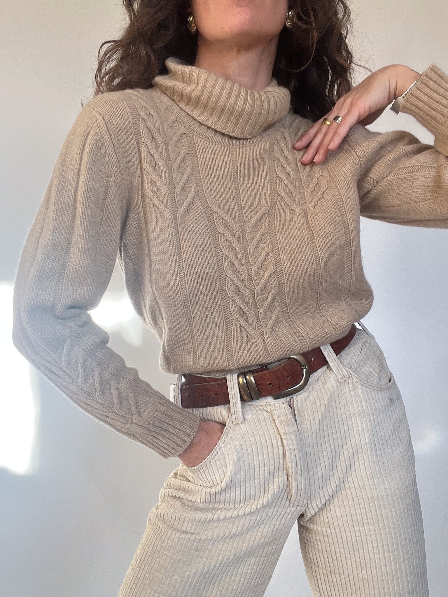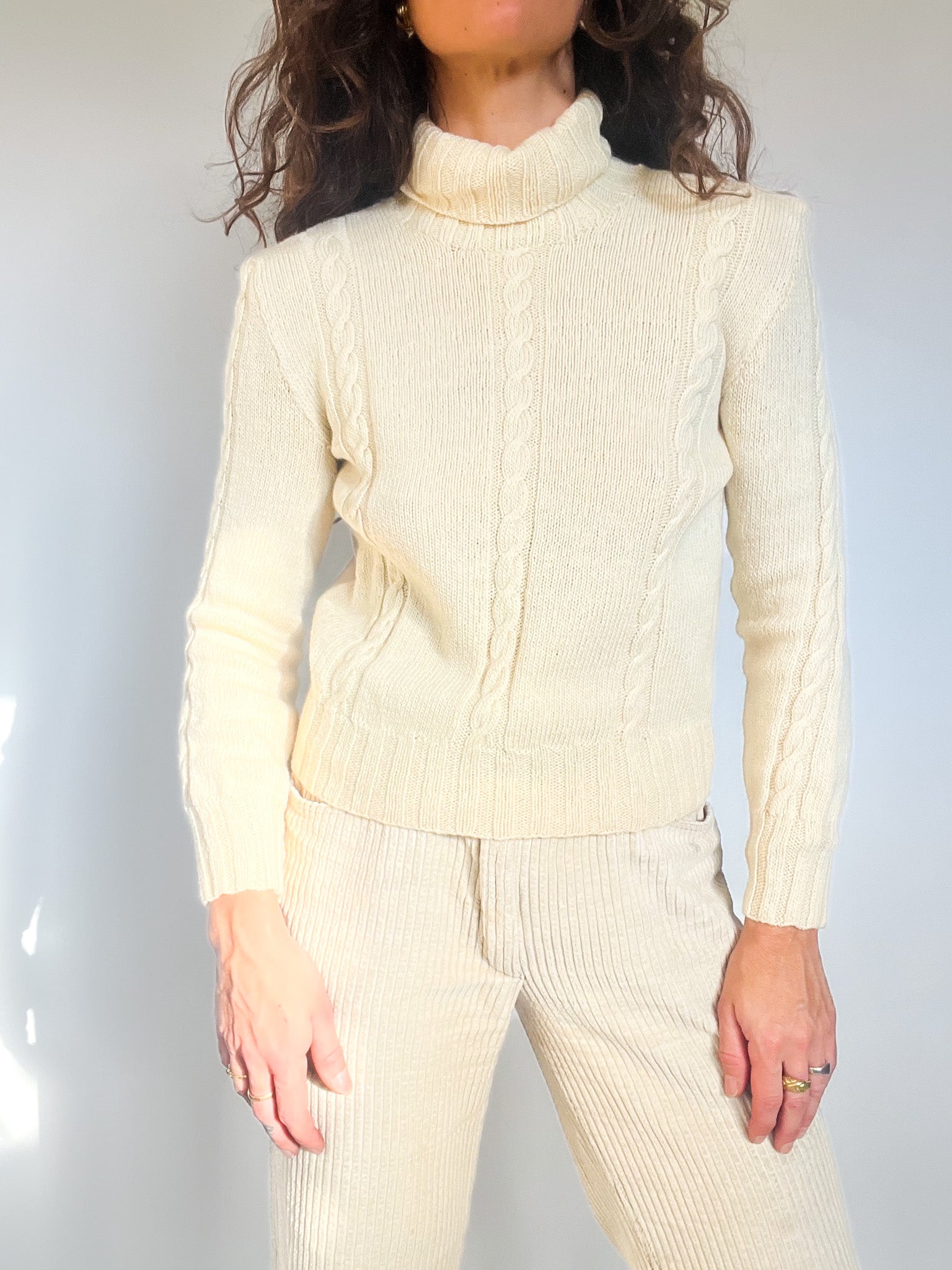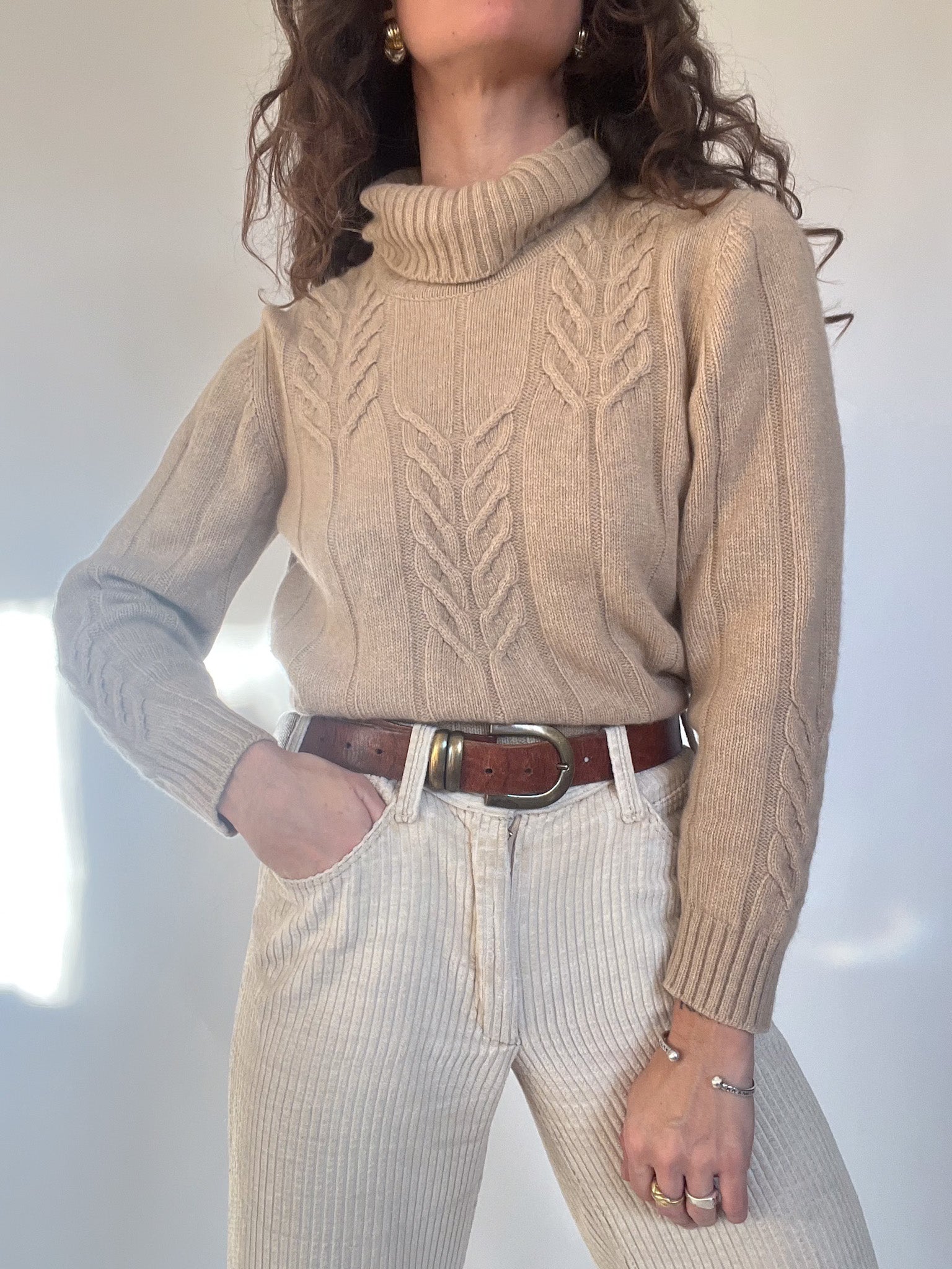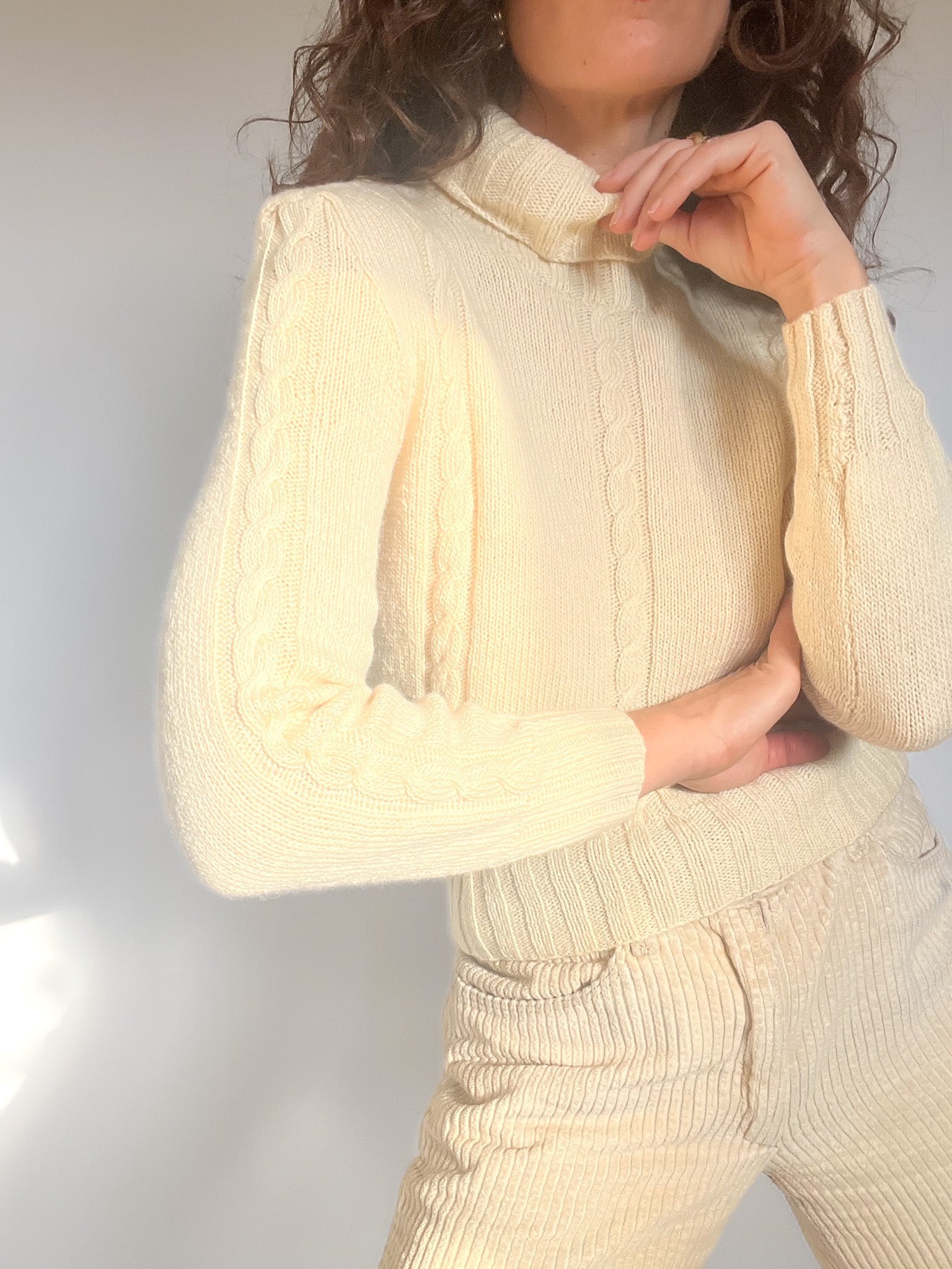 Vintage 90’s Cream Fitted Cable Knit Turtleneck
