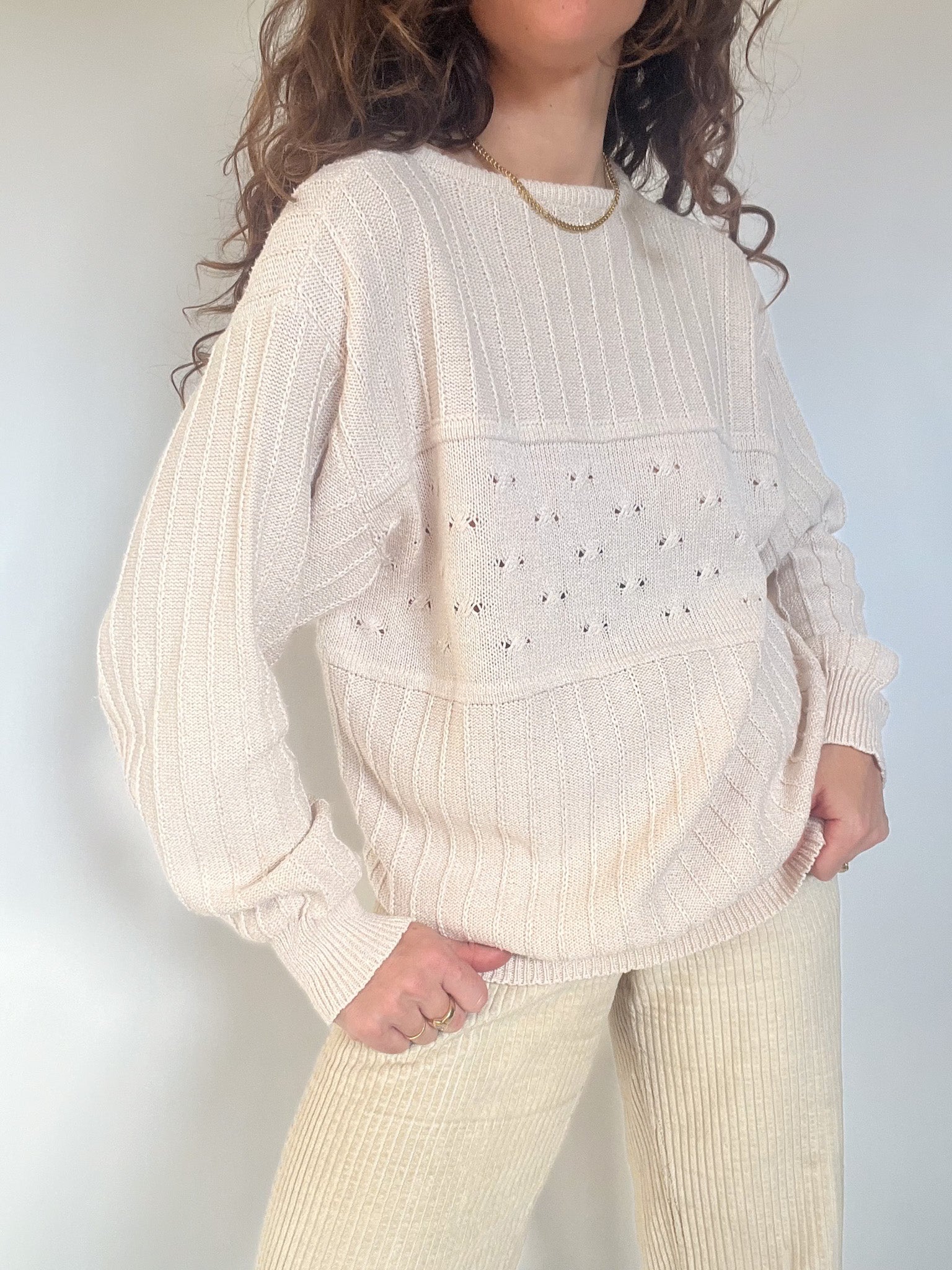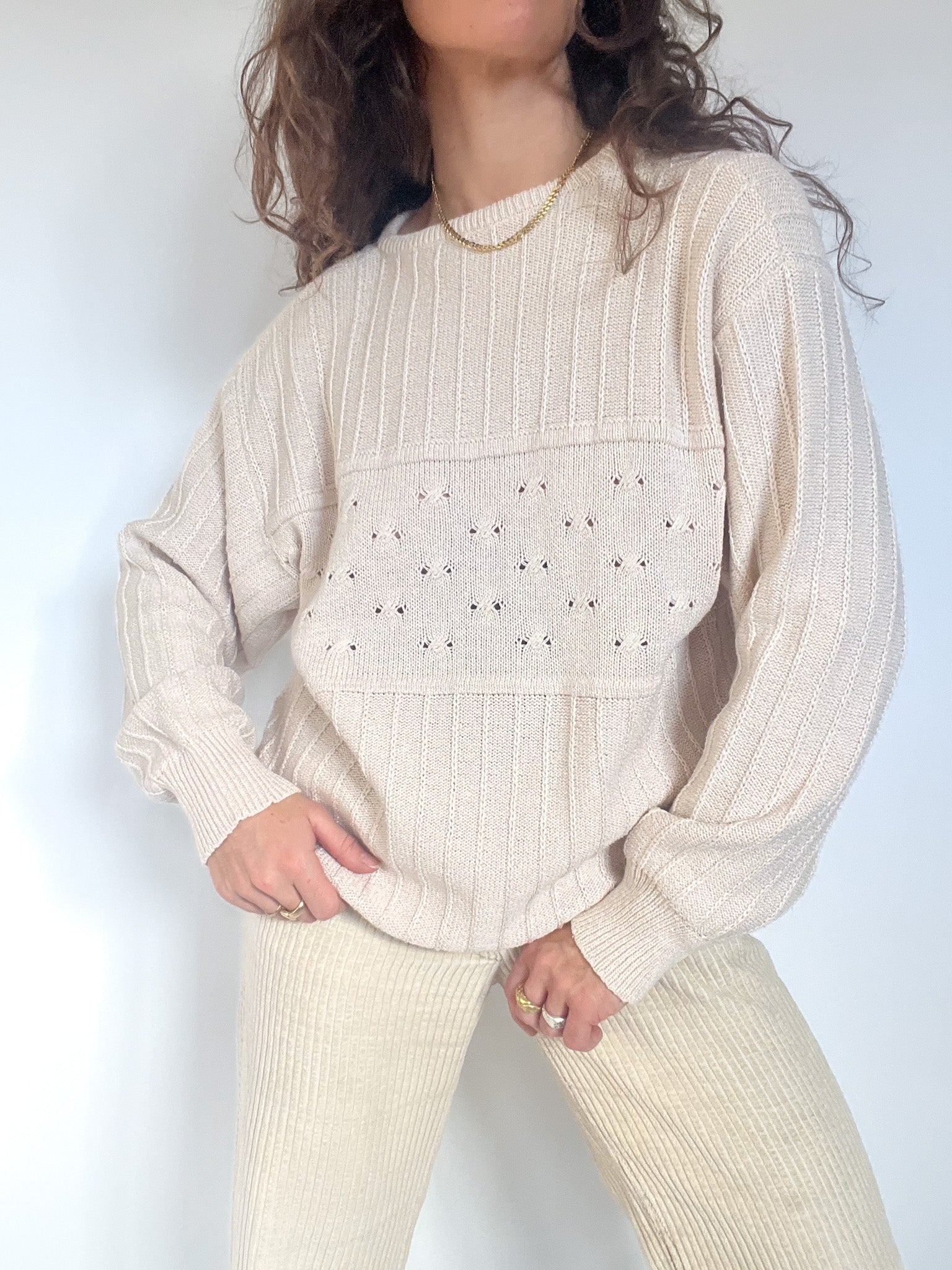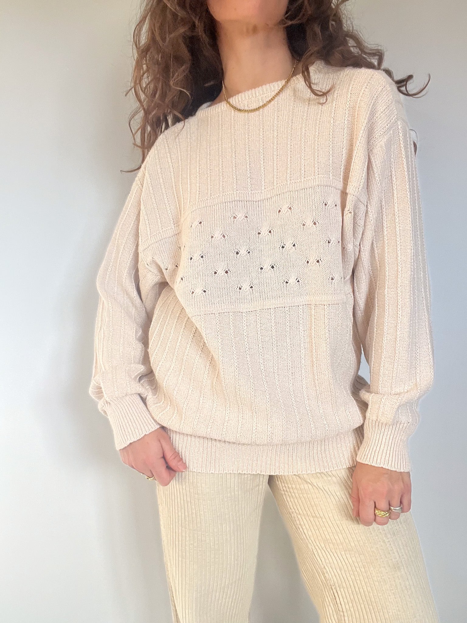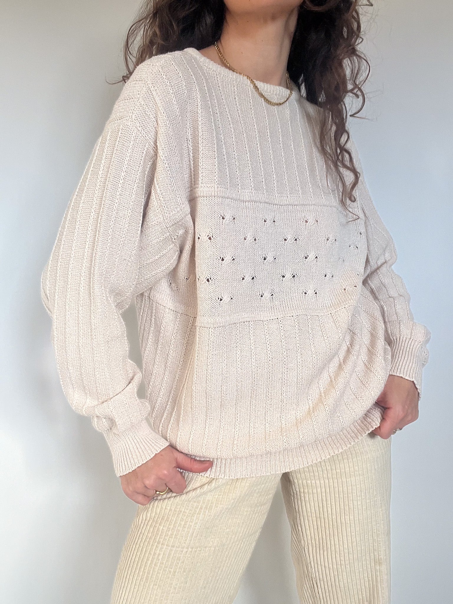 Vintage 90’s Beige Oversized Ribbed Pullover