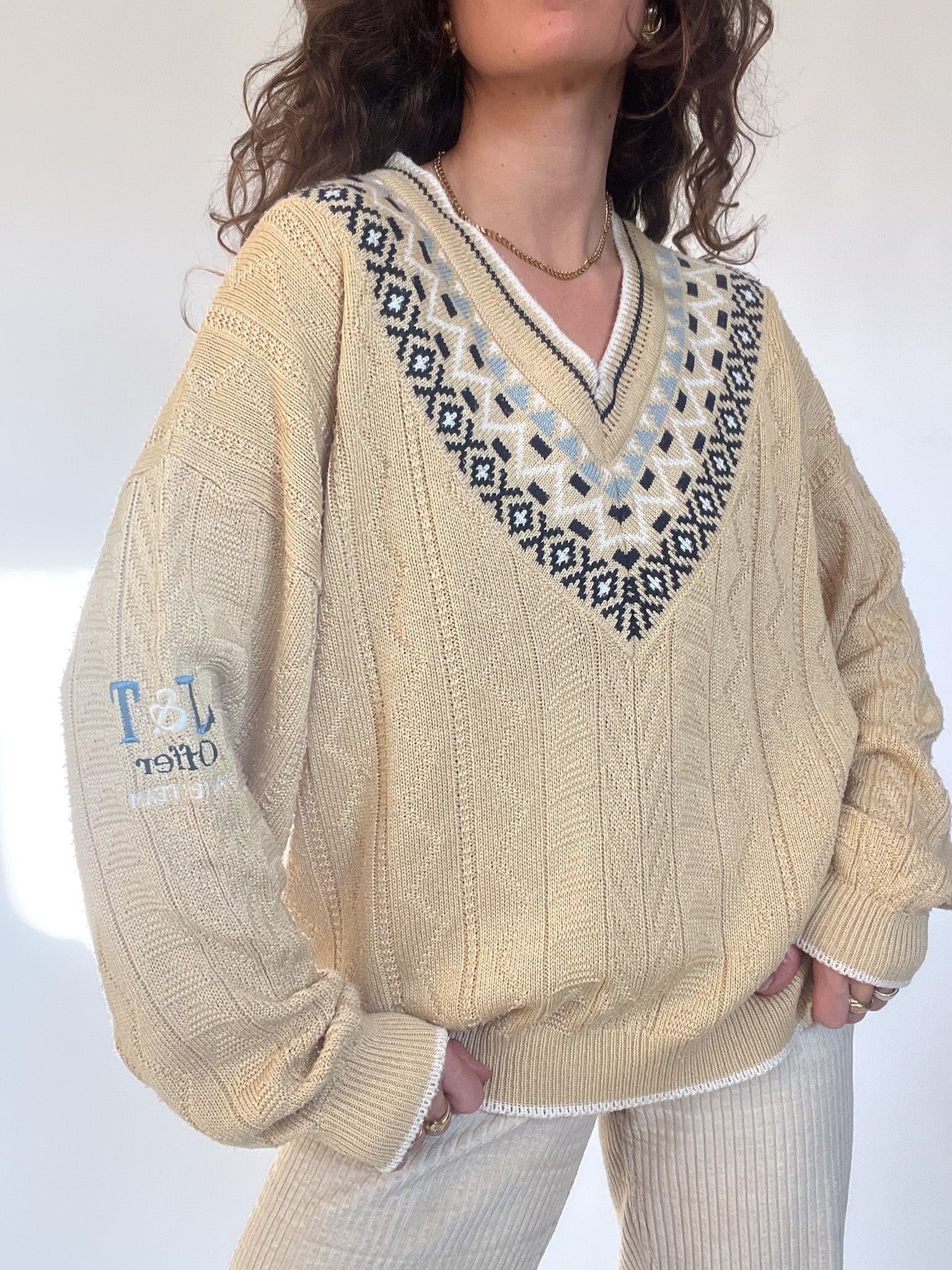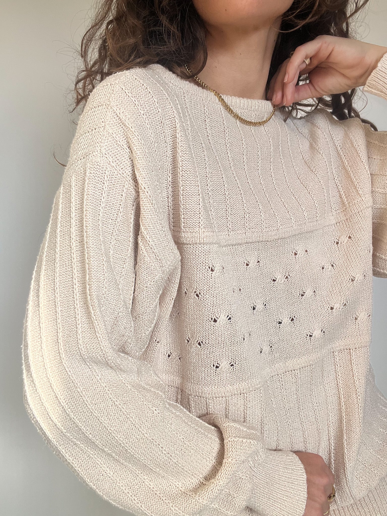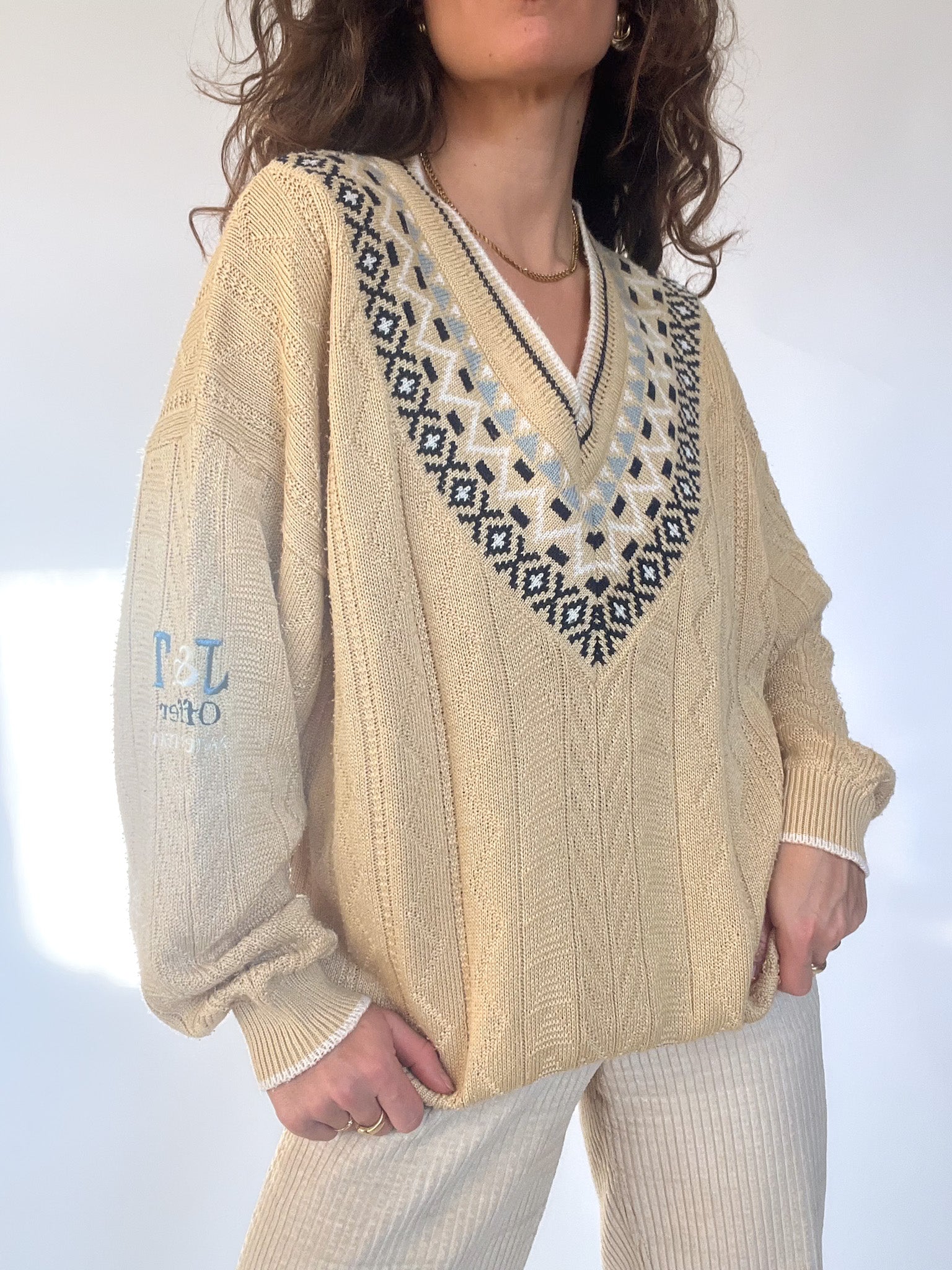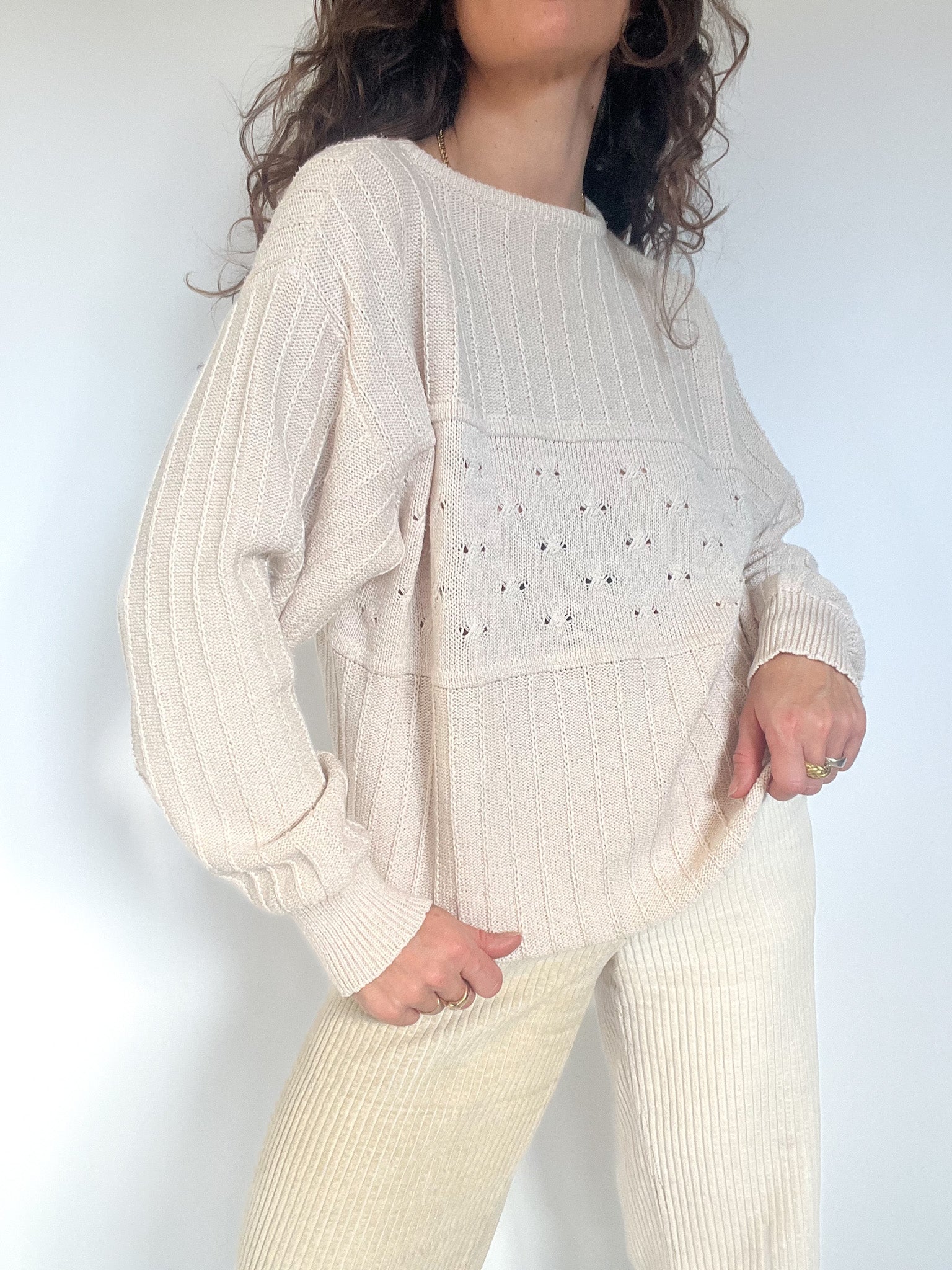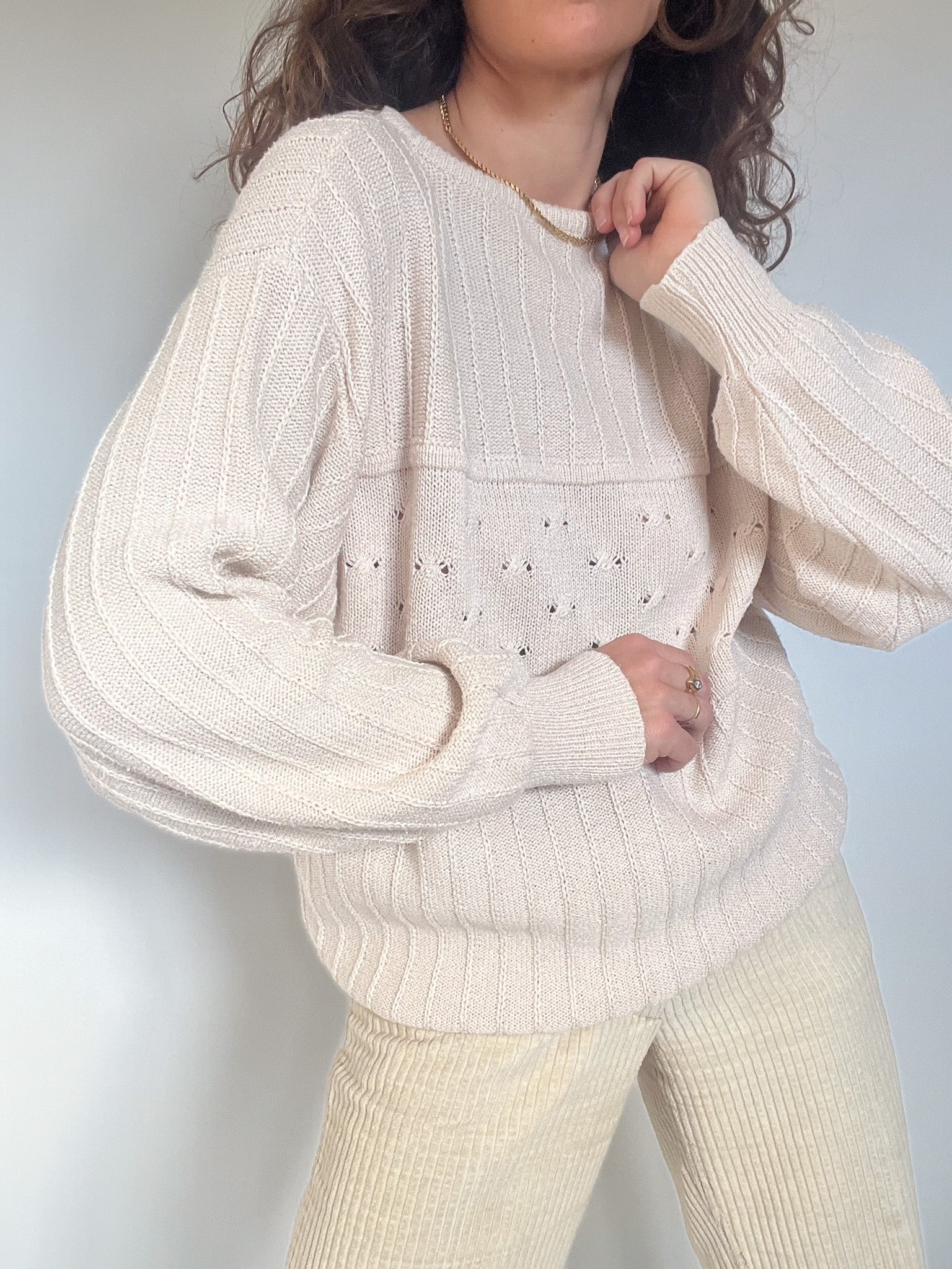 Vintage 90’s Beige Oversized Ribbed Pullover