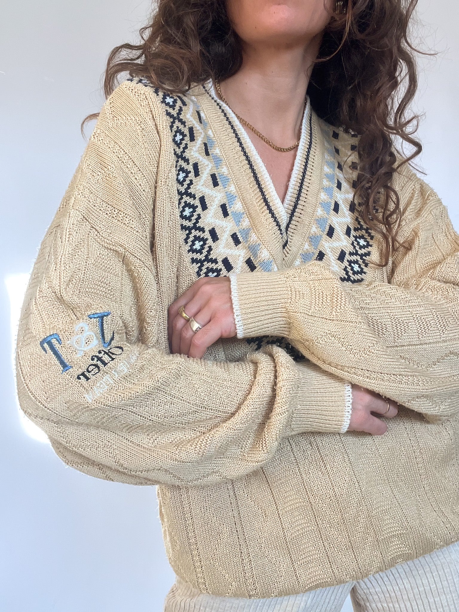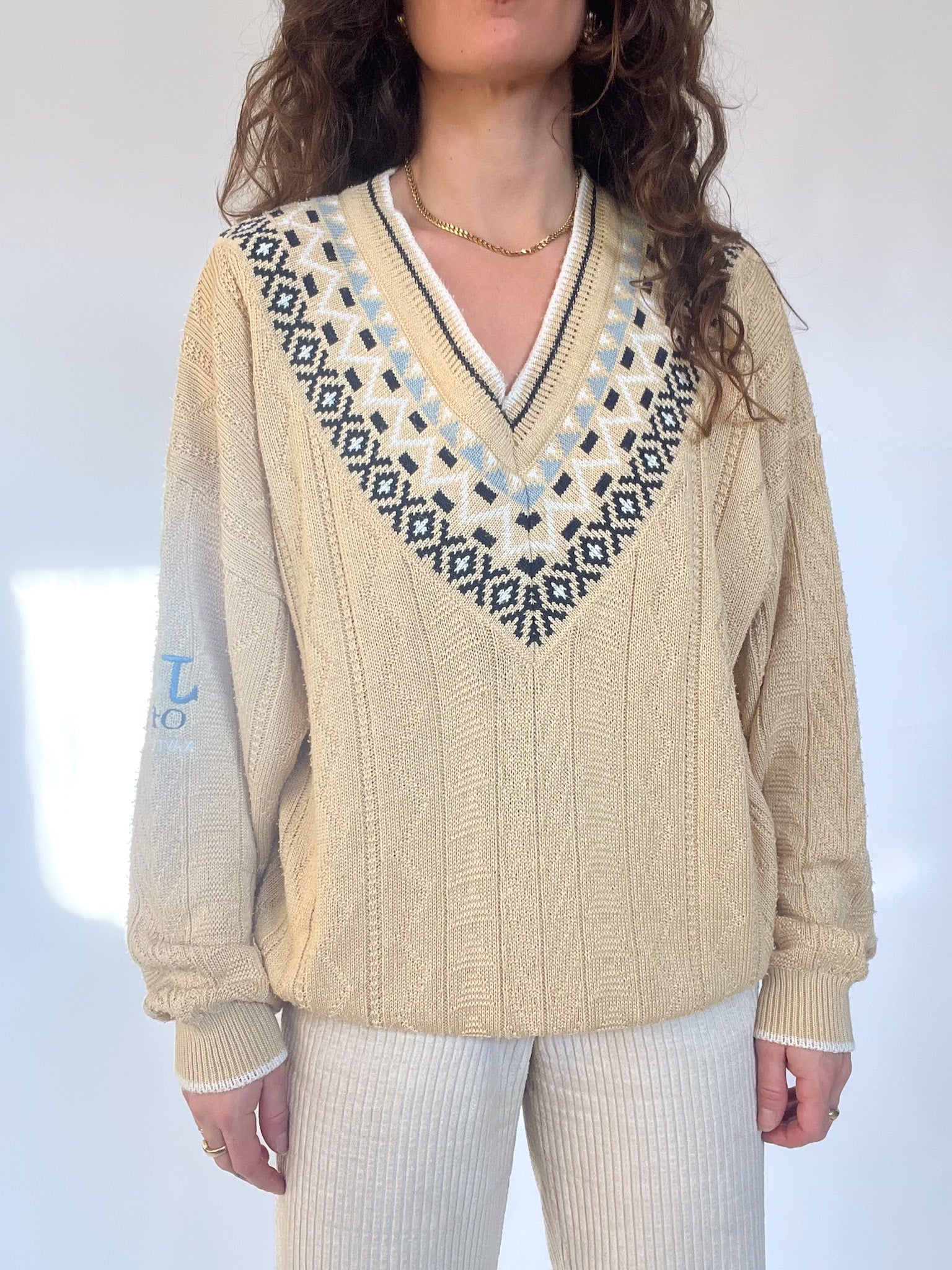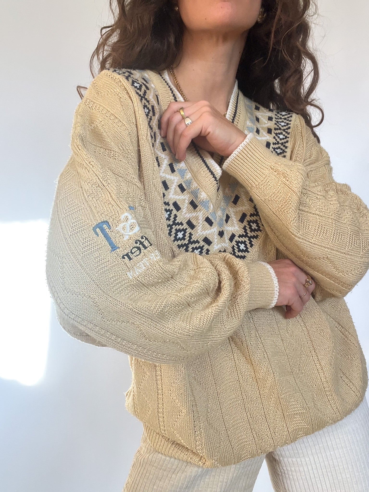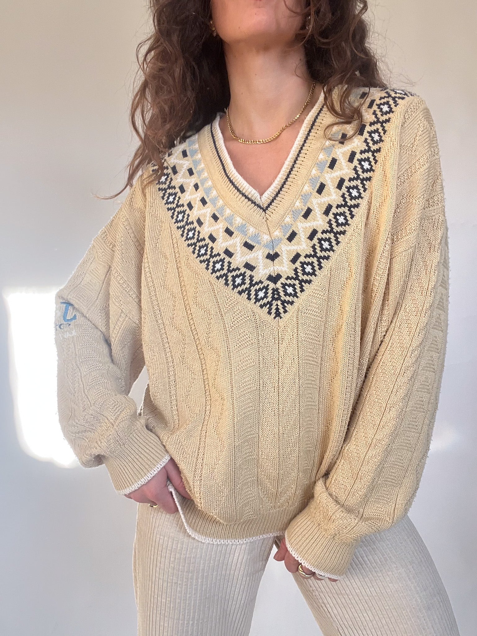 Vintage 90’s Beige Oversized Ribbed Pullover