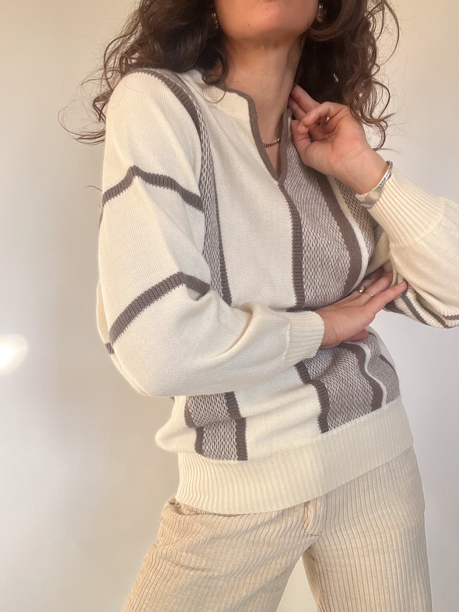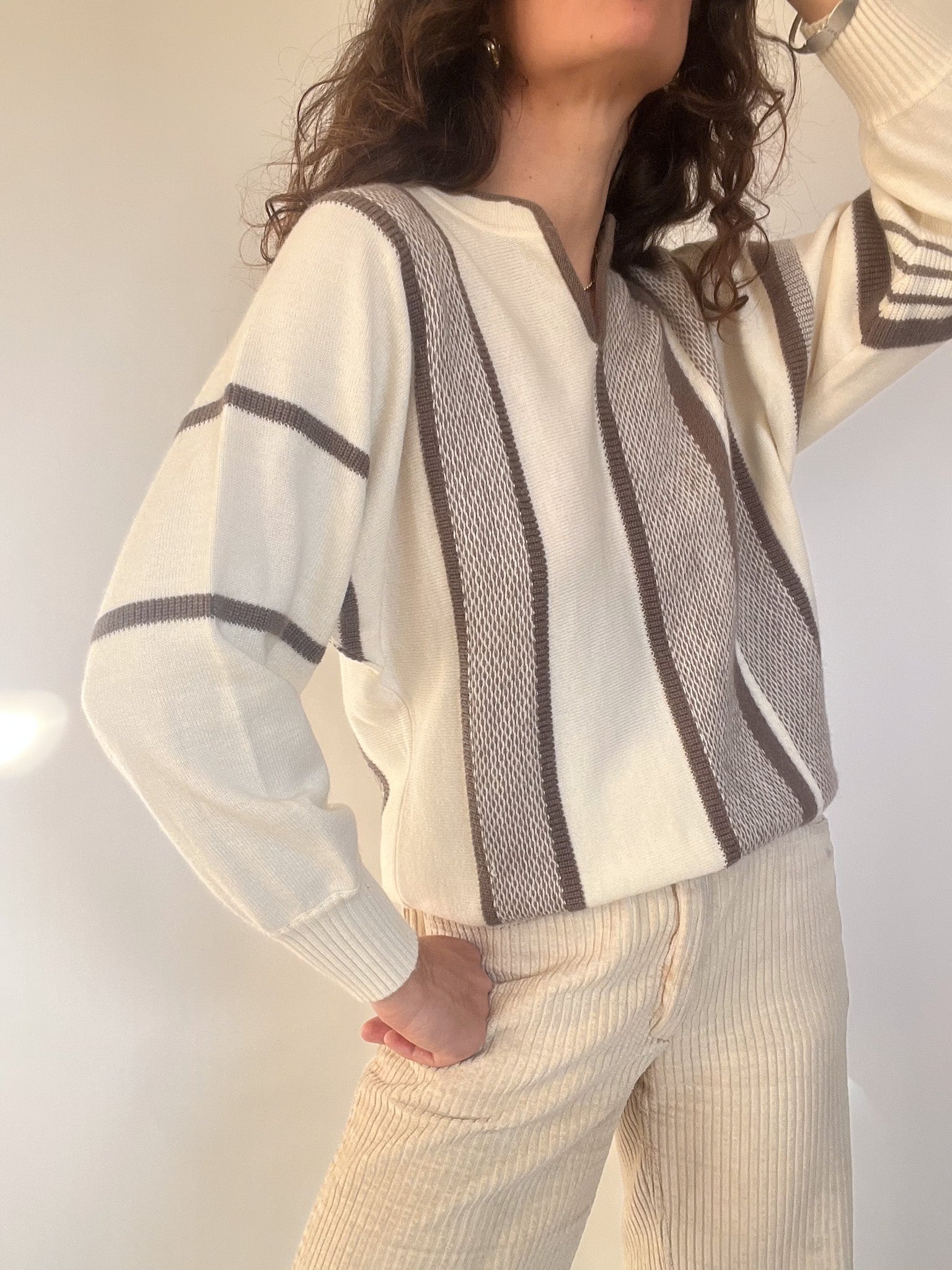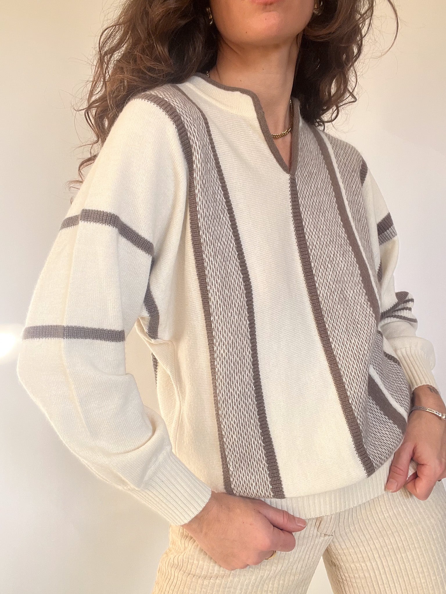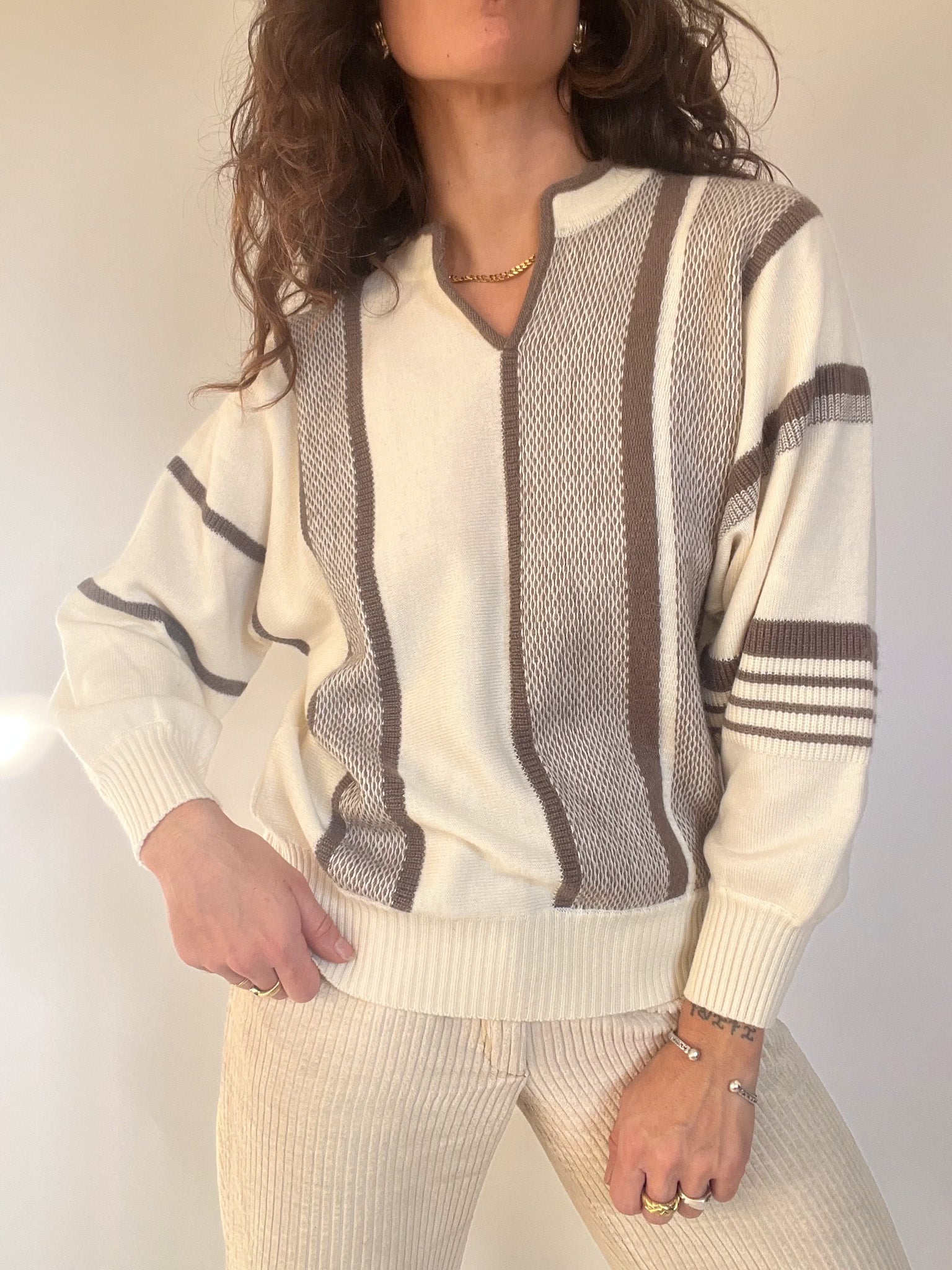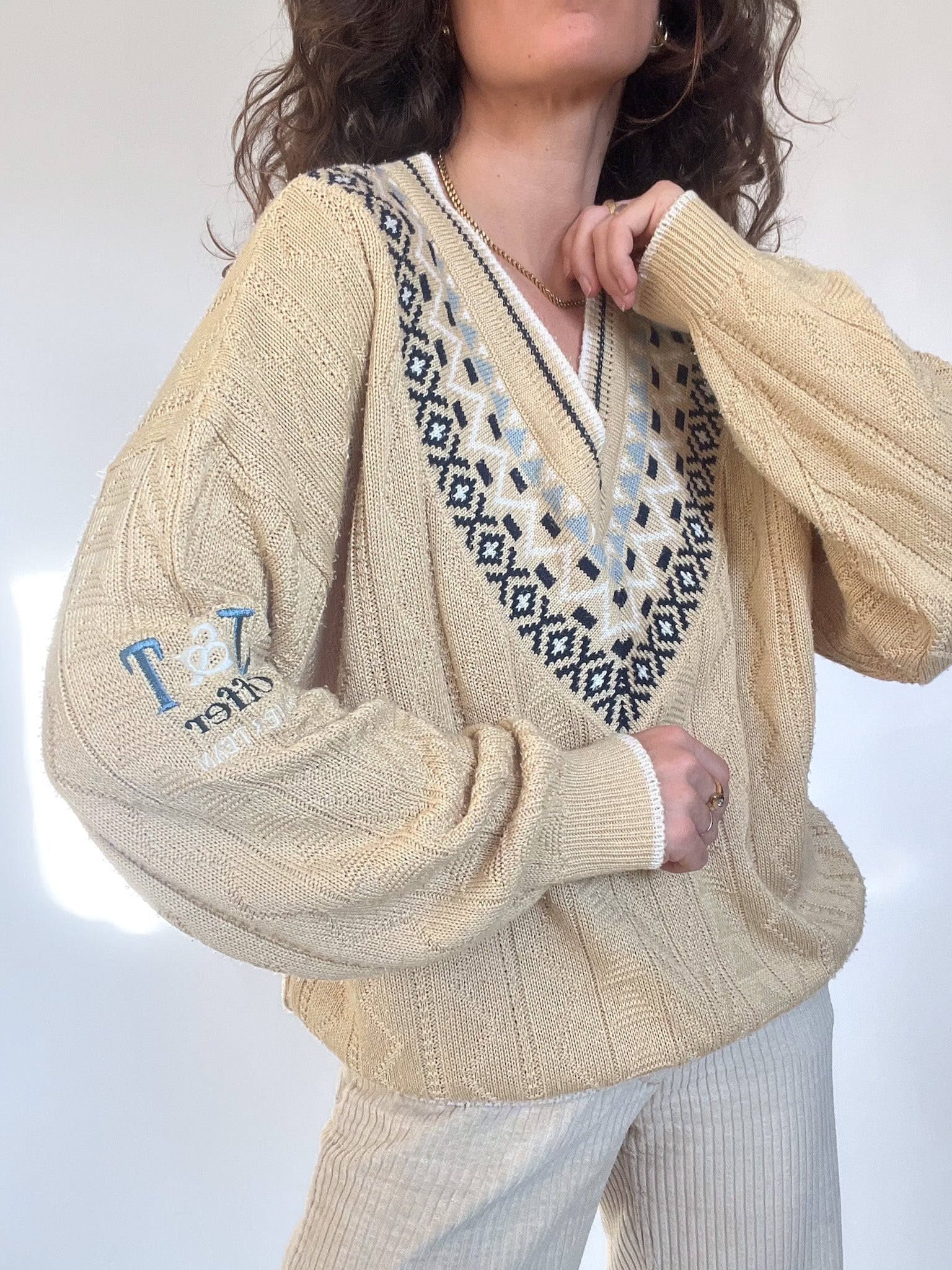 Vintage 90’s Beige Oversized Ribbed Pullover