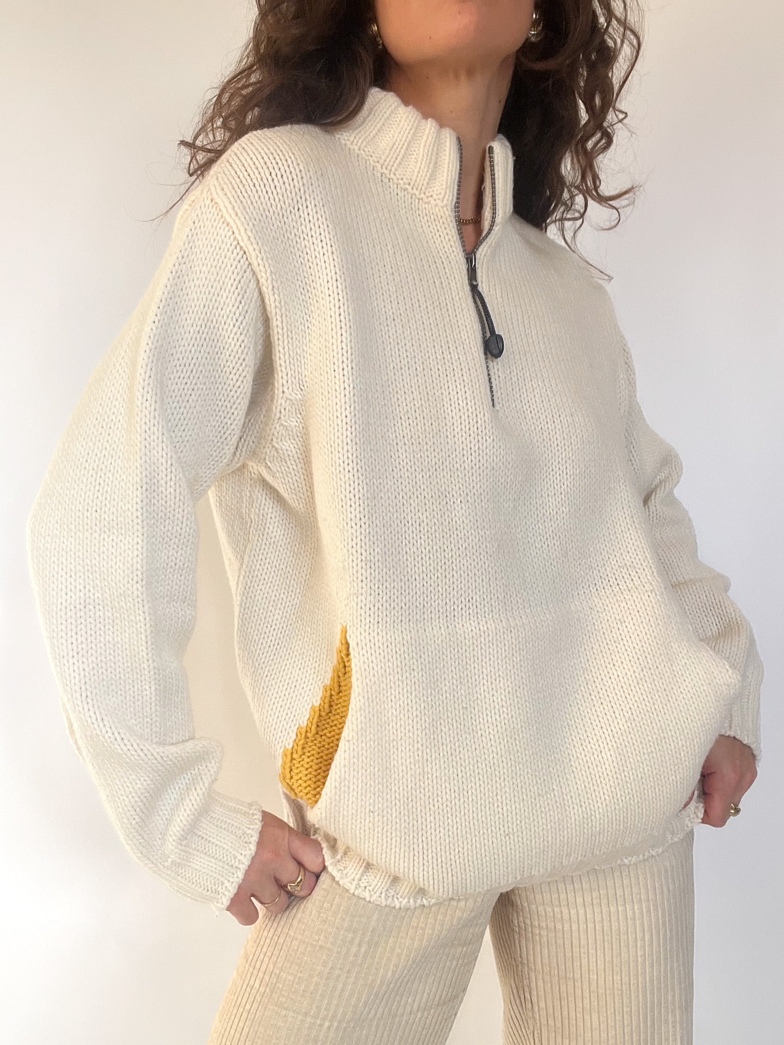 Vintage 90’s Colmar Cream Half-Zip Merino Sweater