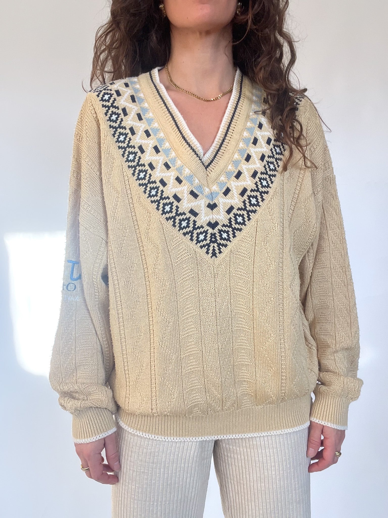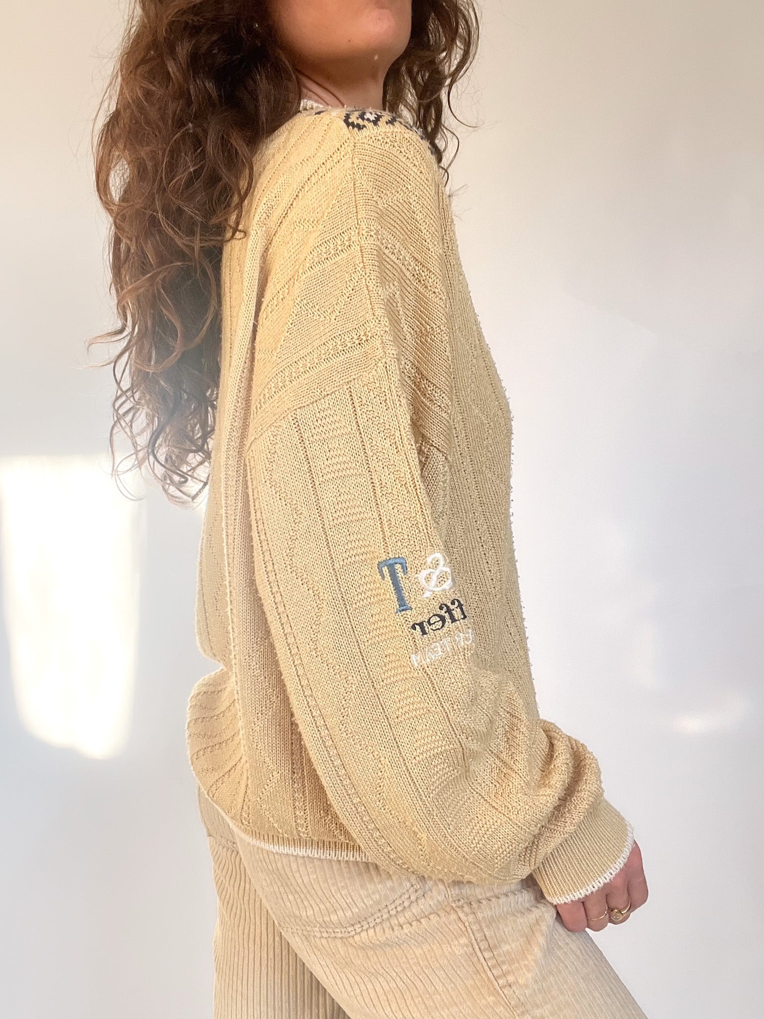 Vintage 90’s Pale Yellow & Navy Detailed V-Neck Sweater