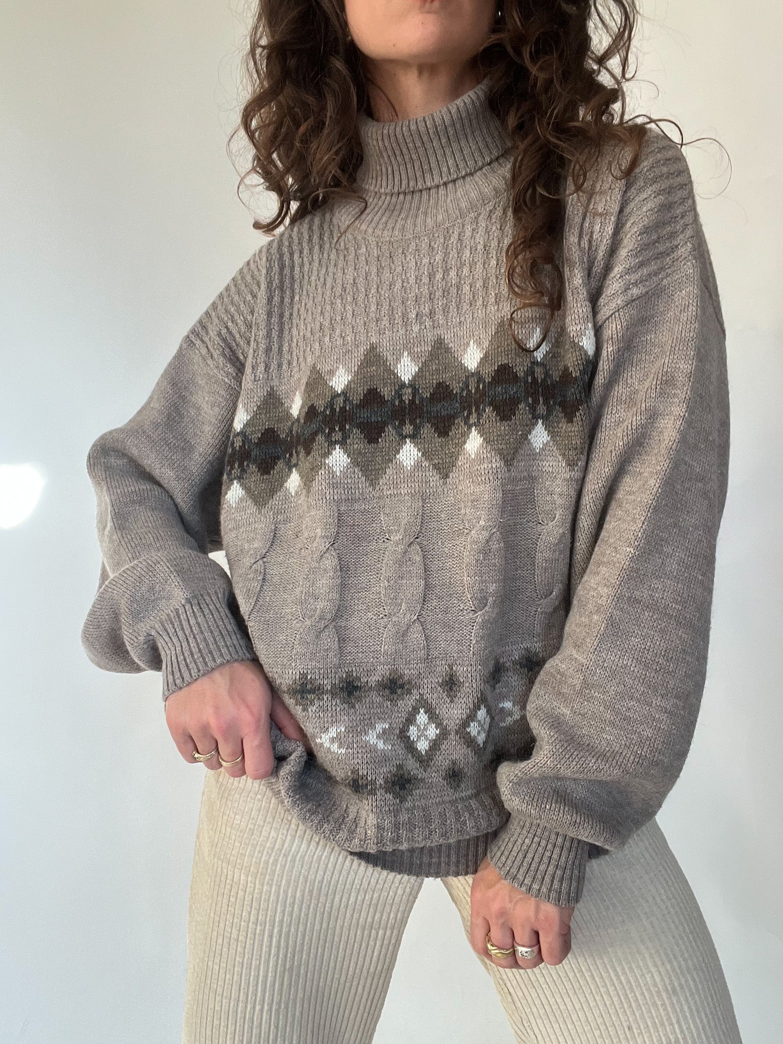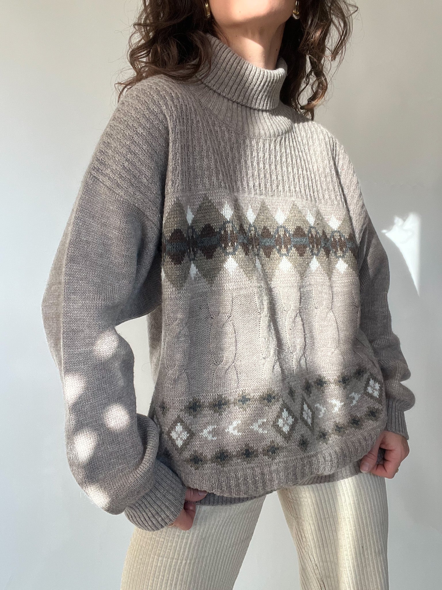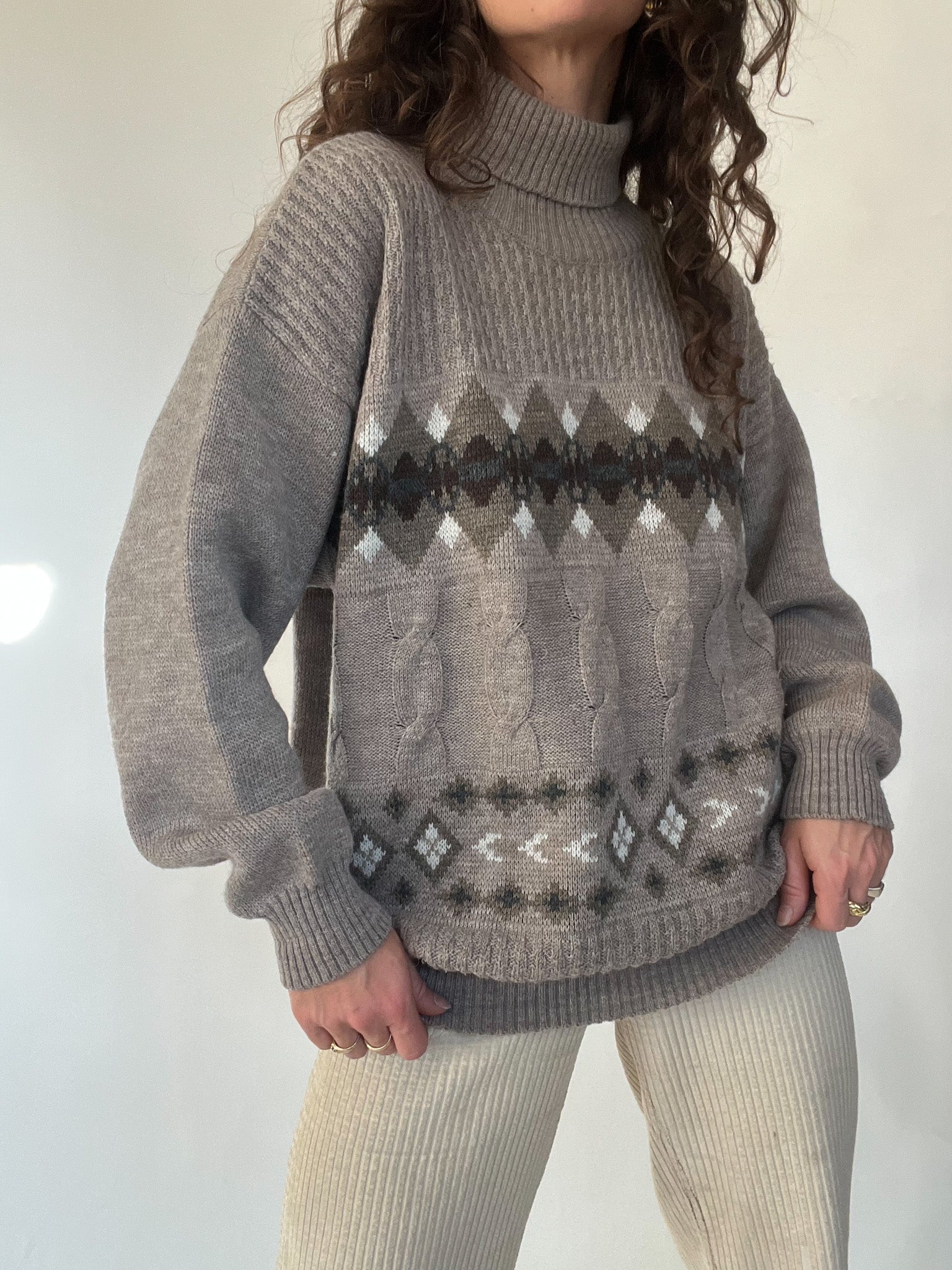 Vintage 80’s Taupe Winter Knit Turtleneck Pullover