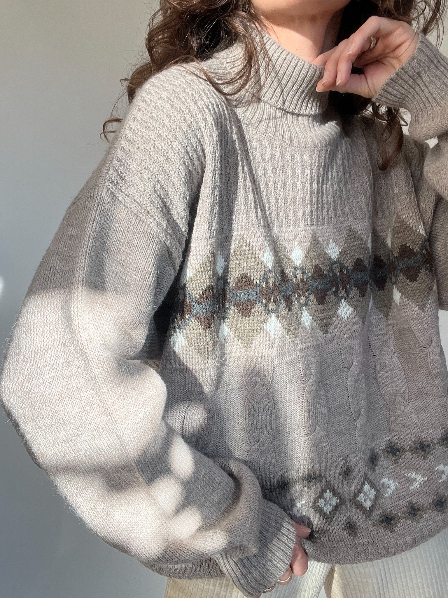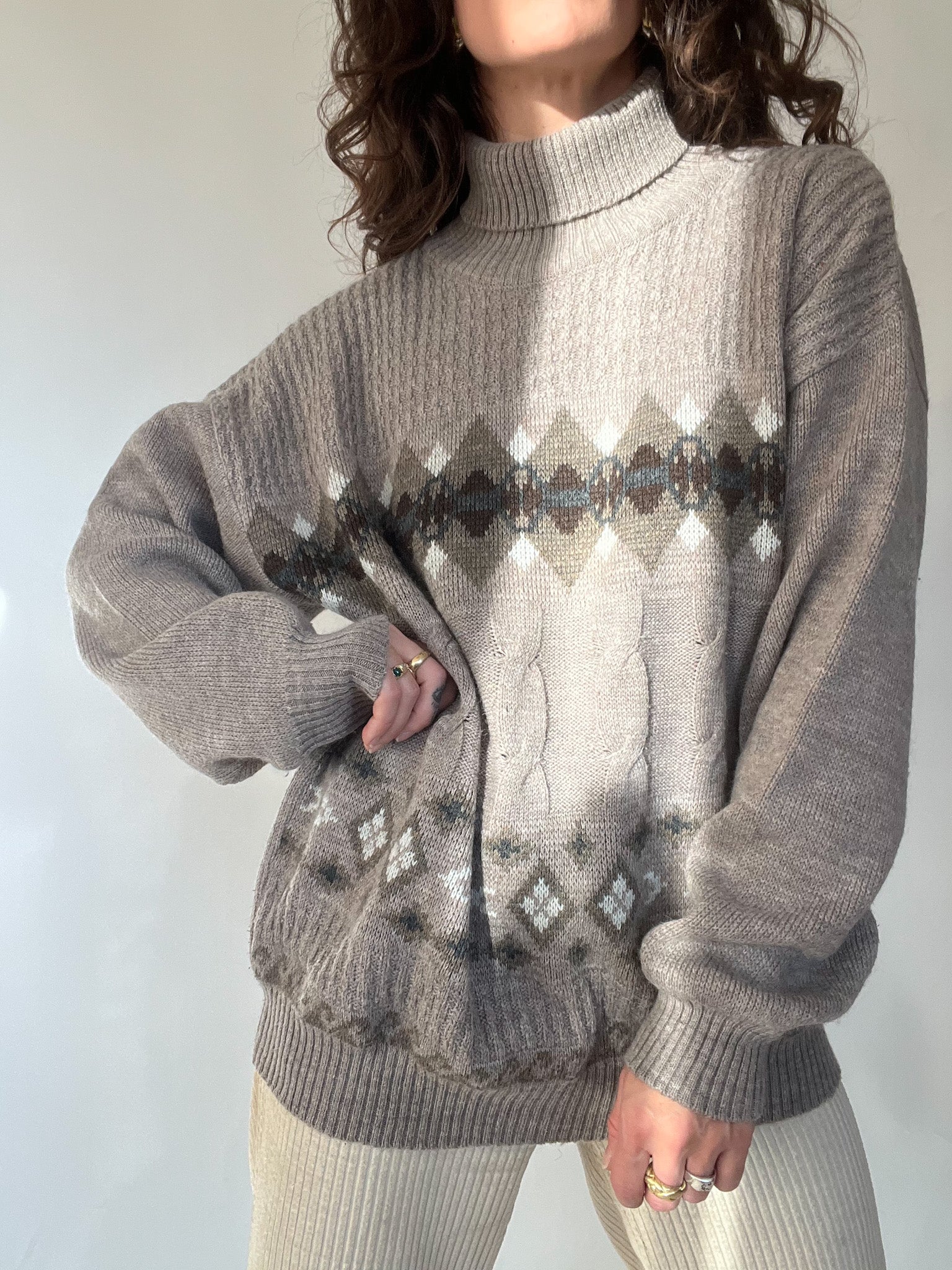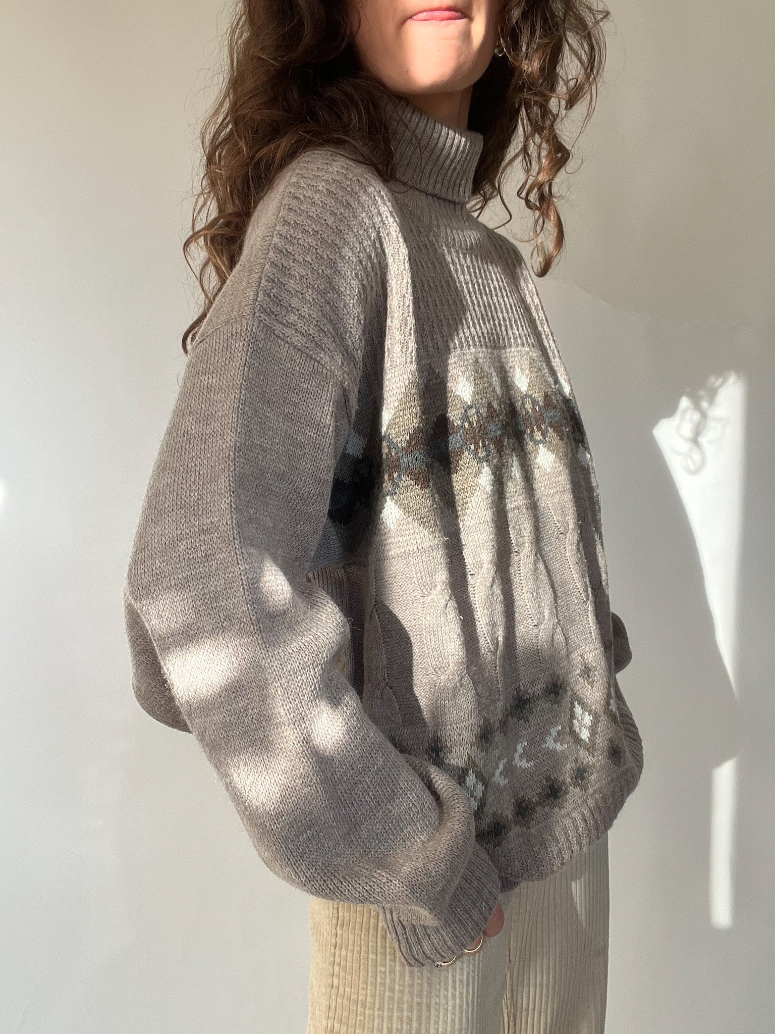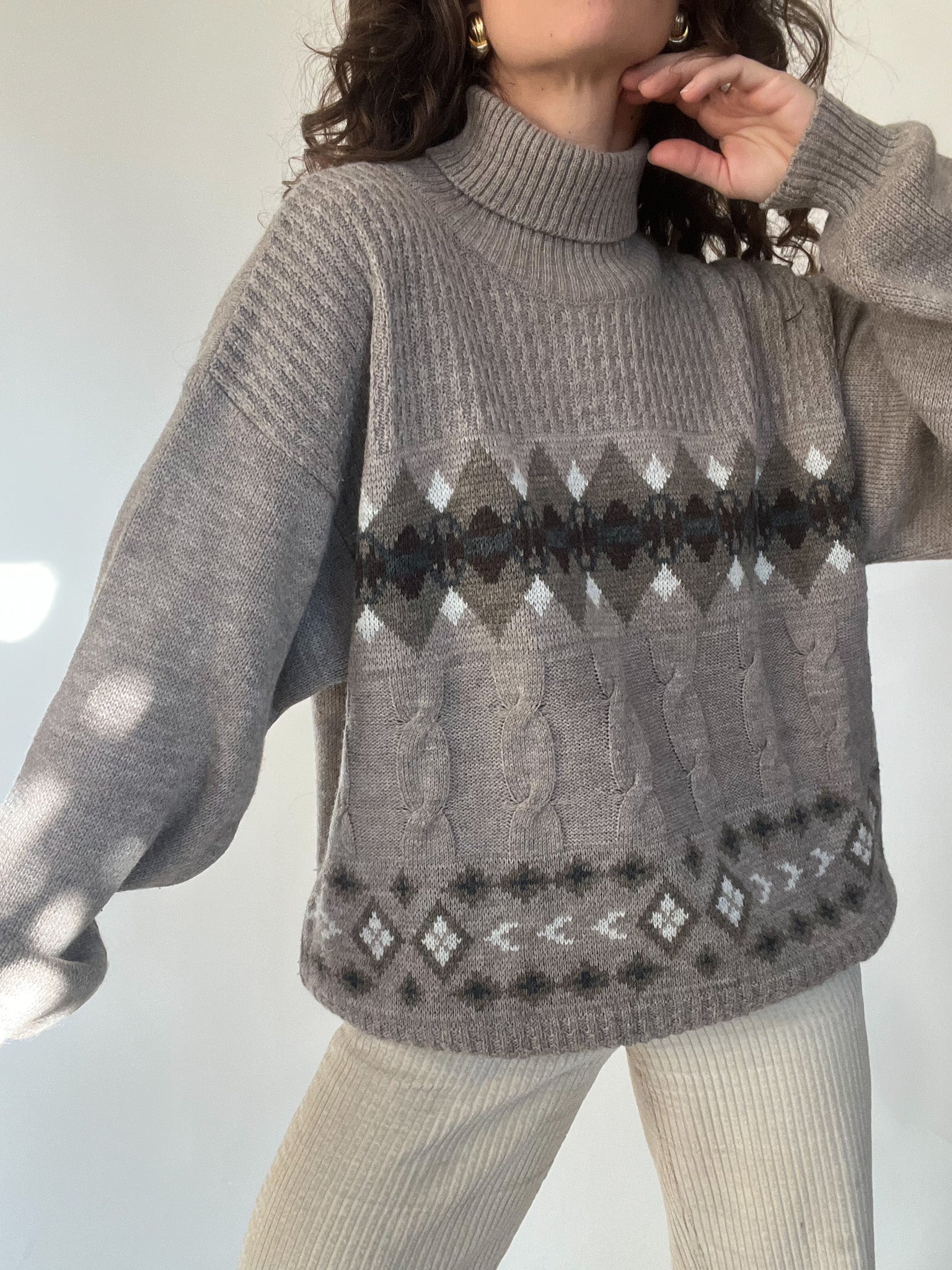 Vintage 80’s Taupe Winter Knit Turtleneck Pullover