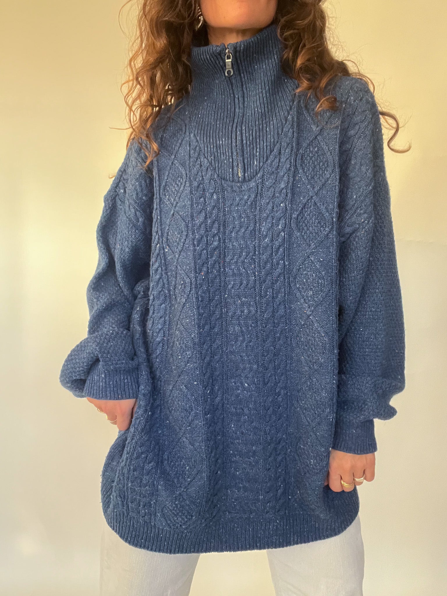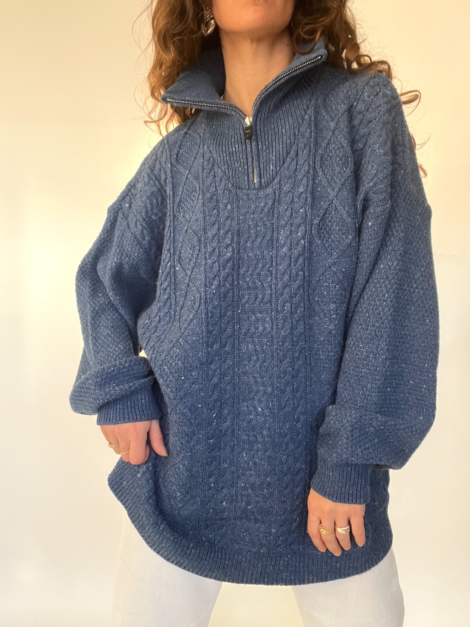 Vintage 90’s Blue Half-Zip Oversized Pullover