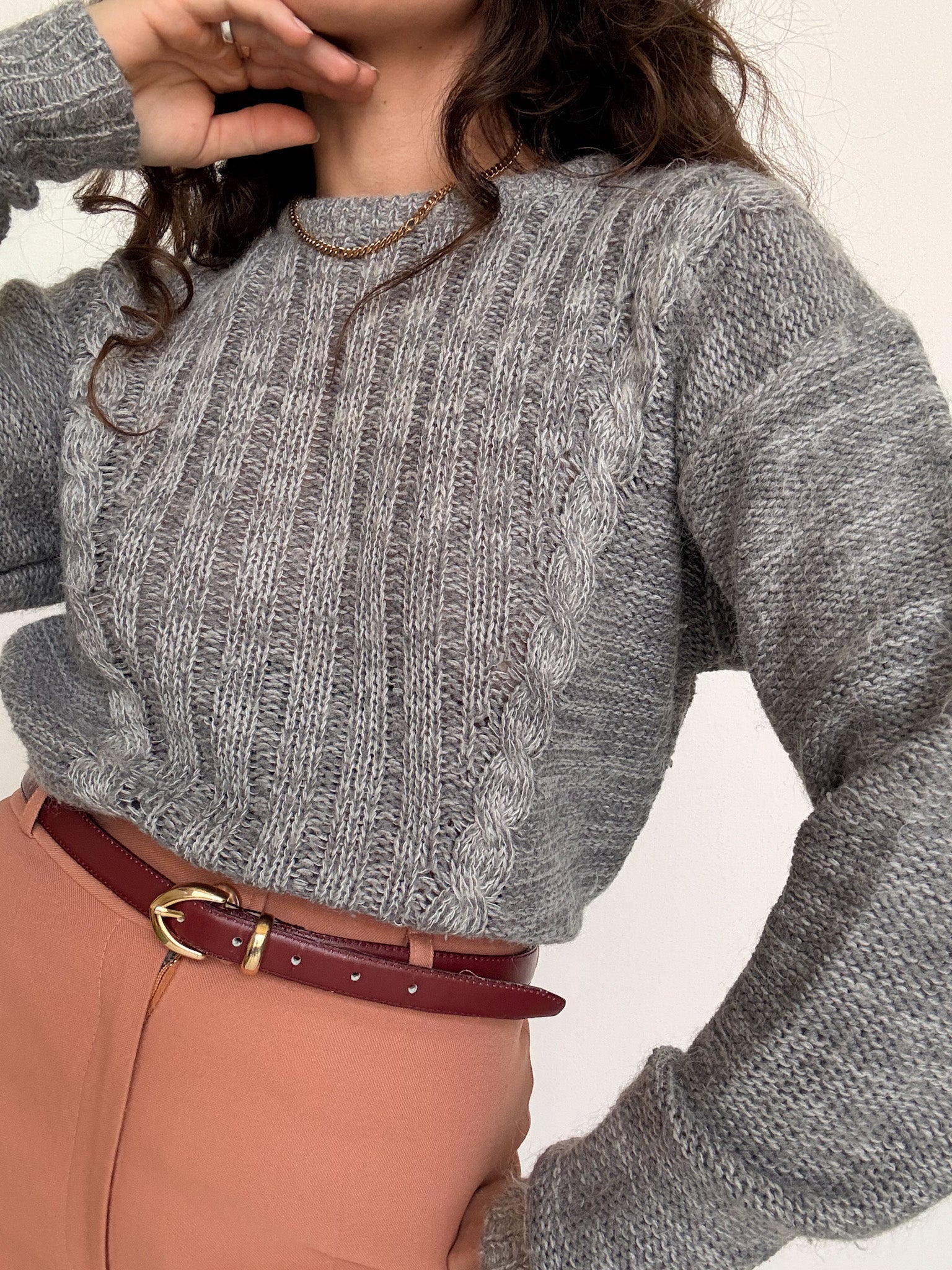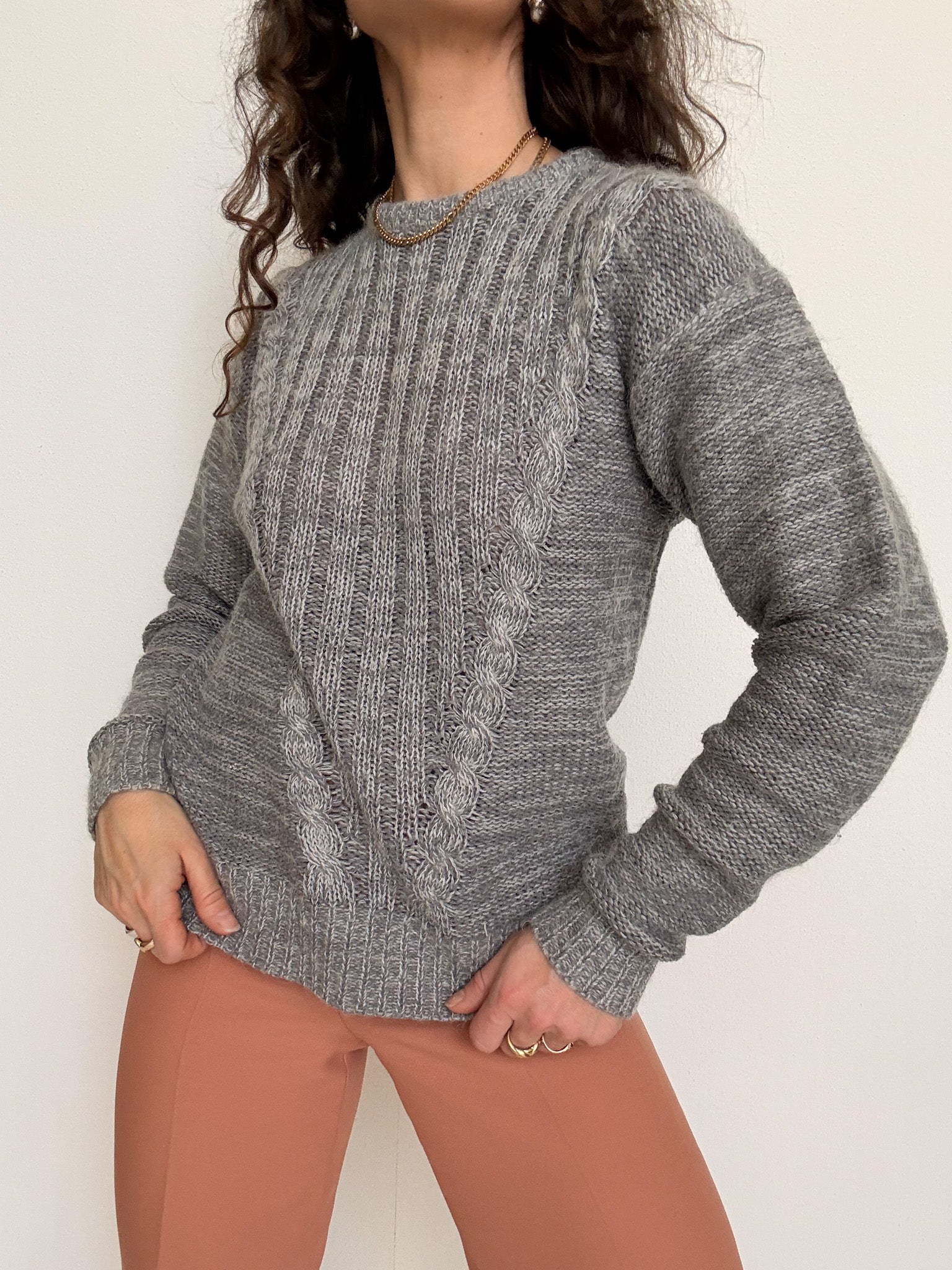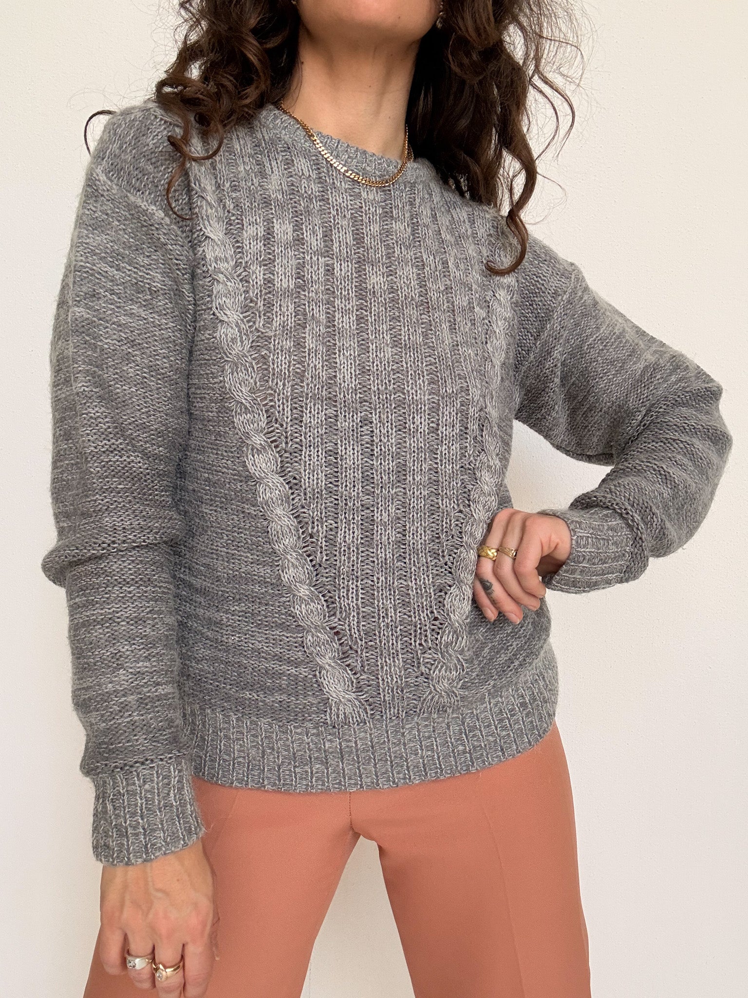 Vintage 80’s Grey Cable Knit Wool Pullover