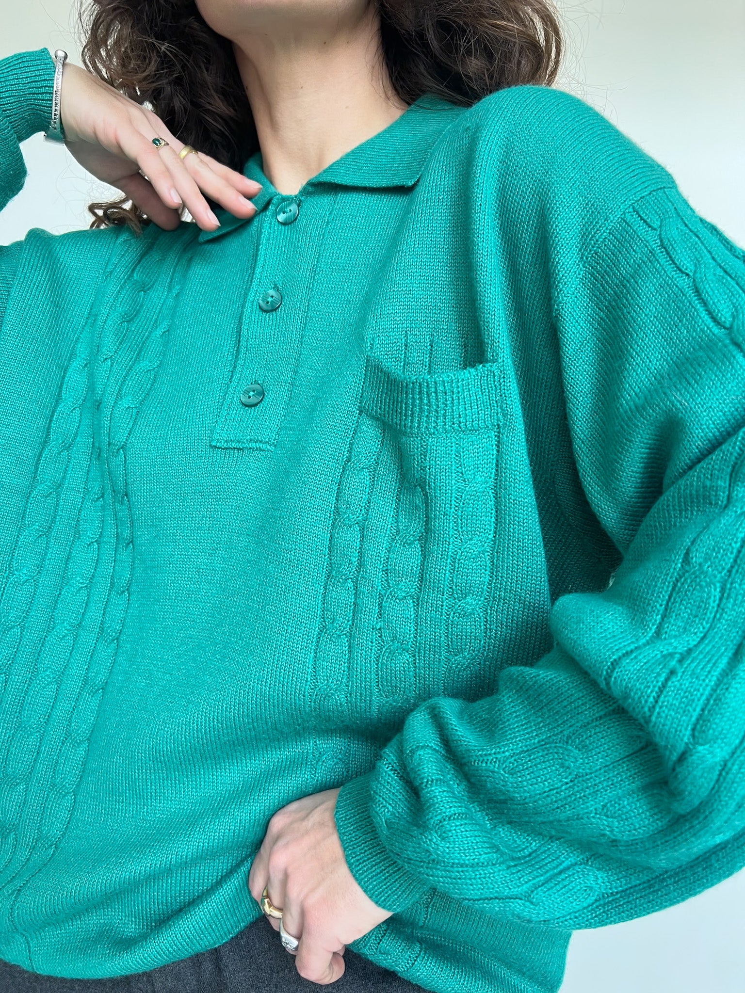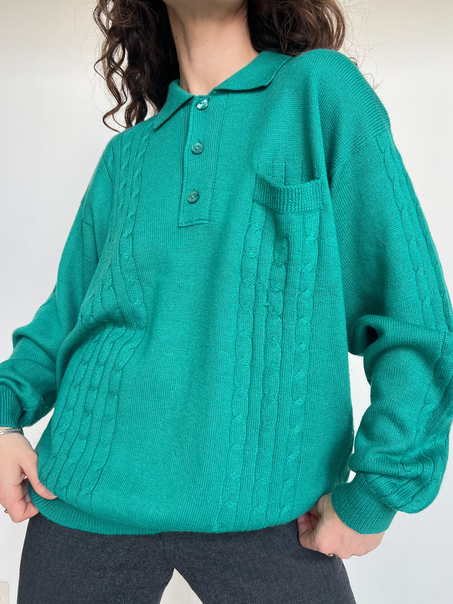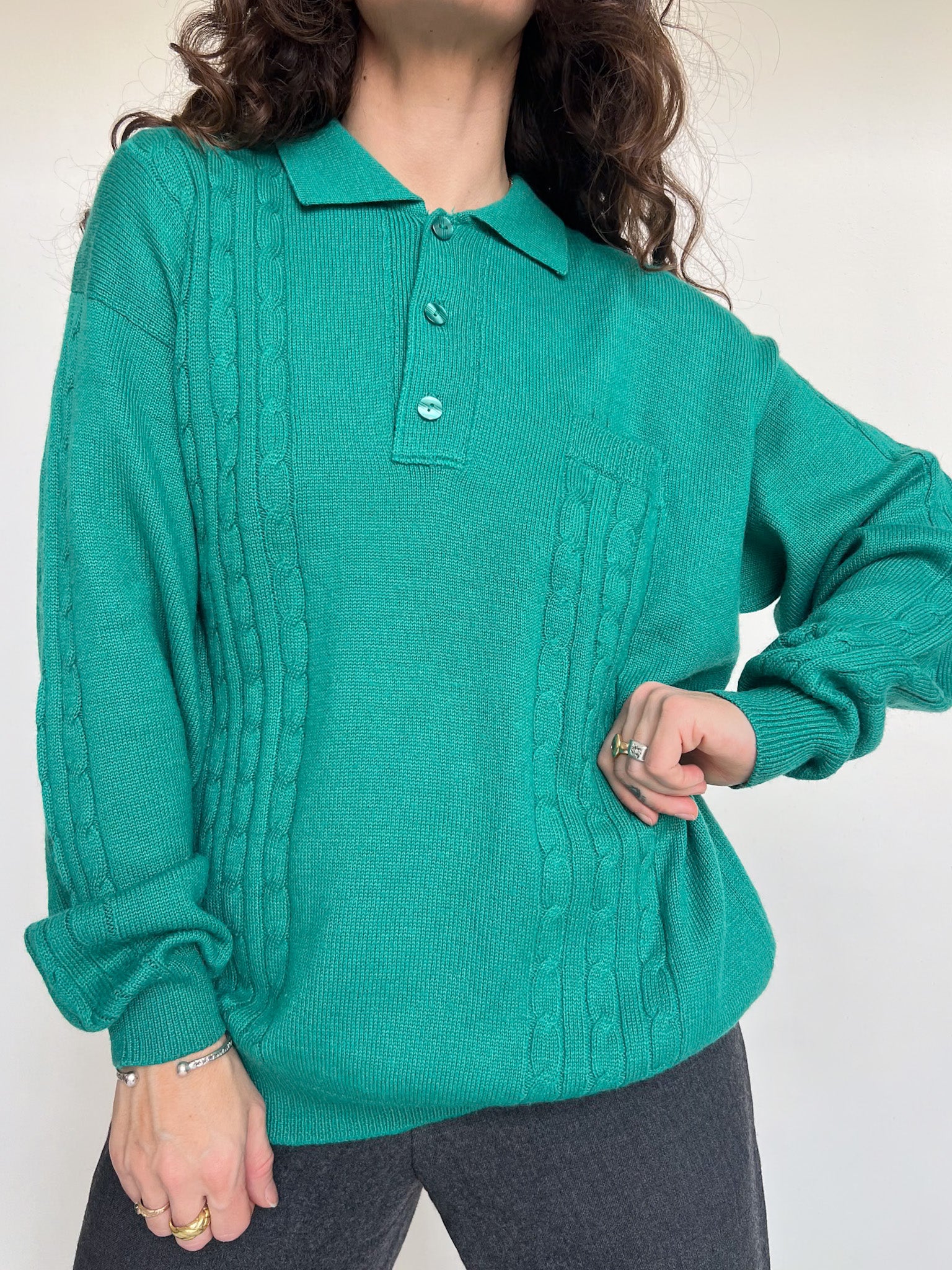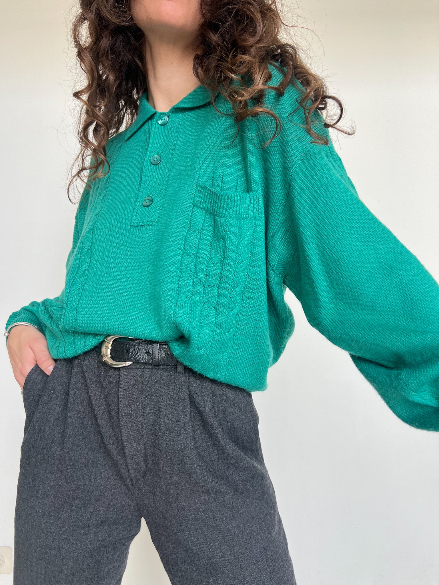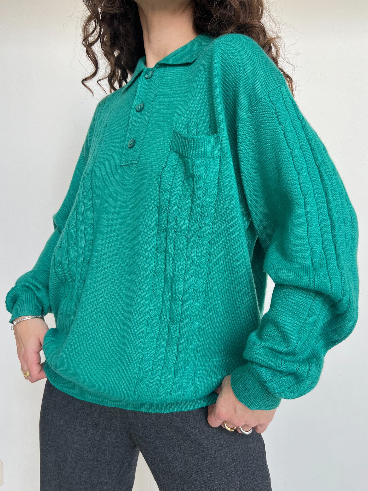 Vintage 90’s Emerald Green Knit Polo Sweater