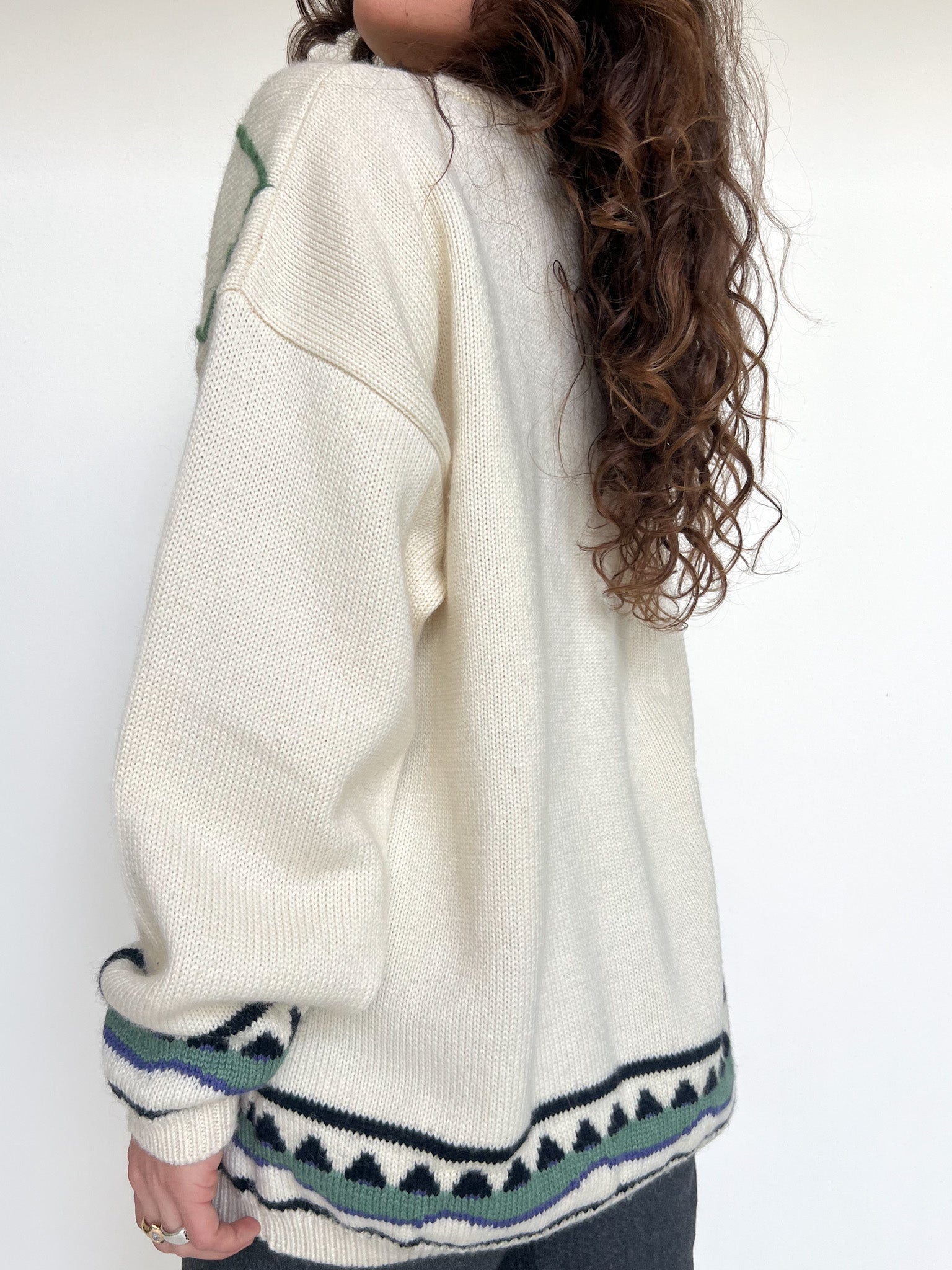 Vintage 80’s Soft Cream with Blue Patterns Pullover