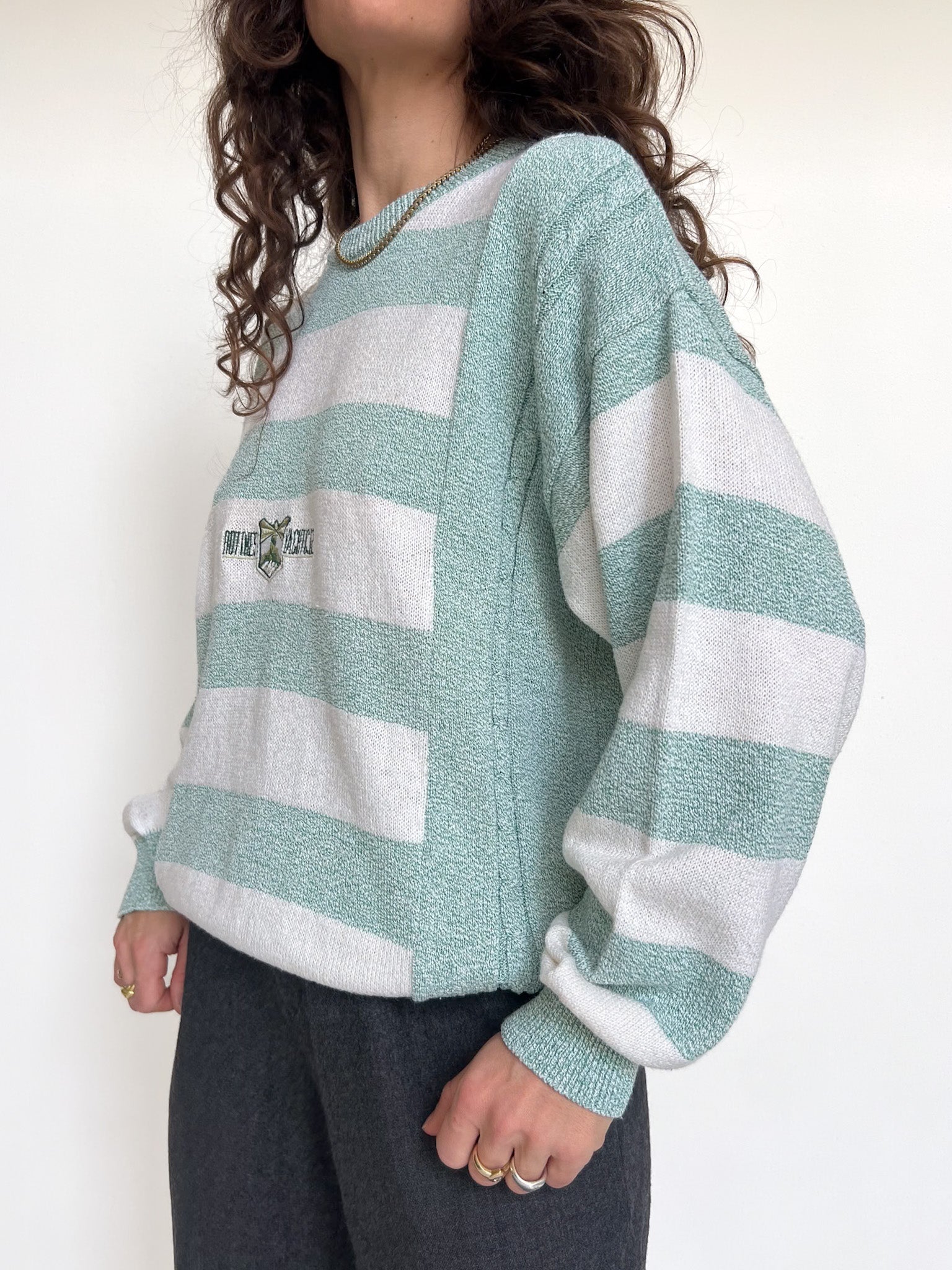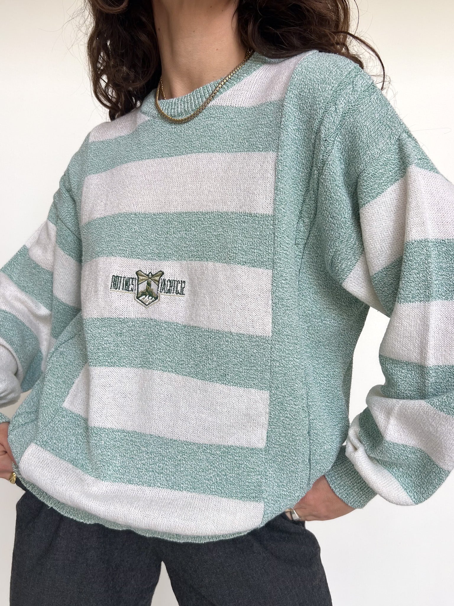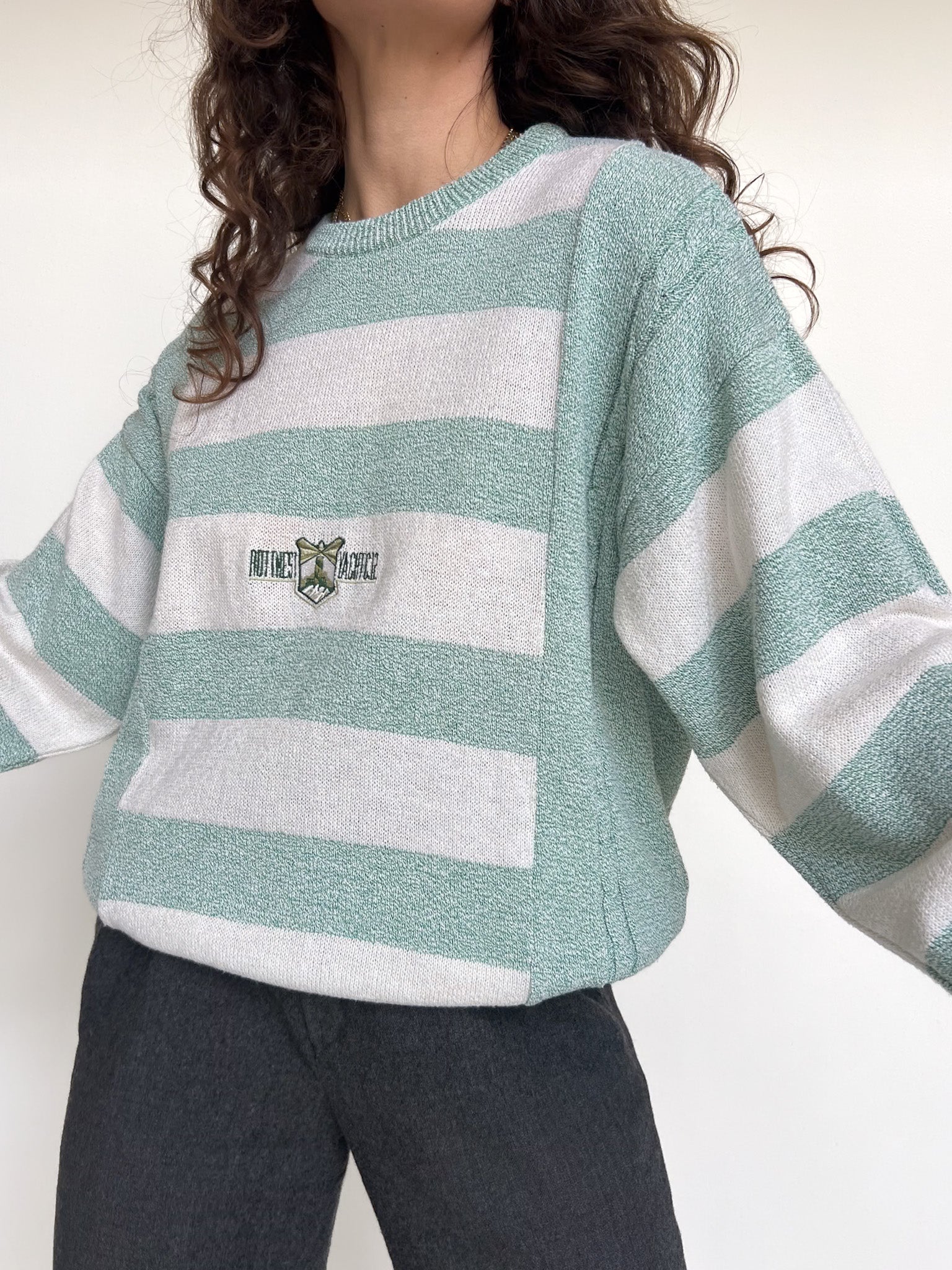 Vintage 90’s Green & White Striped Knit Pullover