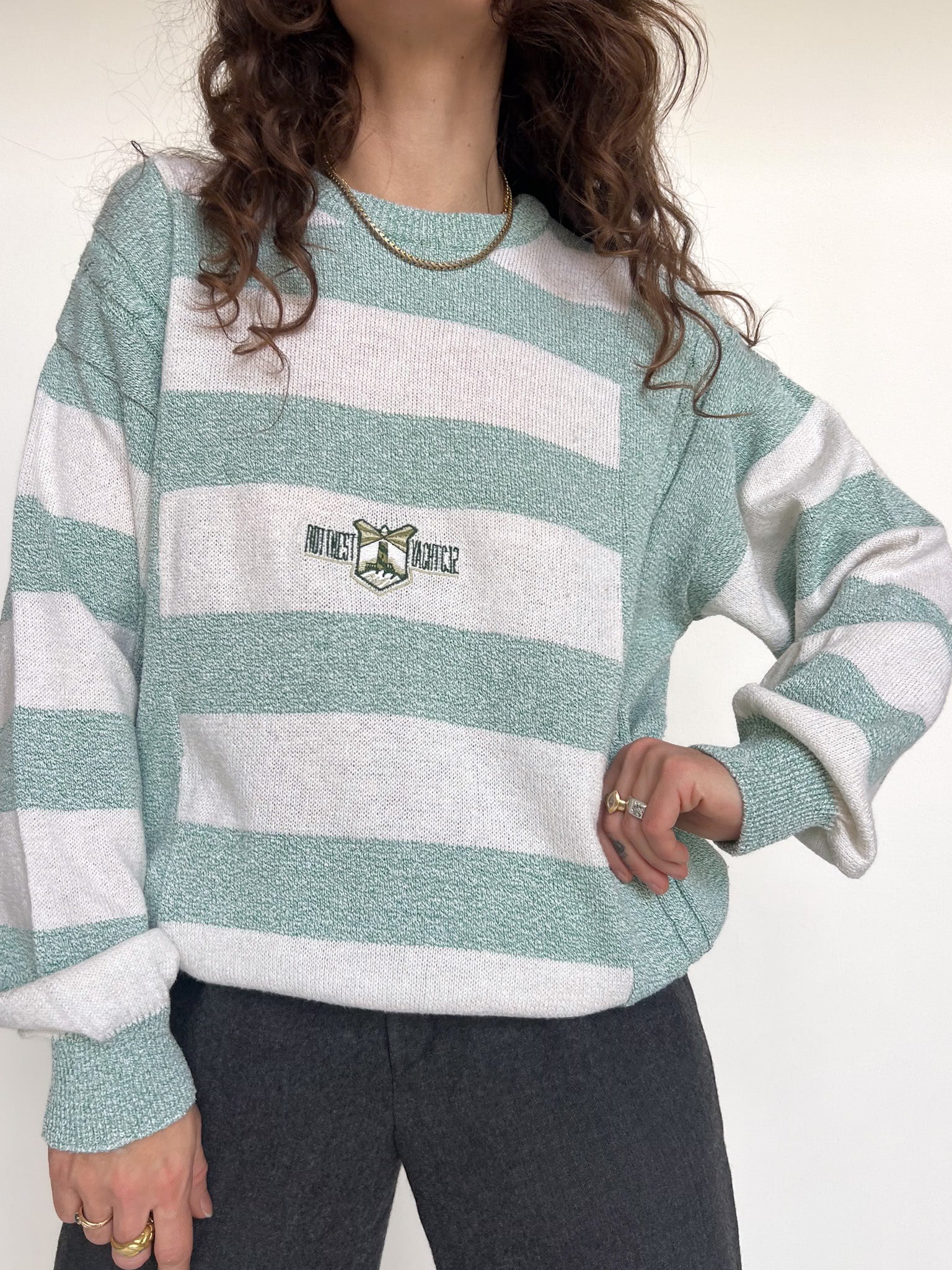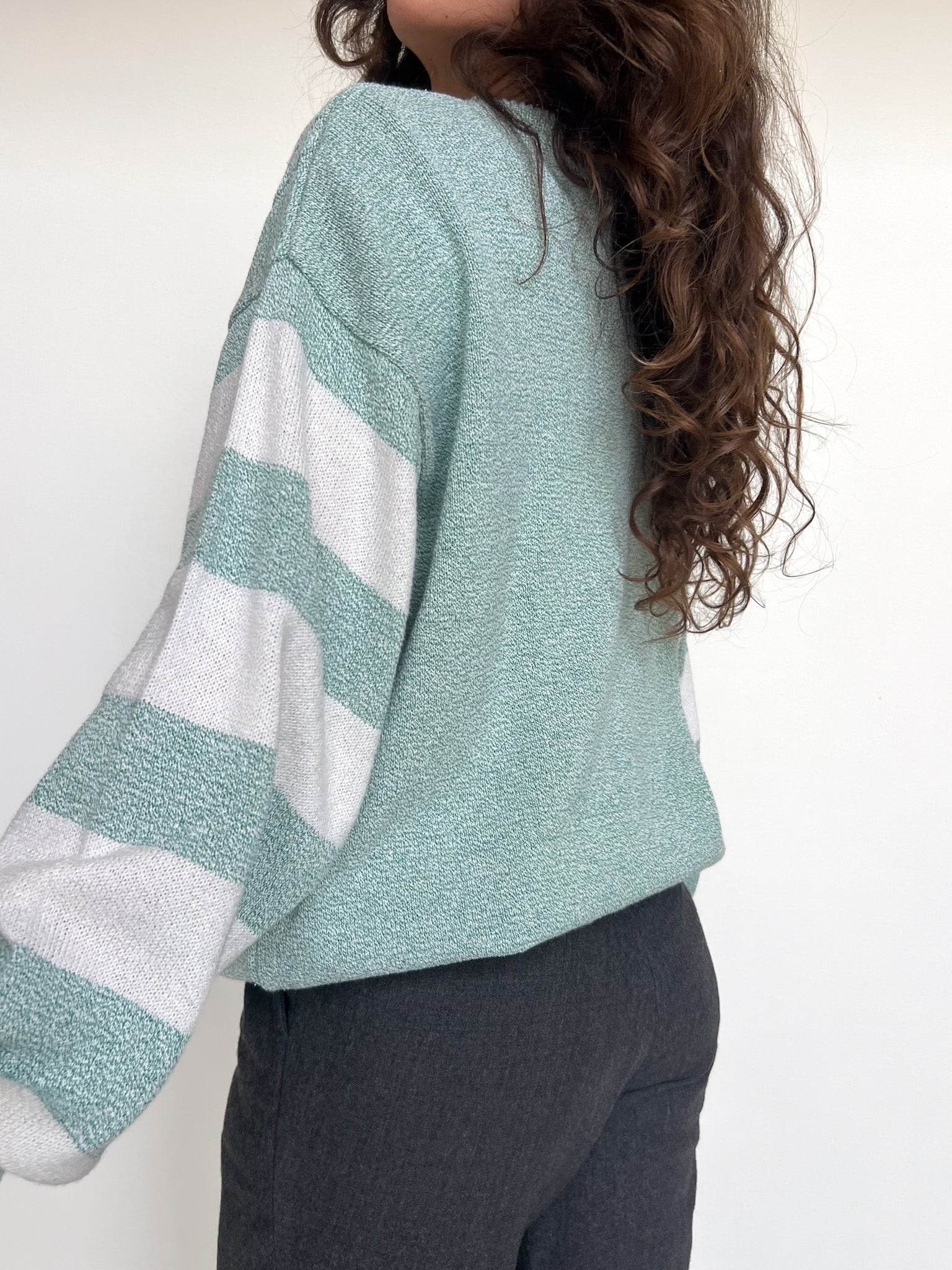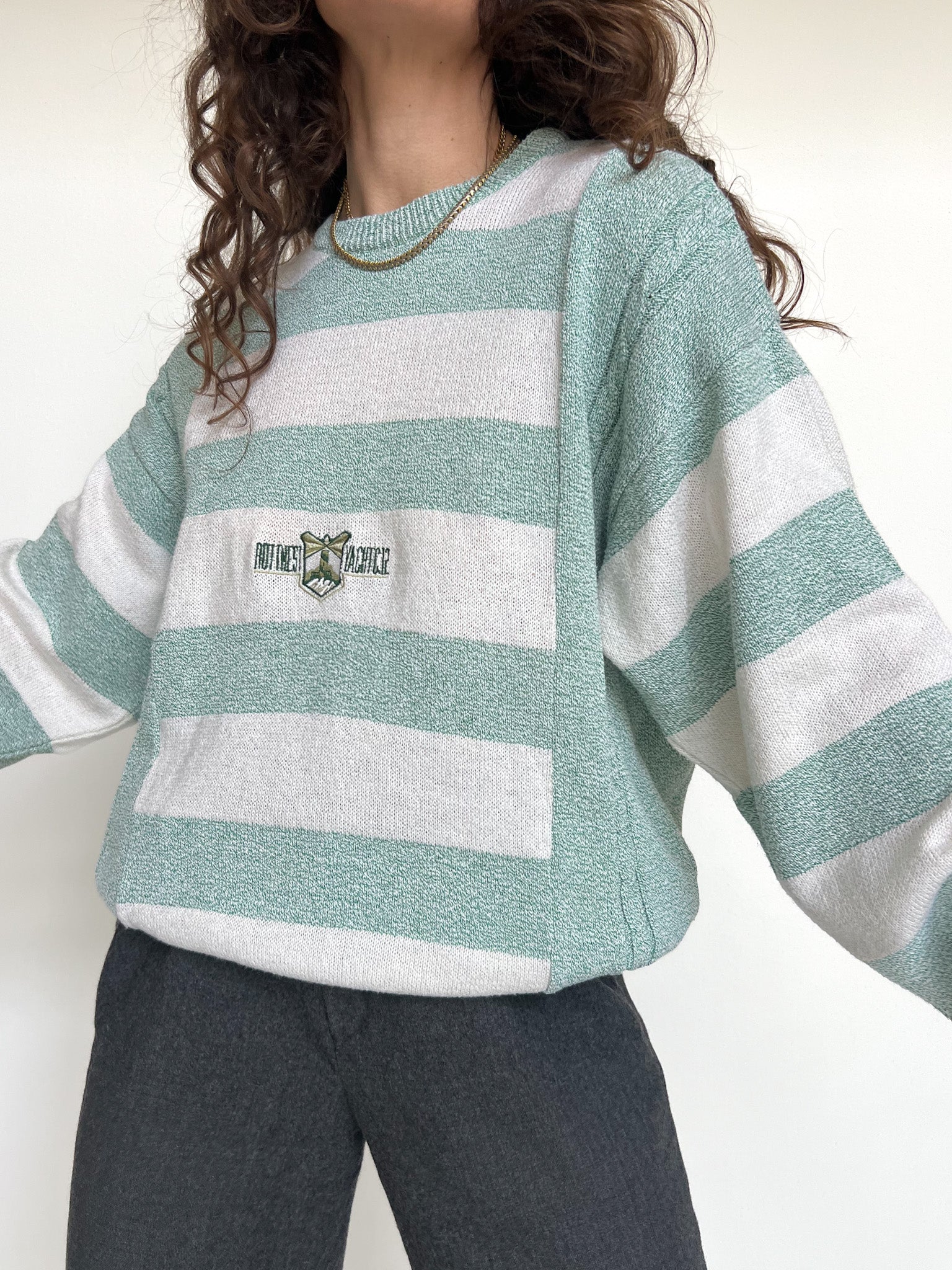 Vintage 90’s Green & White Striped Knit Pullover