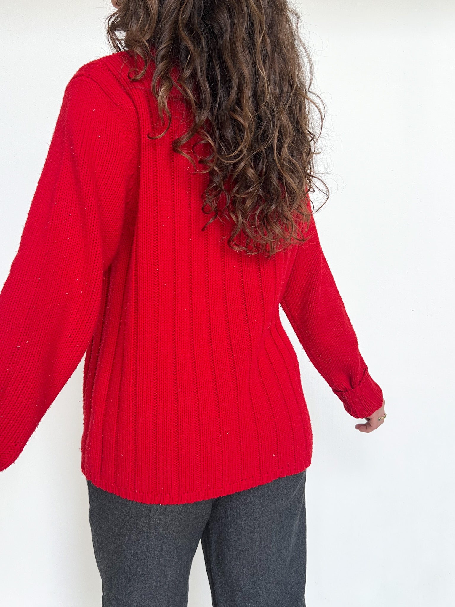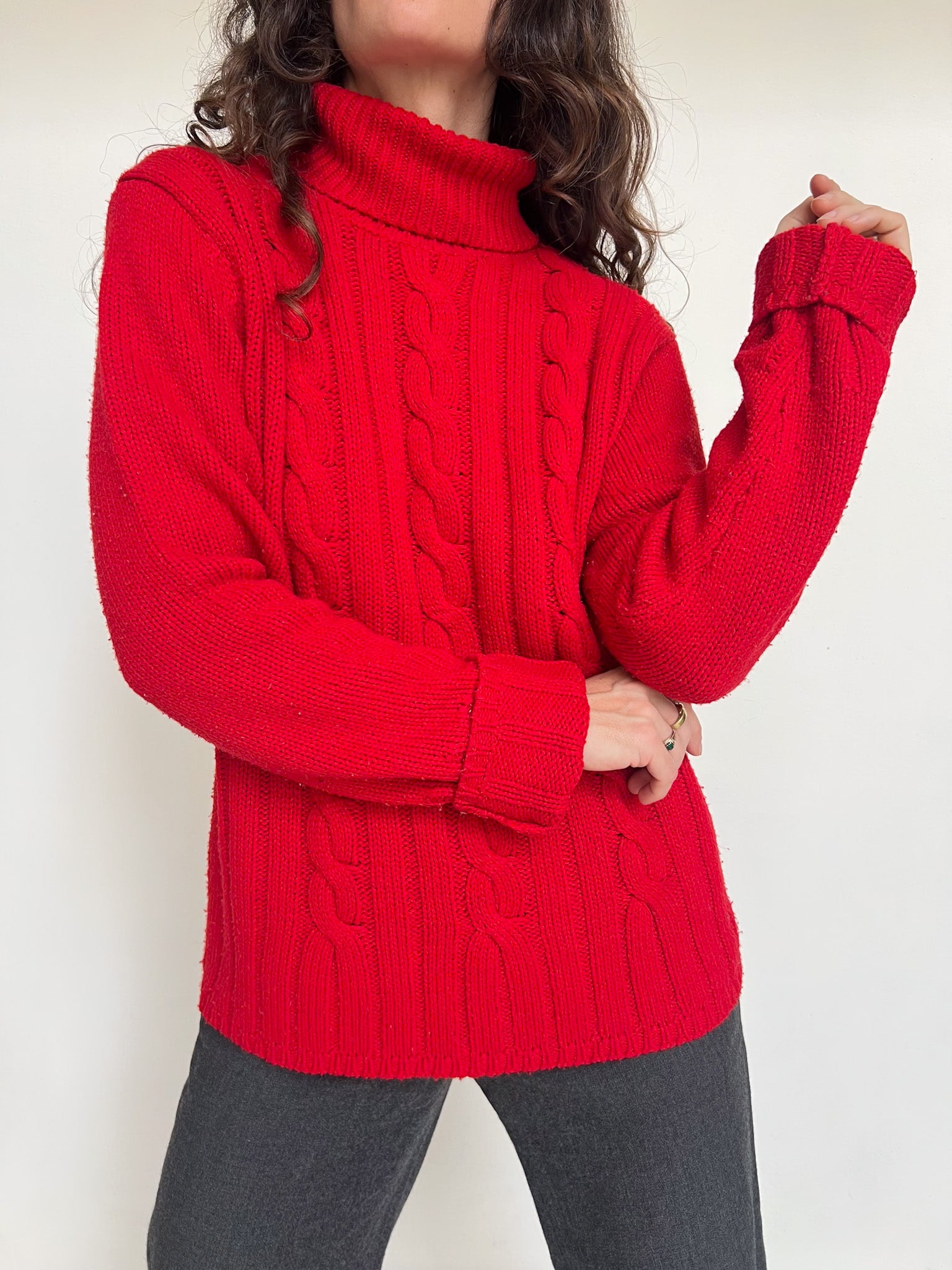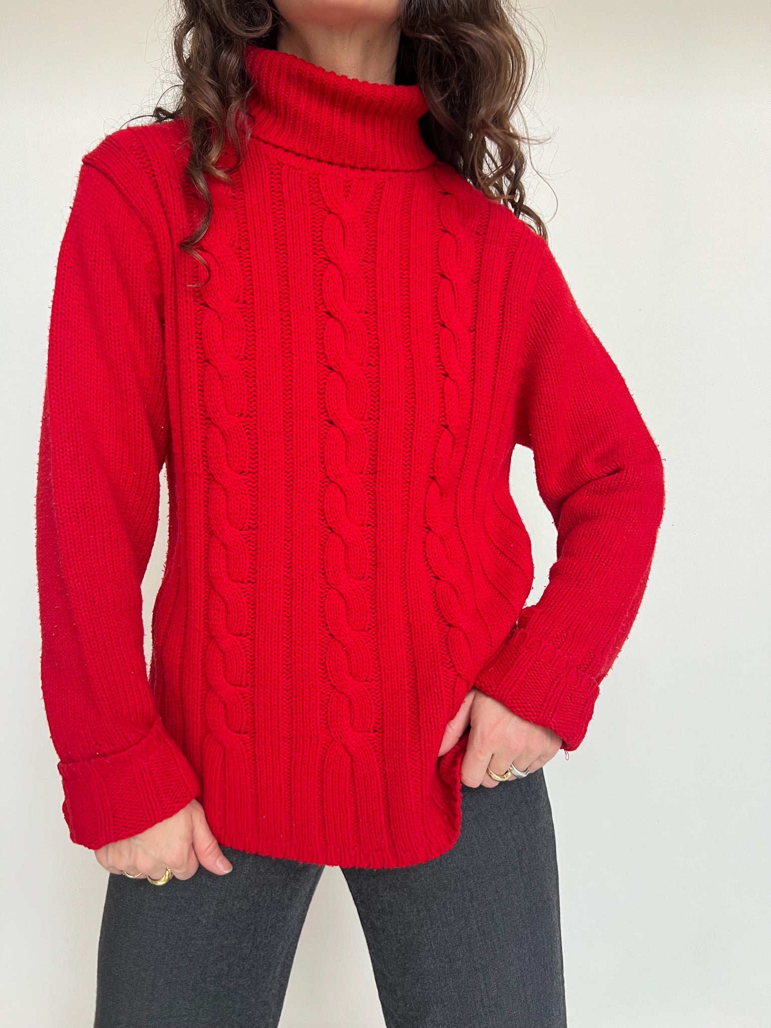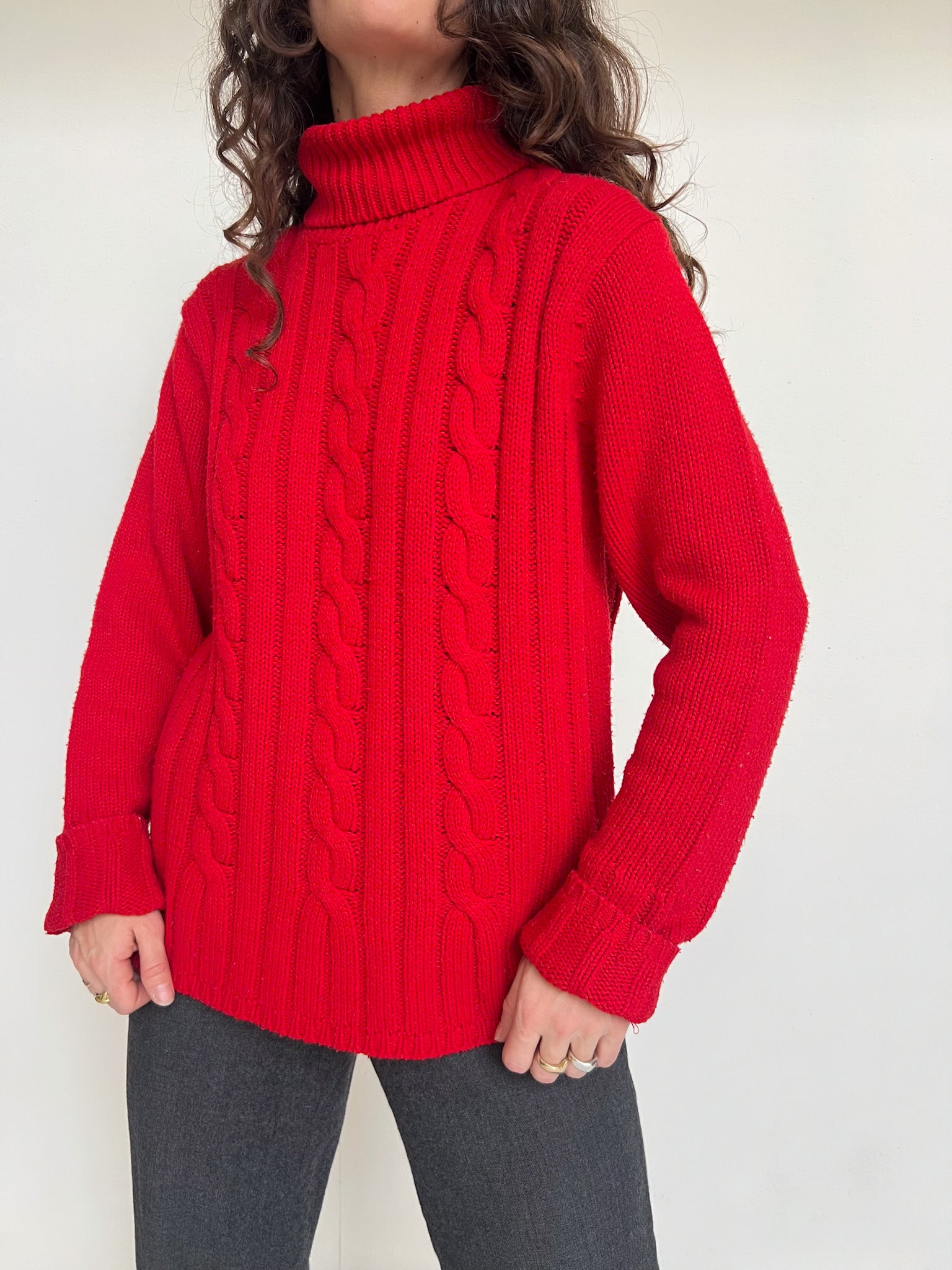 Vintage Red Cable Knit Turtleneck Sweater