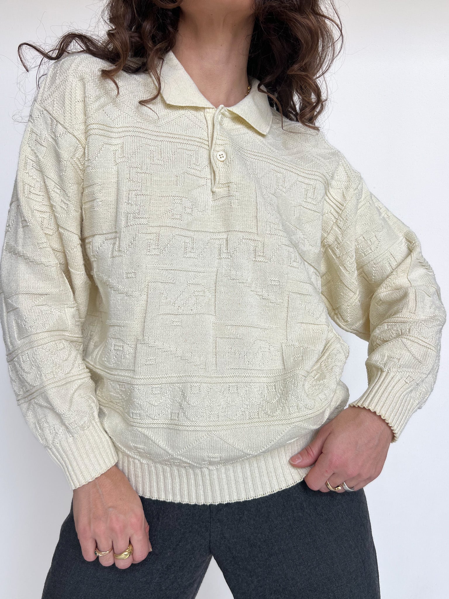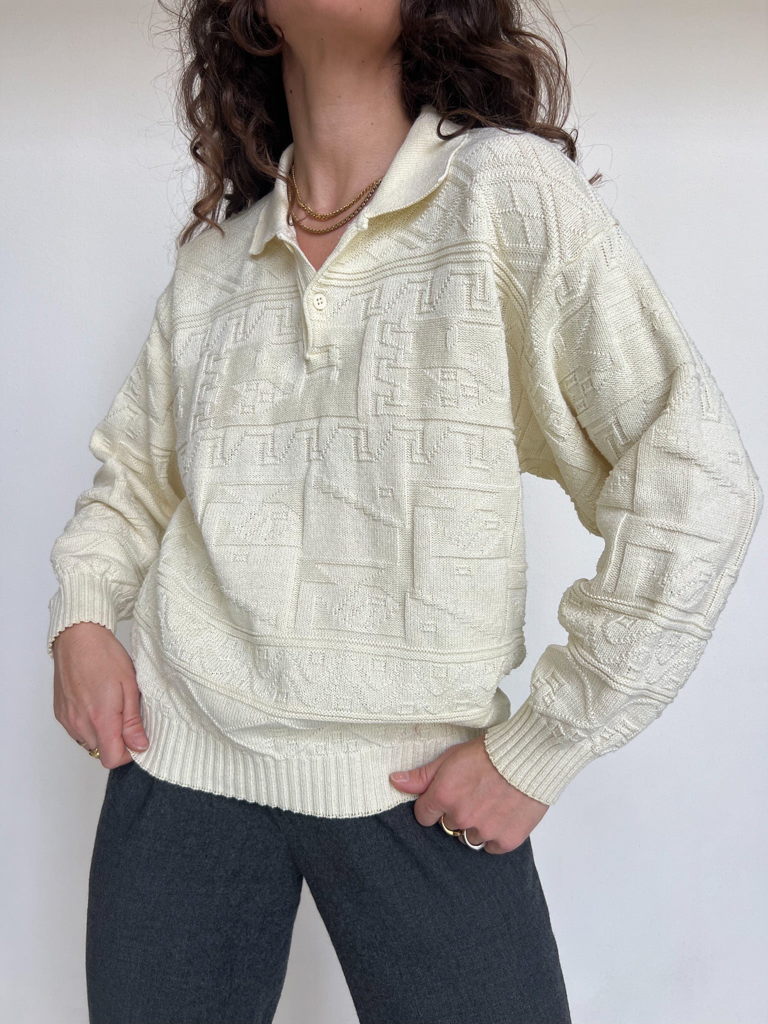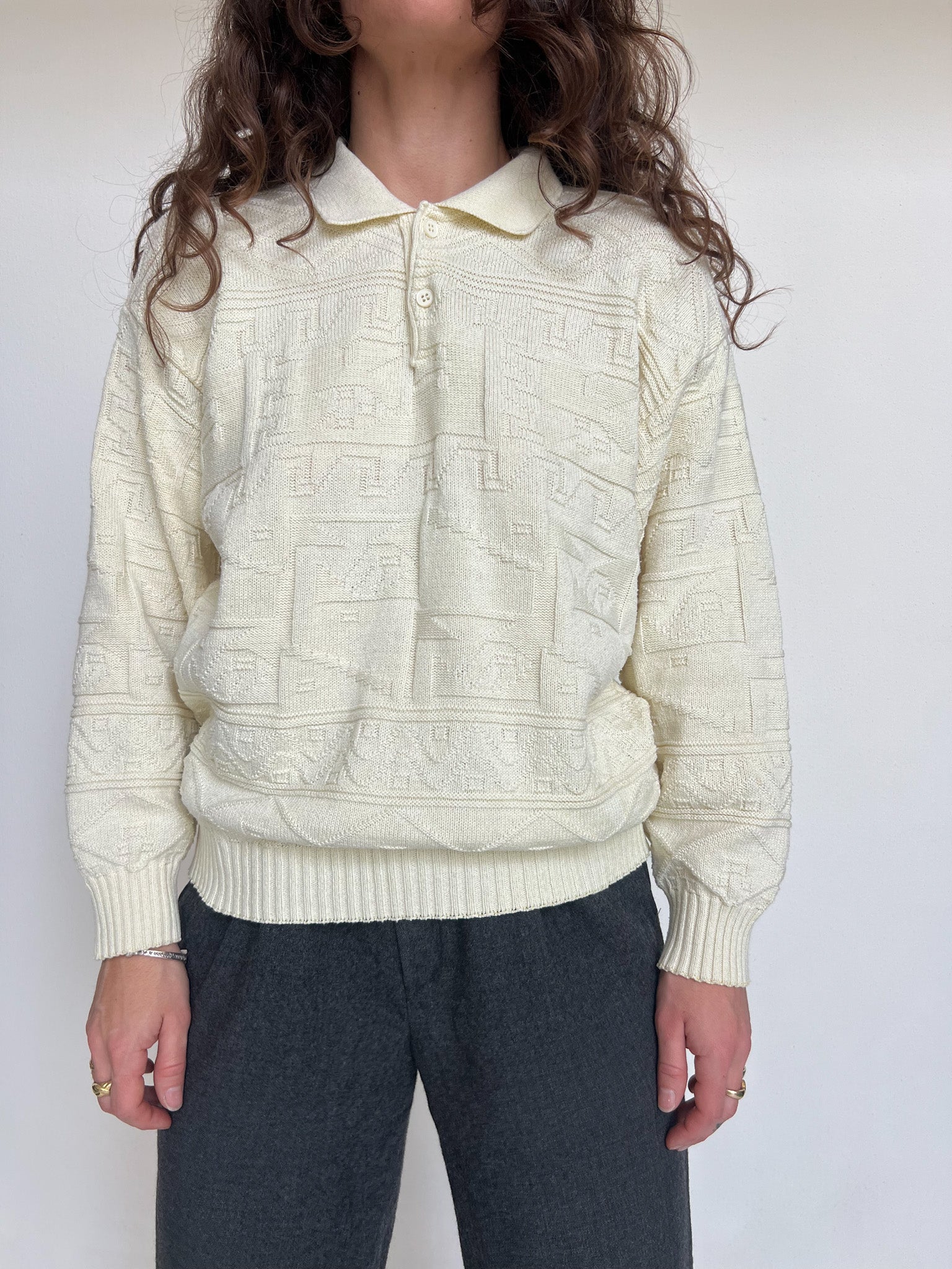 Vintage 90’s Cream Knit Polo Pullover