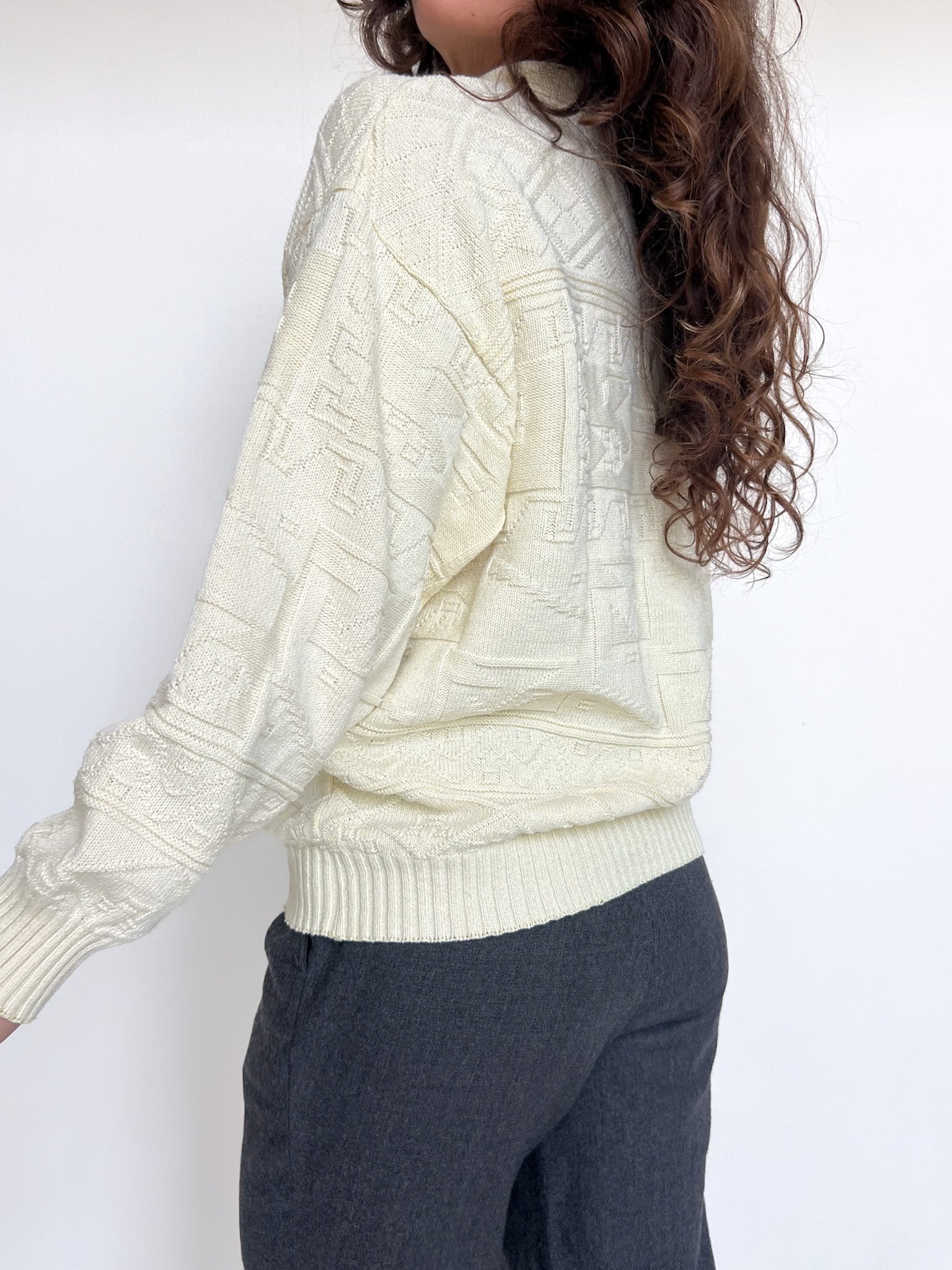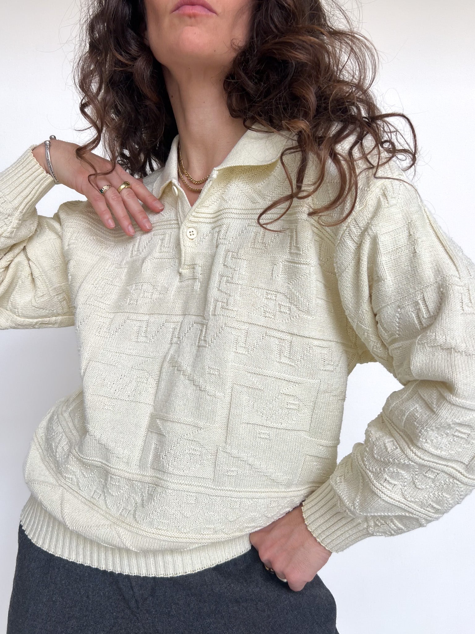 Vintage 80’s Cream Soft-Knit Polo Pullover