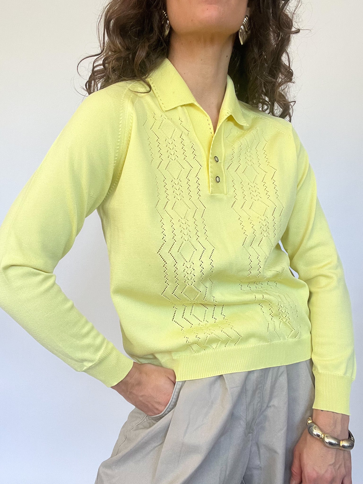 Vintage 80’s Pale Yellow Knit Polo