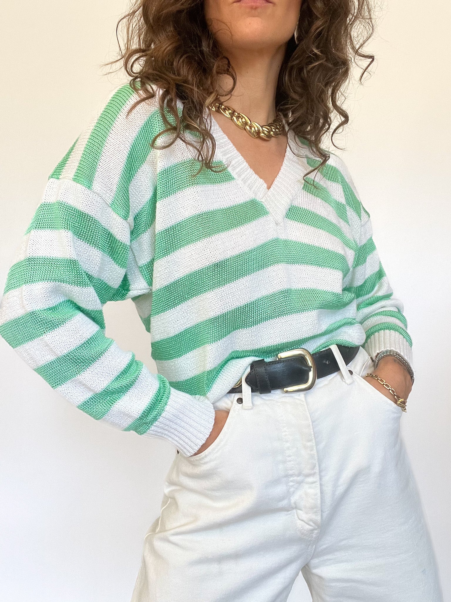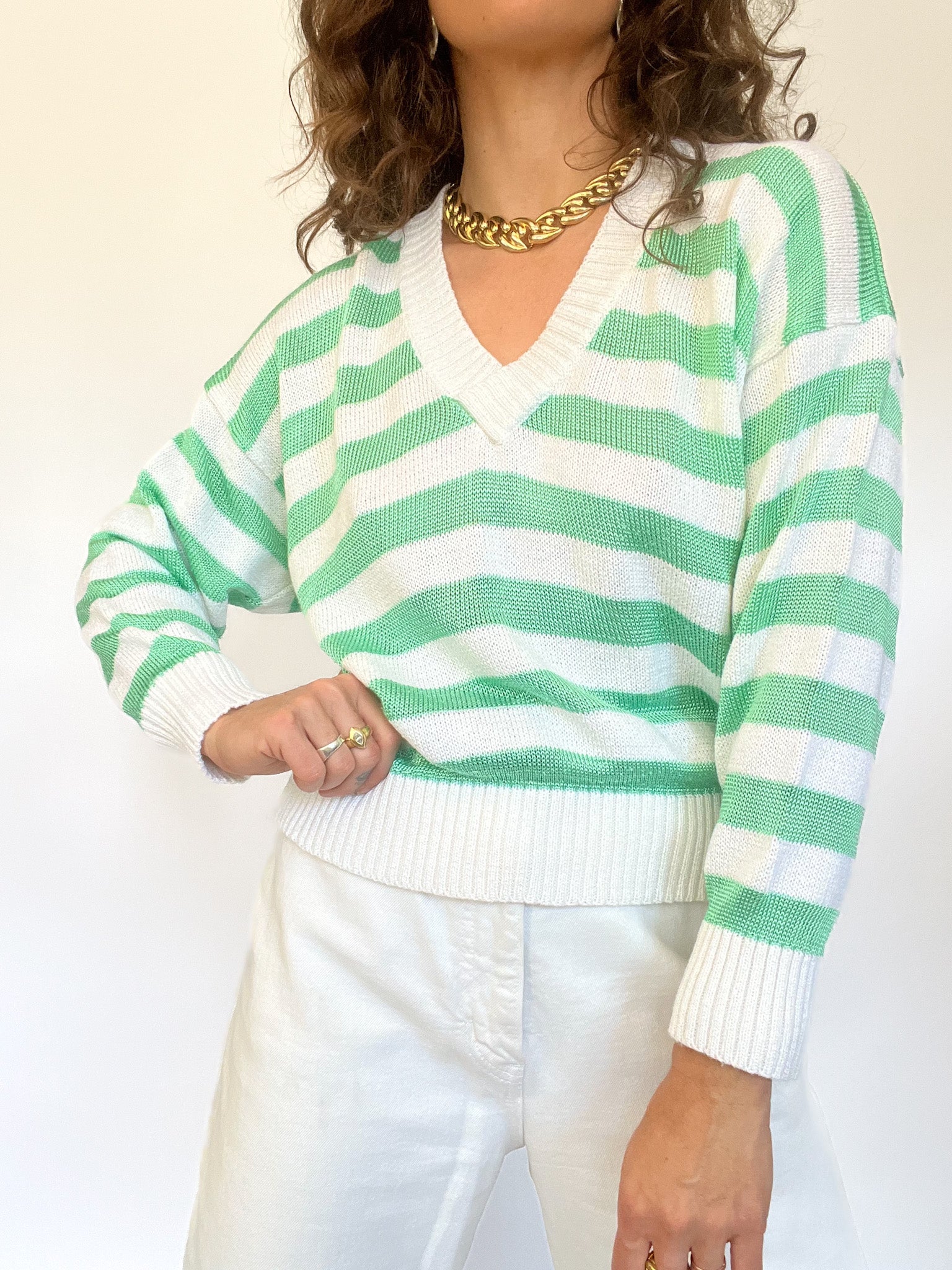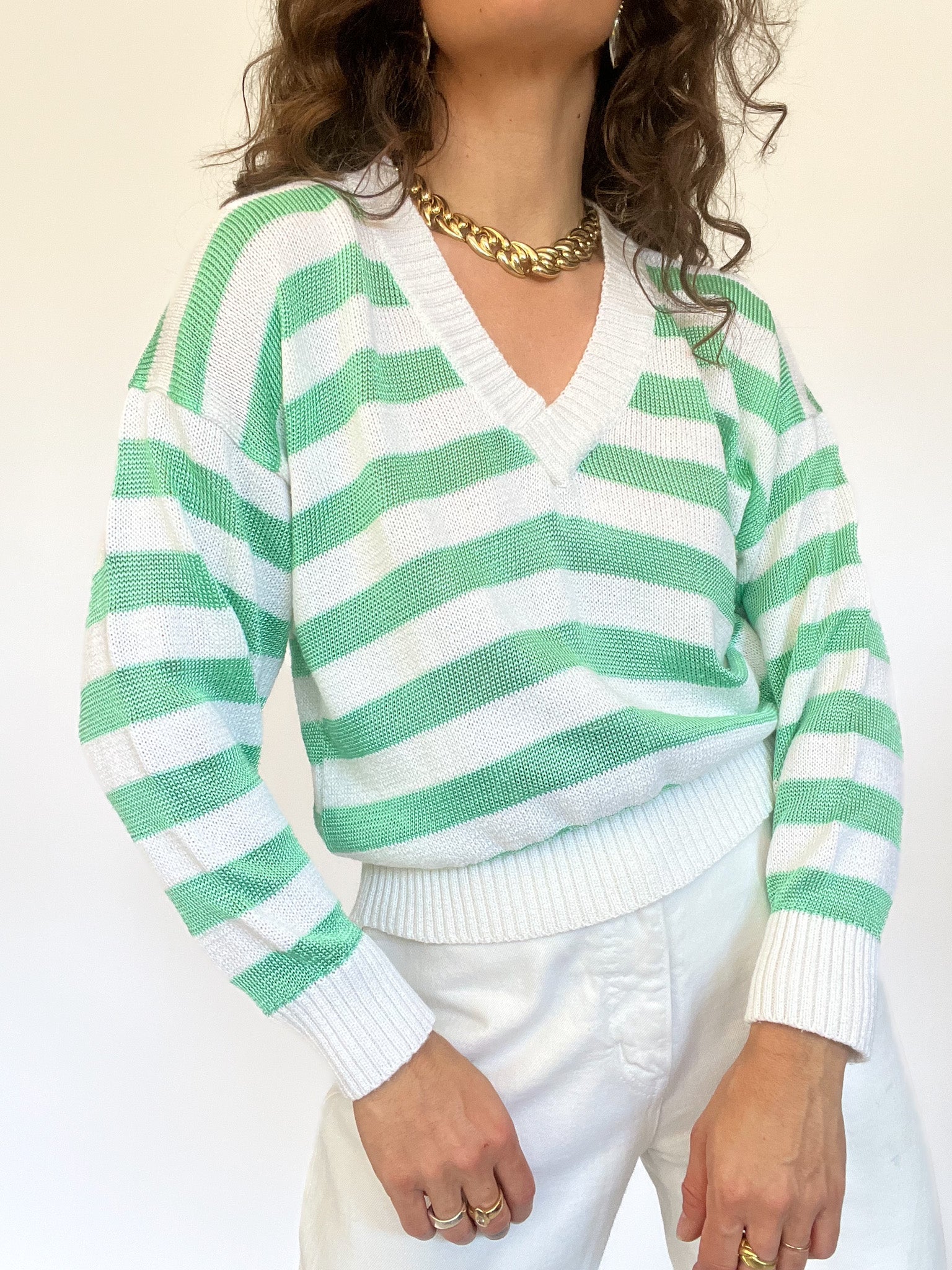 Vintage 90’s Green & White Striped Knit