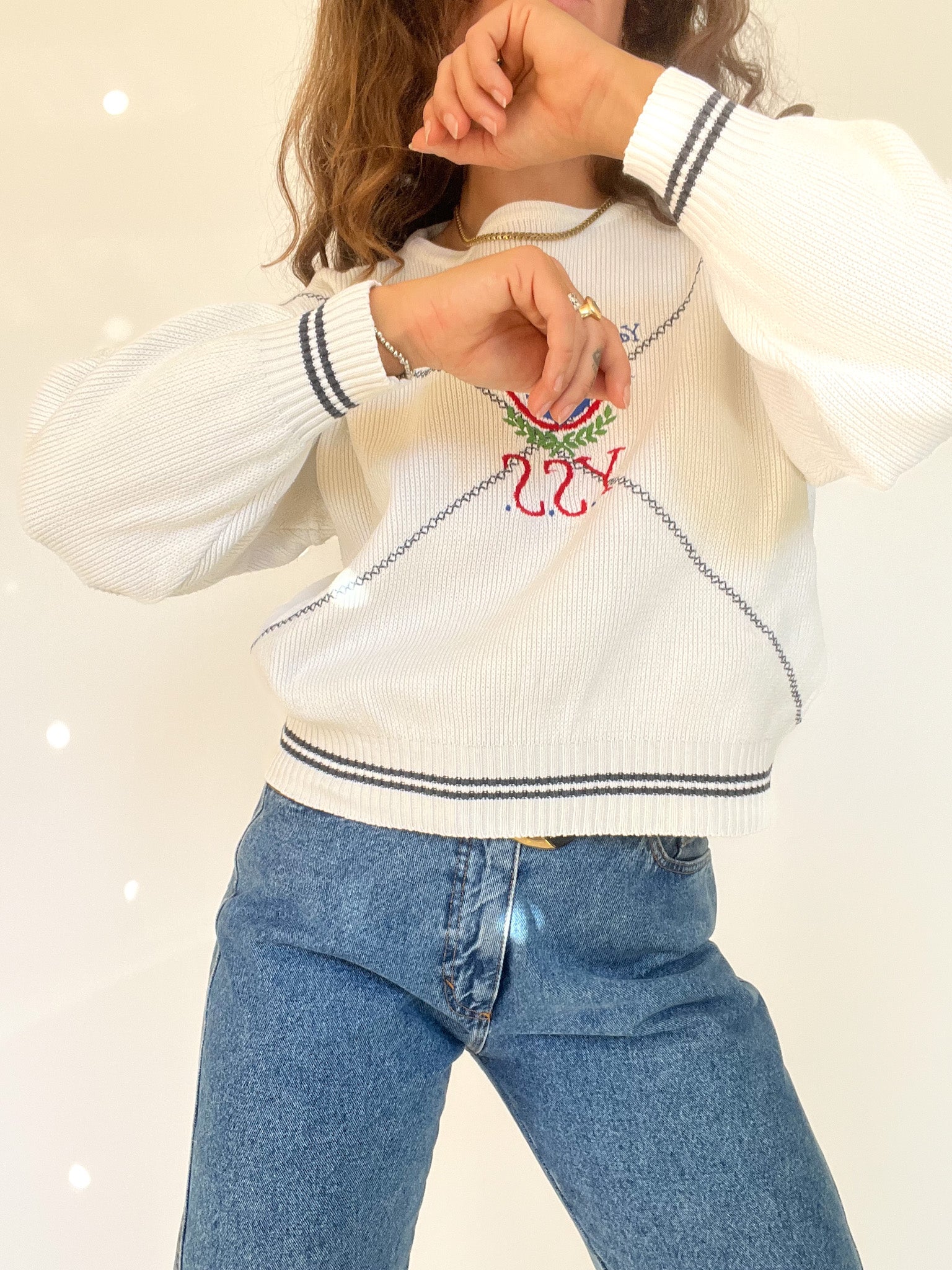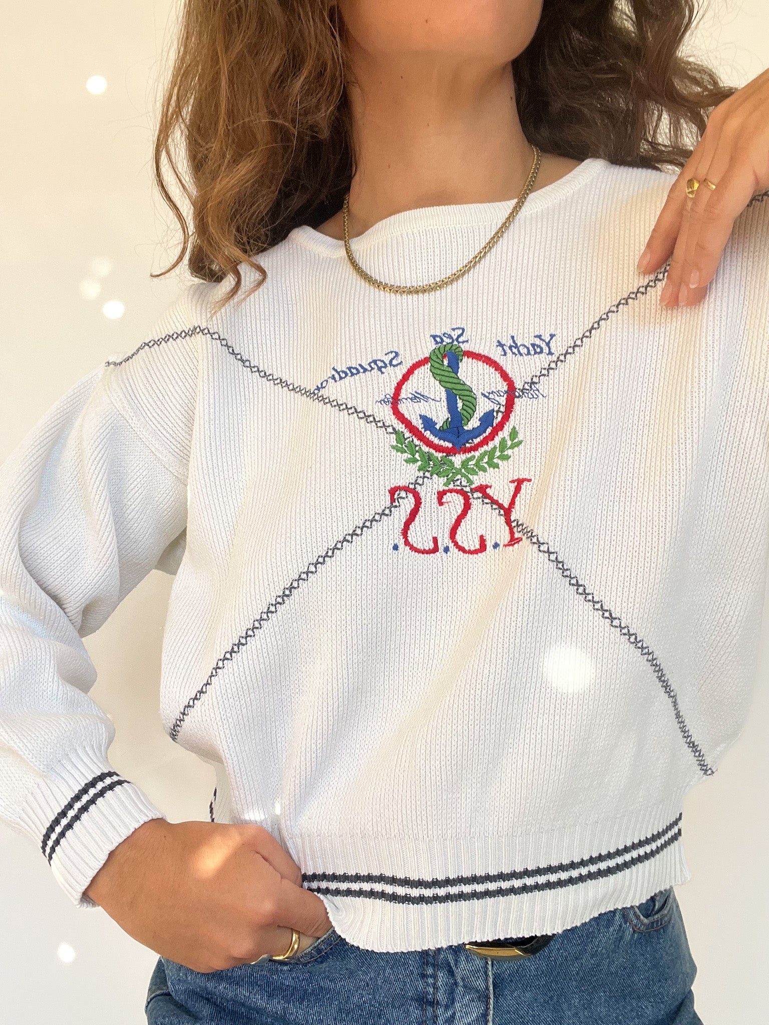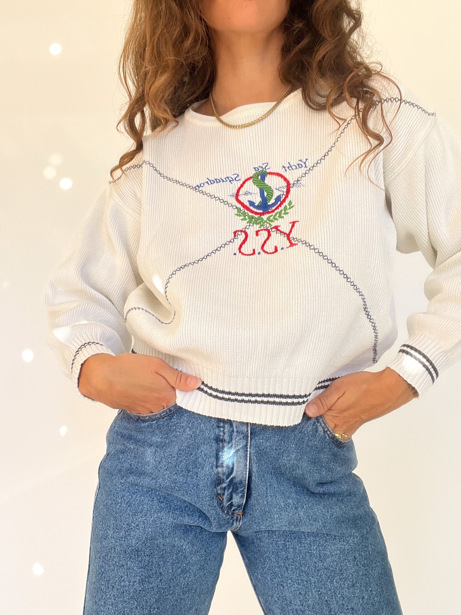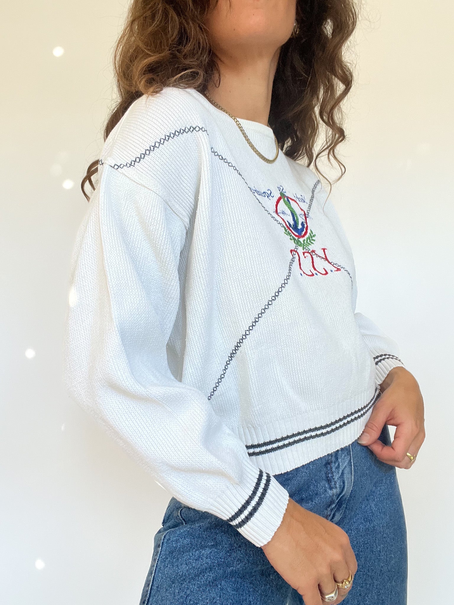 Vintage 90’s White Embroidered Nautical Sweater