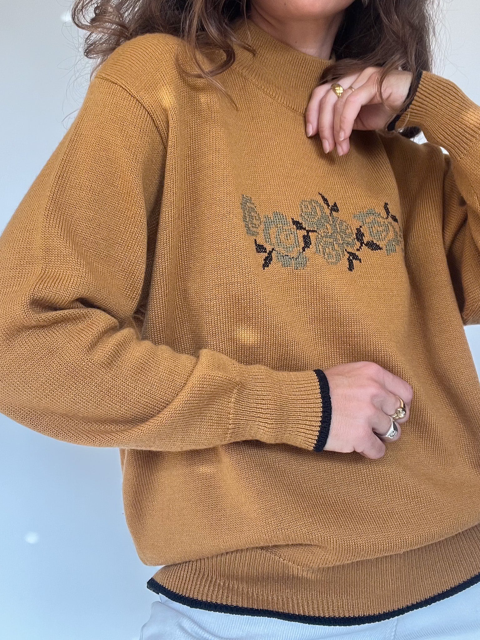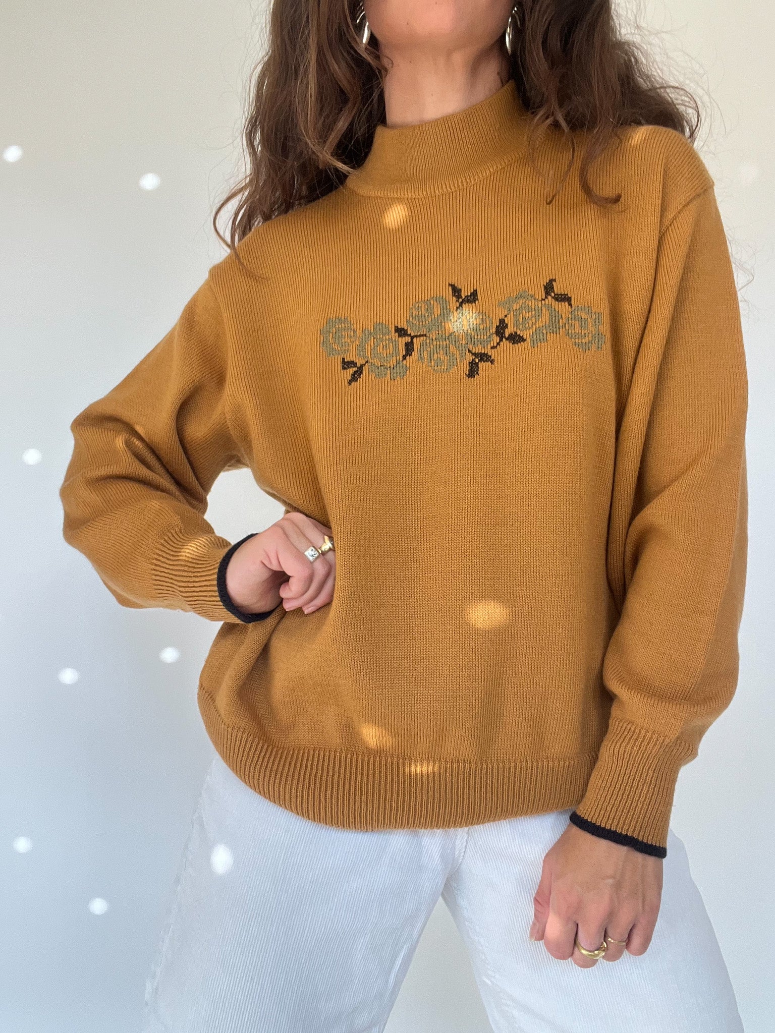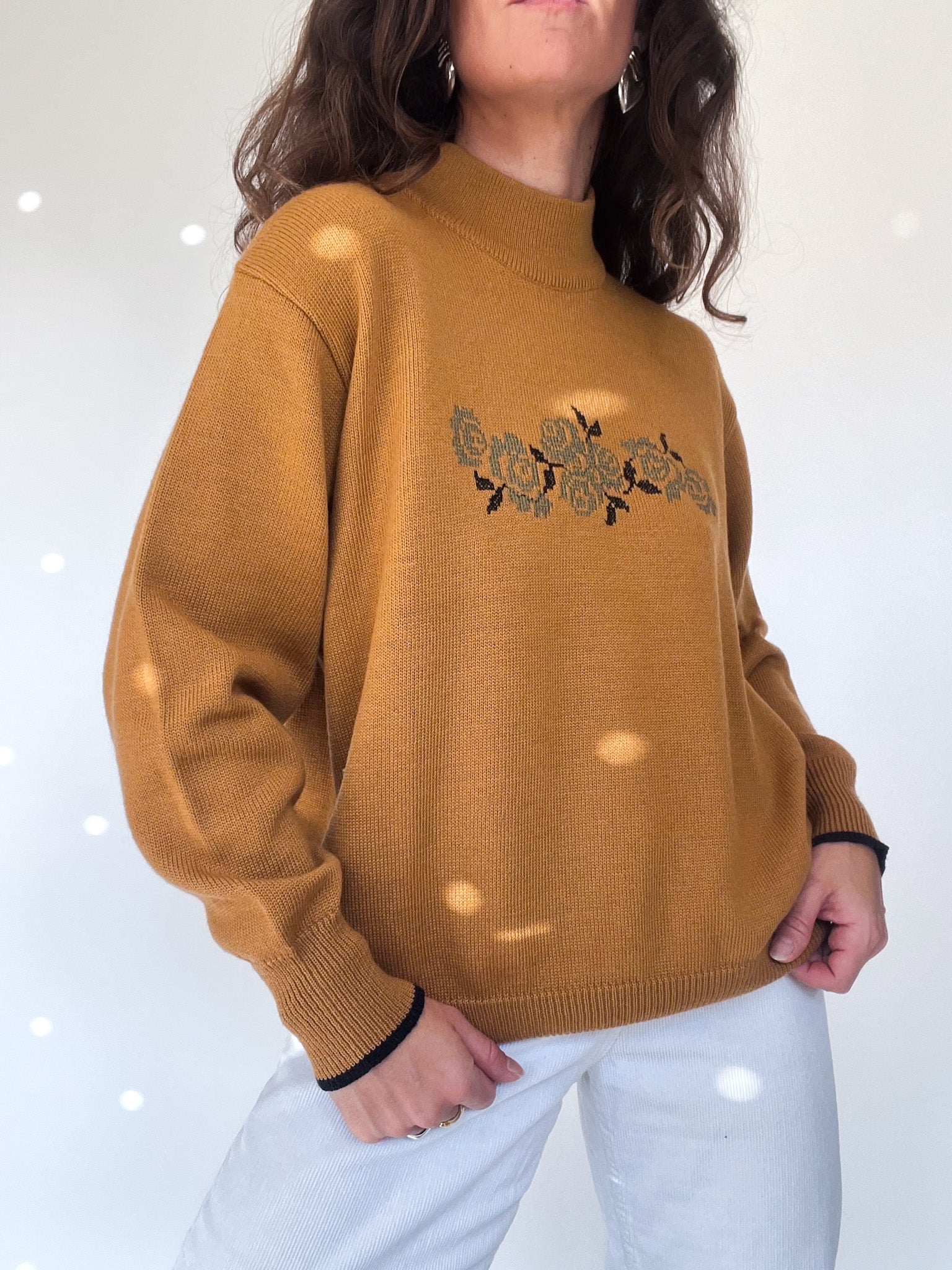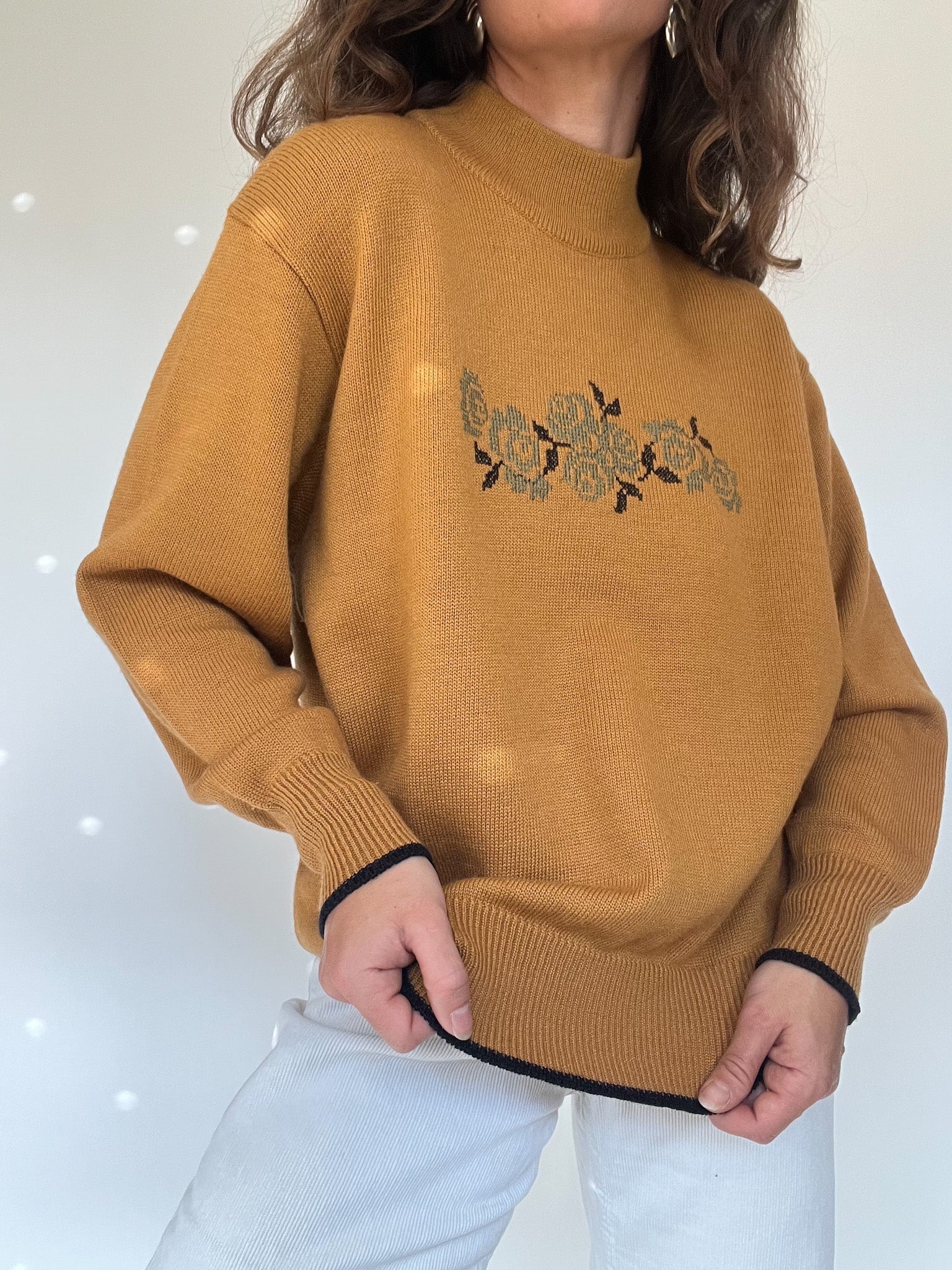 Vintage 80’s Mustard Floral Embroidered Pullover