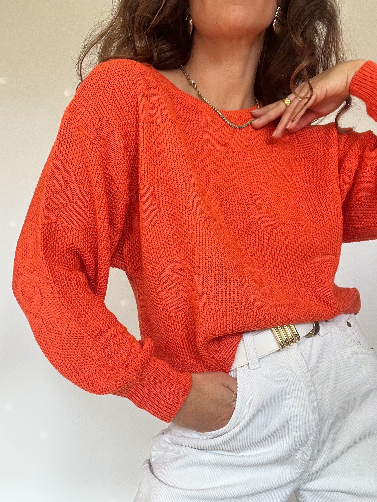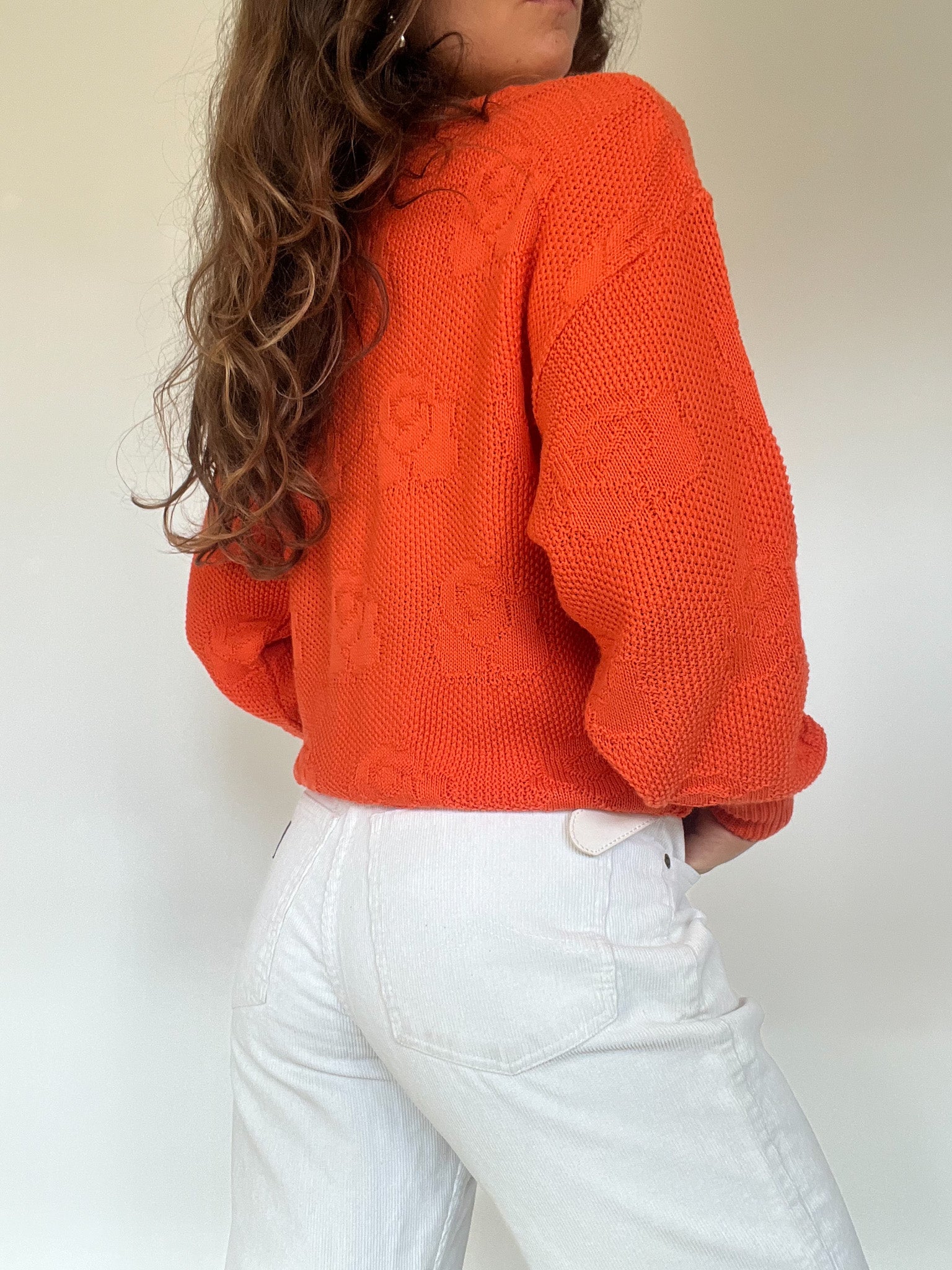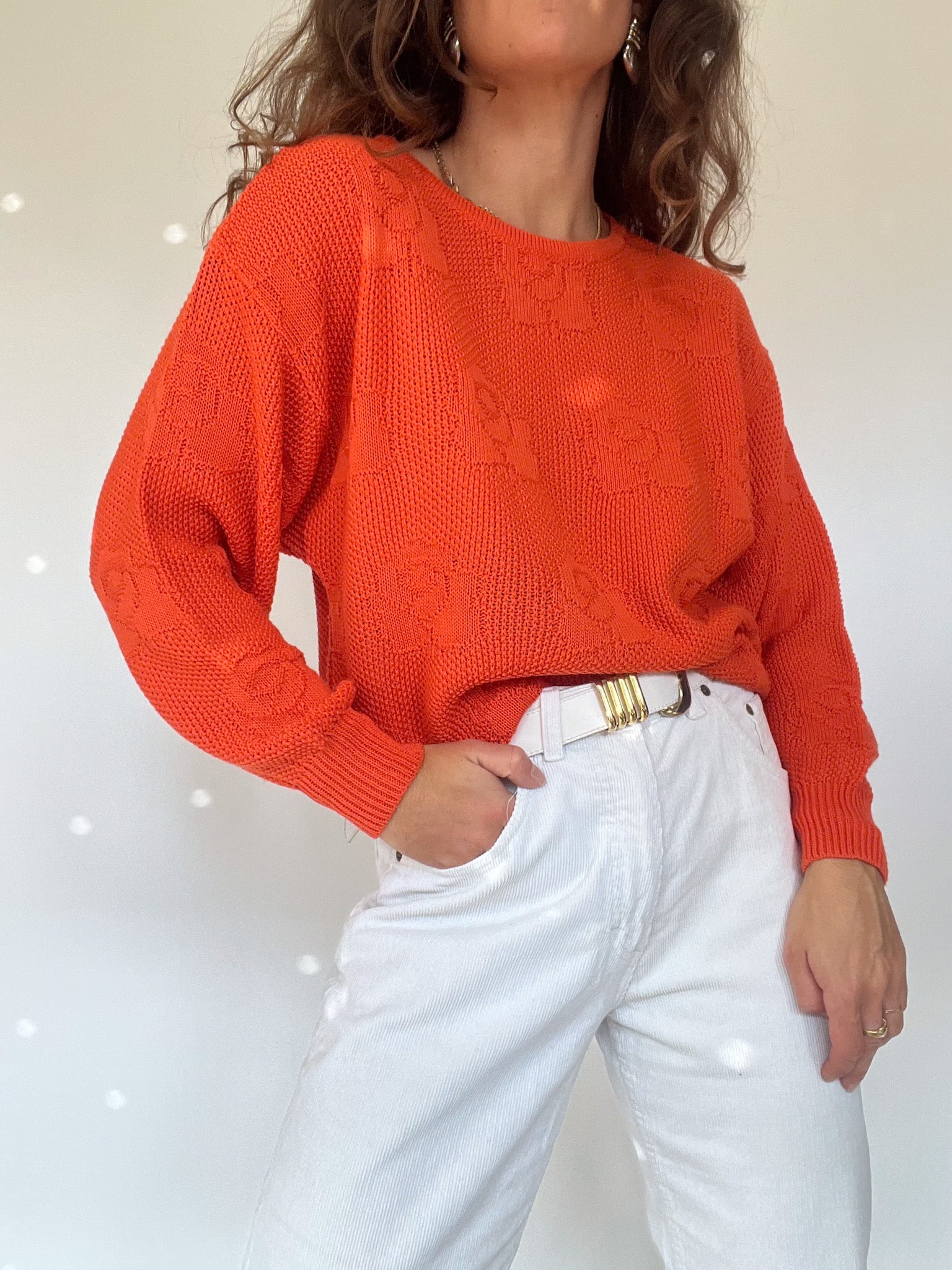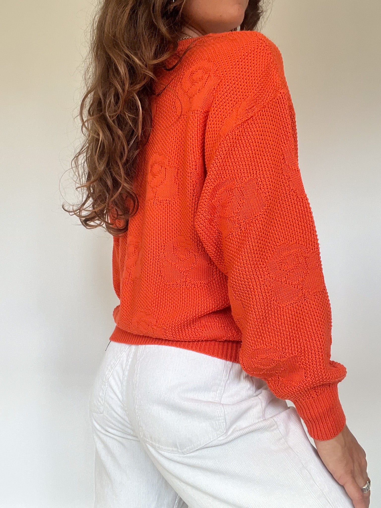 Vintage 80’s Bright Orange Floral Knit Sweater