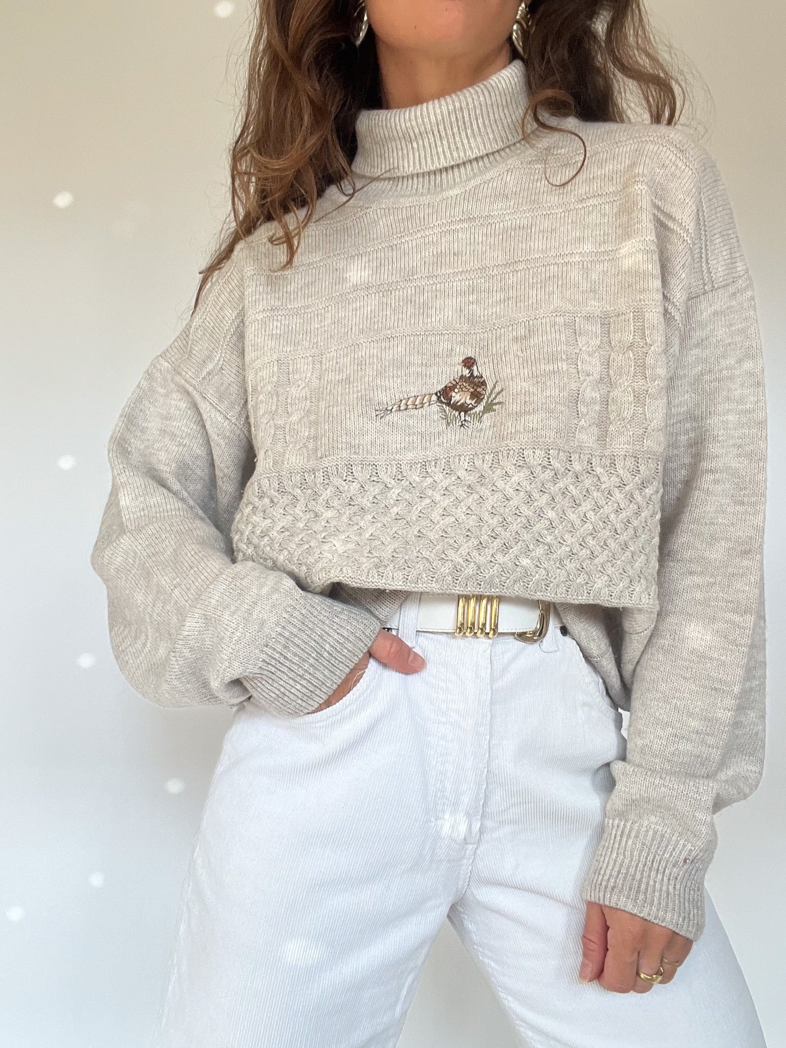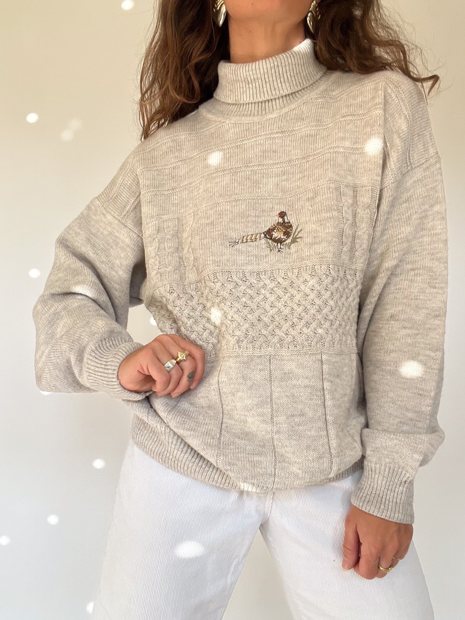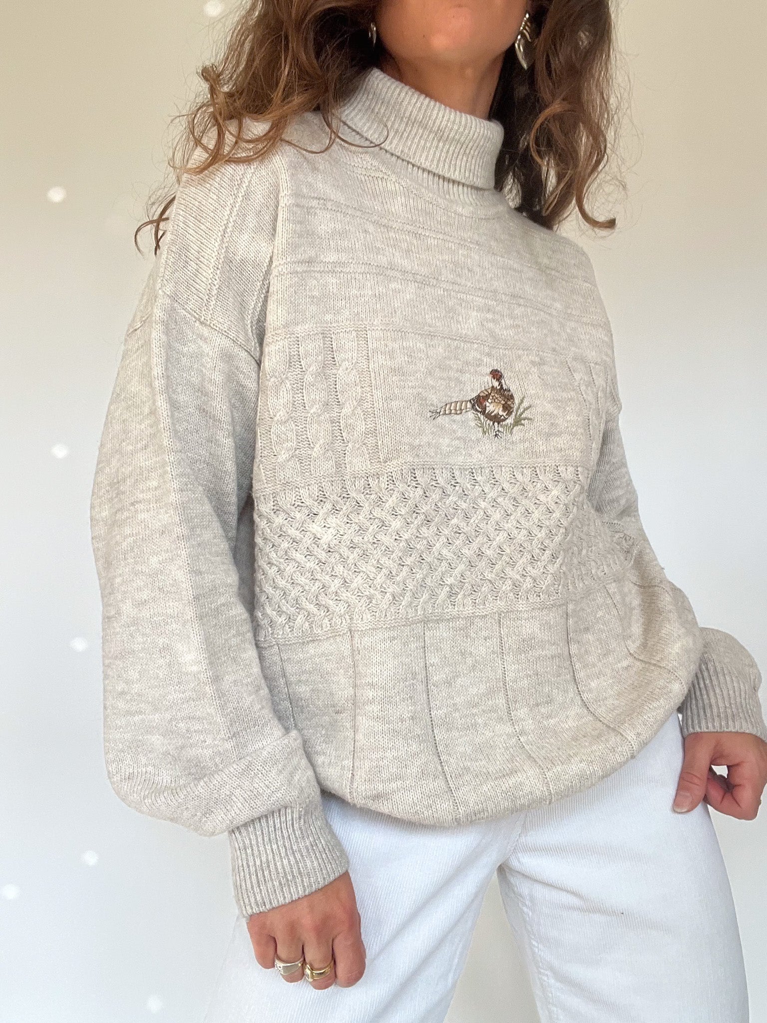 Vintage 80’s Beige Embroidered Turtleneck Sweater