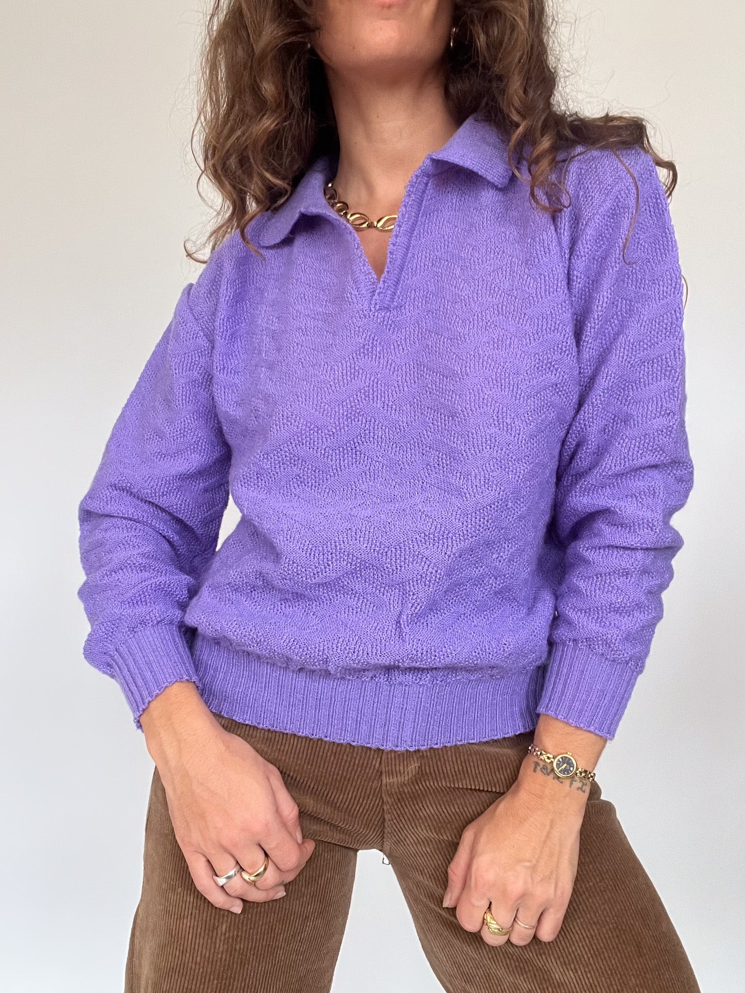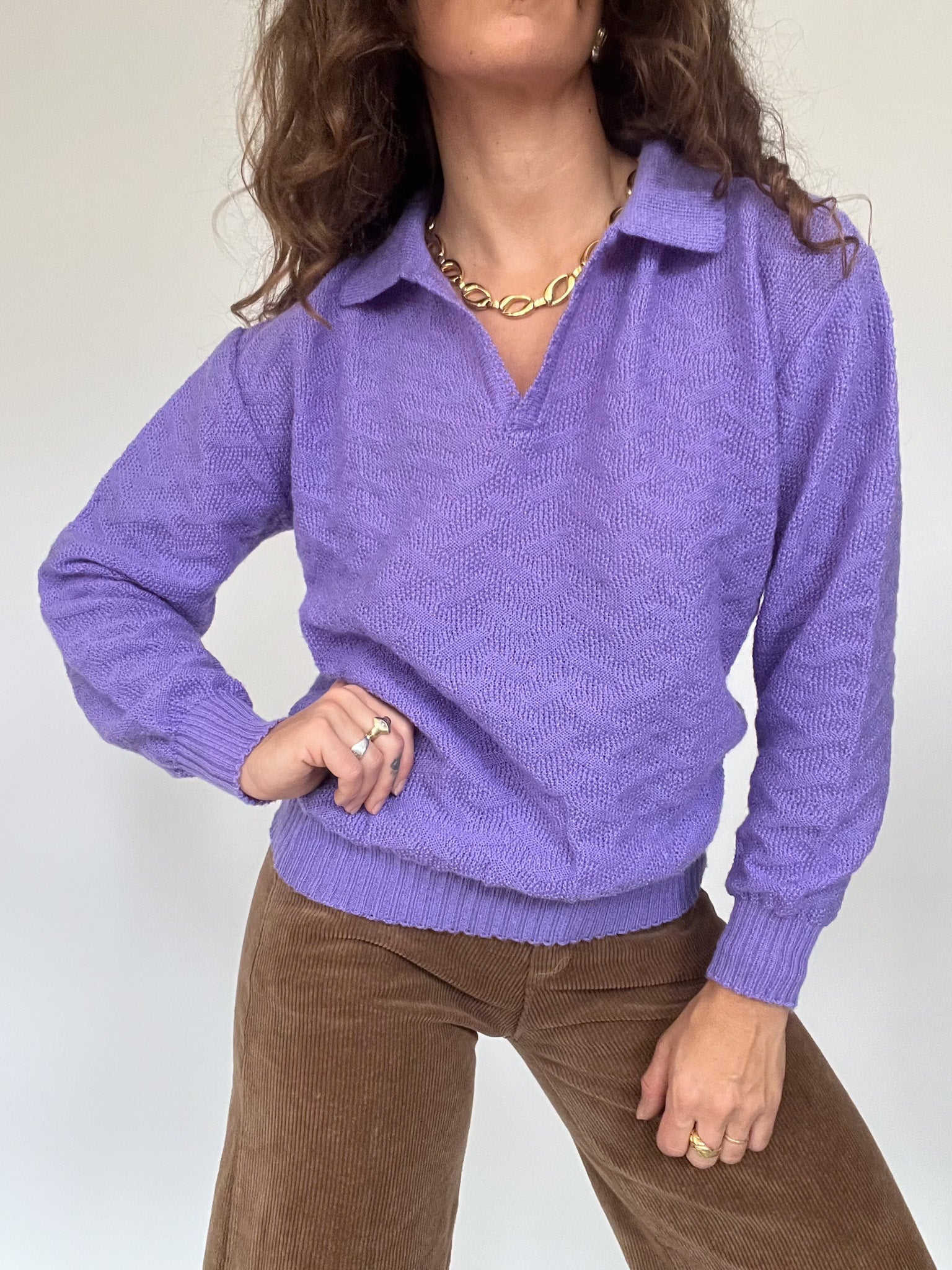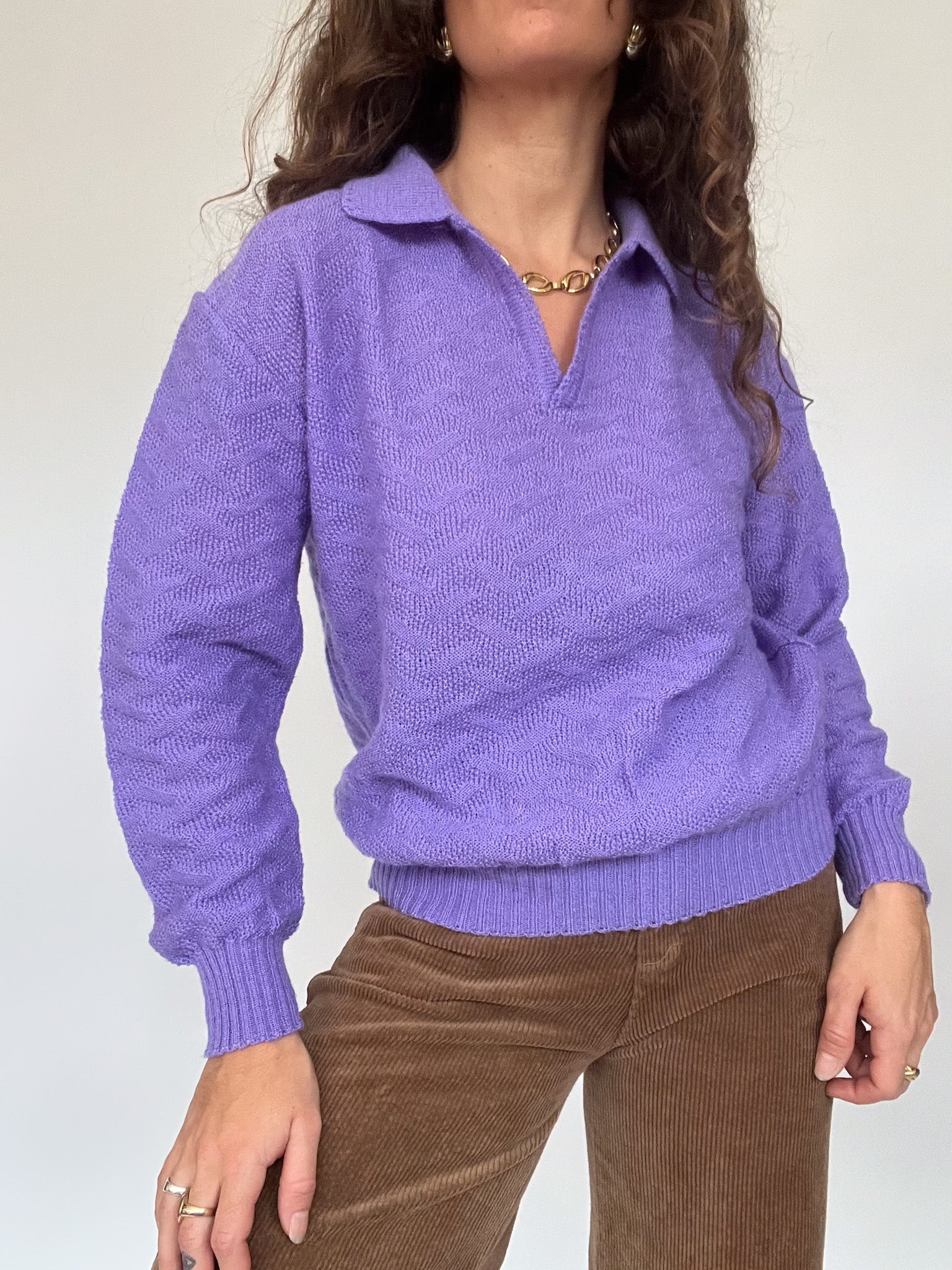 Vintage 80’s Purple Patterned Knit Polo Sweater