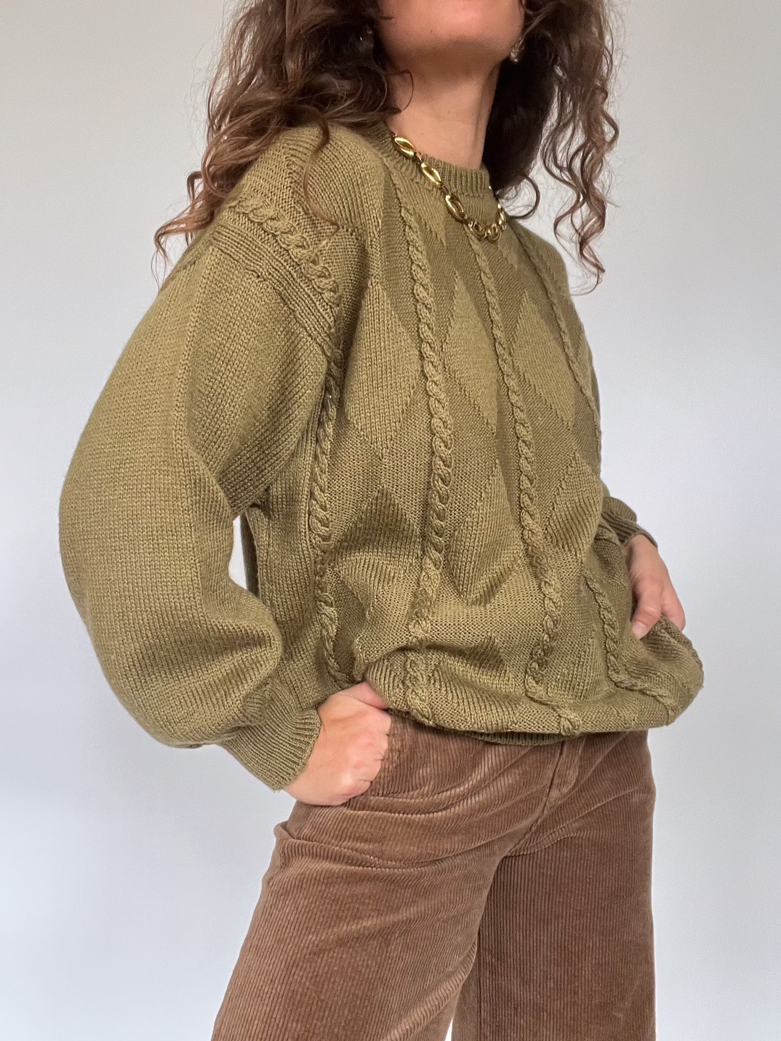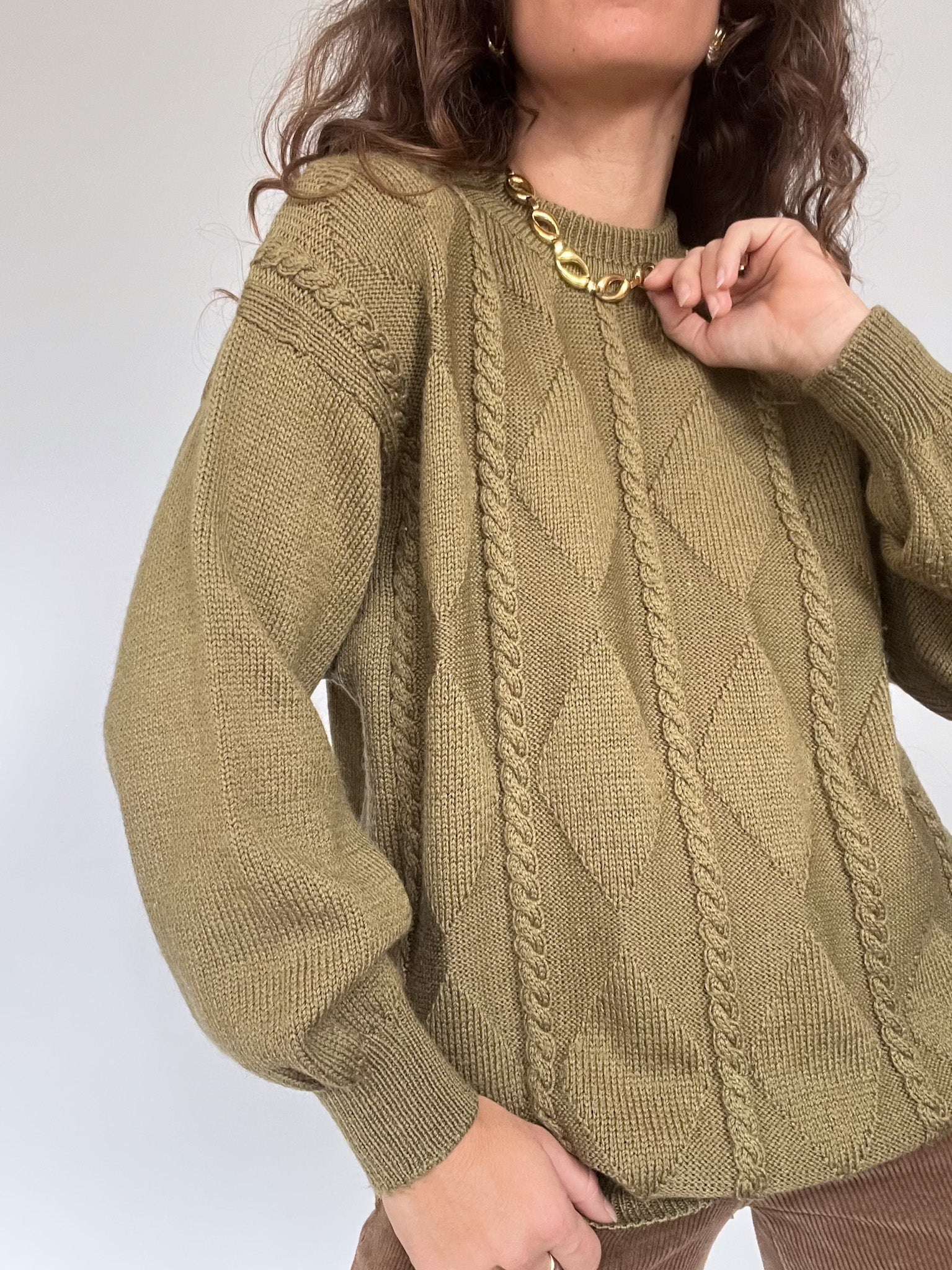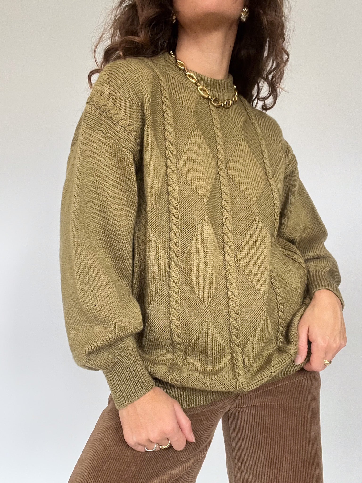 Vintage 80’s Olive Cable Knit Sweater