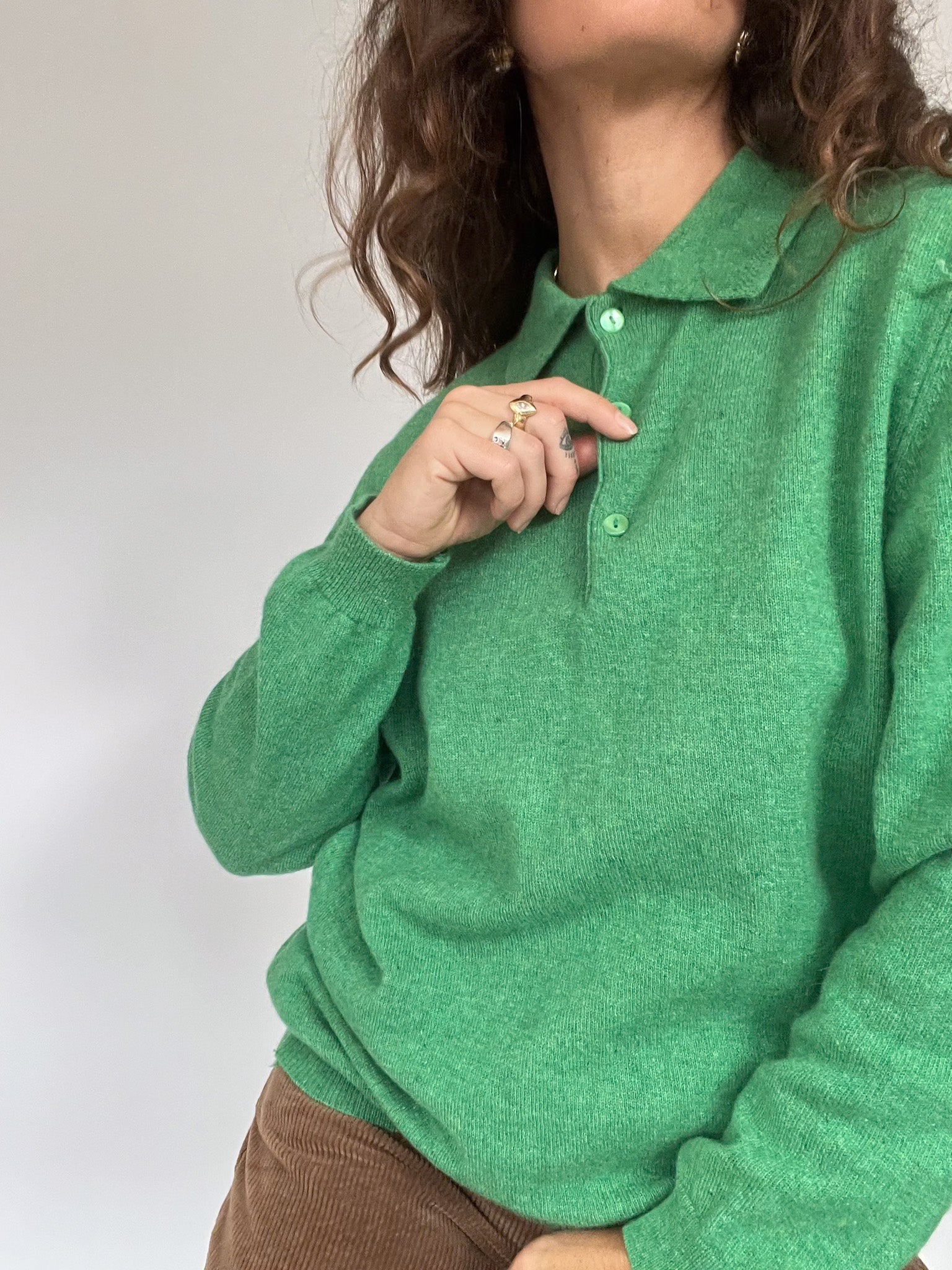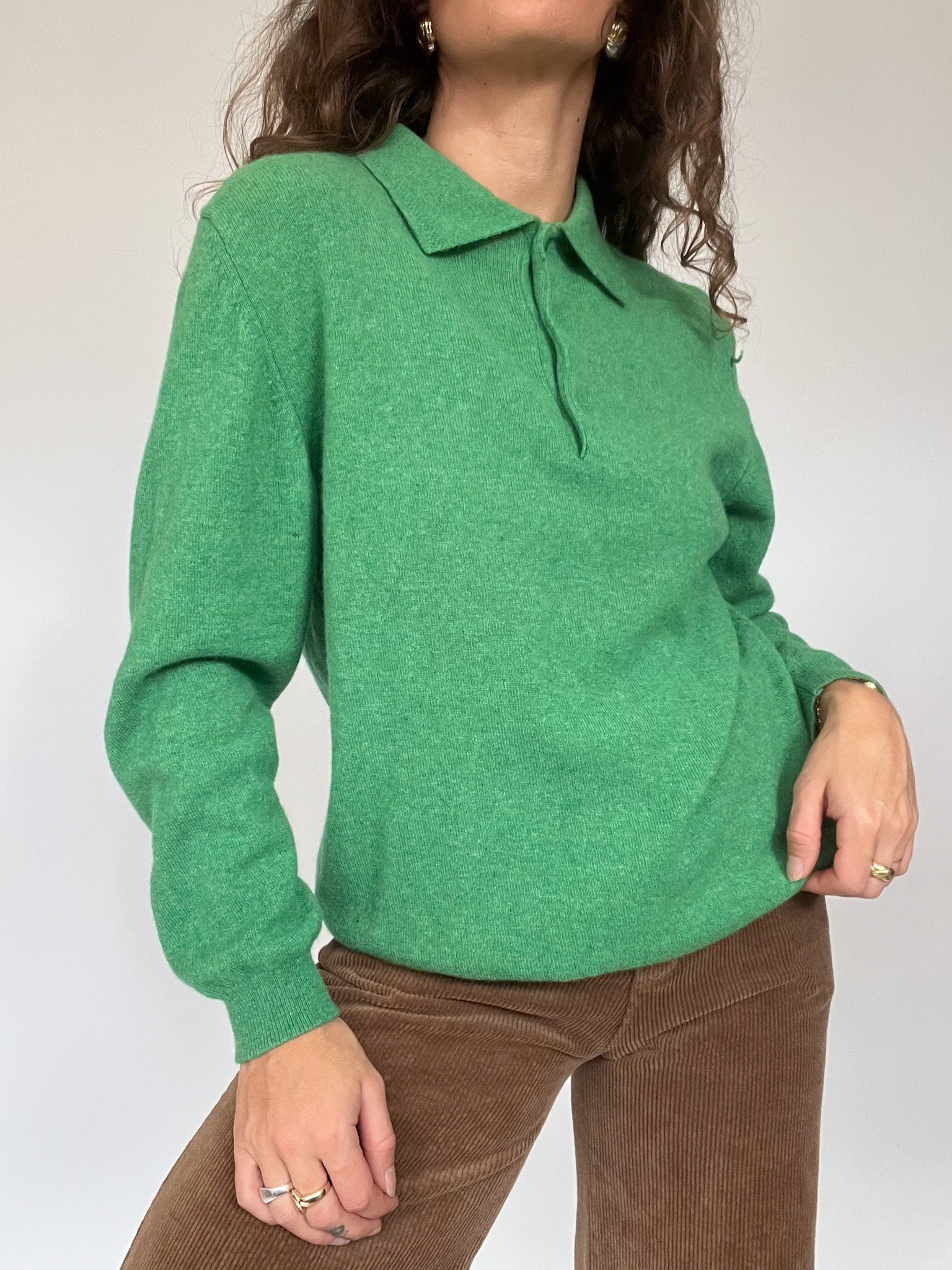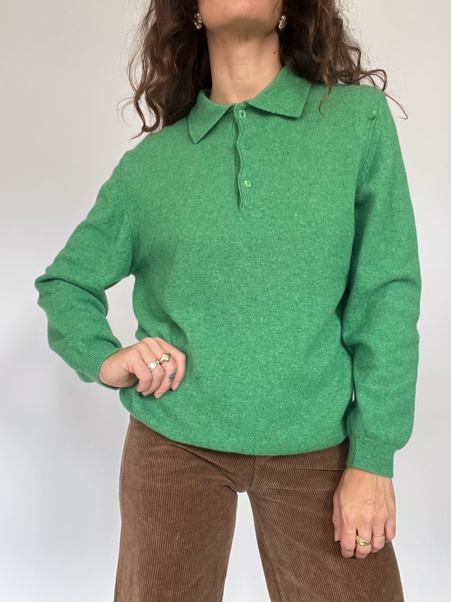 Vintage 80’s Emerald Green Wool Polo Sweater