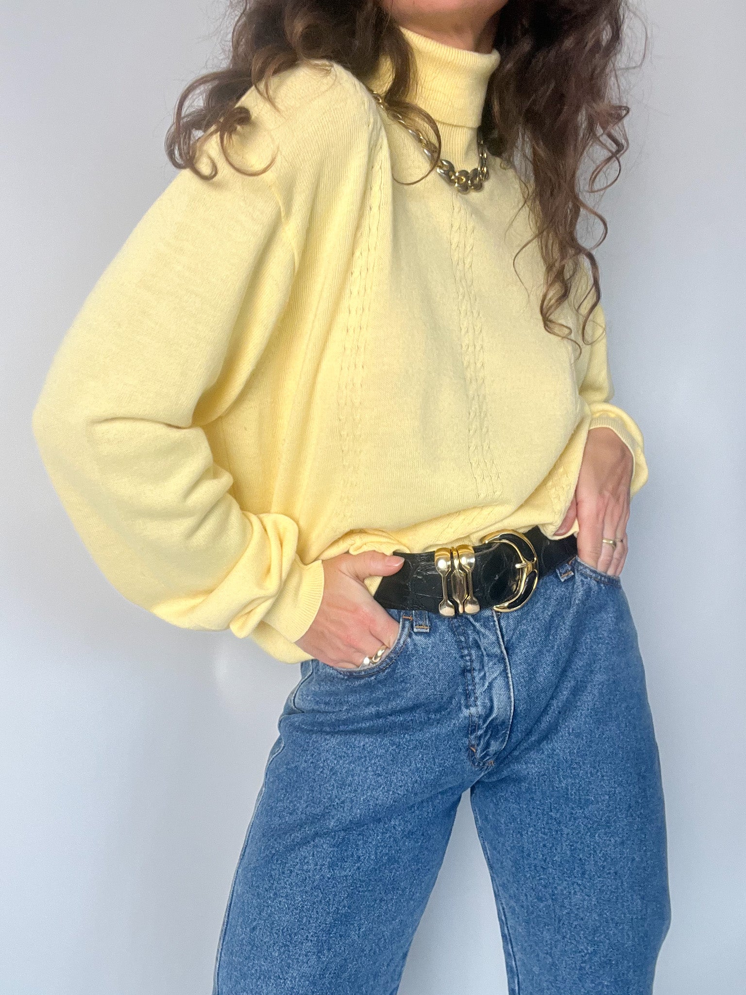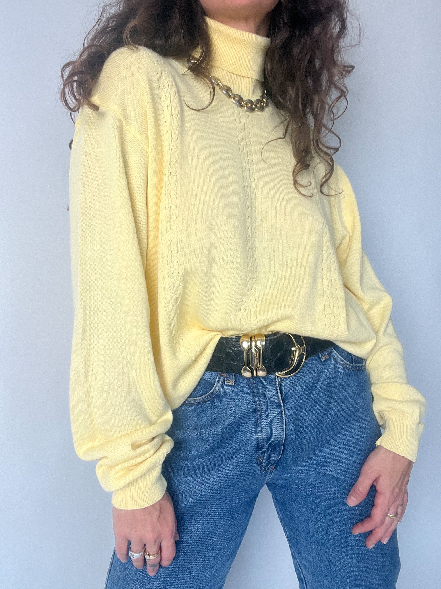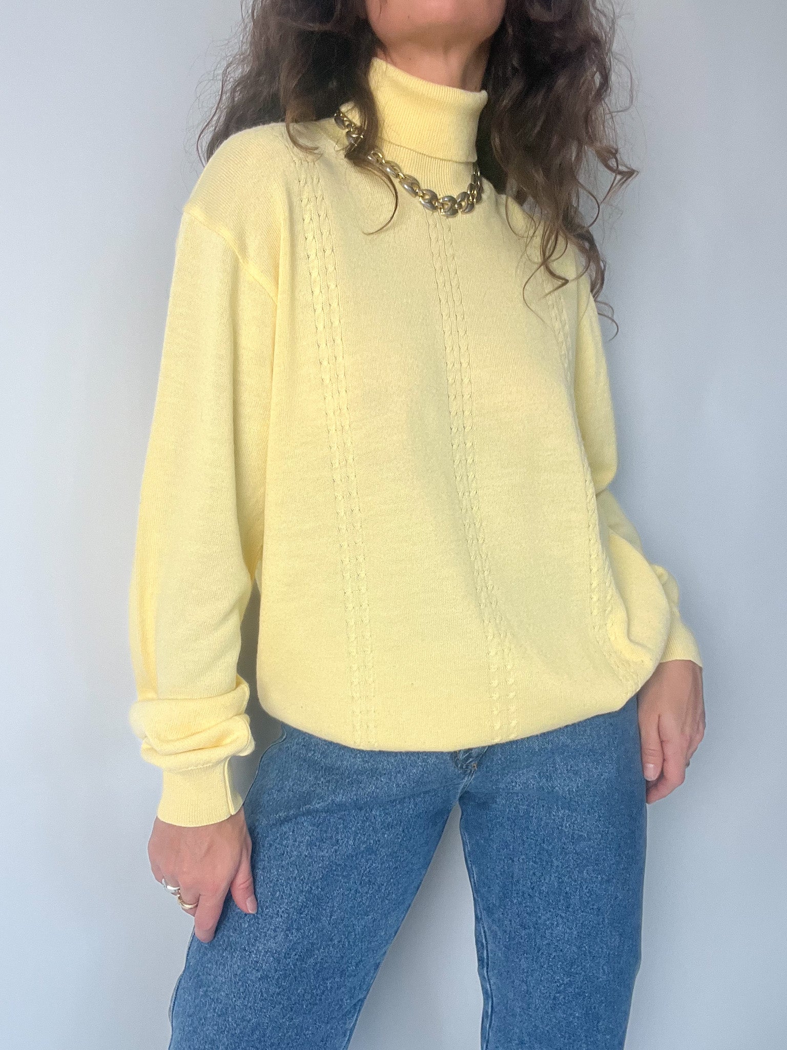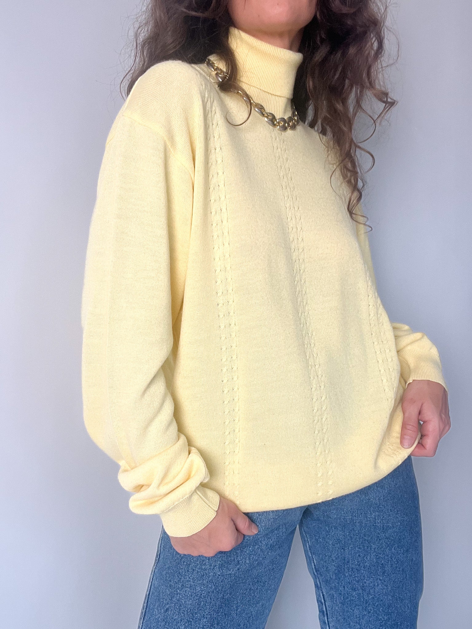 Vintage 80’s Pastel Yellow Wool Blend Turtleneck Sweater