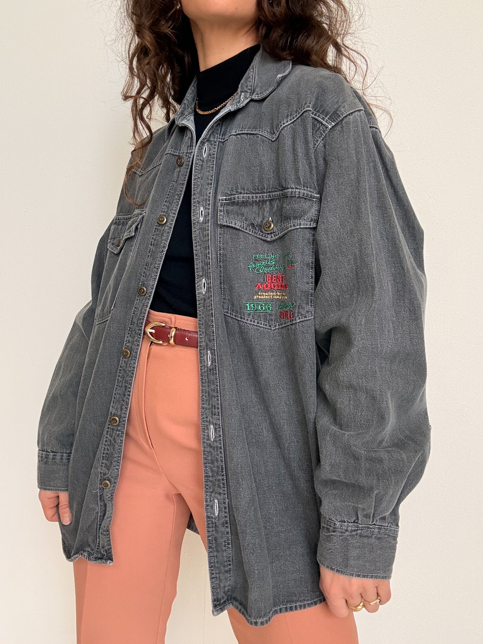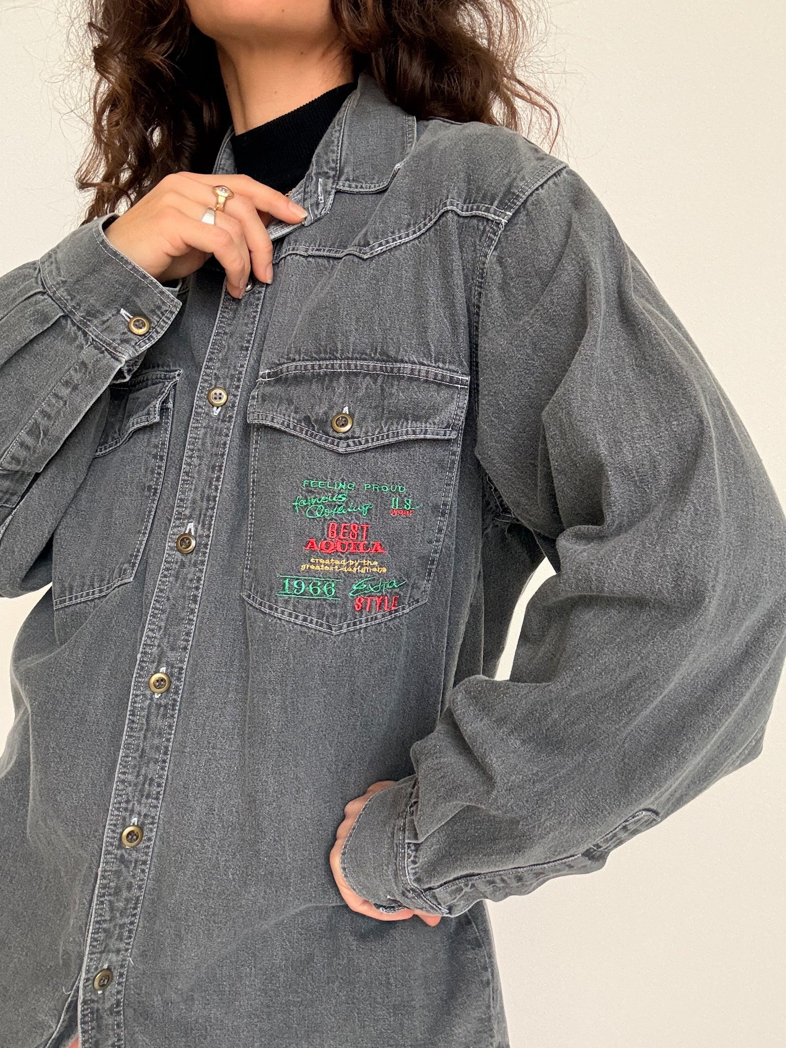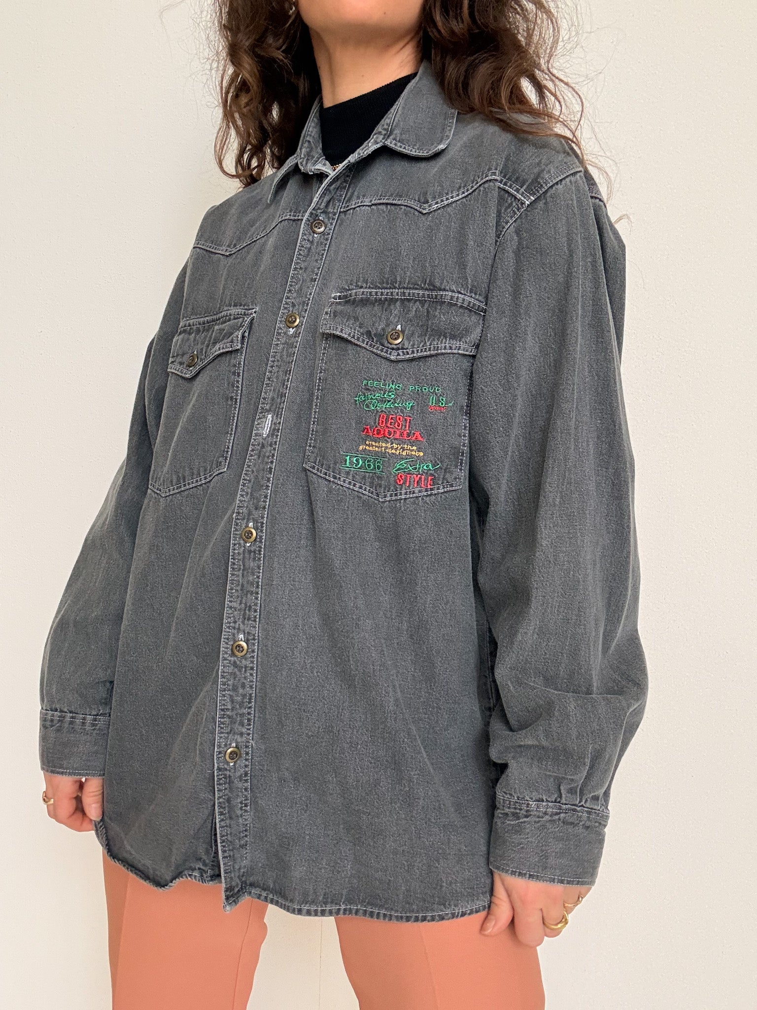 Vintage 90’s Grey Denim Embroidered Shirt