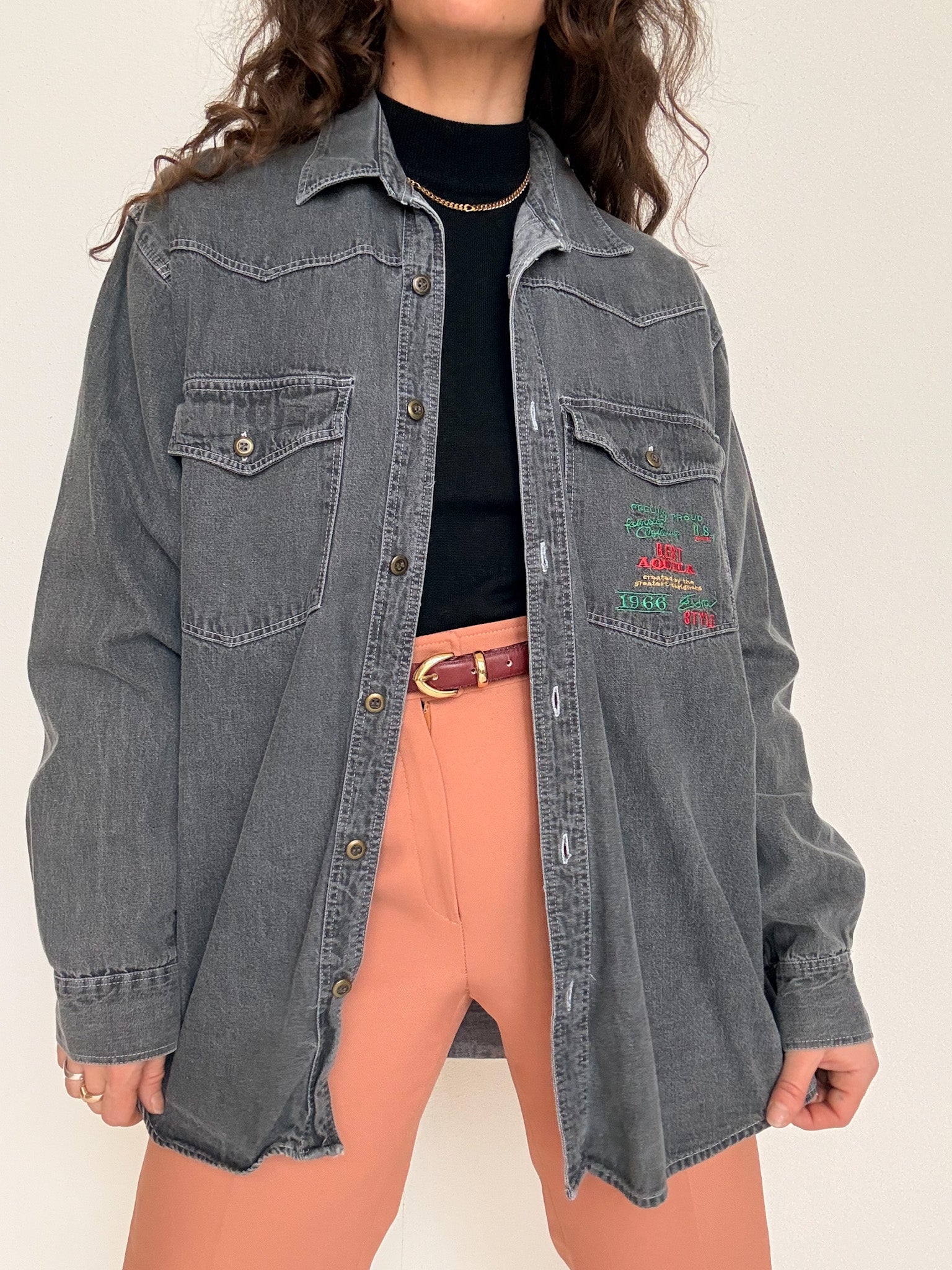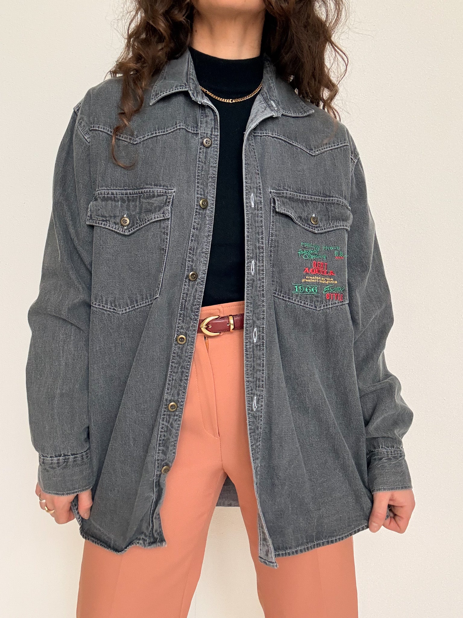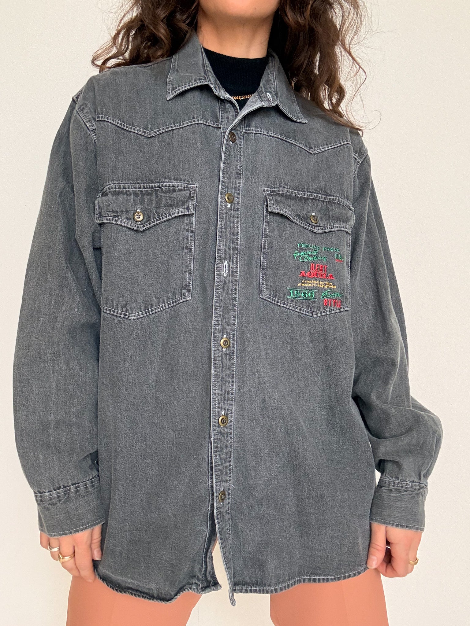 Vintage 90’s Grey Denim Embroidered Shirt