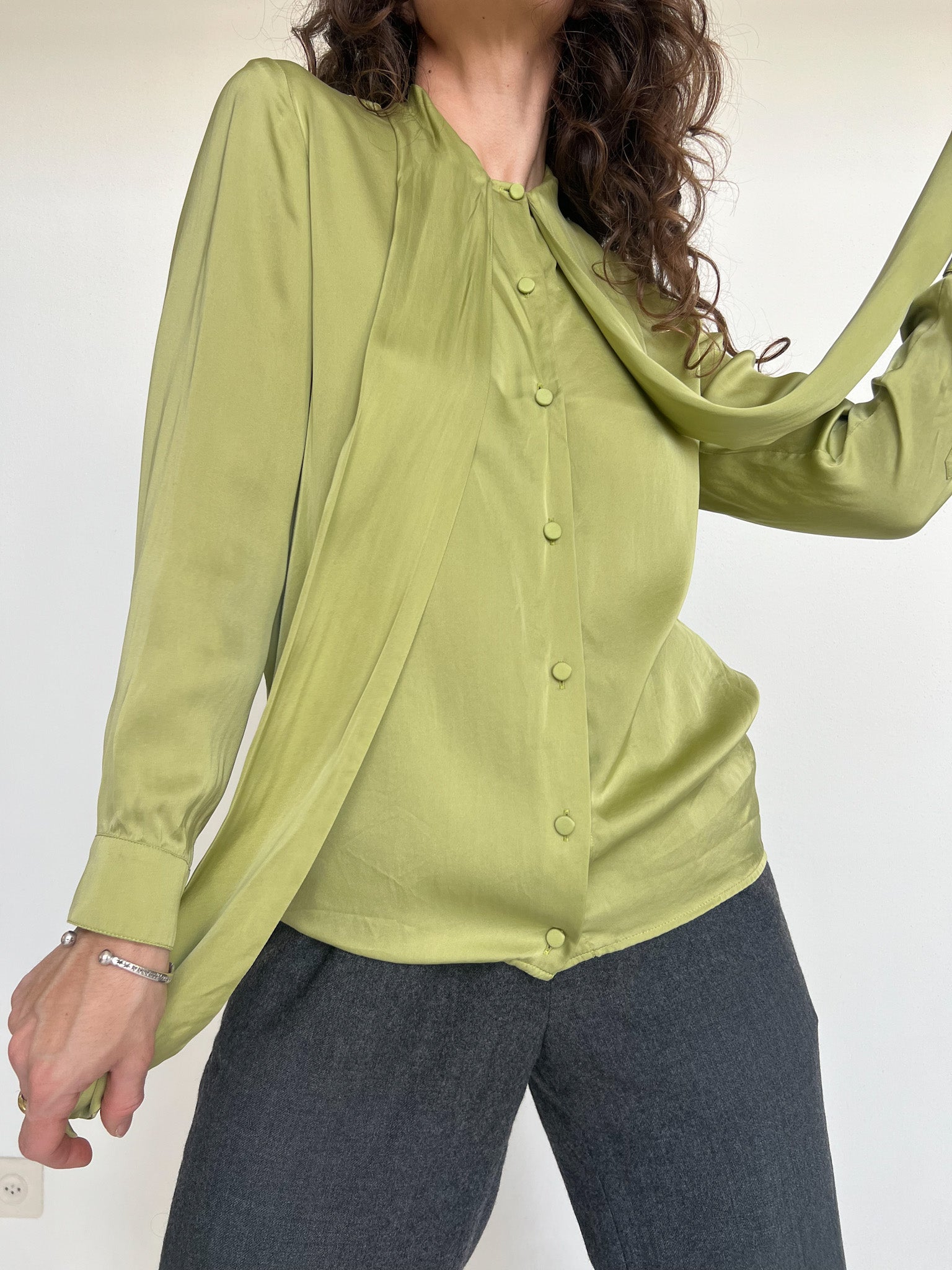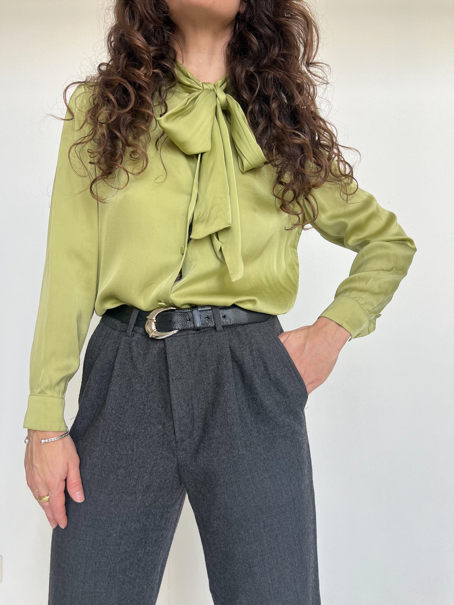 Vintage 80’s Grey Silk Blouse with Pleated Front