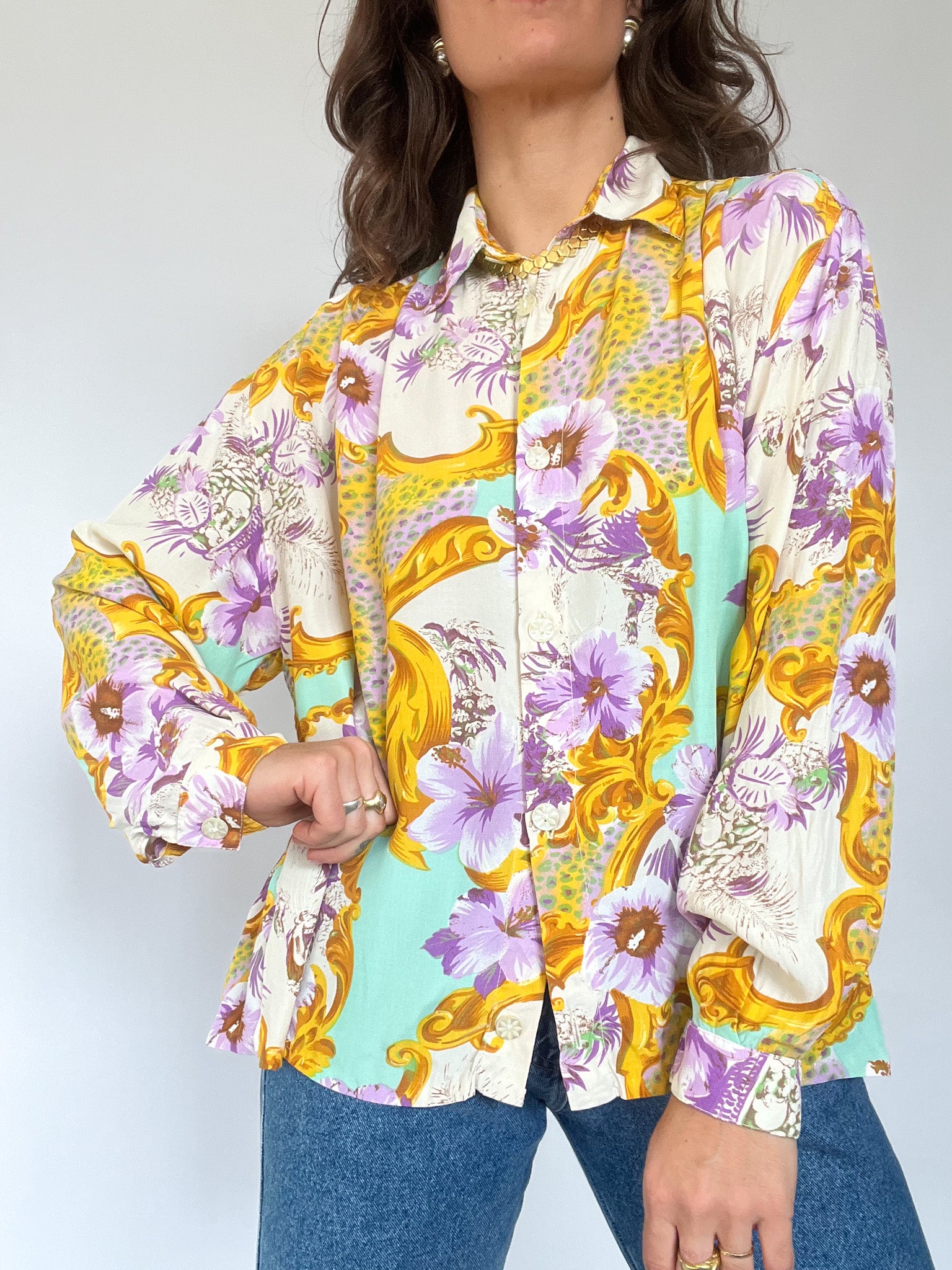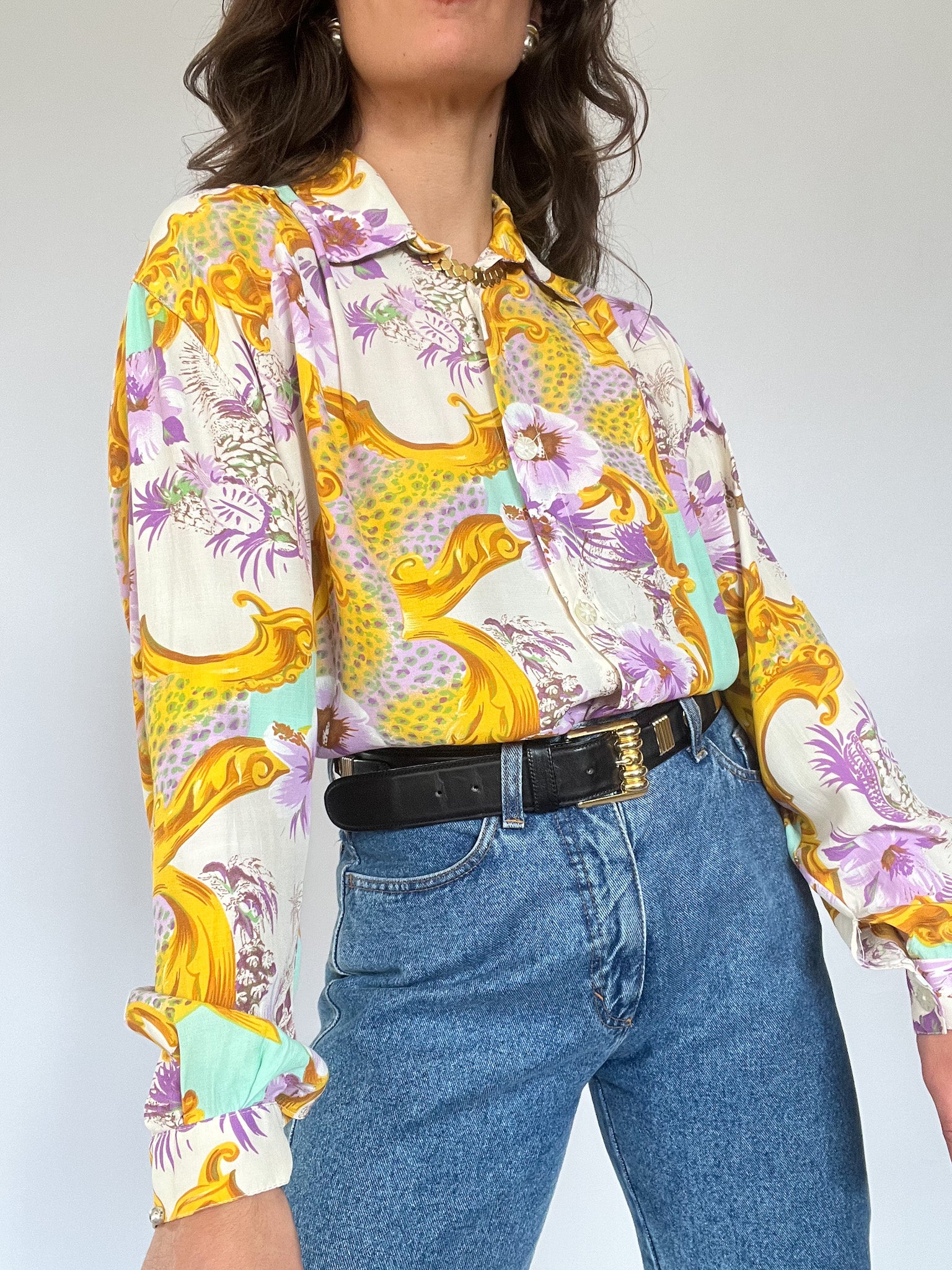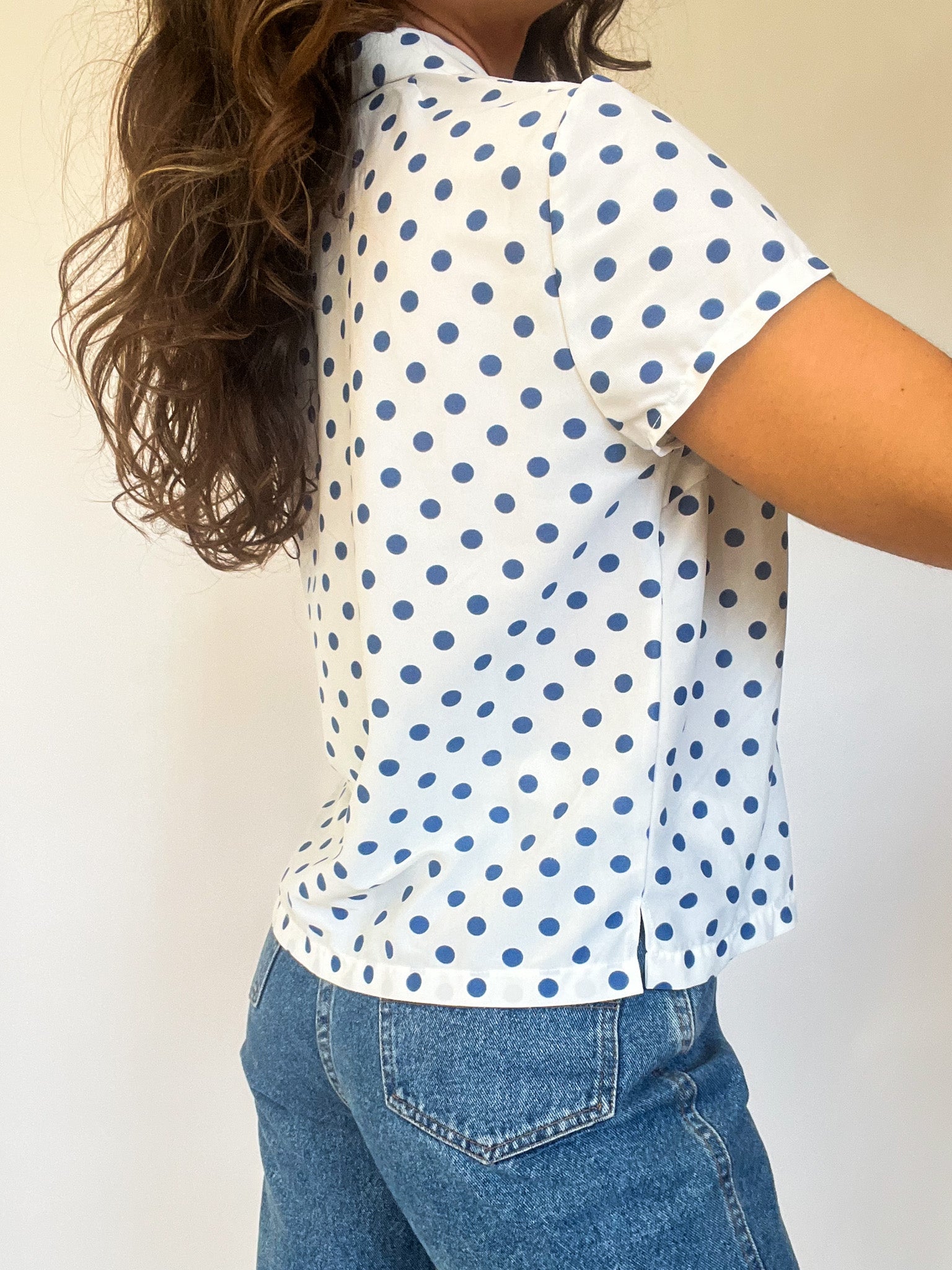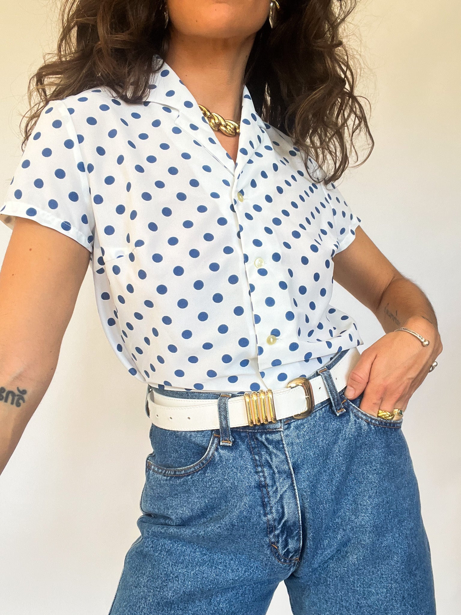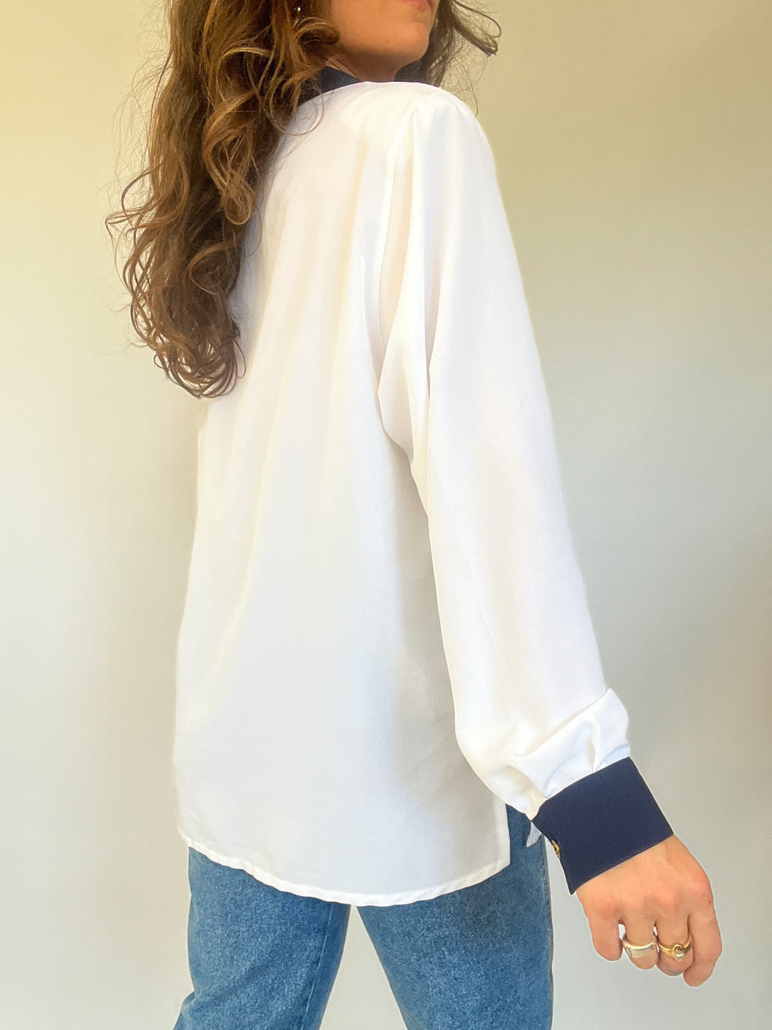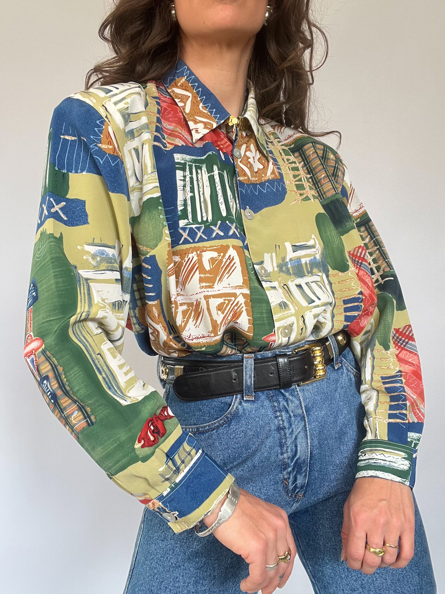 Vintage Navy Patchwork Shirt with Graphic Collar