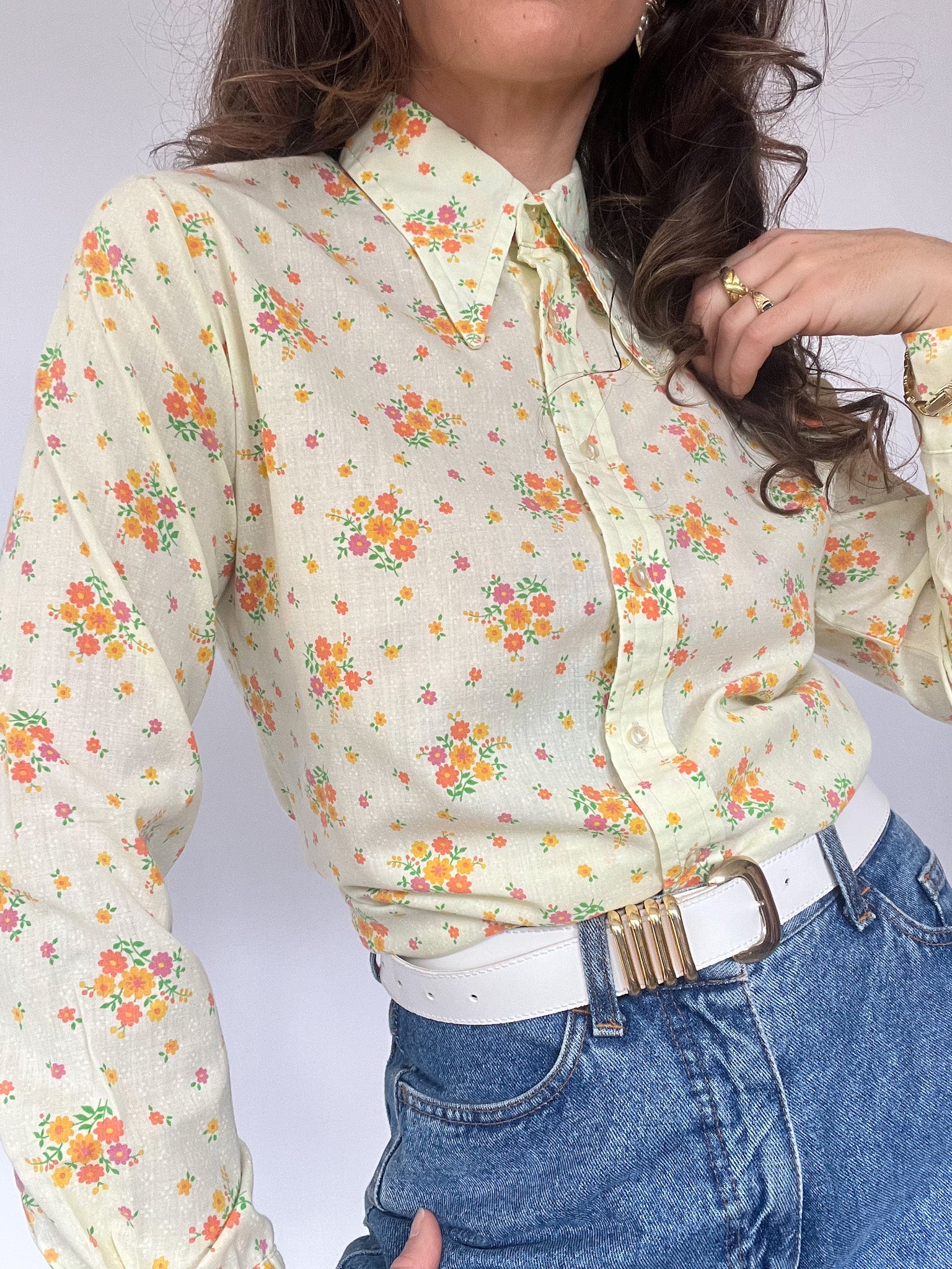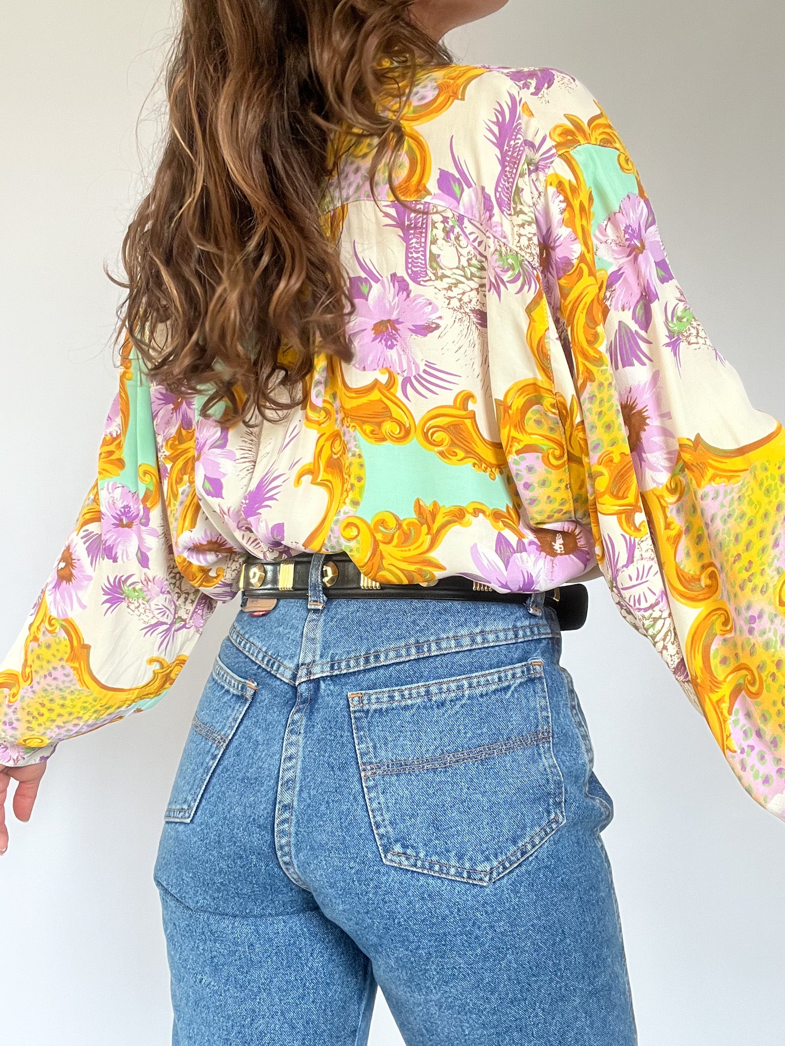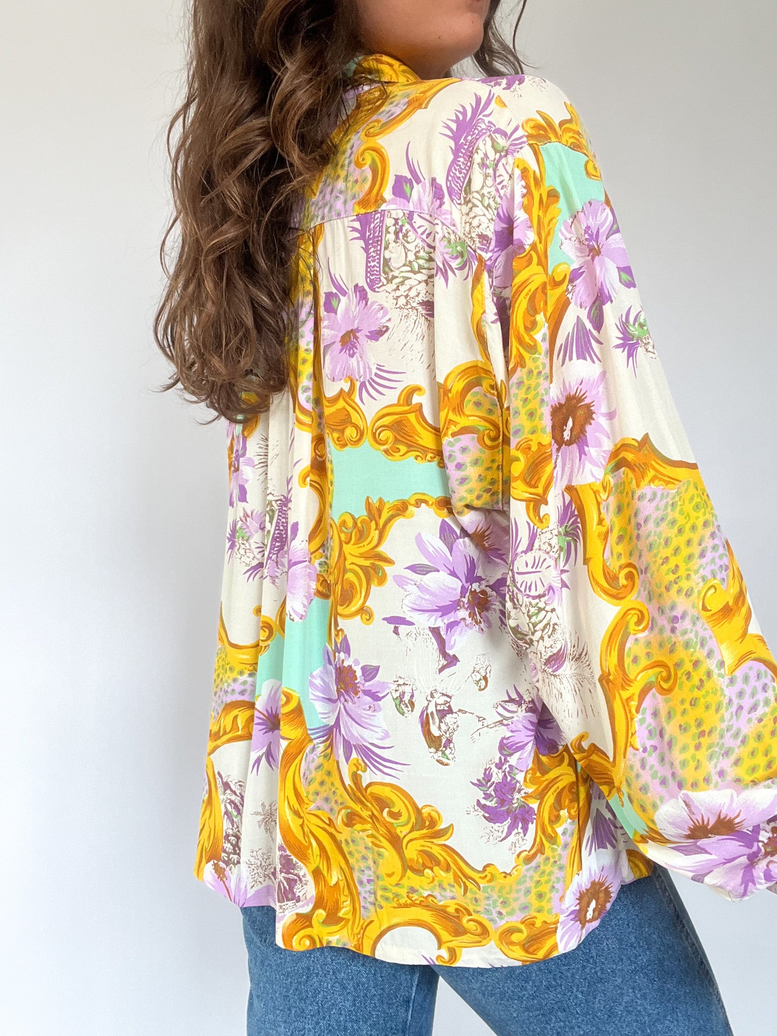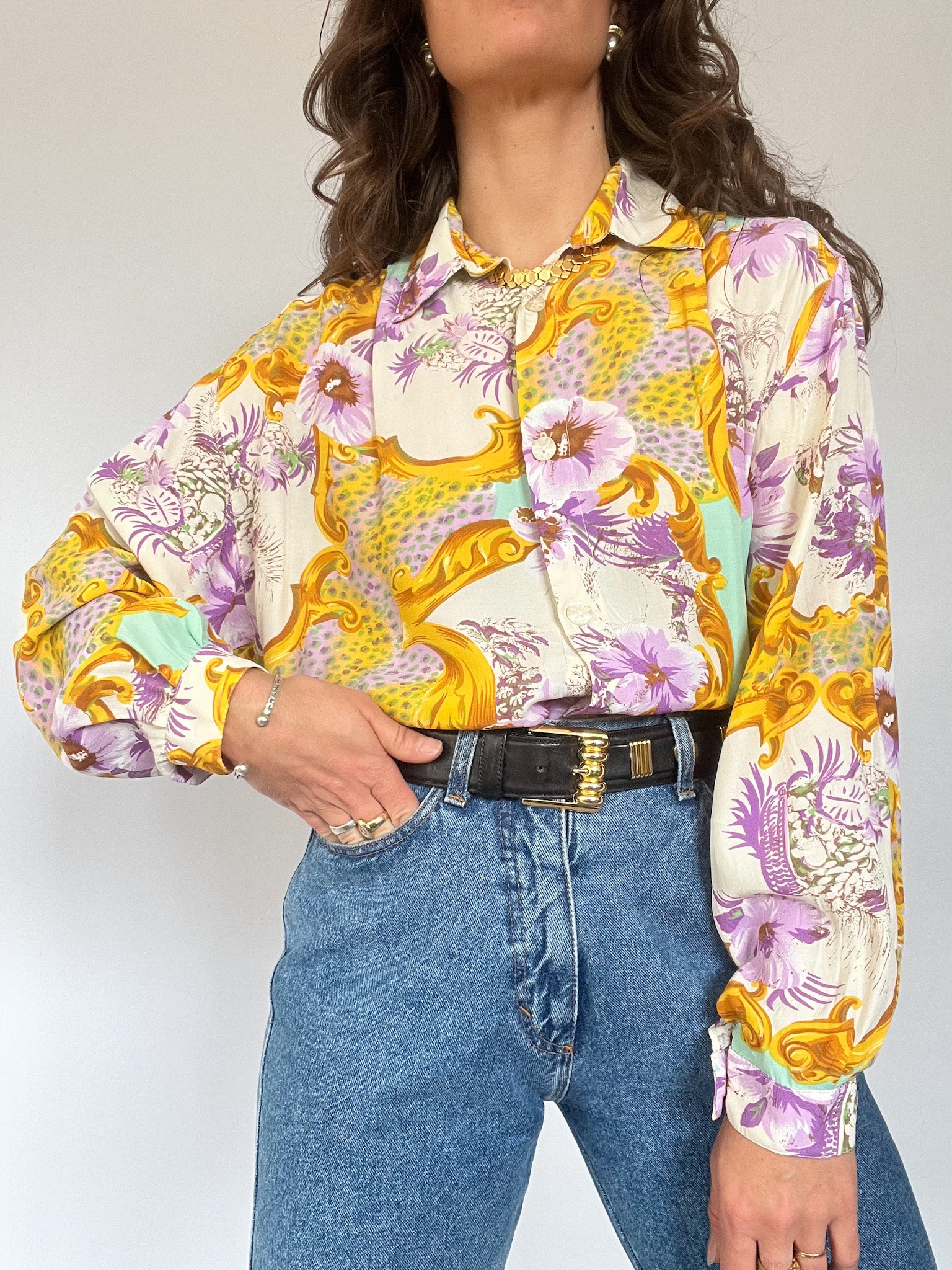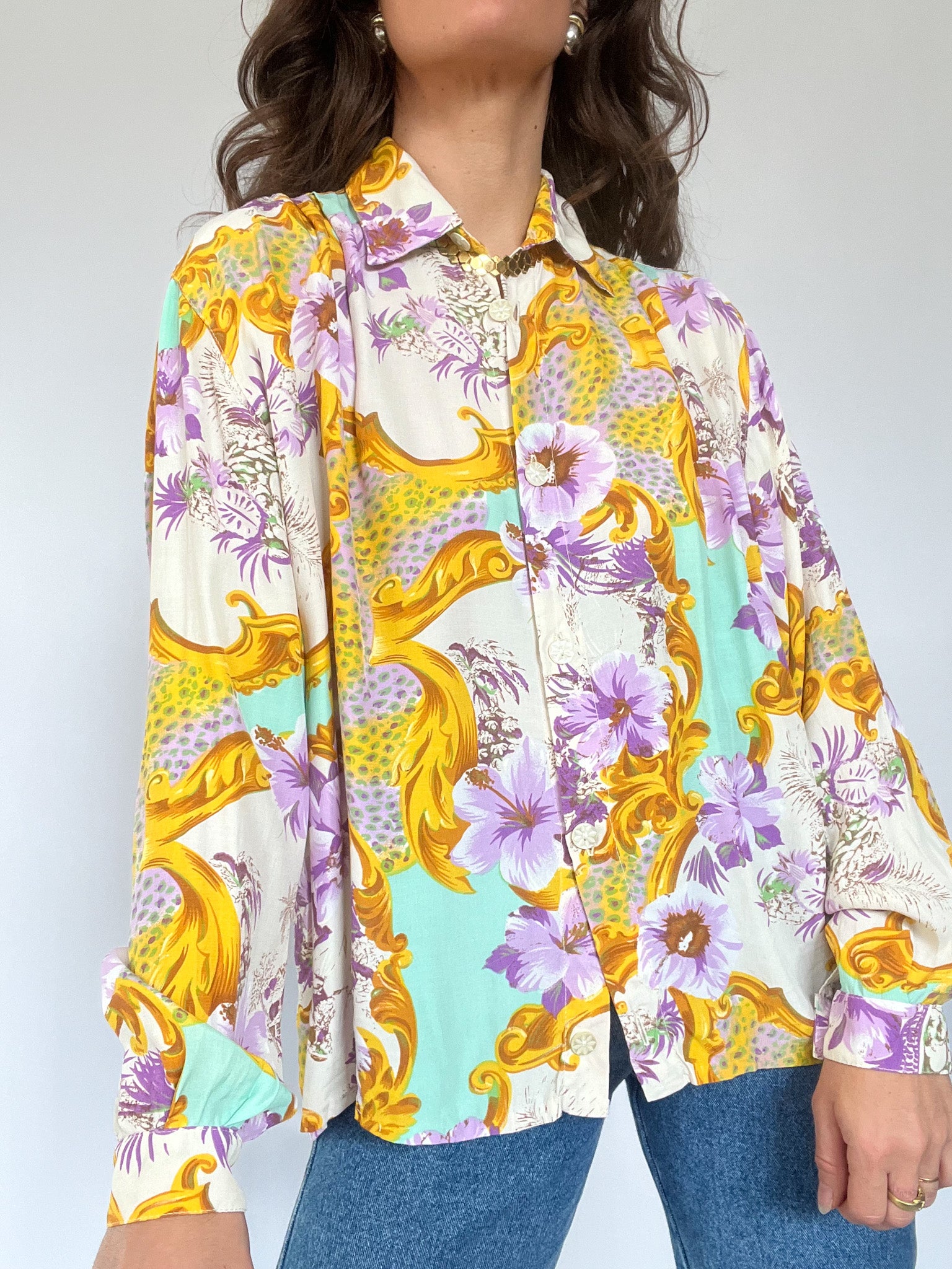 Vintage Navy Patchwork Shirt with Graphic Collar