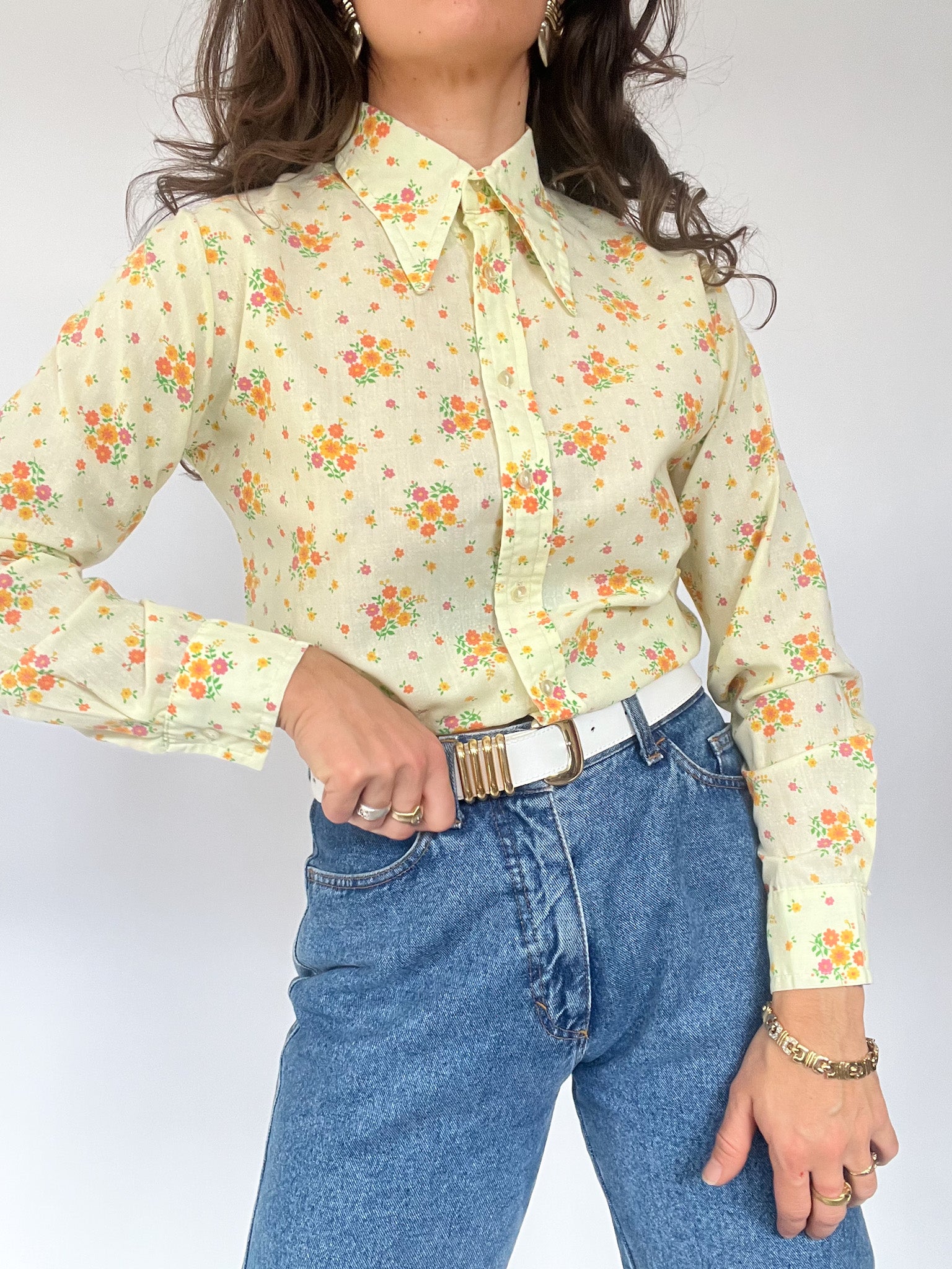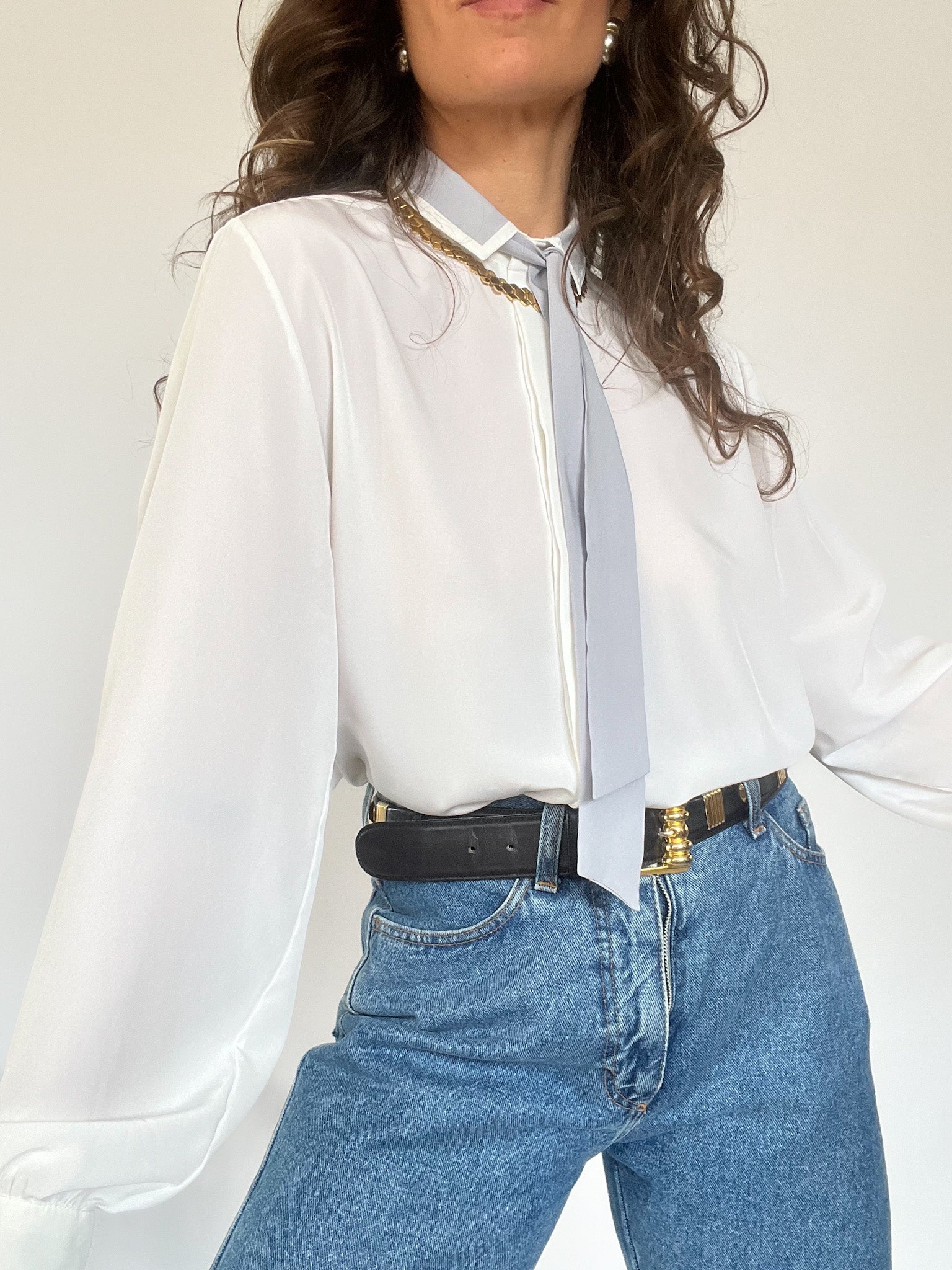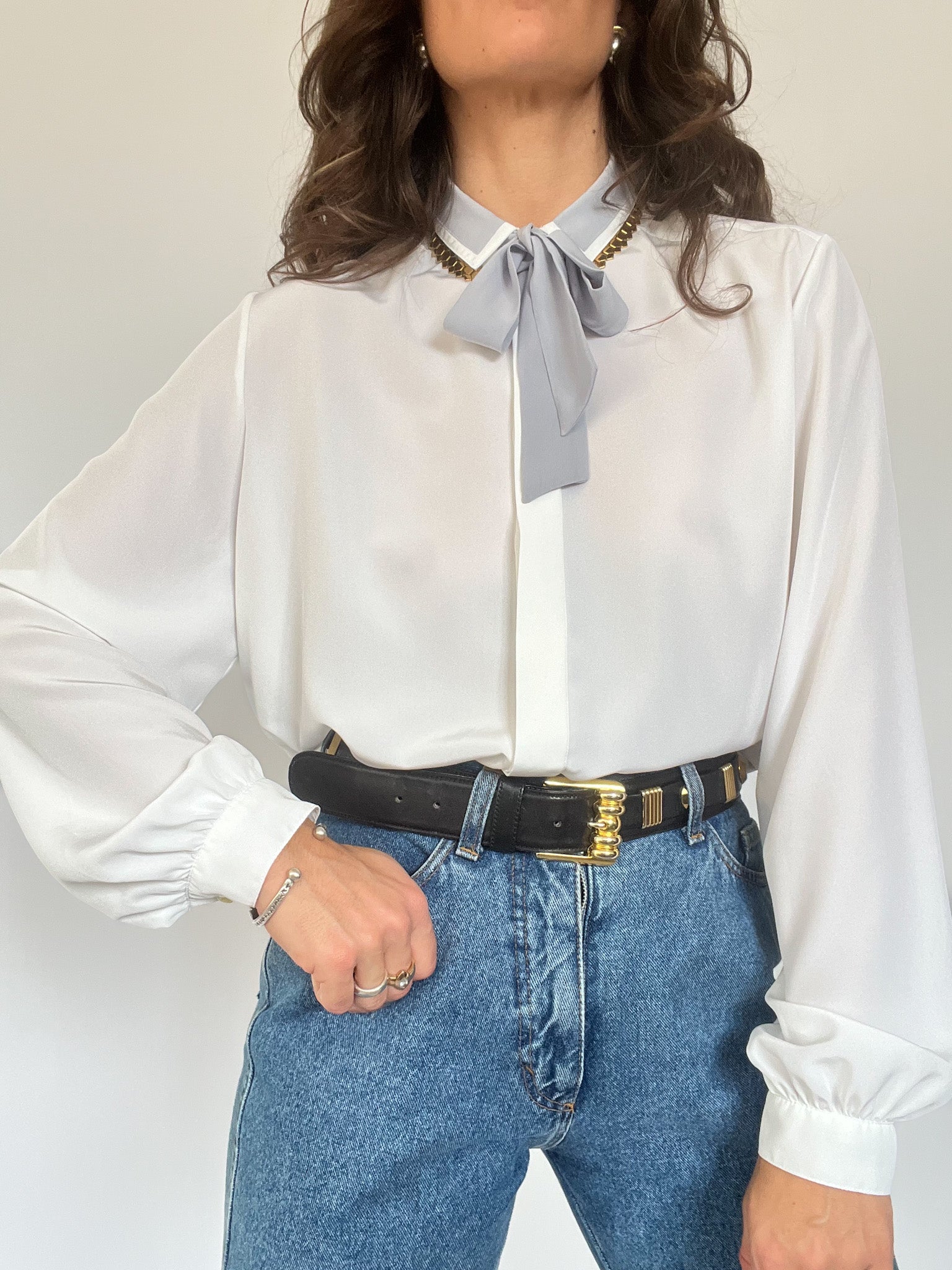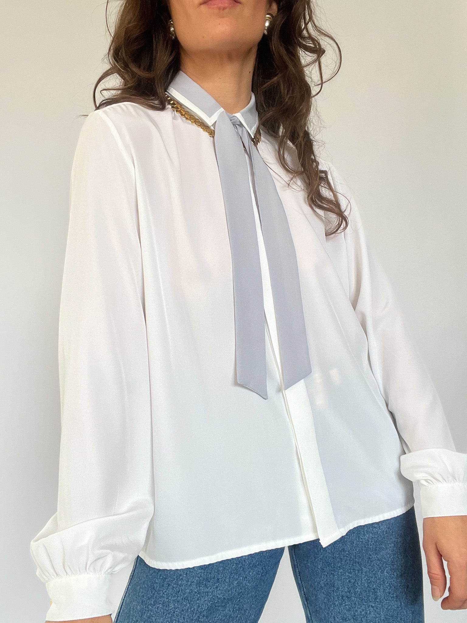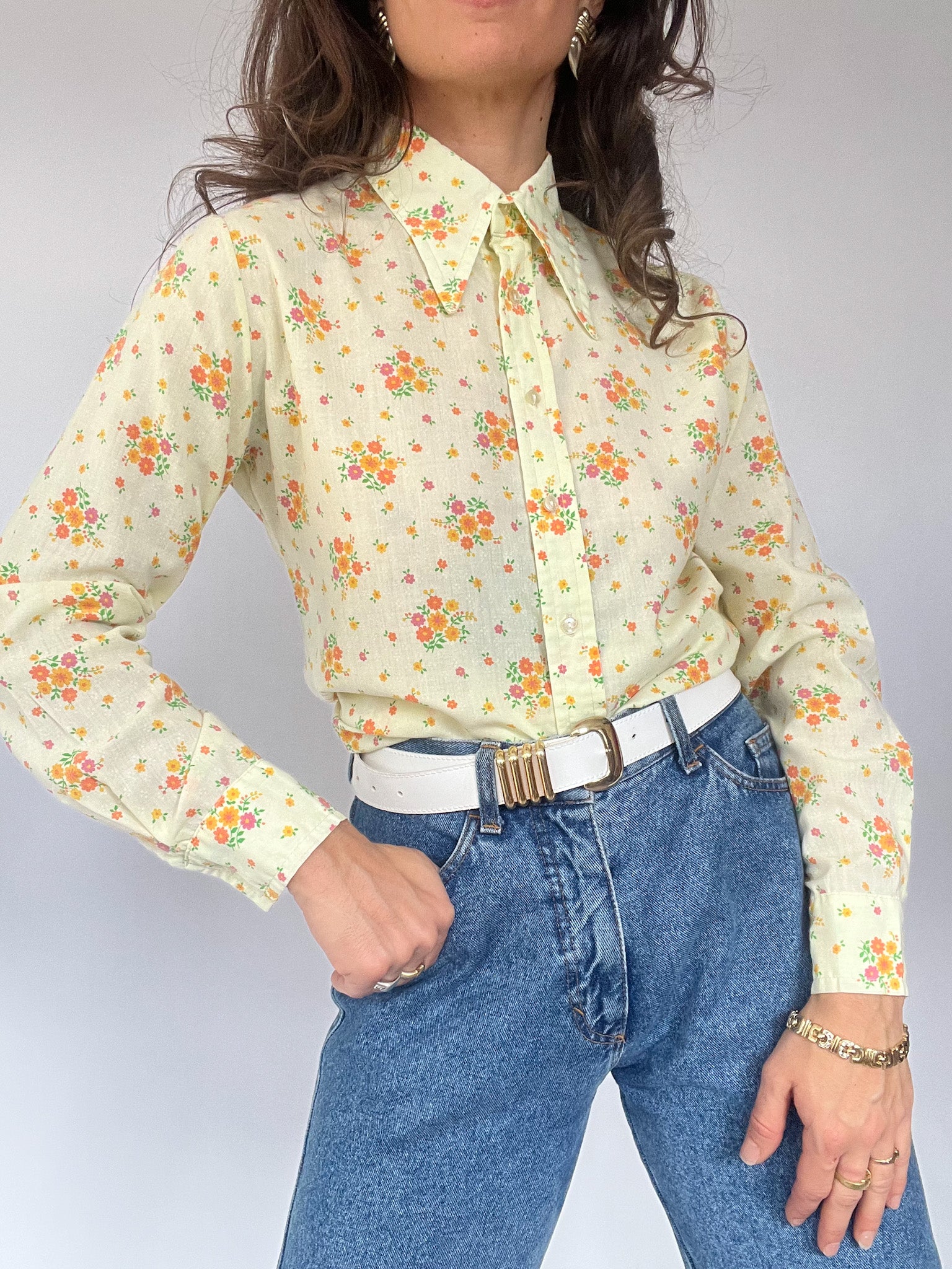 Vintage Navy Patchwork Shirt with Graphic Collar