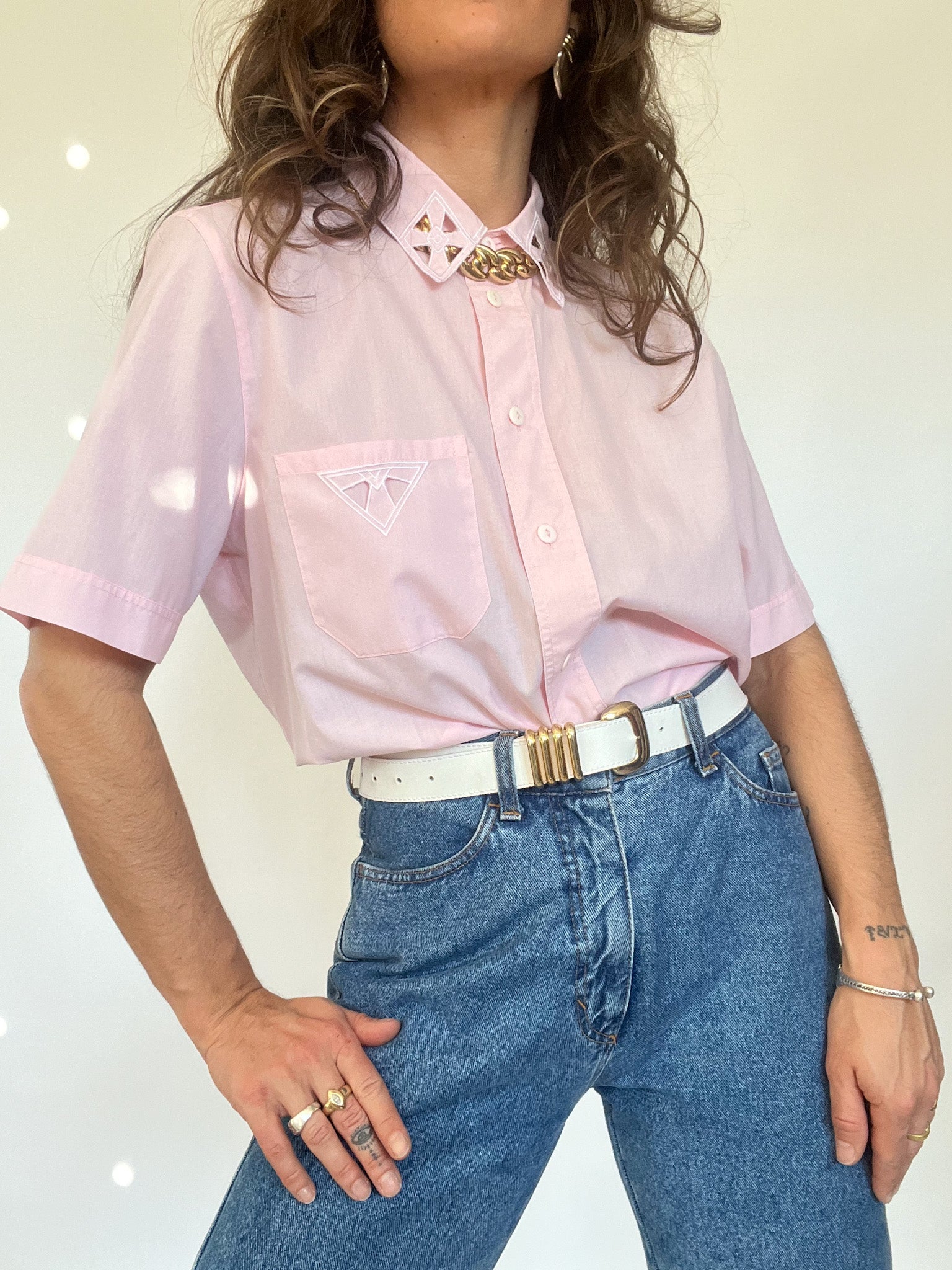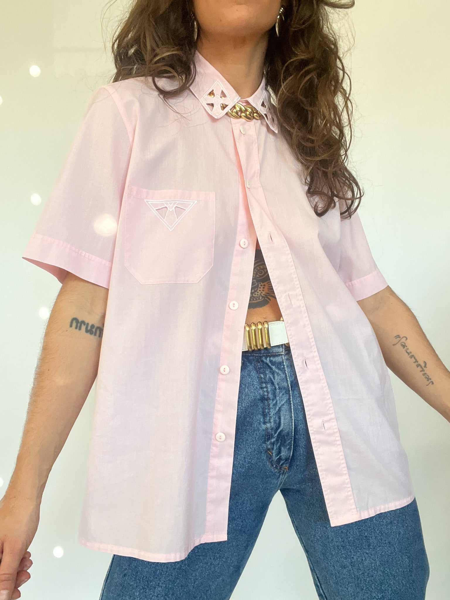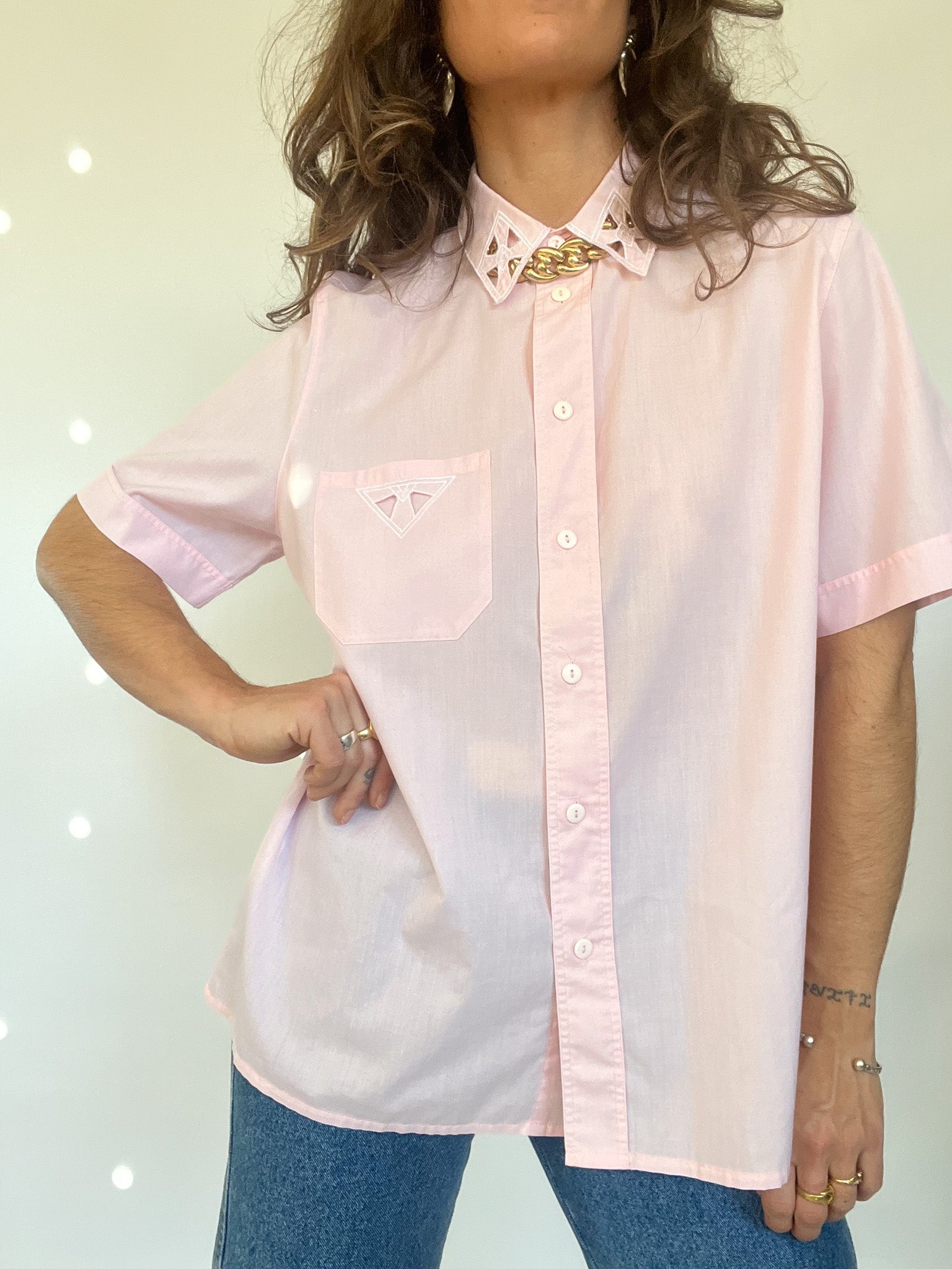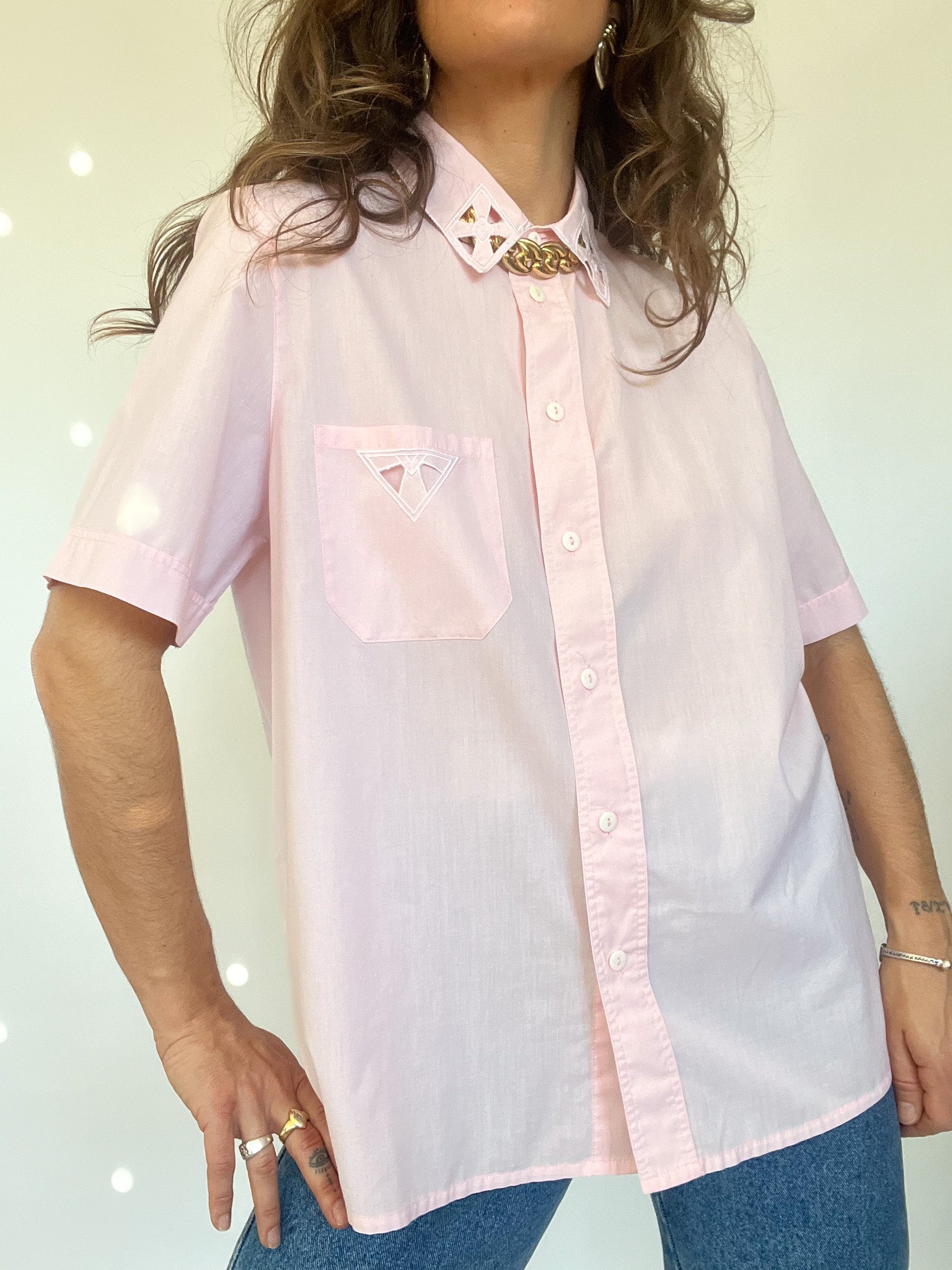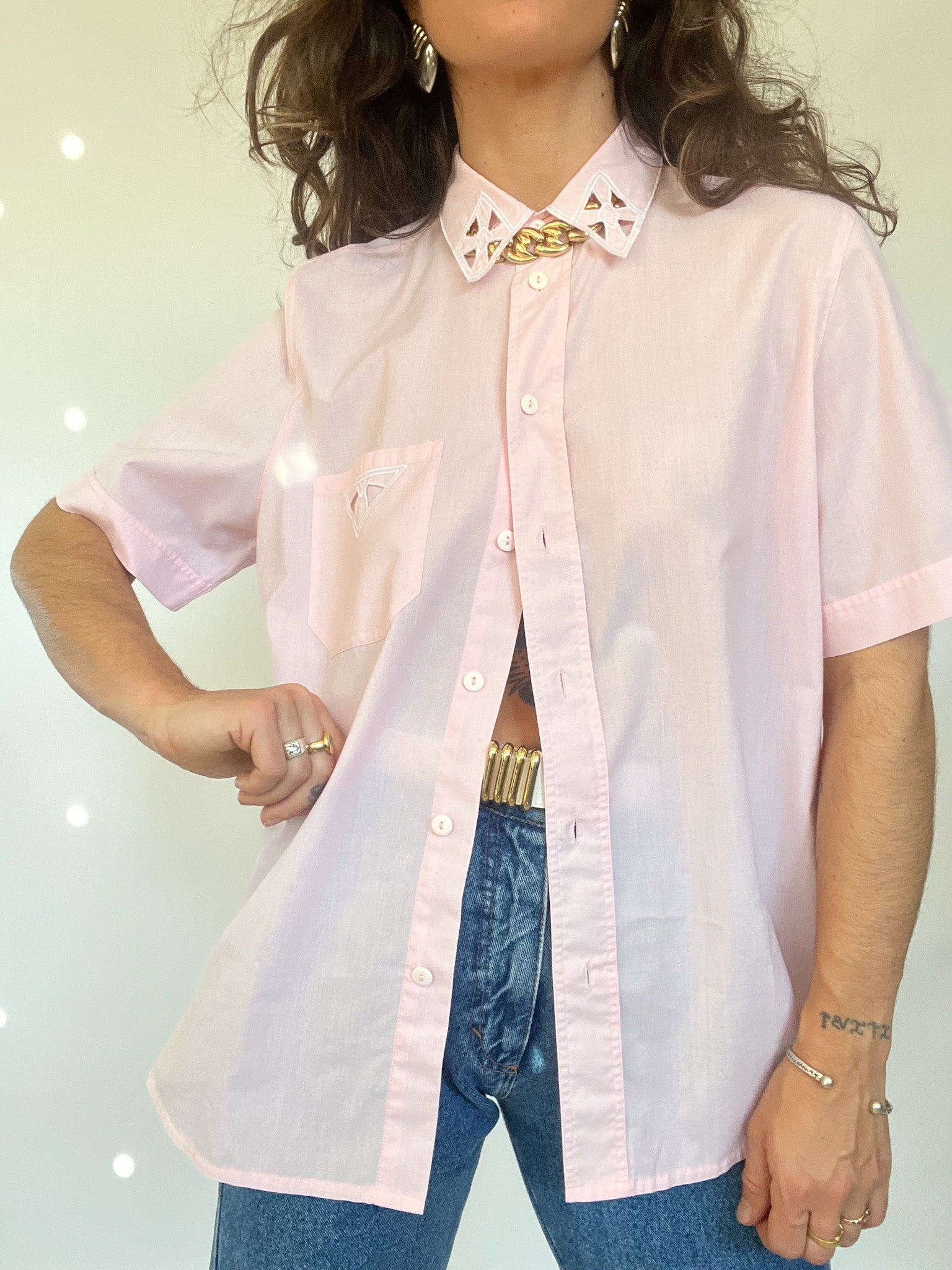 Vintage Pink Shirt with Geometric Cut-Out Collar