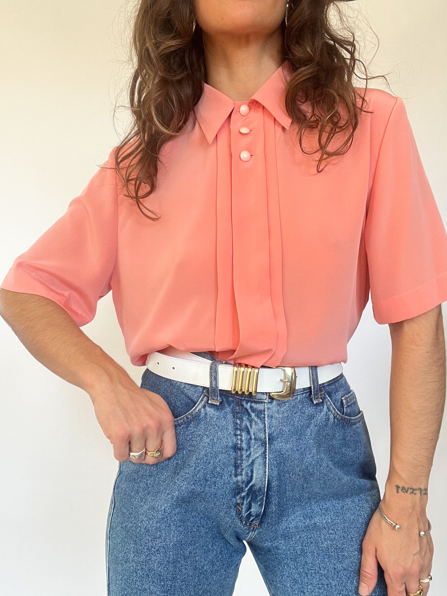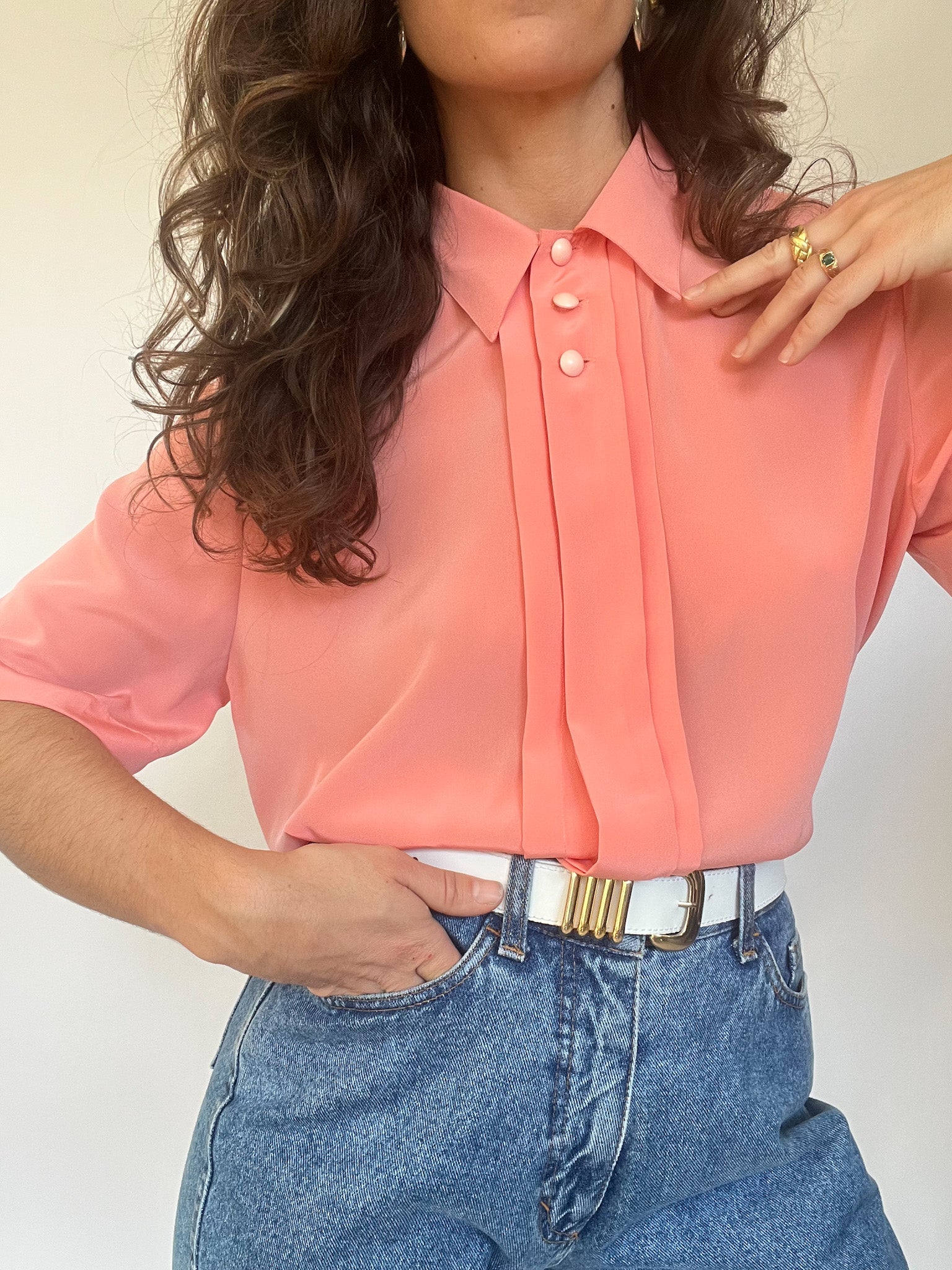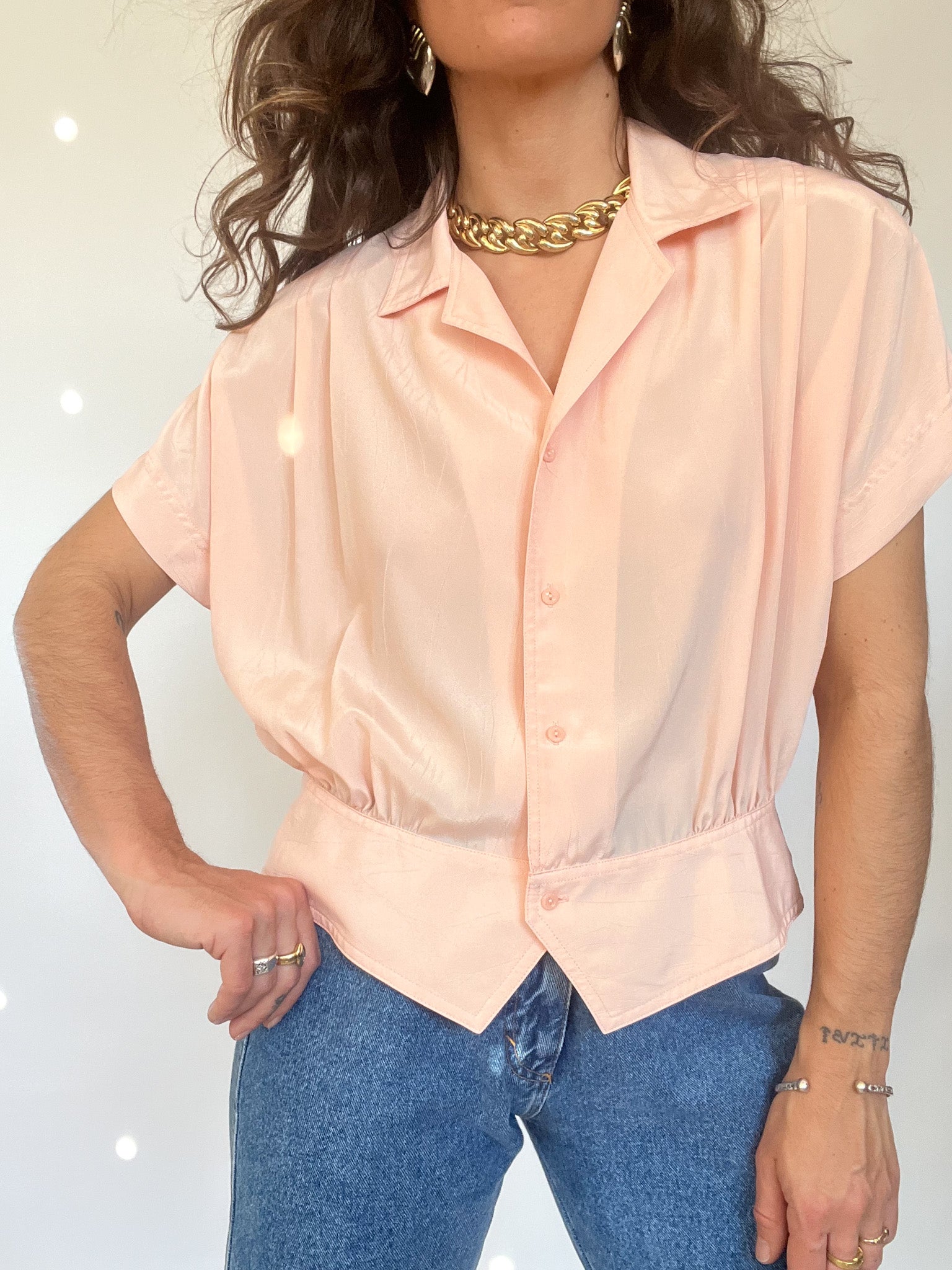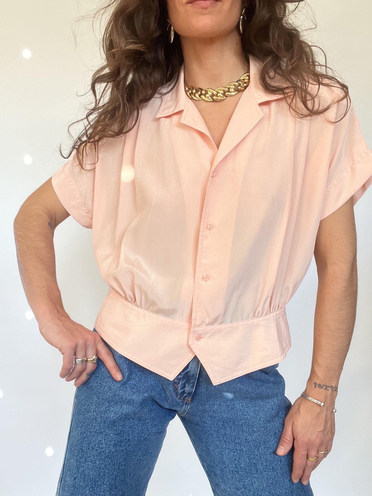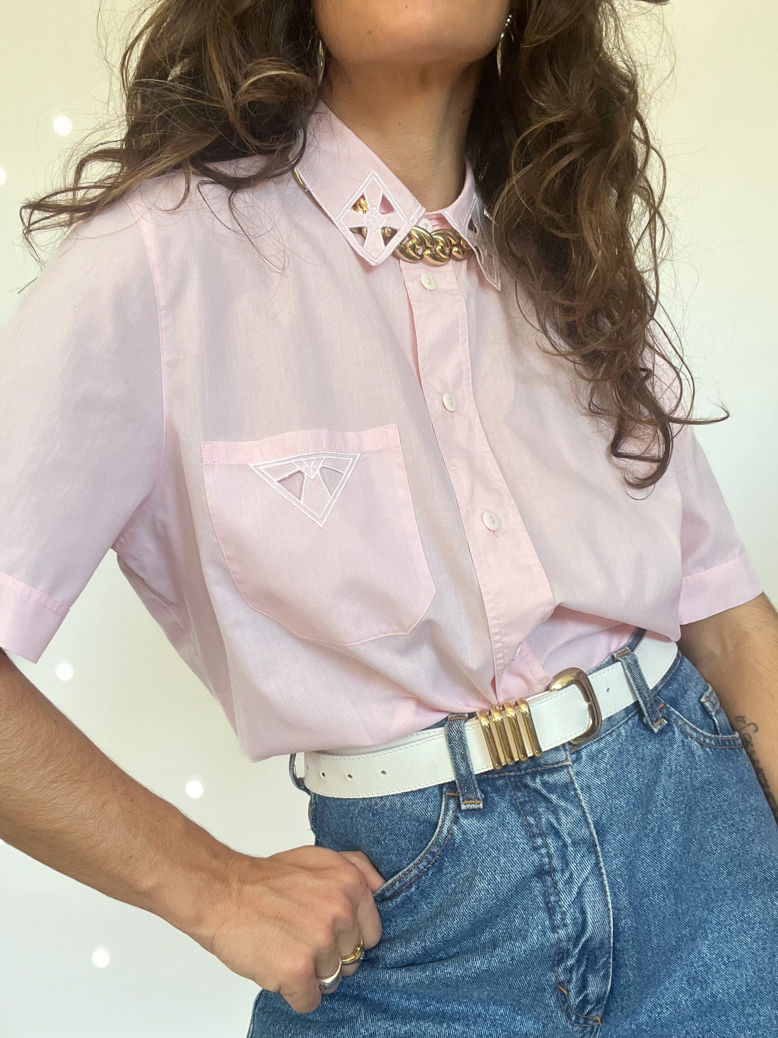 Vintage Pink Shirt with Geometric Cut-Out Collar