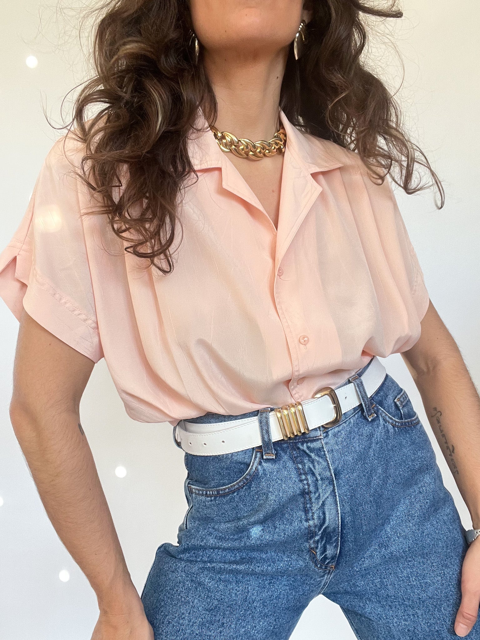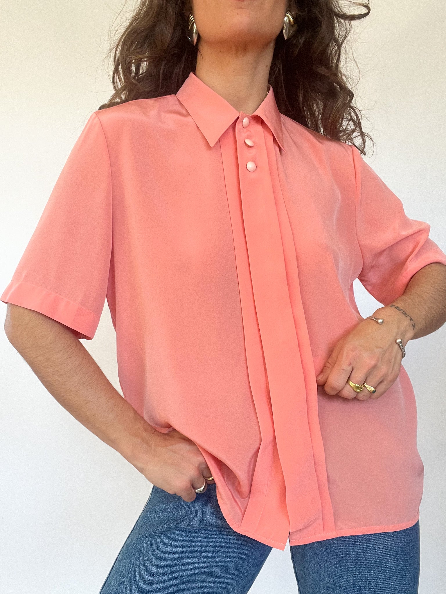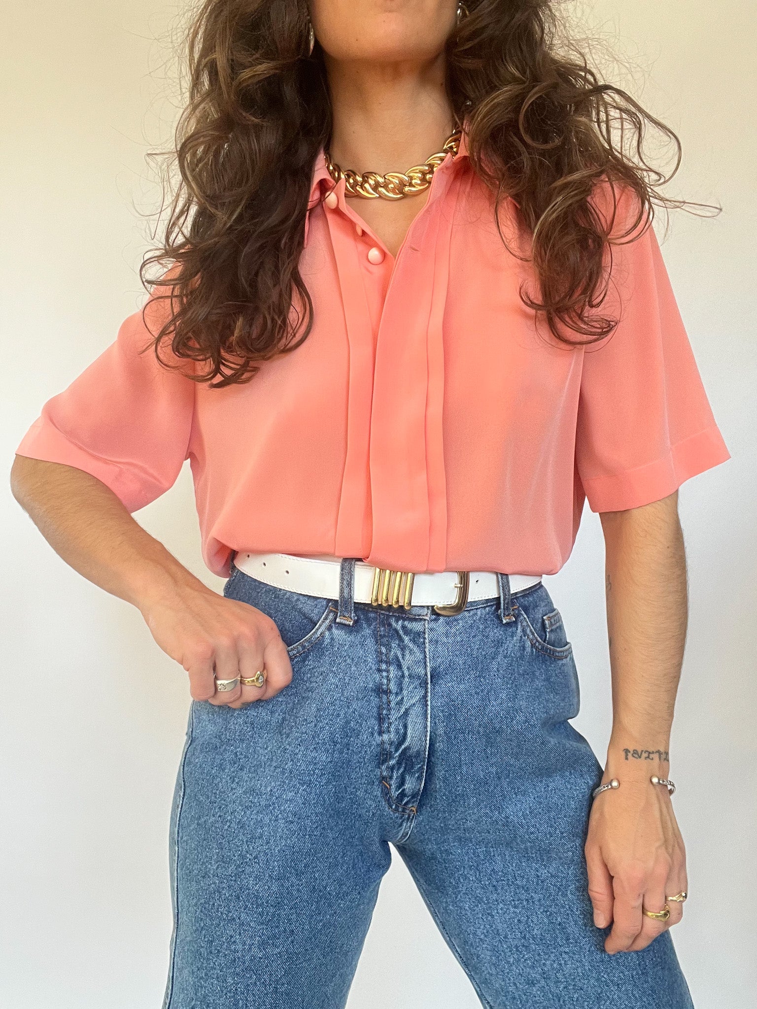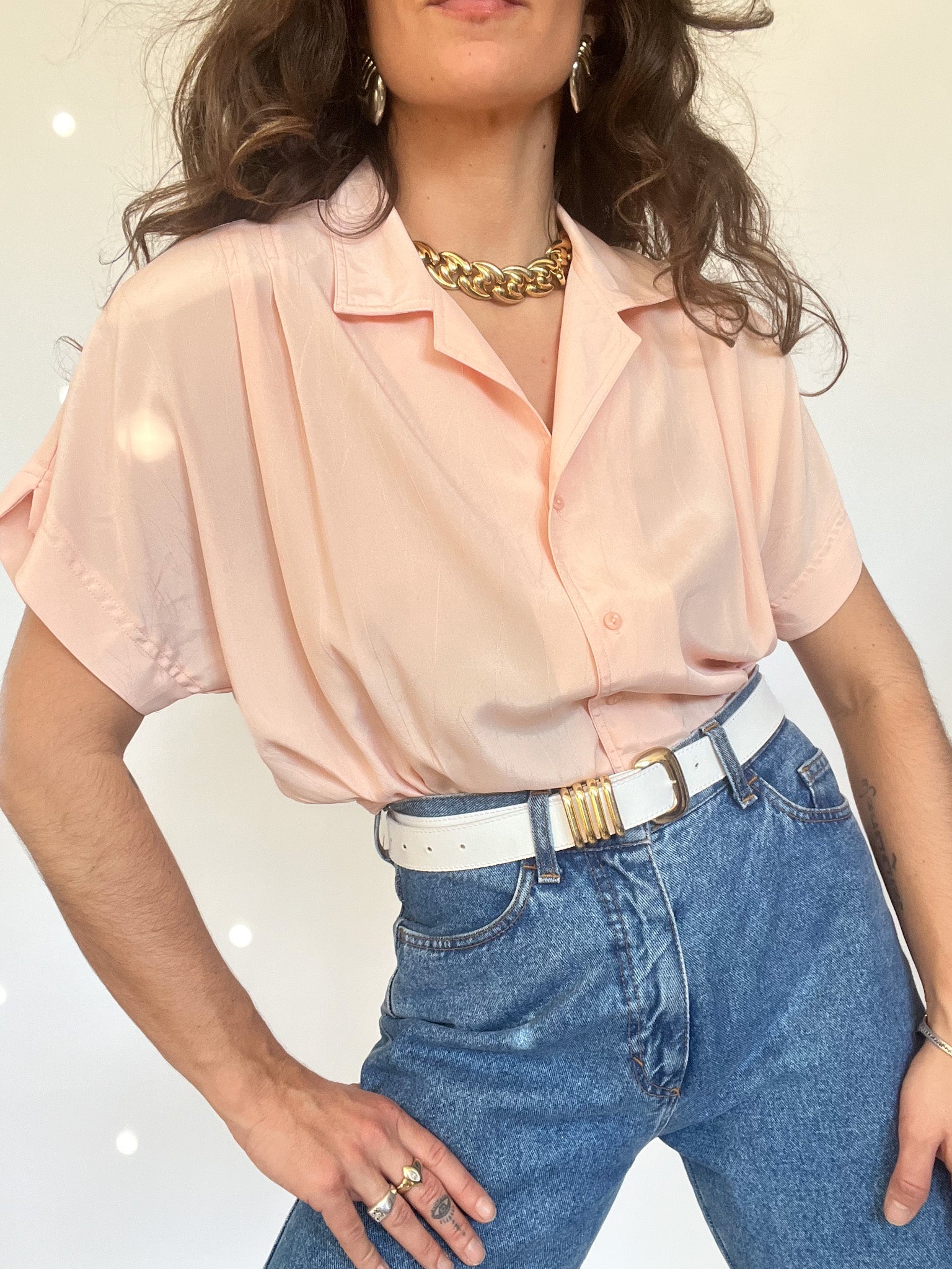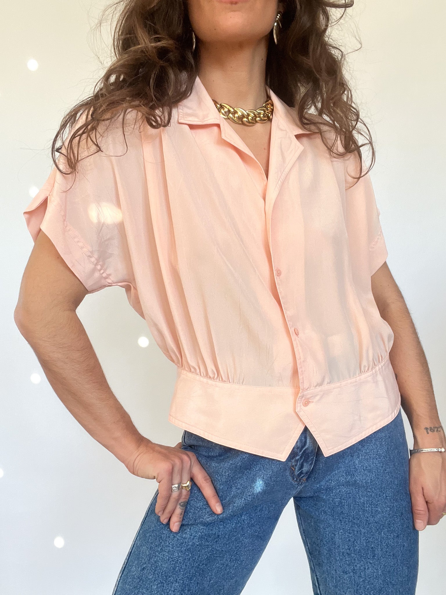 Vintage Pink Shirt with Geometric Cut-Out Collar