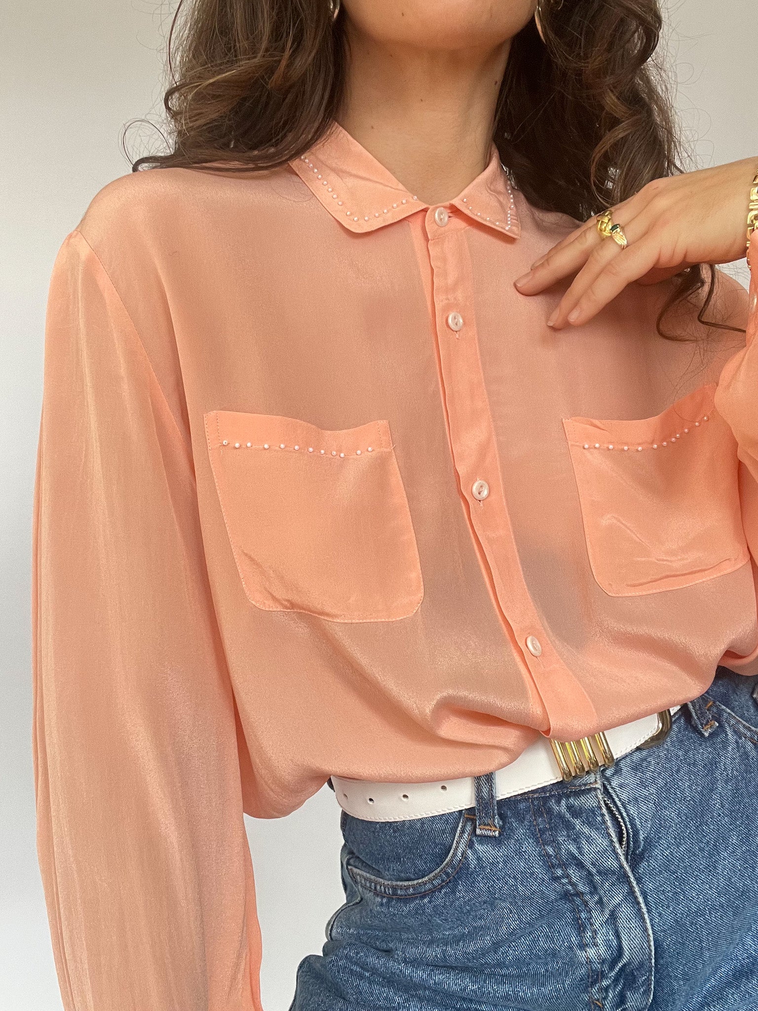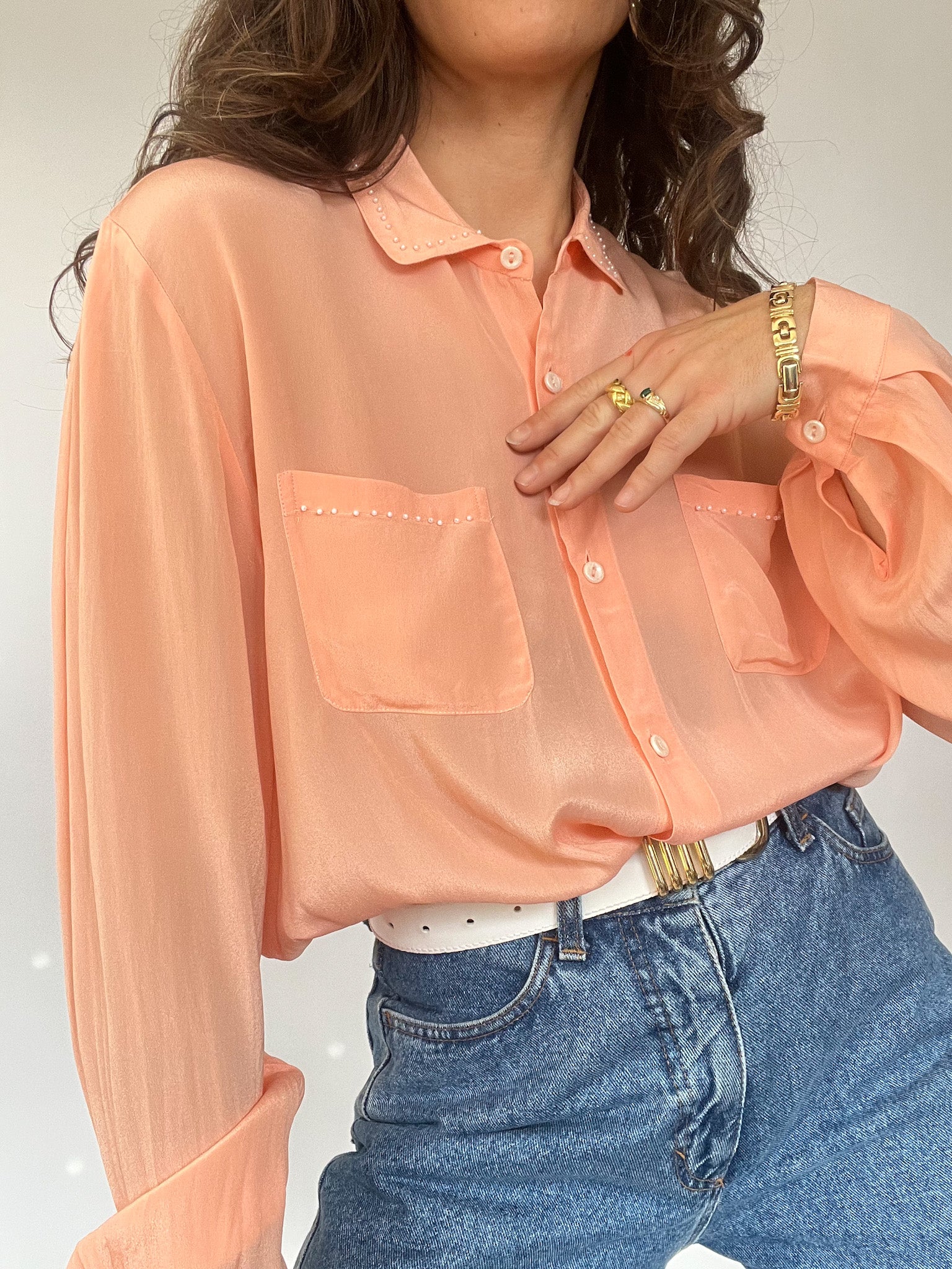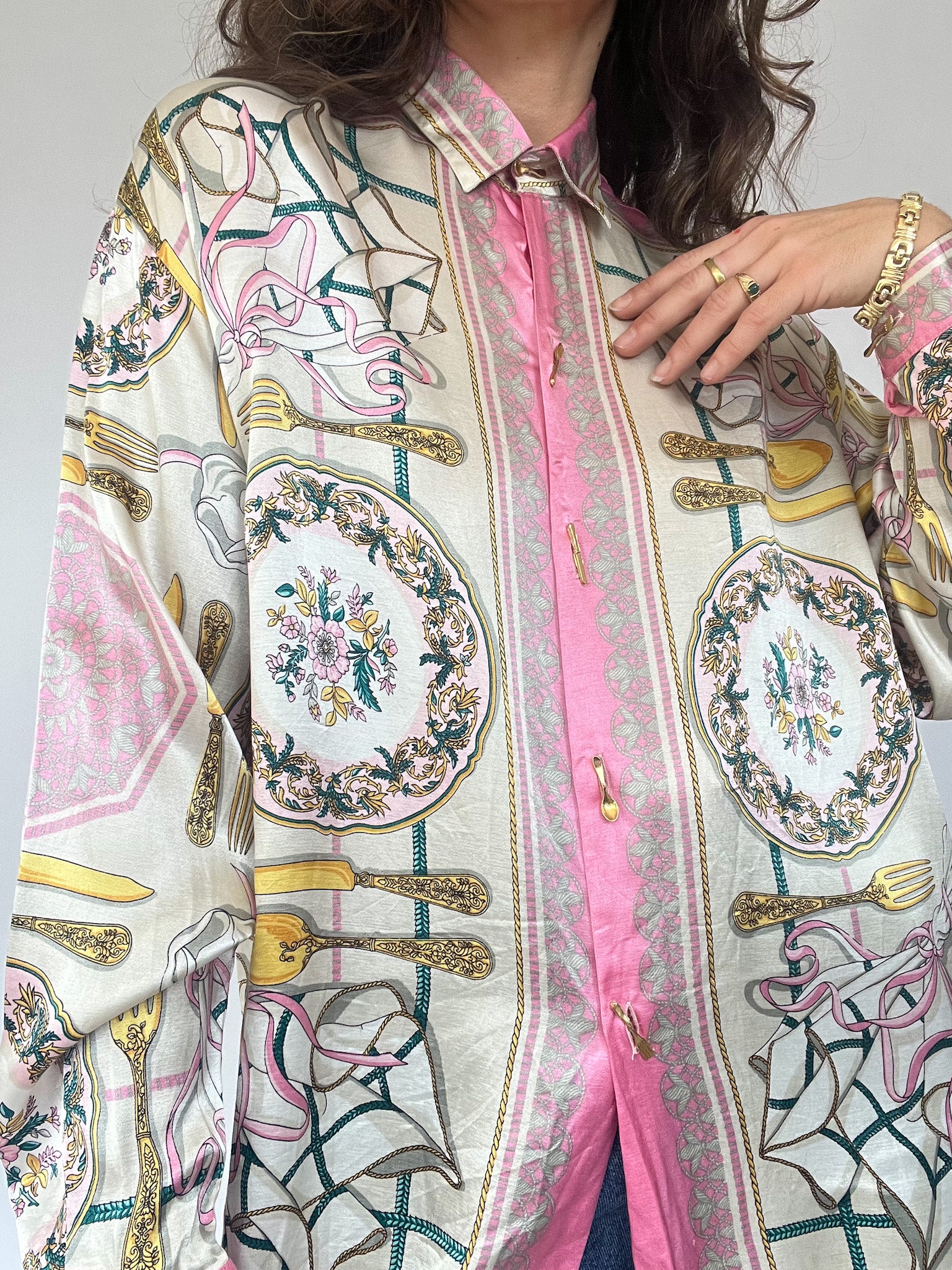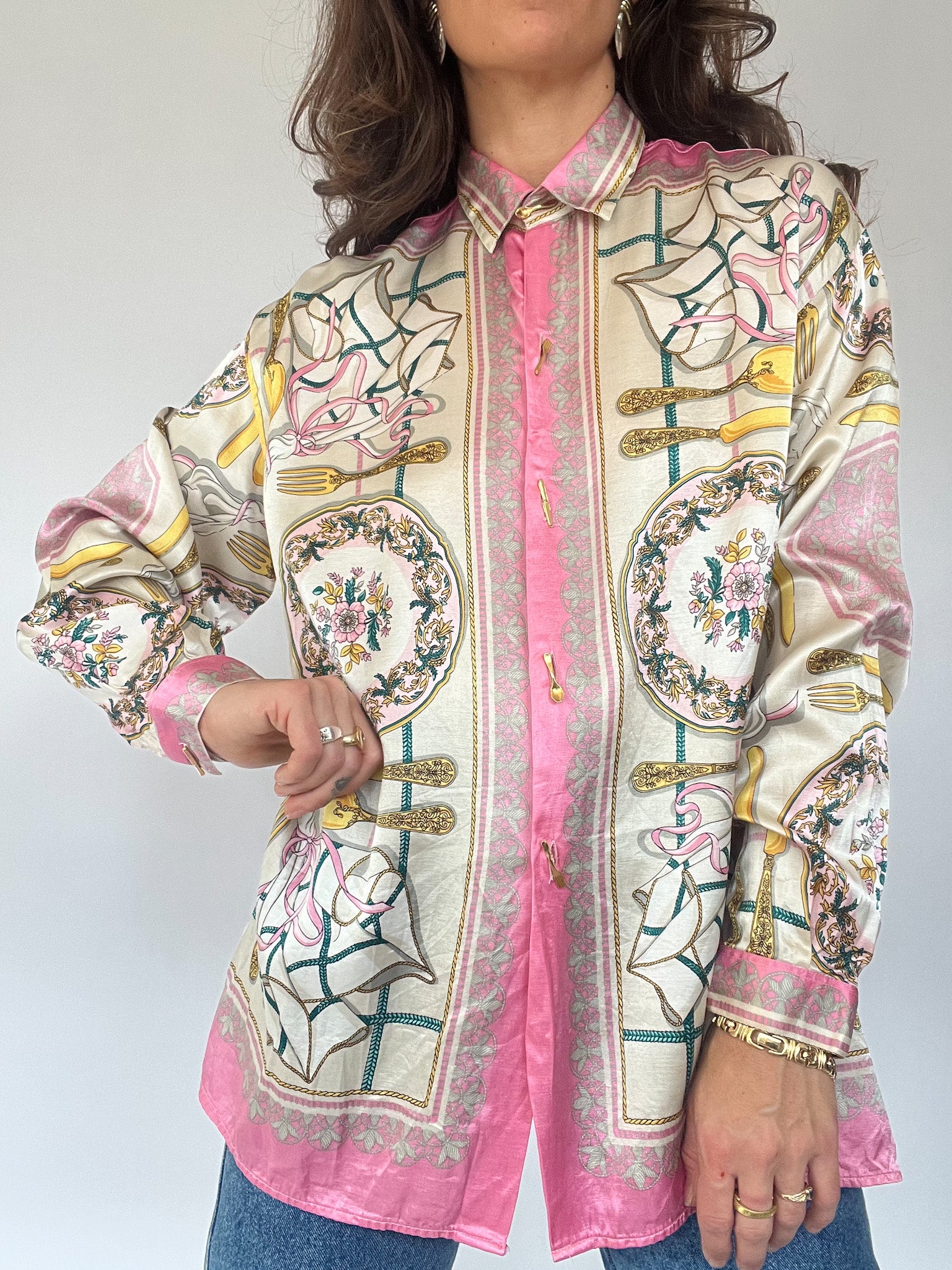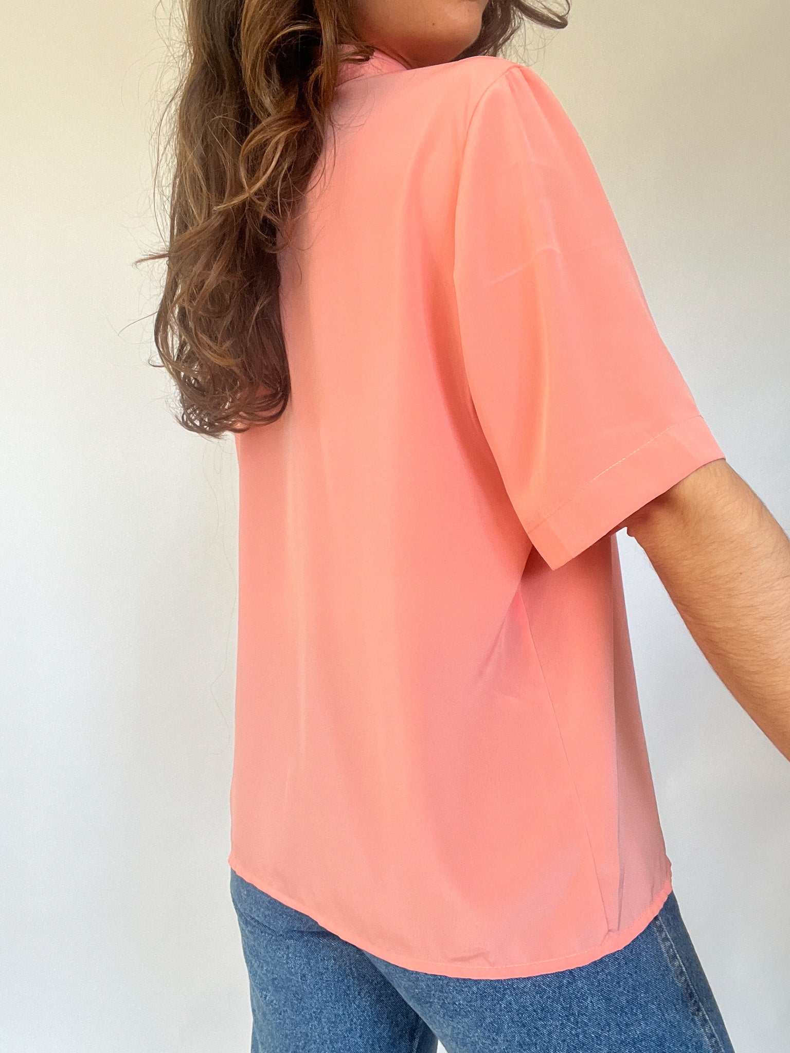 Vintage Pink Shirt with Geometric Cut-Out Collar