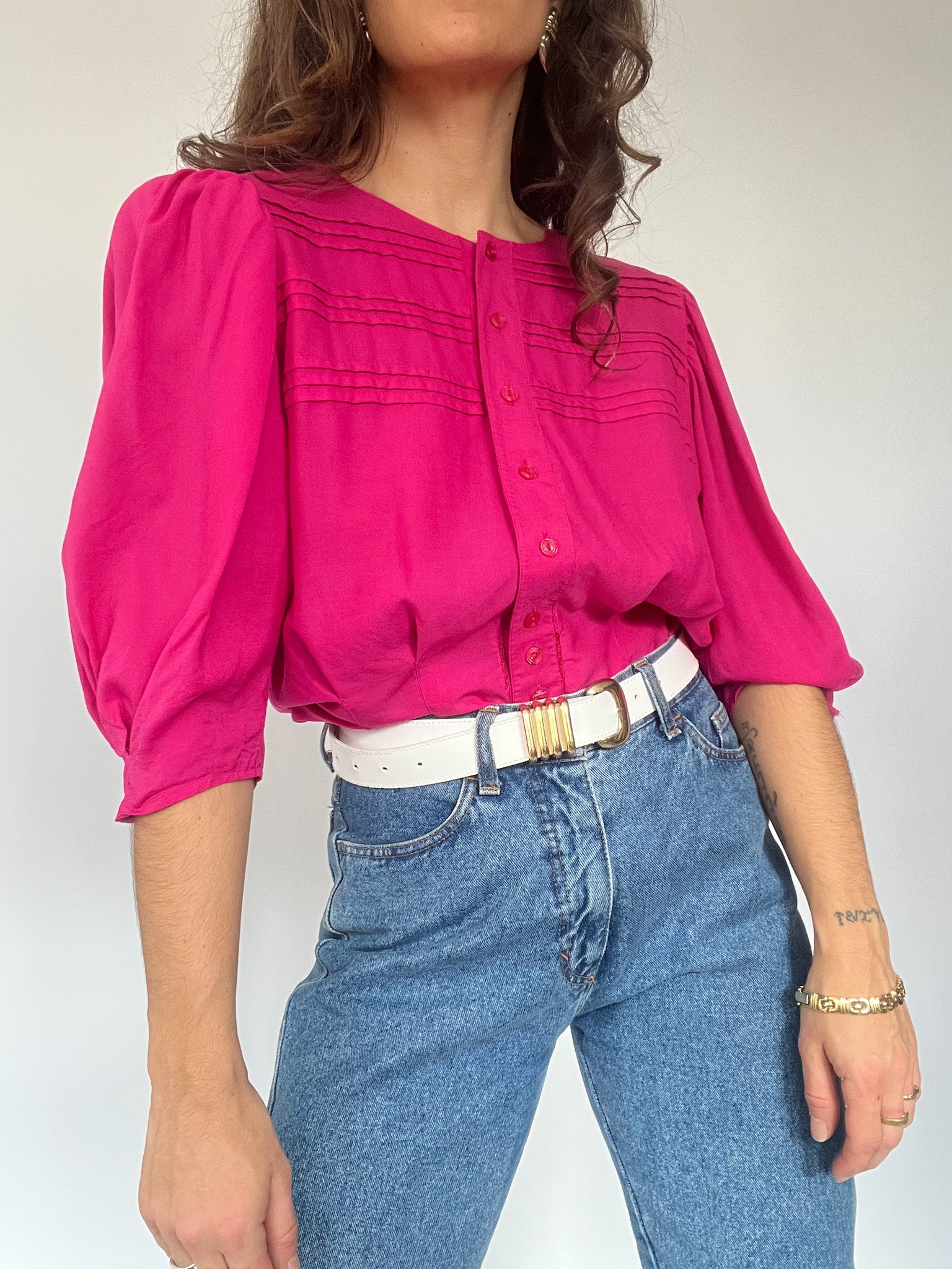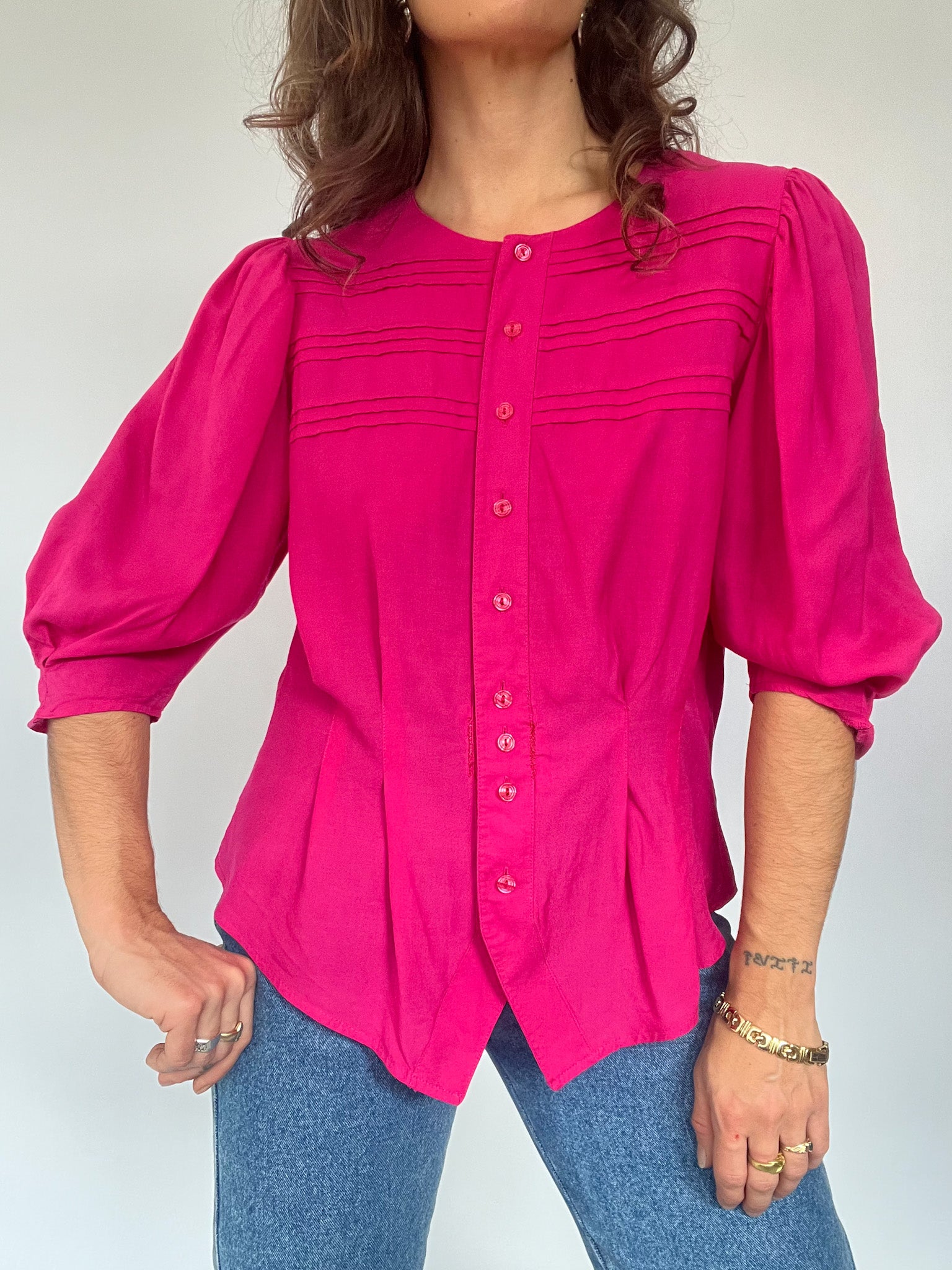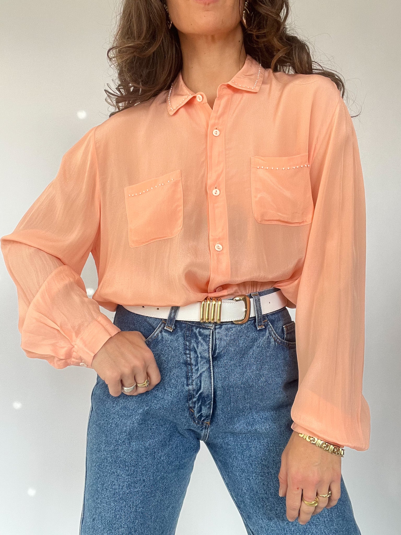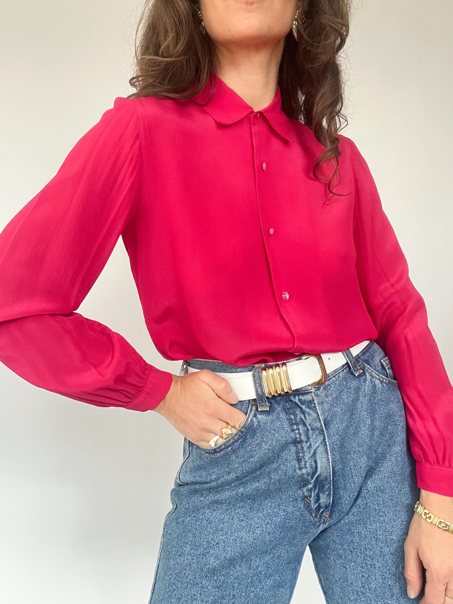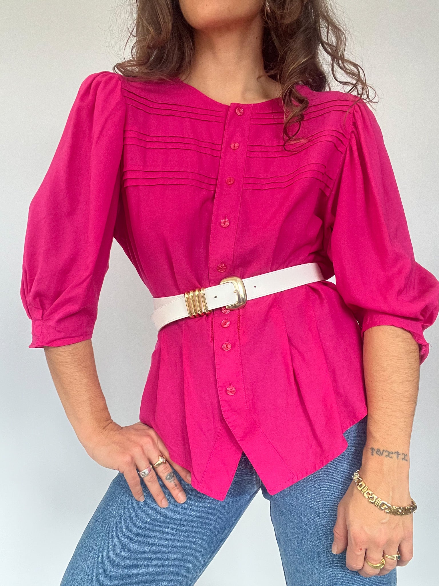 Vintage Pink Shirt with Geometric Cut-Out Collar