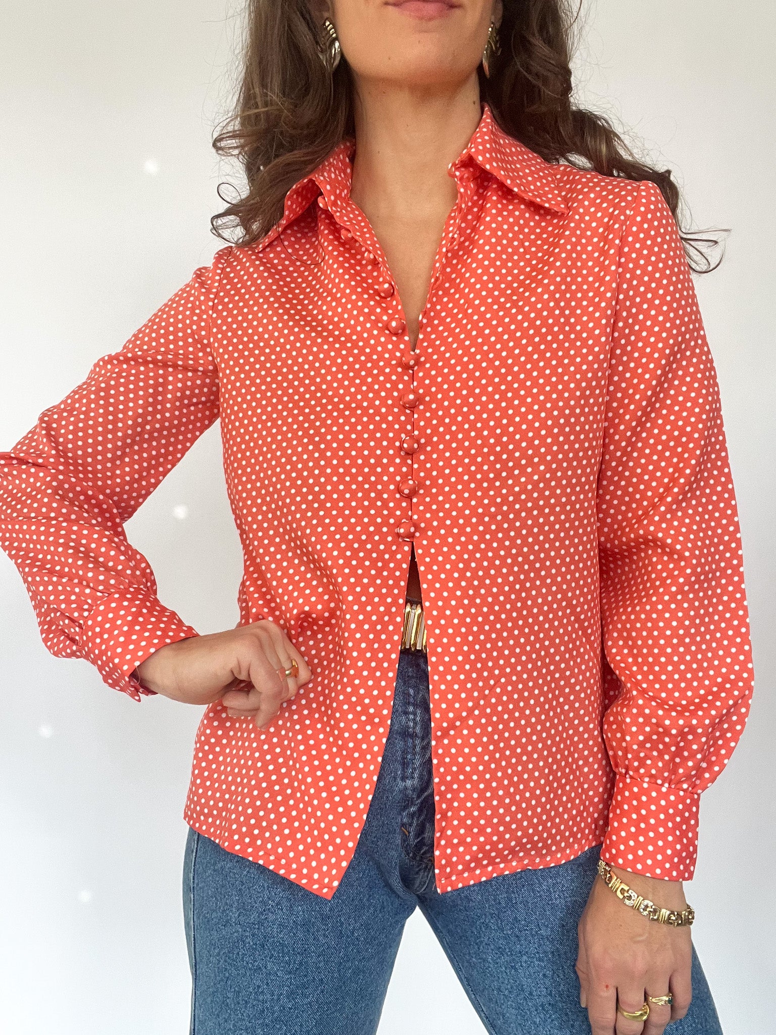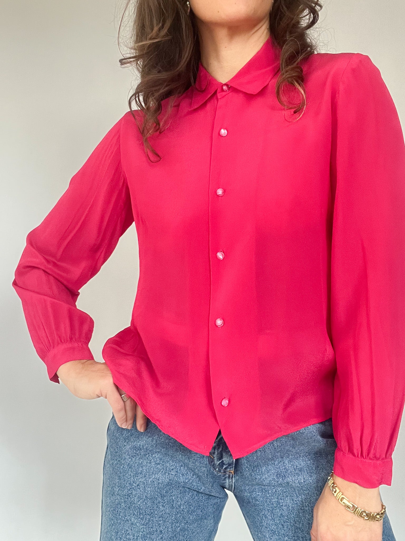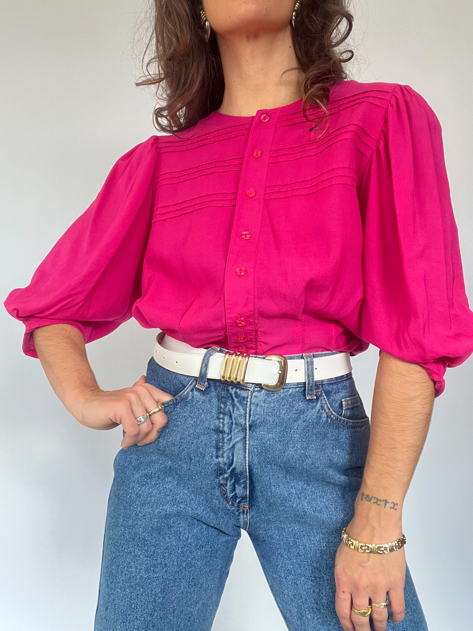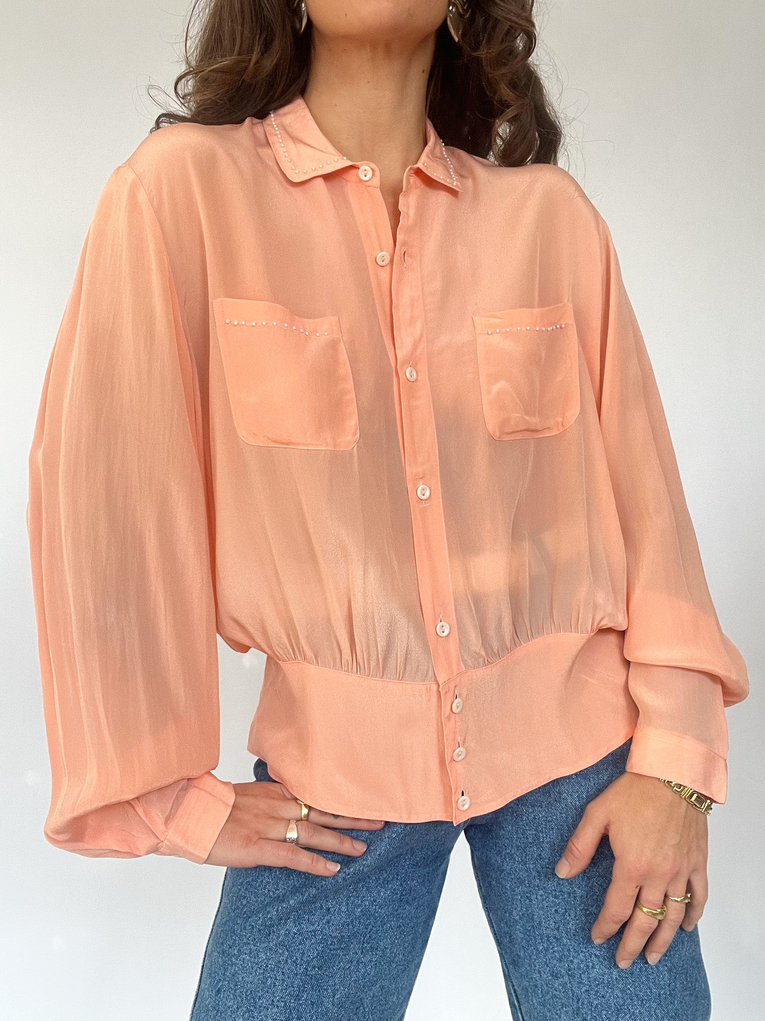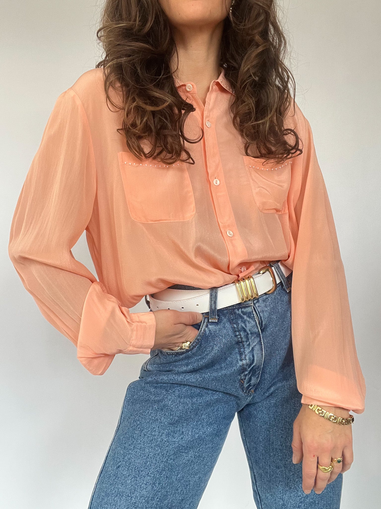 Vintage Pink Shirt with Geometric Cut-Out Collar